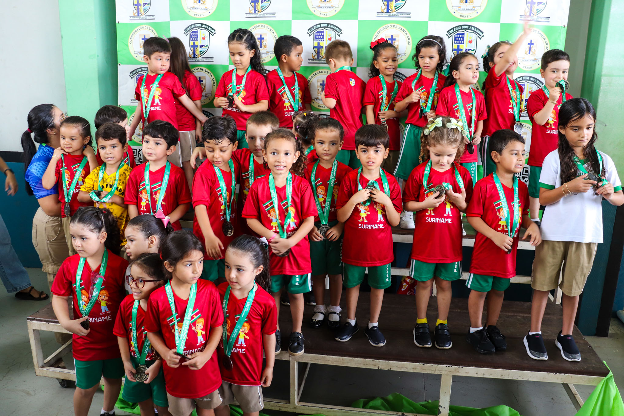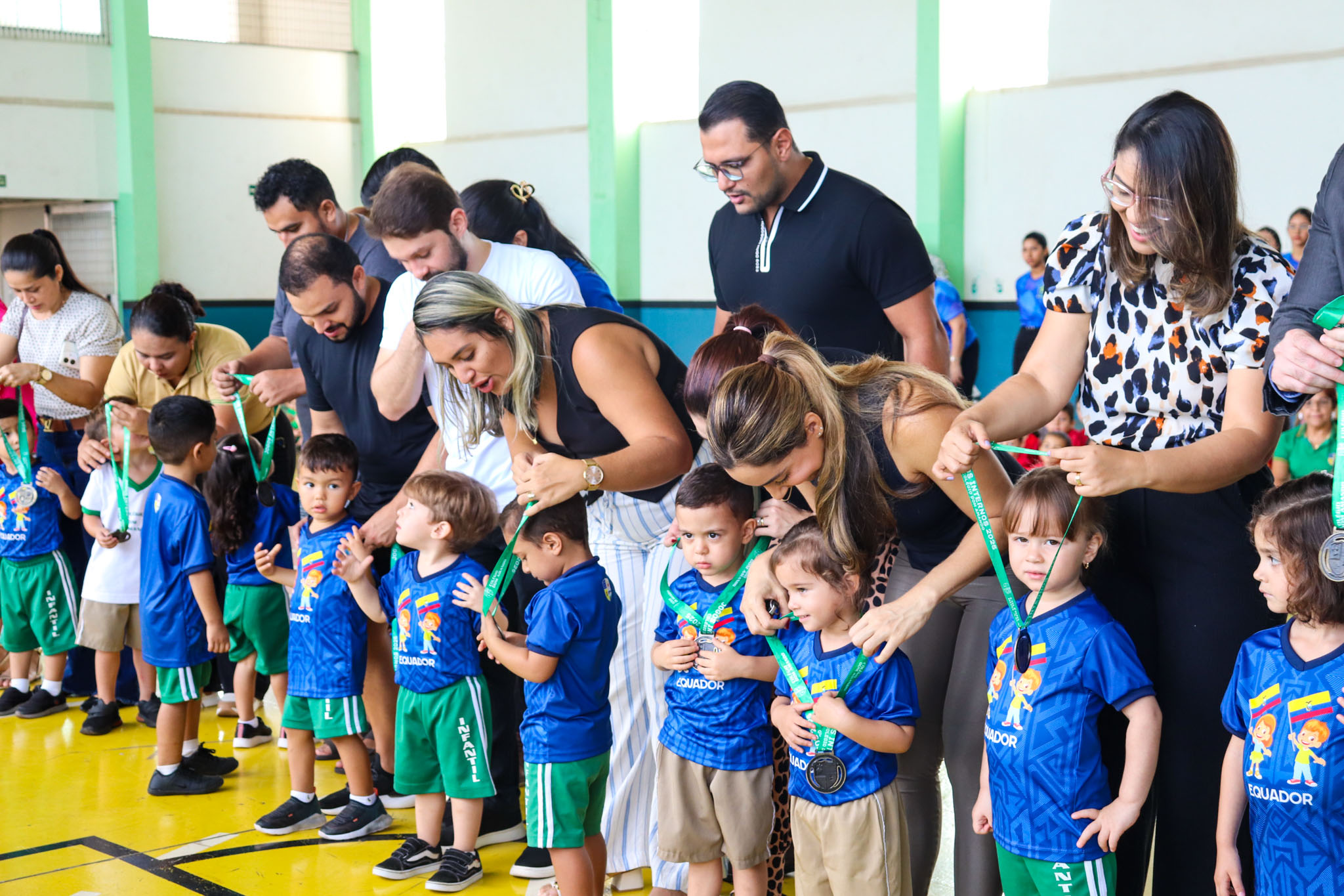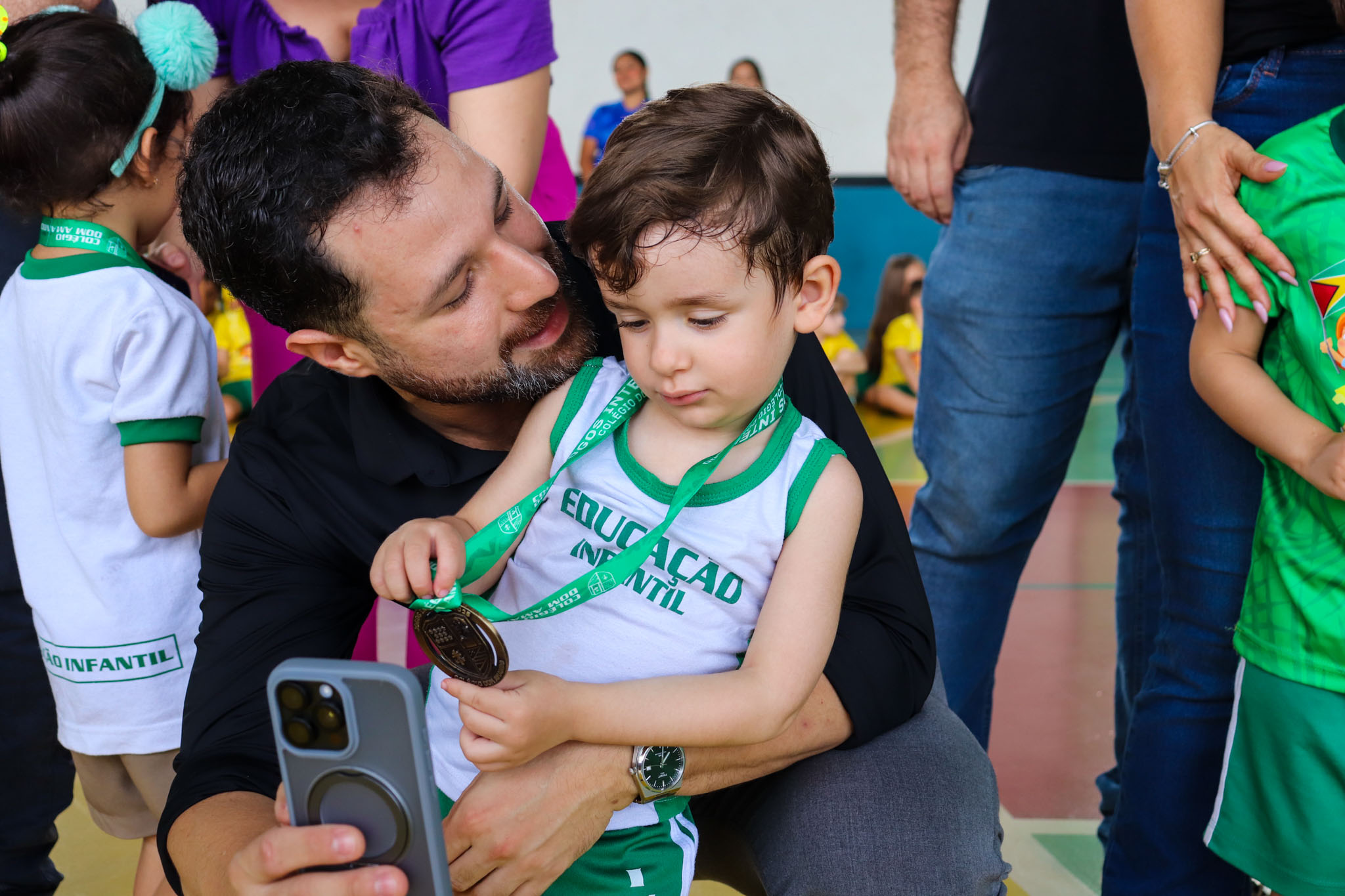 Ao final de cada etapa, as famílias estiveram presentes para celebrar junto com os filhos a entrega das medalhas, um momento emocionante que reforçou o reconhecimento ao esforço de cada criança e a importância de valorizar conquistas, dedicação e participação.