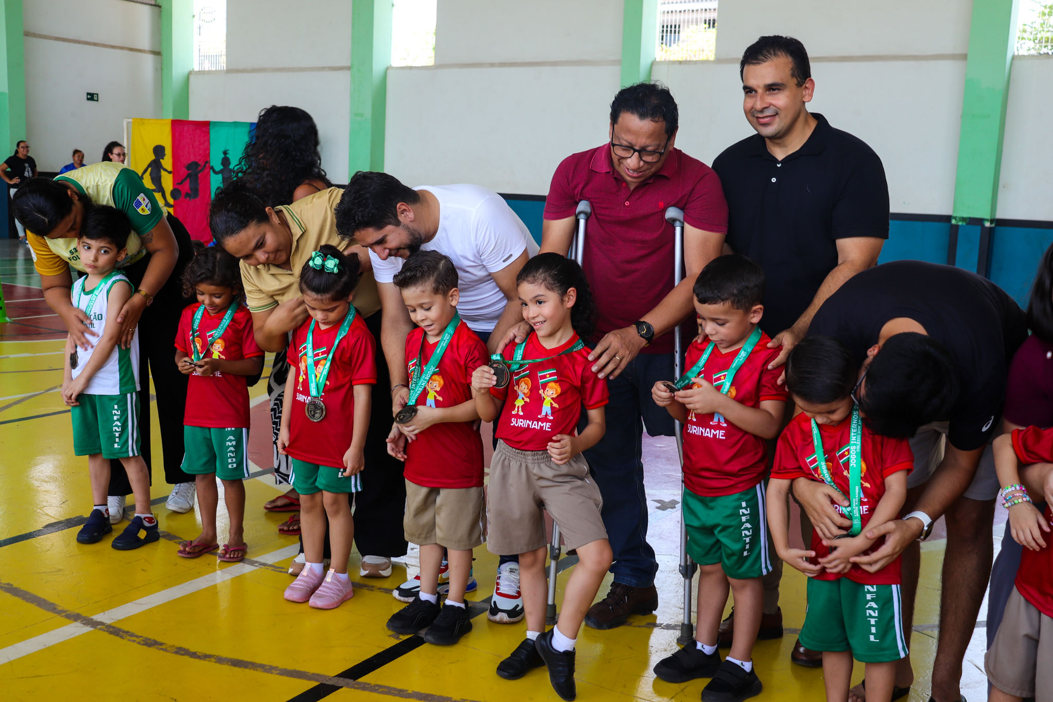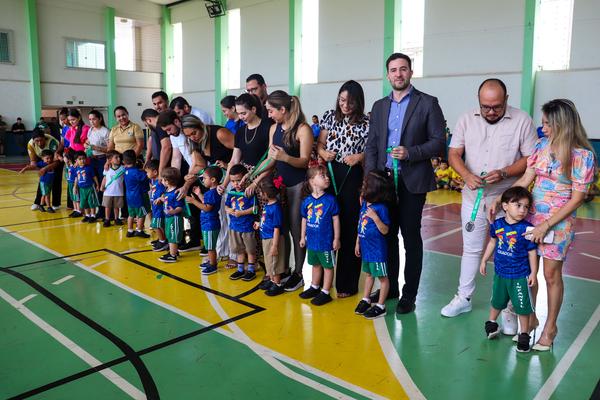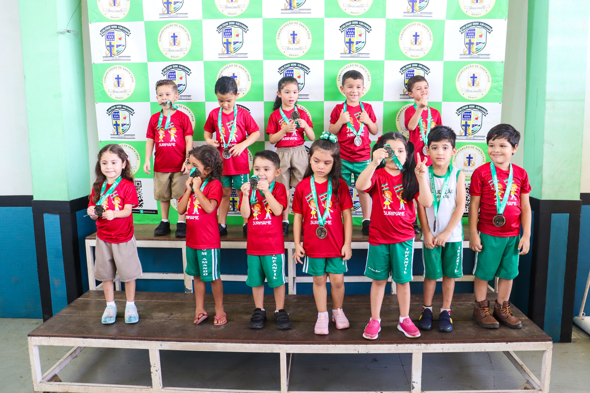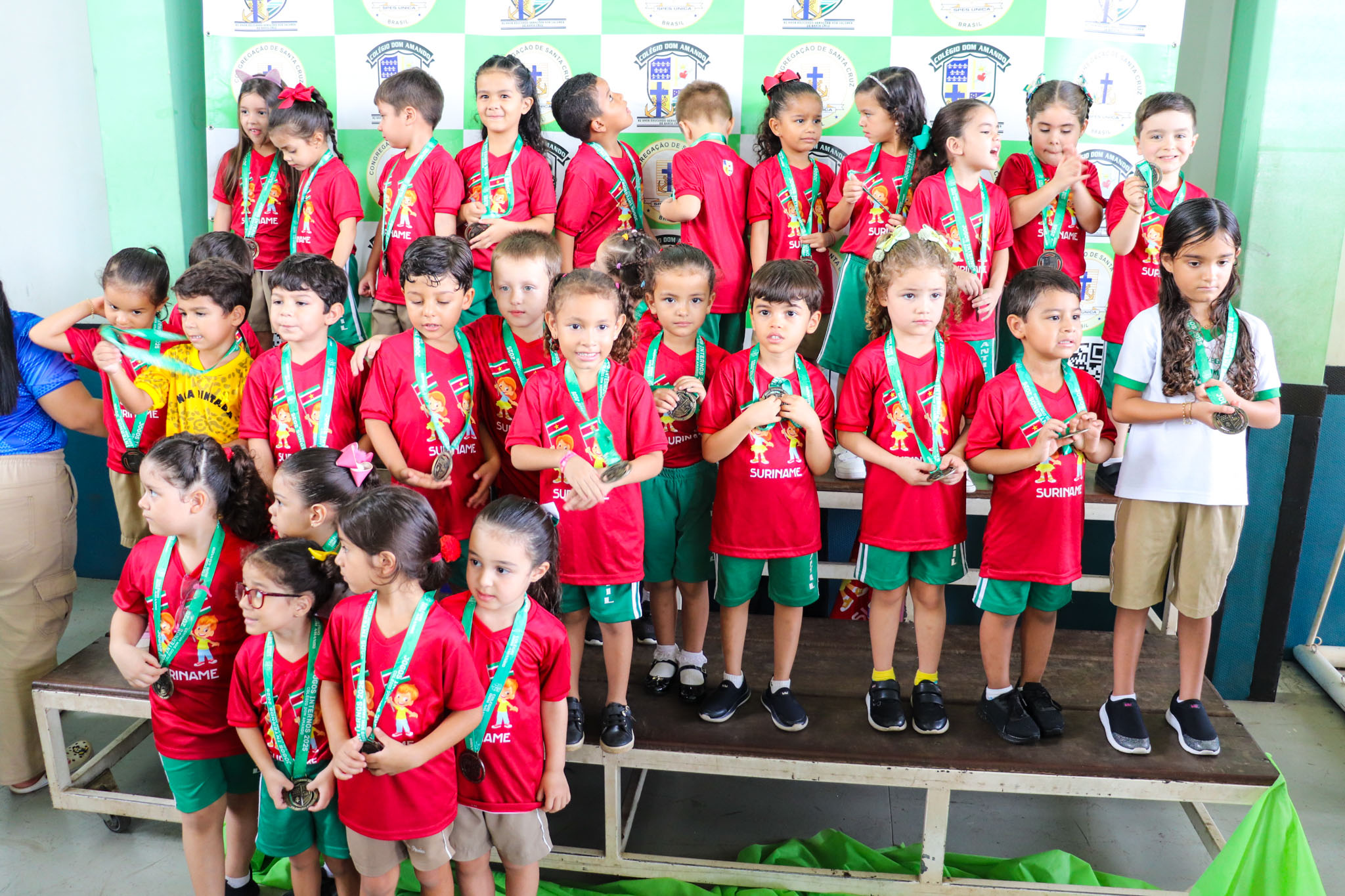 Ao final de cada etapa, as famílias estiveram presentes para celebrar junto com os filhos a entrega das medalhas, um momento emocionante que reforçou o reconhecimento ao esforço de cada criança e a importância de valorizar conquistas, dedicação e participação.