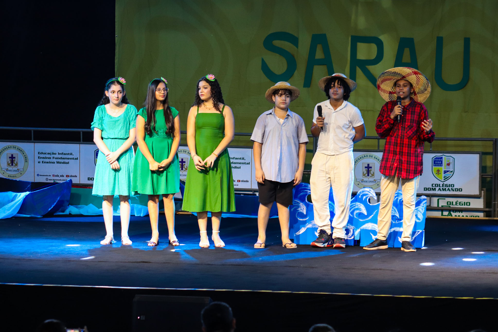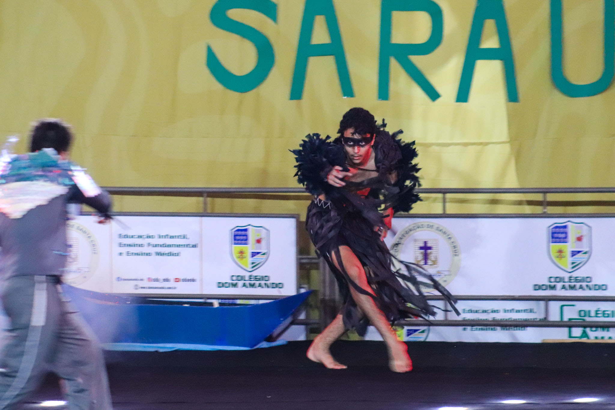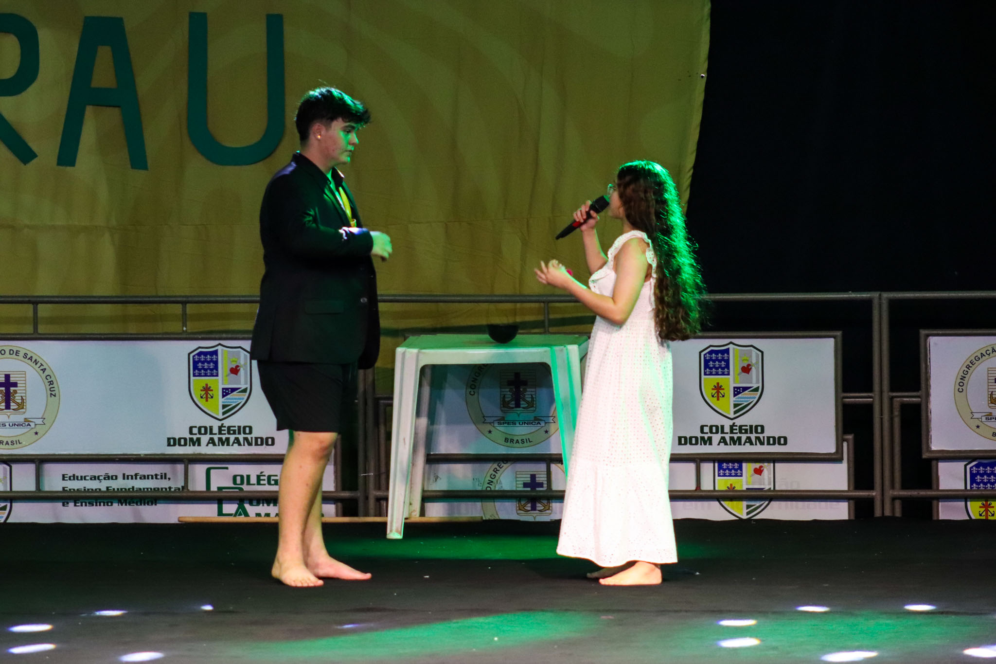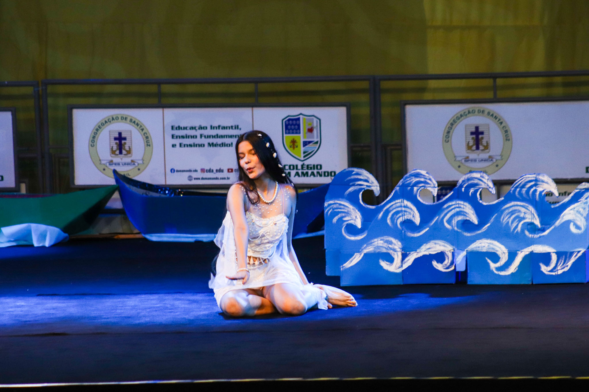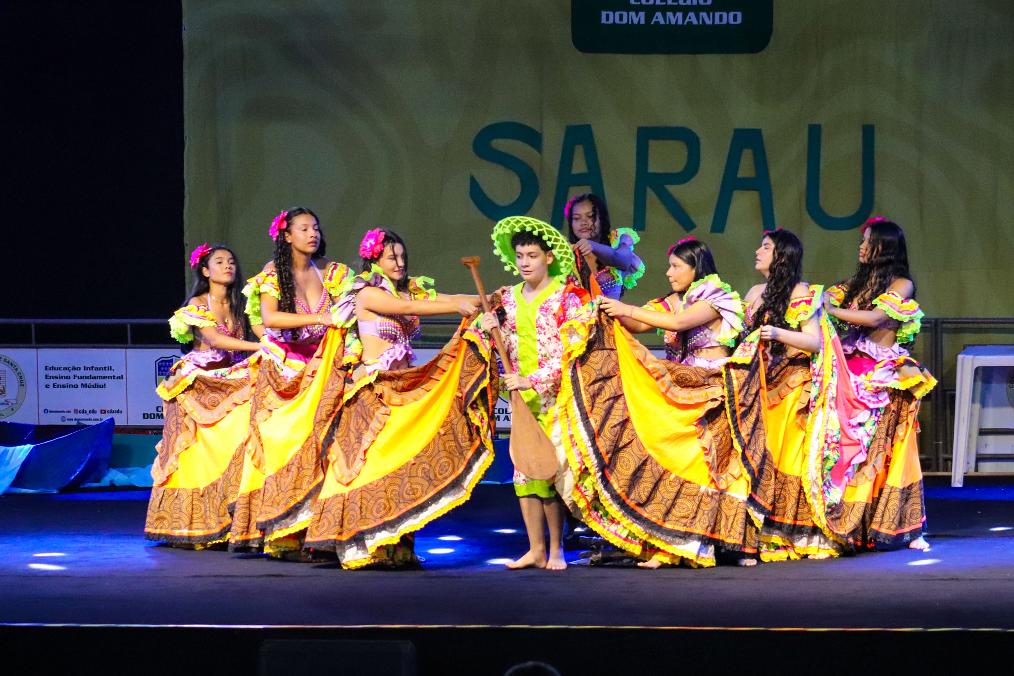 Neste ano, os alunos apresentaram uma adaptação do teatro “Olho de Boto”, de Felisbelo Jaguar Sussuarana, obra regional que destaca elementos da identidade amazônica e que ganhou nova vida no palco através da interpretação dos estudantes. A apresentação reuniu recursos como declamação, narrativa, música e encenação, permitindo que os participantes explorassem diferentes linguagens artísticas.