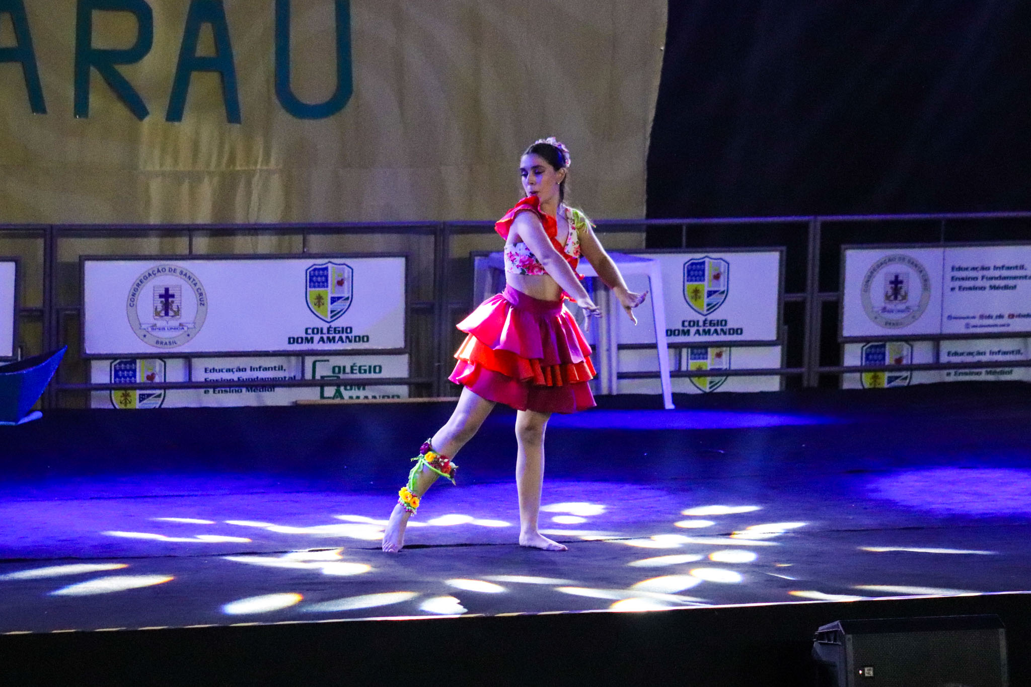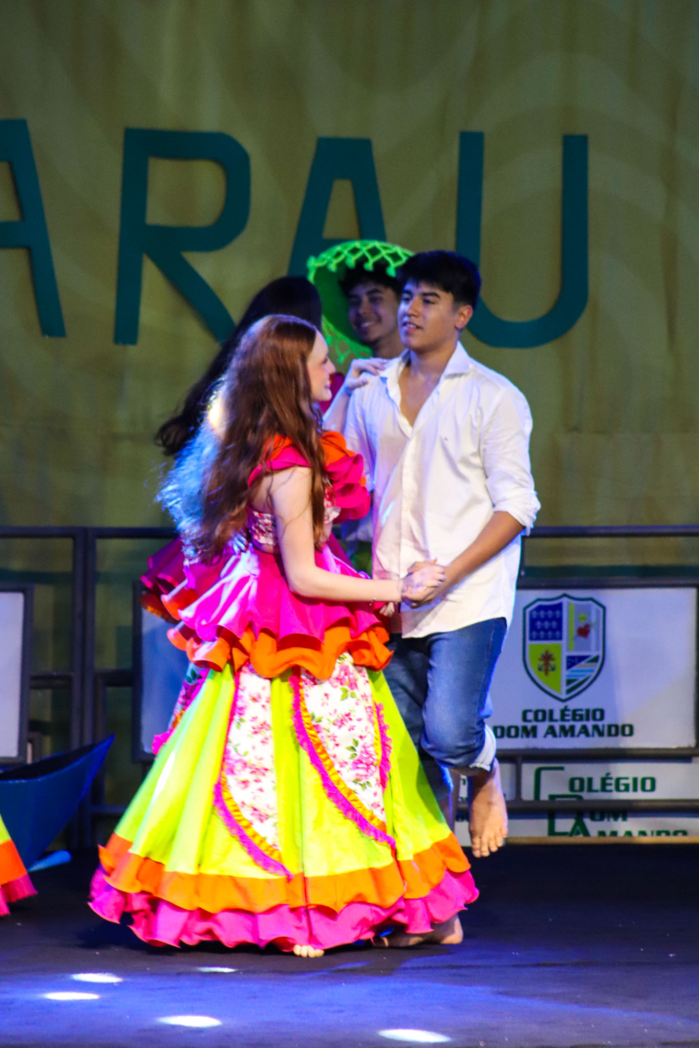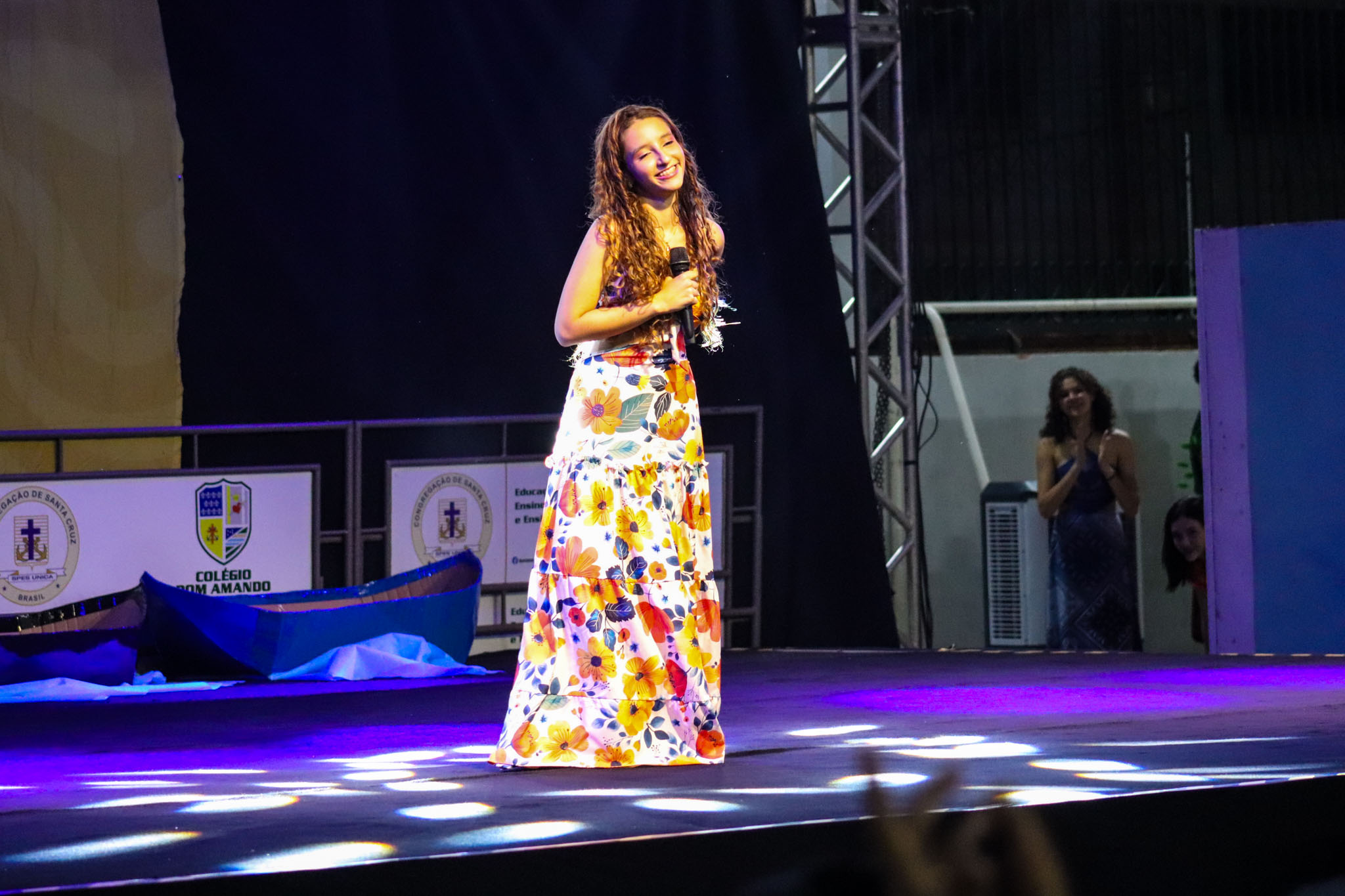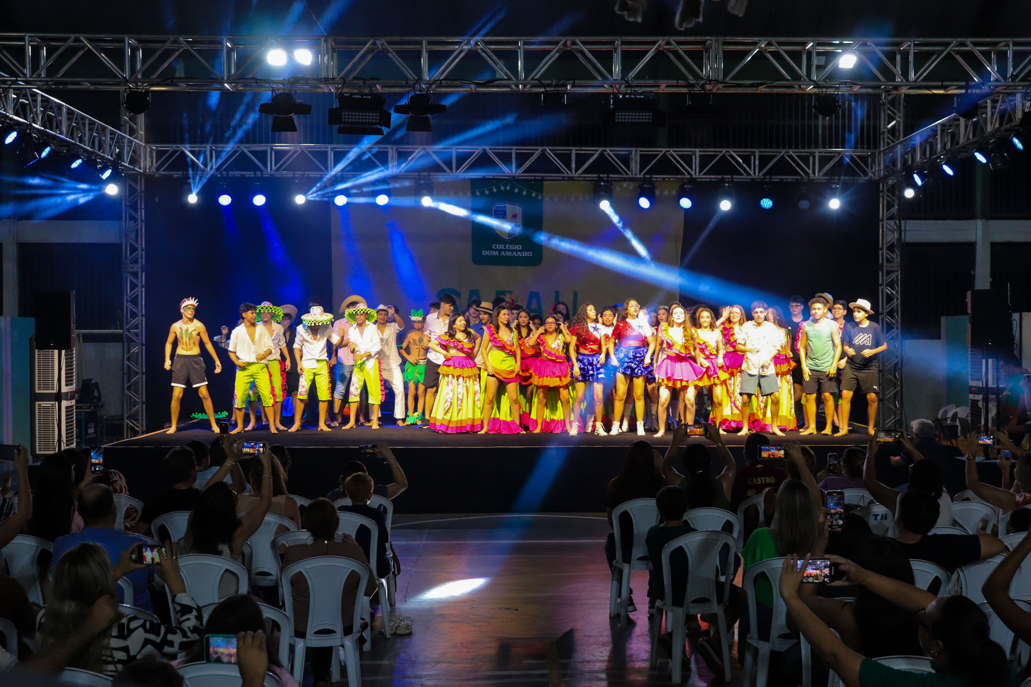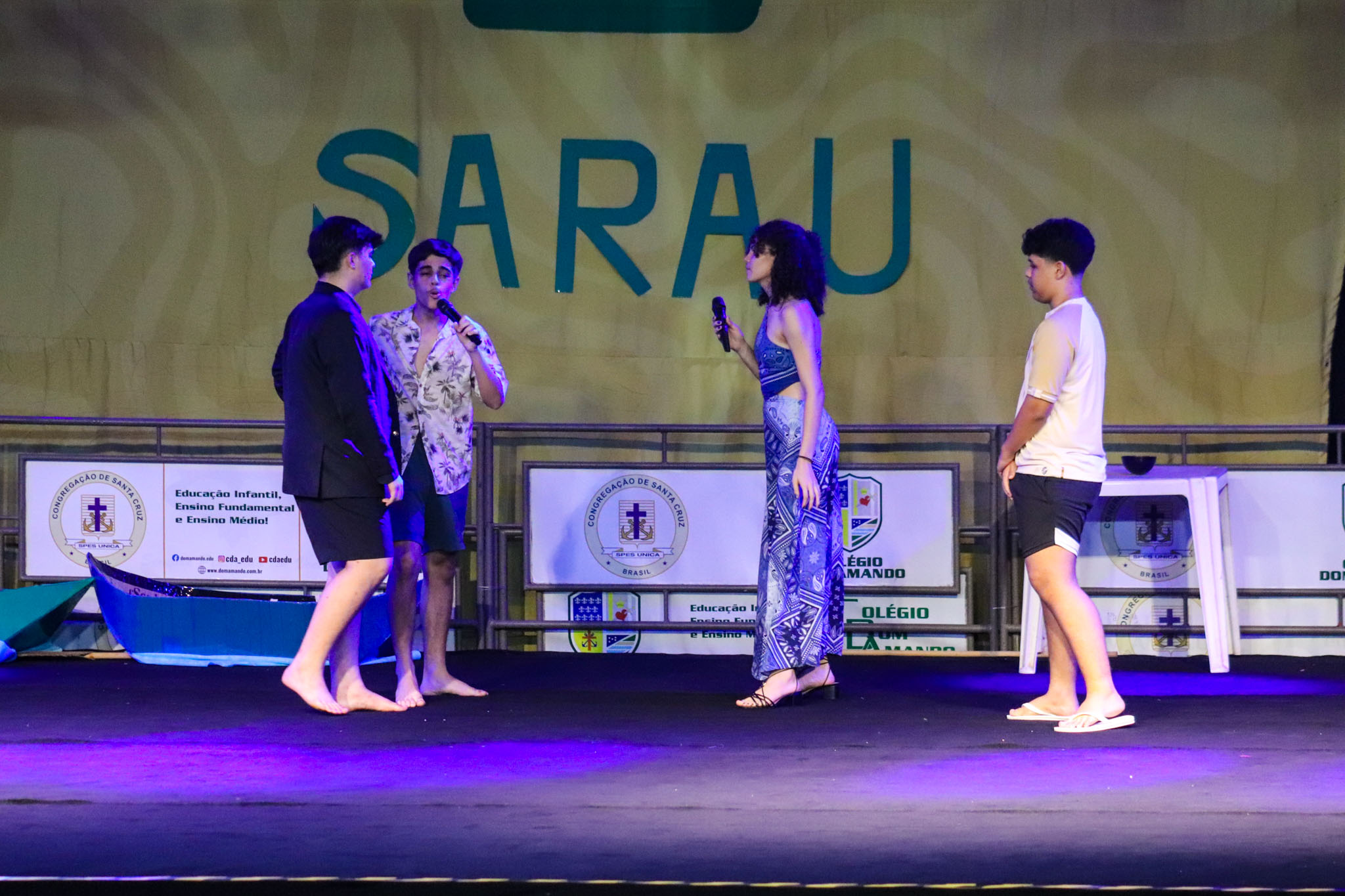 Neste ano, os alunos apresentaram uma adaptação do teatro “Olho de Boto”, de Felisbelo Jaguar Sussuarana, obra regional que destaca elementos da identidade amazônica e que ganhou nova vida no palco através da interpretação dos estudantes. A apresentação reuniu recursos como declamação, narrativa, música e encenação, permitindo que os participantes explorassem diferentes linguagens artísticas.