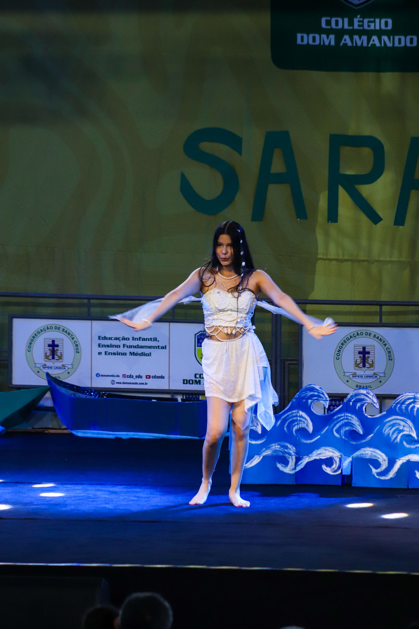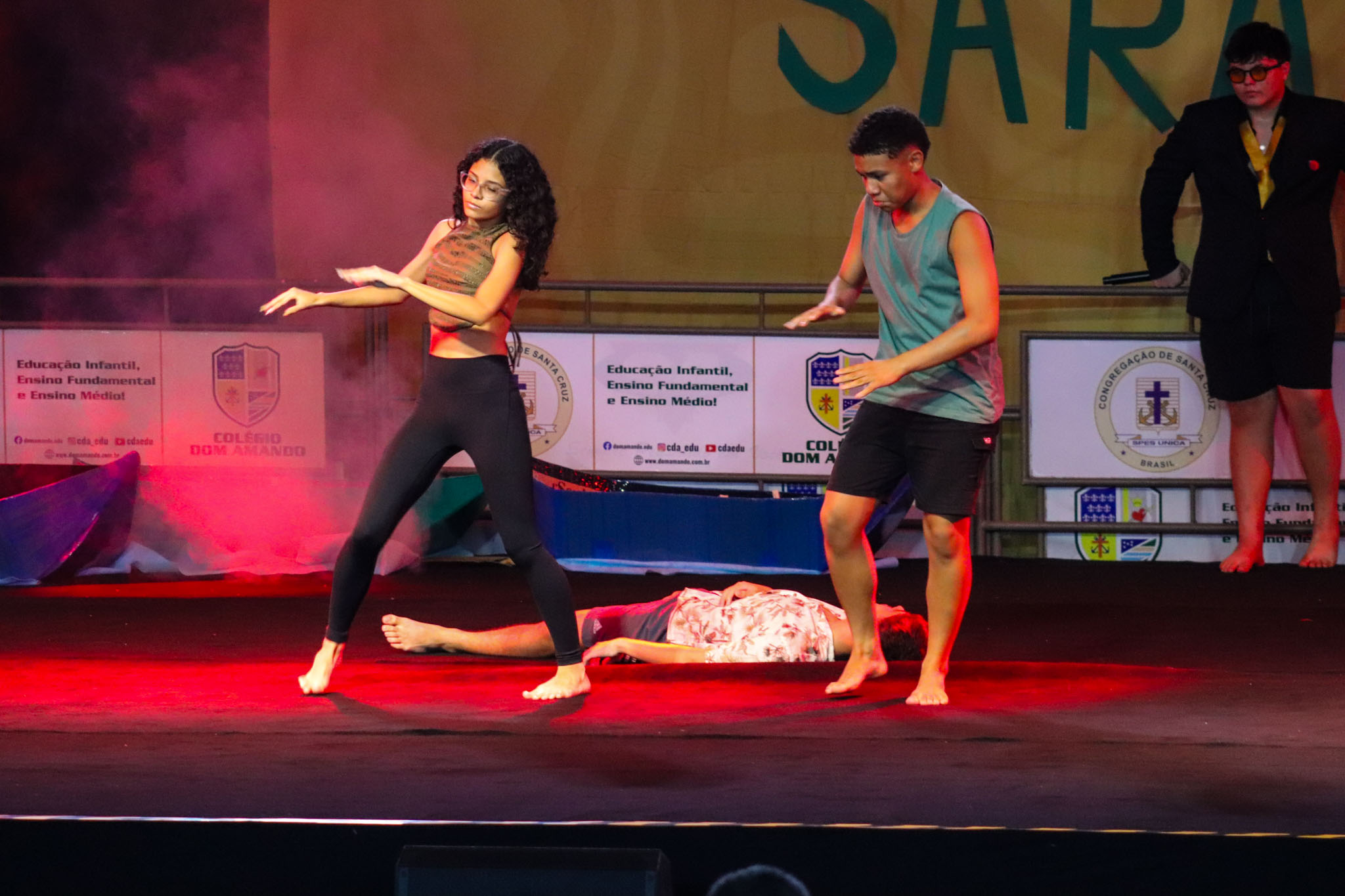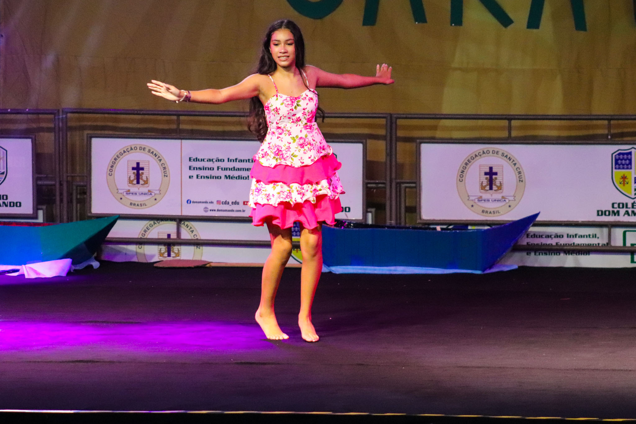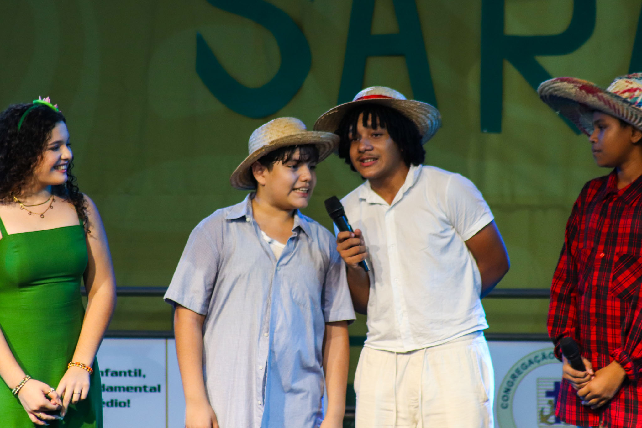 Neste ano, os alunos apresentaram uma adaptação do teatro “Olho de Boto”, de Felisbelo Jaguar Sussuarana, obra regional que destaca elementos da identidade amazônica e que ganhou nova vida no palco através da interpretação dos estudantes. A apresentação reuniu recursos como declamação, narrativa, música e encenação, permitindo que os participantes explorassem diferentes linguagens artísticas.