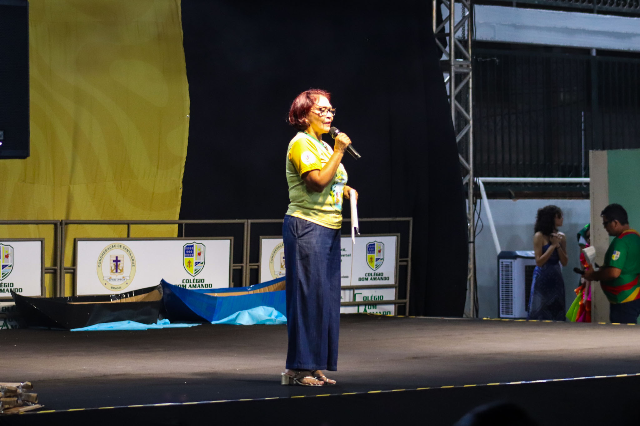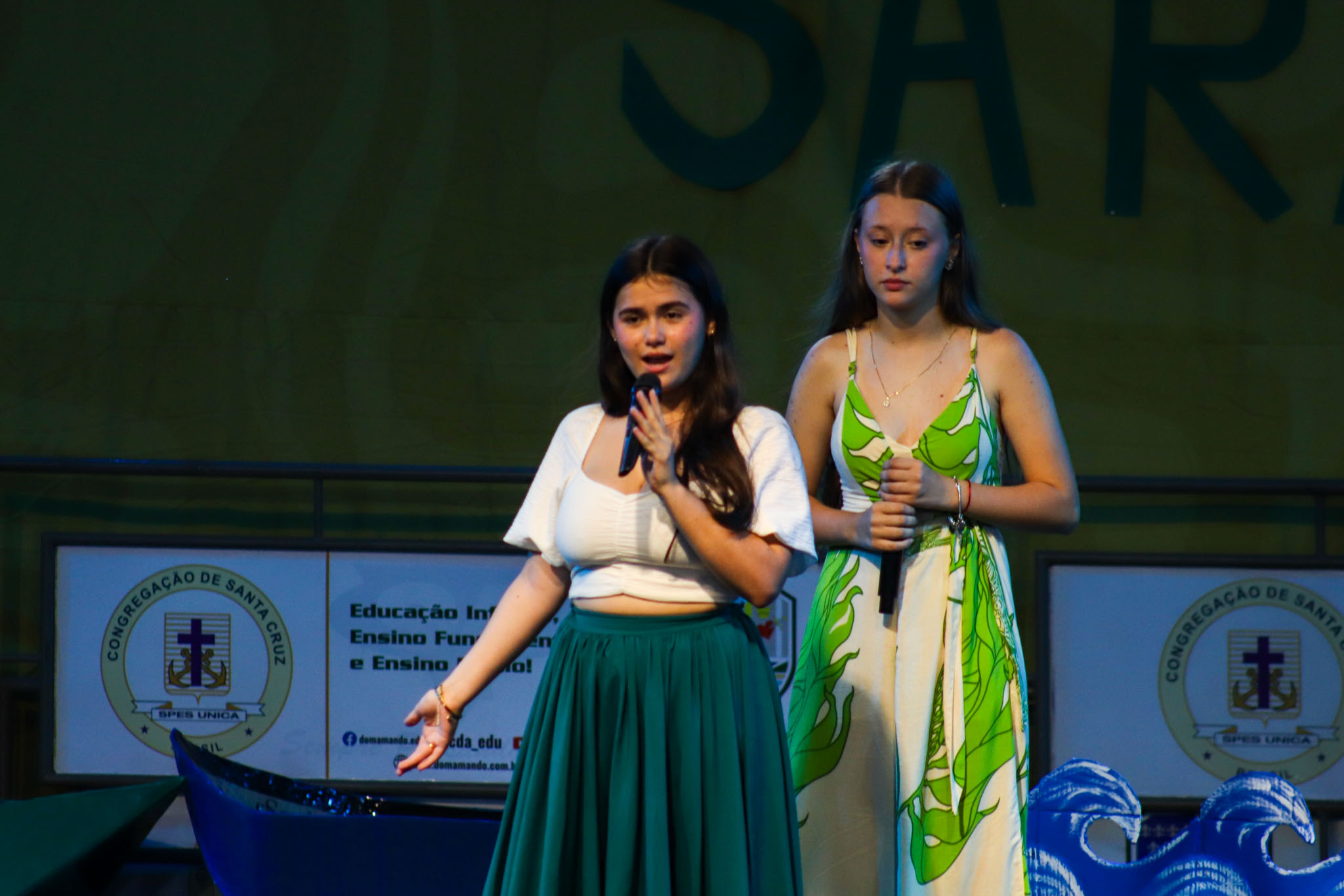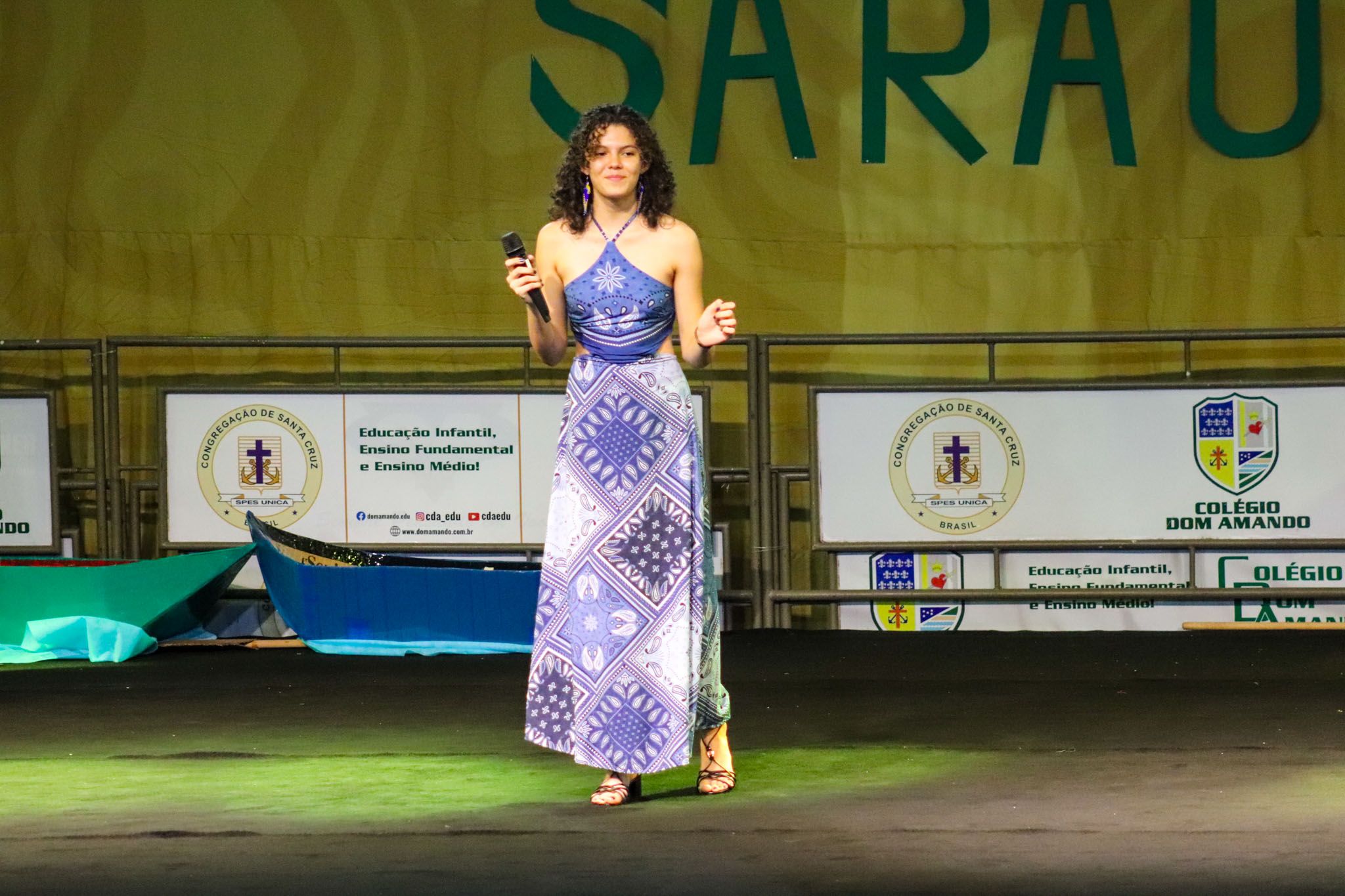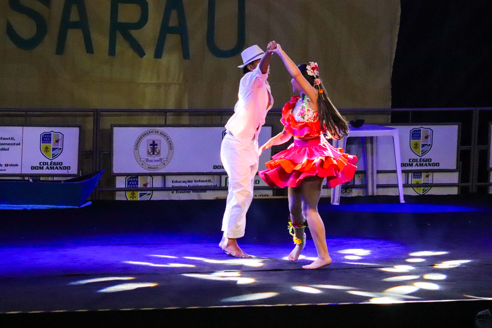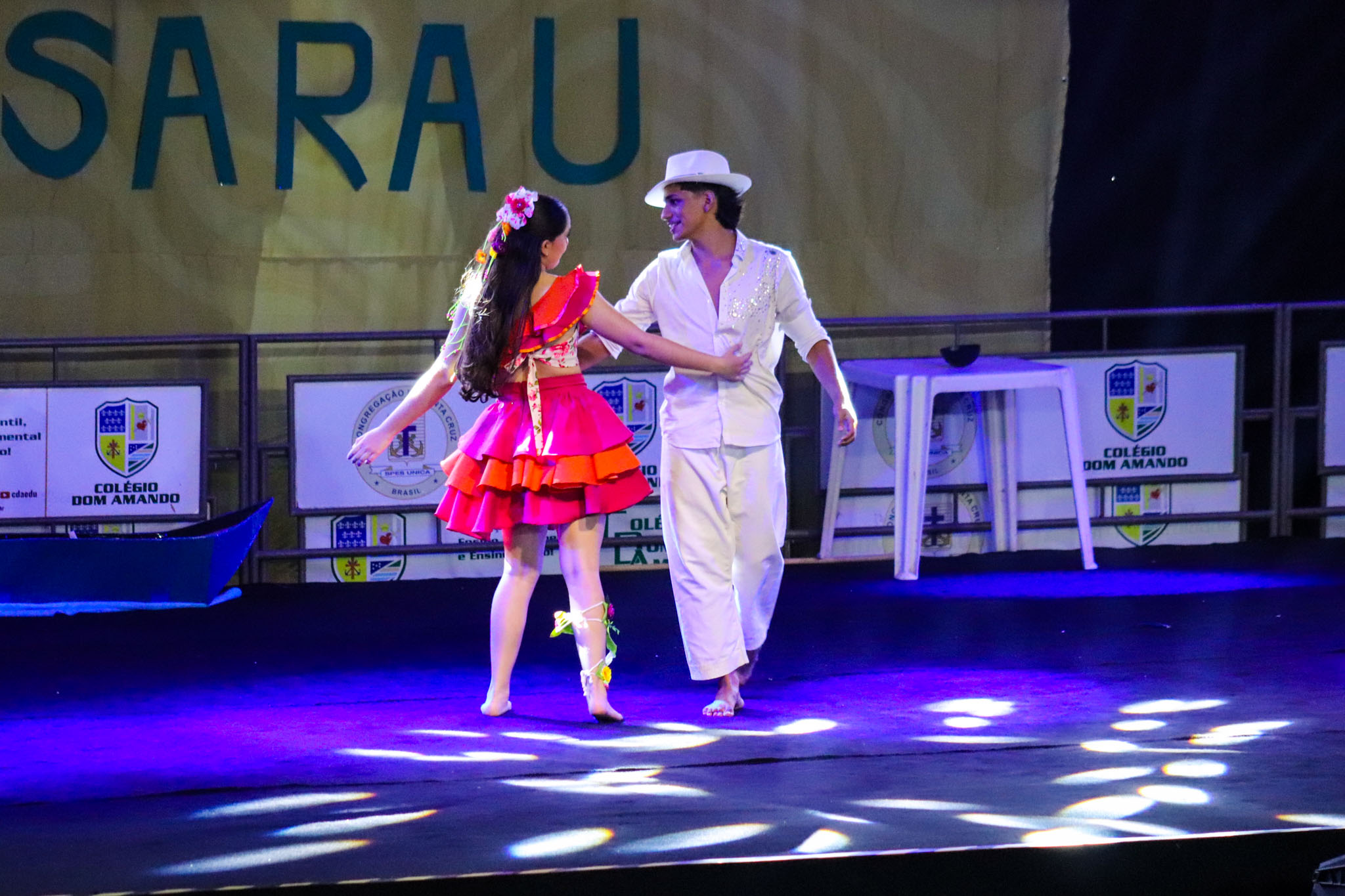 Neste ano, os alunos apresentaram uma adaptação do teatro “Olho de Boto”, de Felisbelo Jaguar Sussuarana, obra regional que destaca elementos da identidade amazônica e que ganhou nova vida no palco através da interpretação dos estudantes. A apresentação reuniu recursos como declamação, narrativa, música e encenação, permitindo que os participantes explorassem diferentes linguagens artísticas.