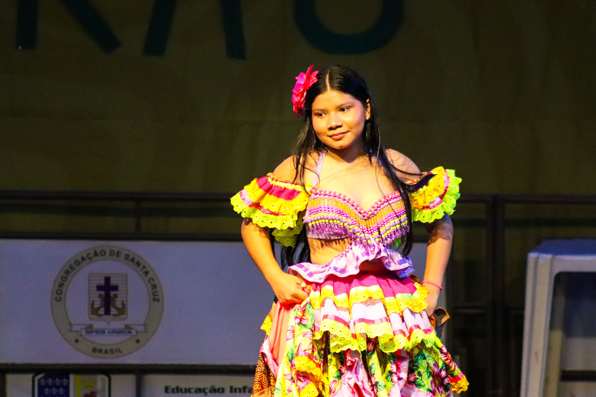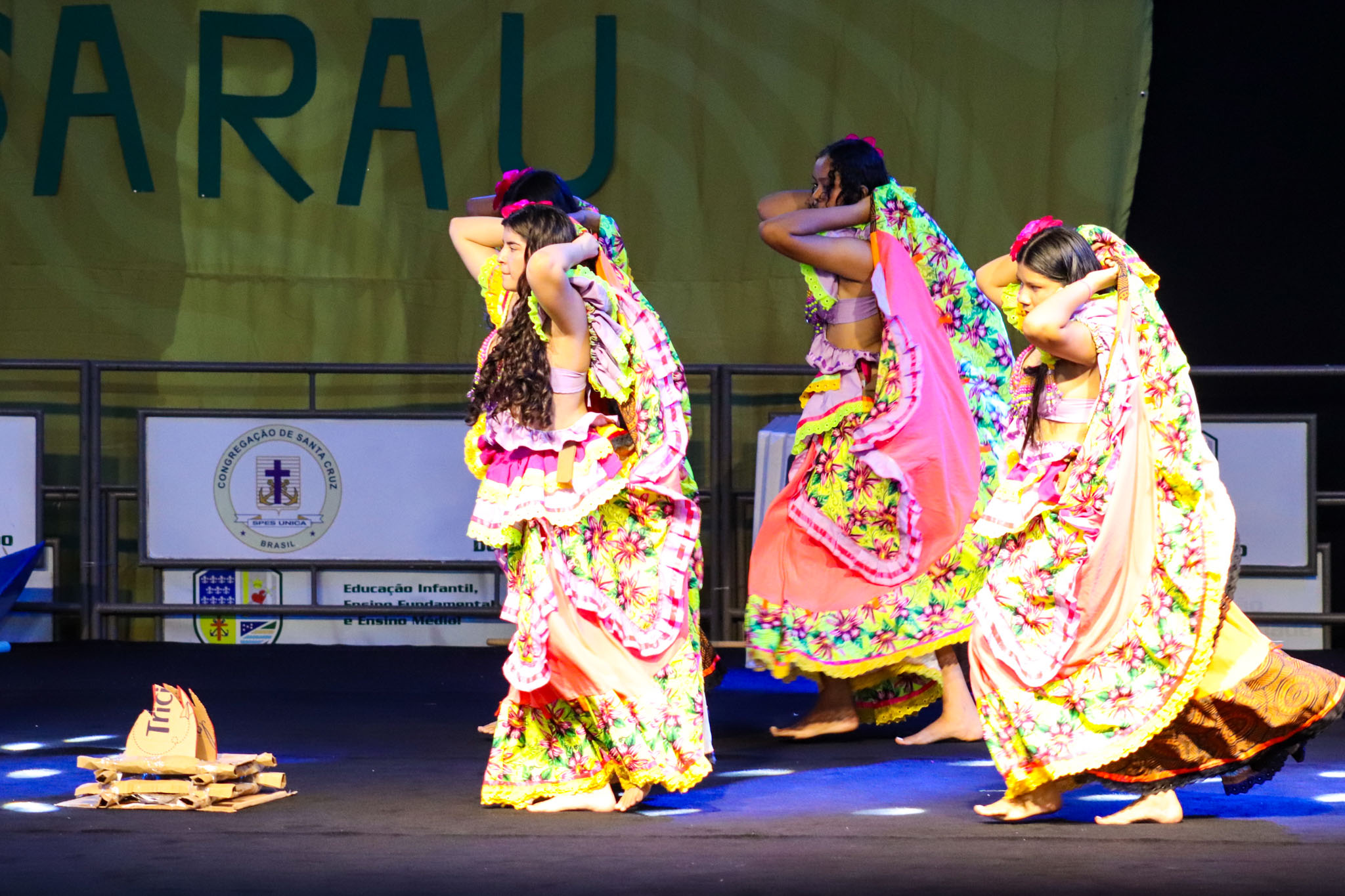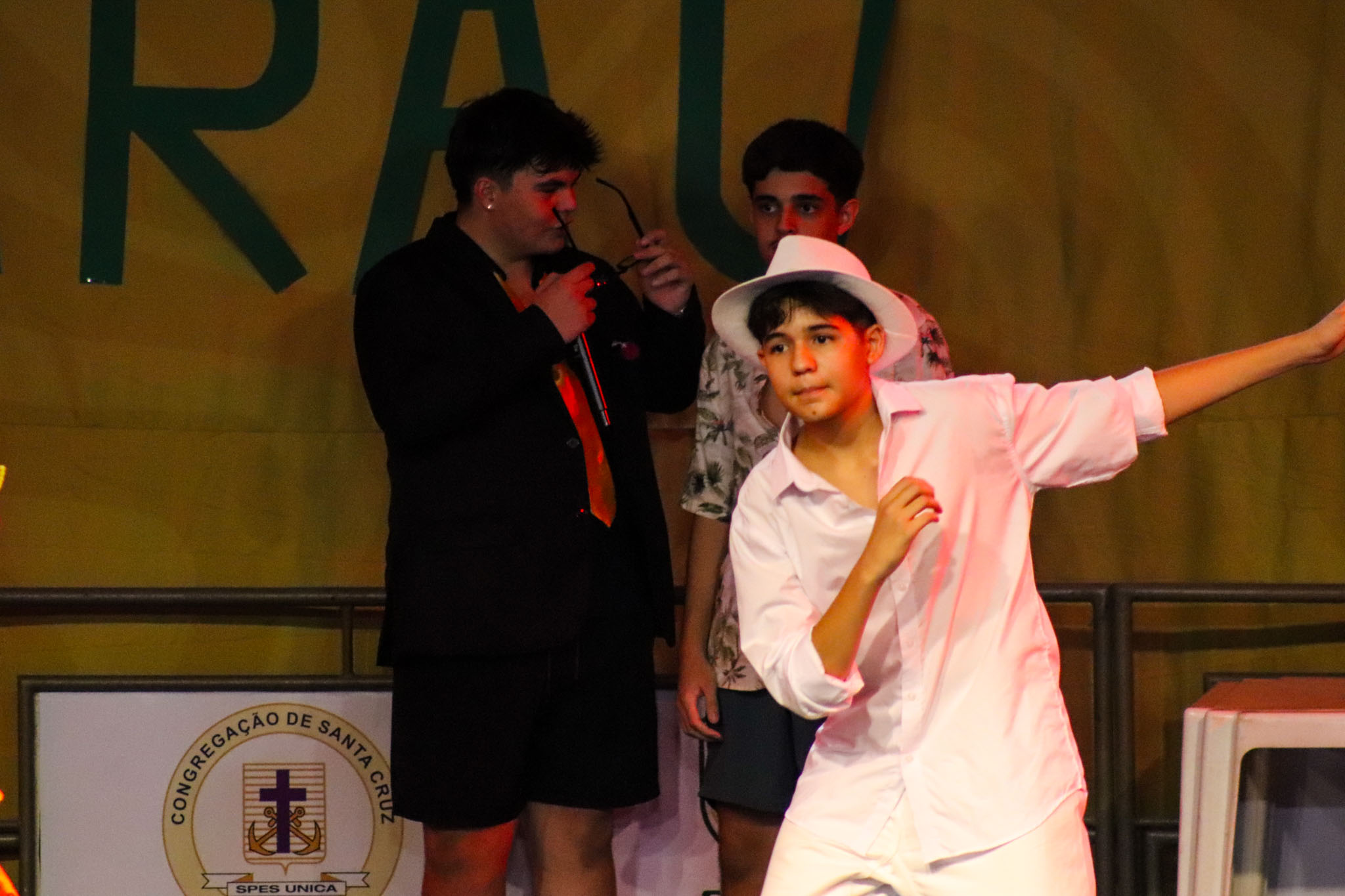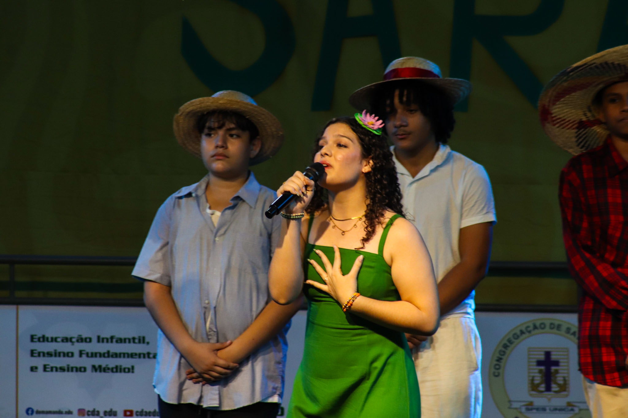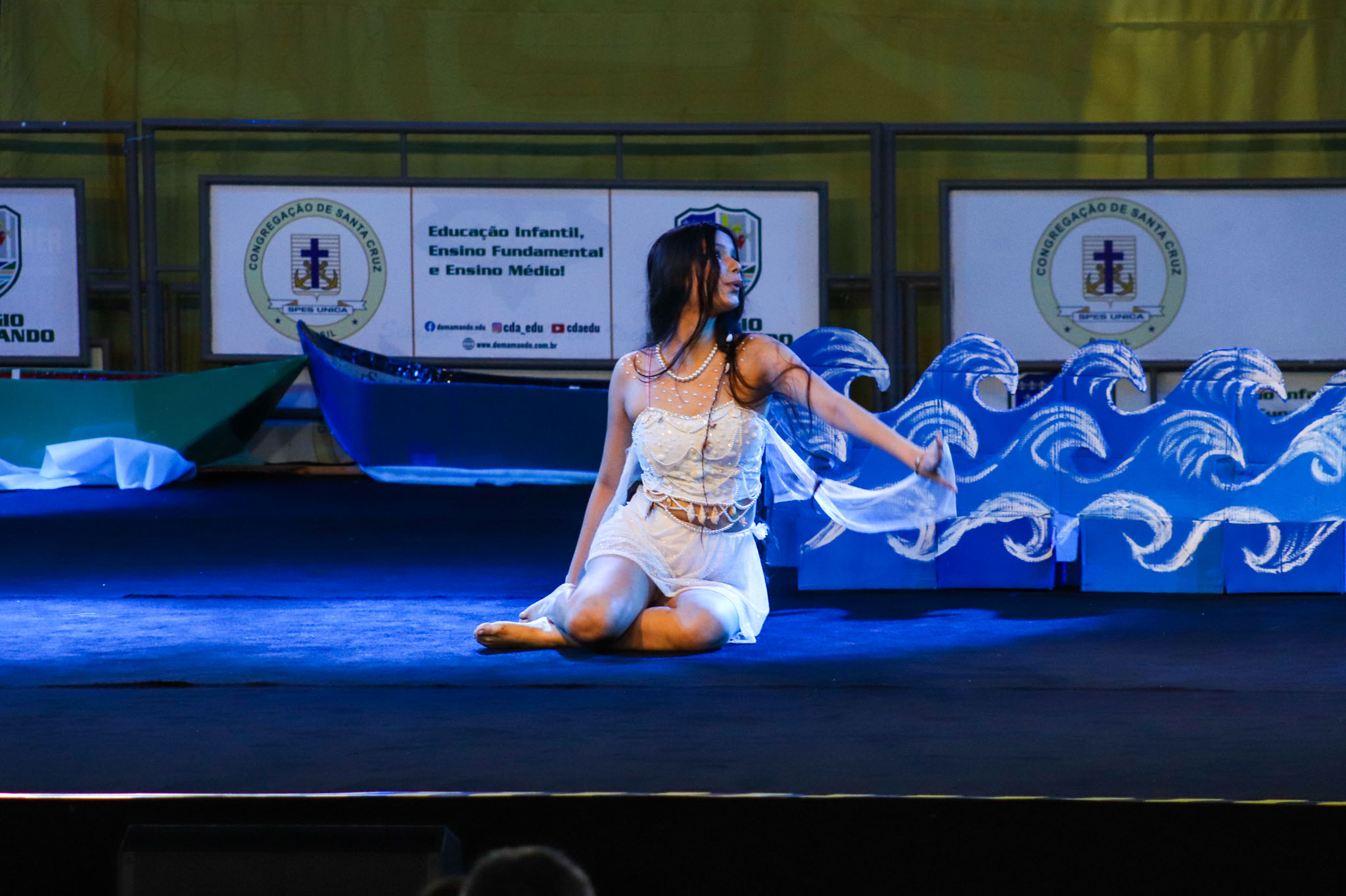 Neste ano, os alunos apresentaram uma adaptação do teatro “Olho de Boto”, de Felisbelo Jaguar Sussuarana, obra regional que destaca elementos da identidade amazônica e que ganhou nova vida no palco através da interpretação dos estudantes. A apresentação reuniu recursos como declamação, narrativa, música e encenação, permitindo que os participantes explorassem diferentes linguagens artísticas.