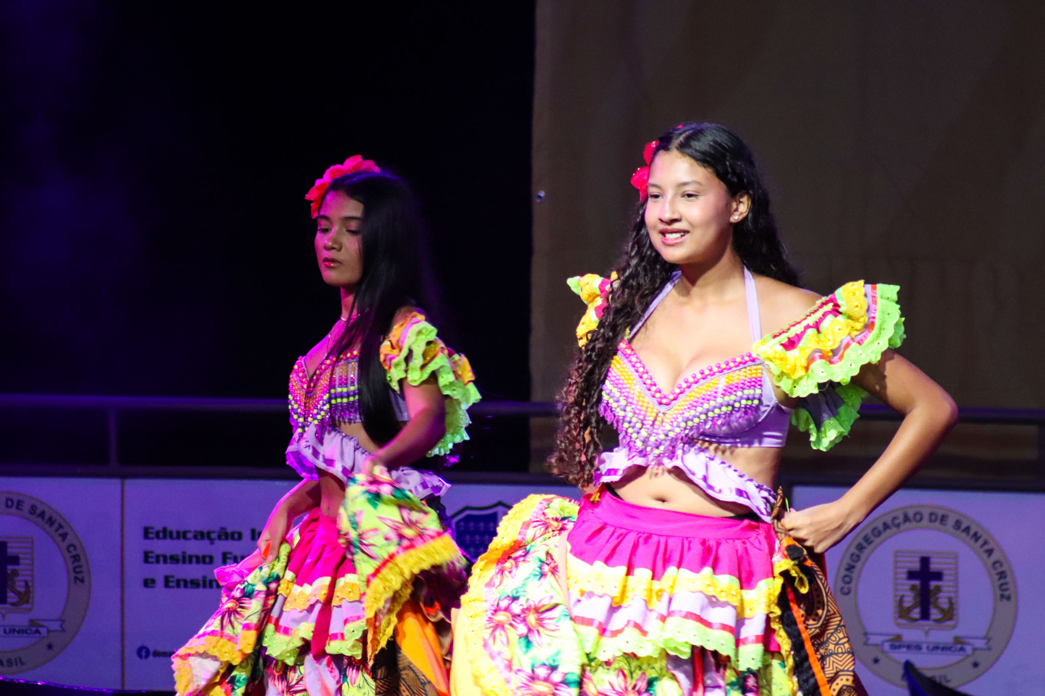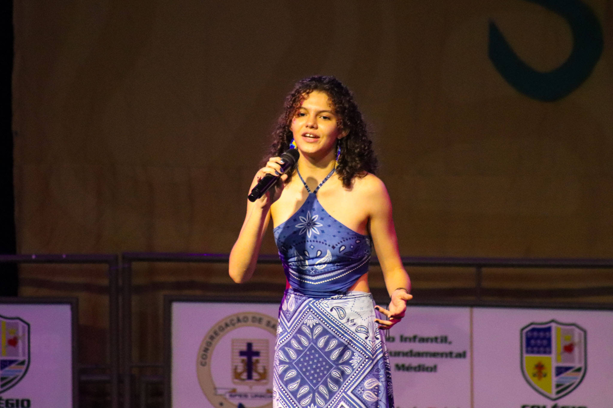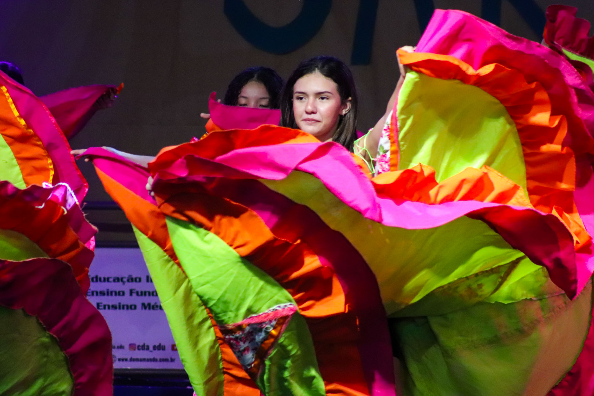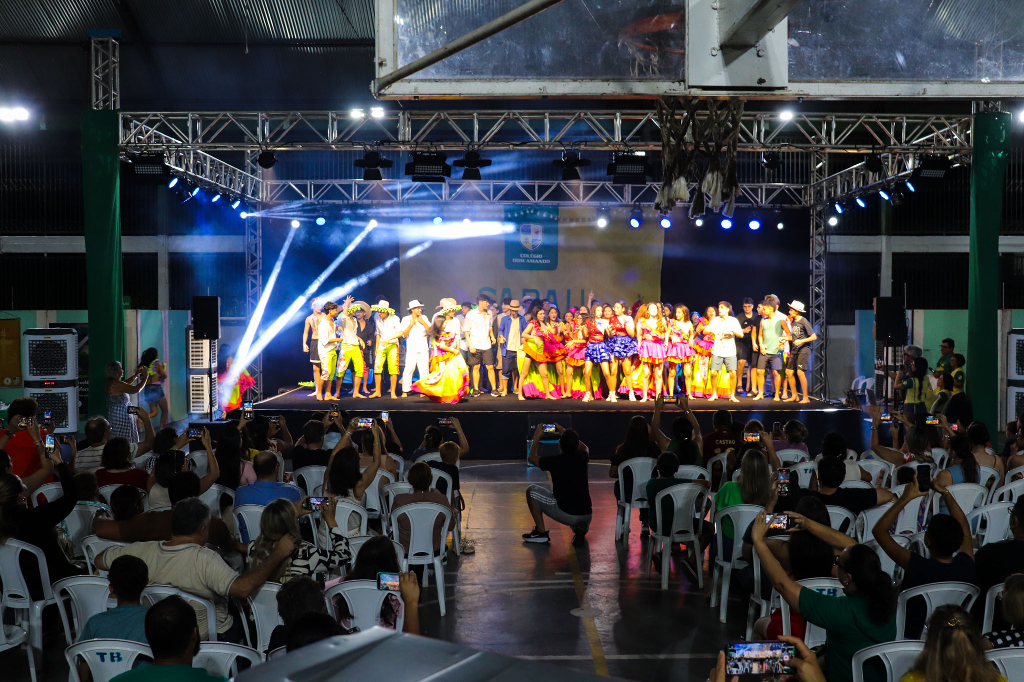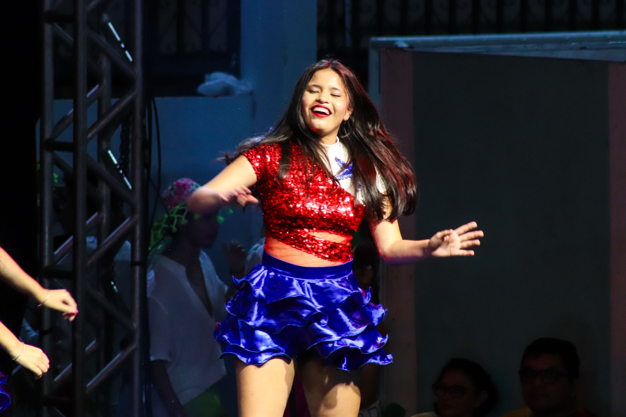 Neste ano, os alunos apresentaram uma adaptação do teatro “Olho de Boto”, de Felisbelo Jaguar Sussuarana, obra regional que destaca elementos da identidade amazônica e que ganhou nova vida no palco através da interpretação dos estudantes. A apresentação reuniu recursos como declamação, narrativa, música e encenação, permitindo que os participantes explorassem diferentes linguagens artísticas.
