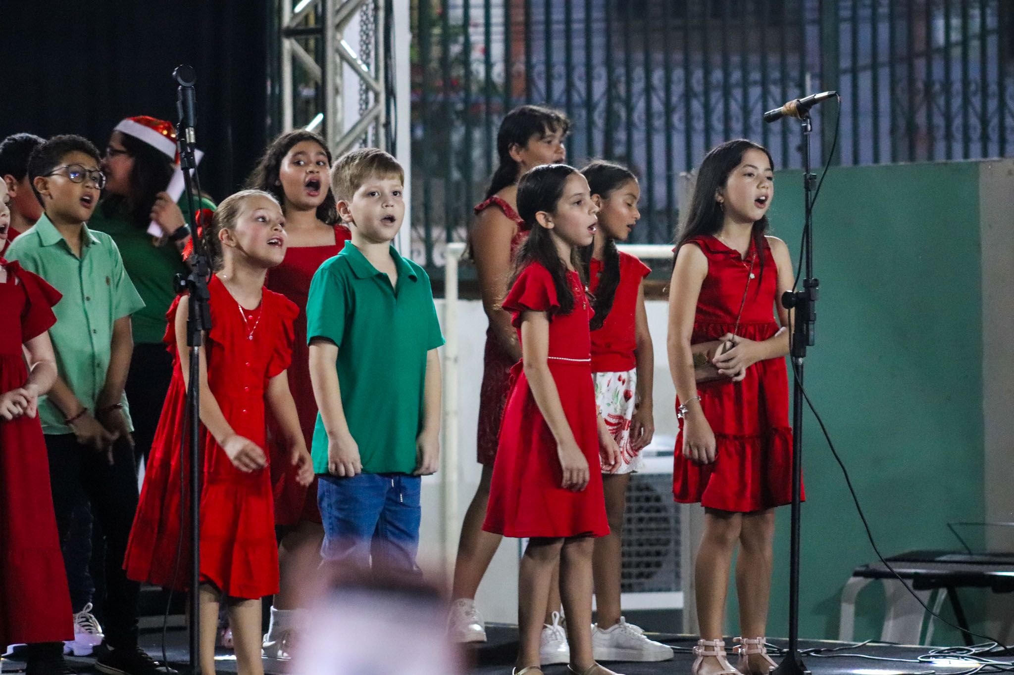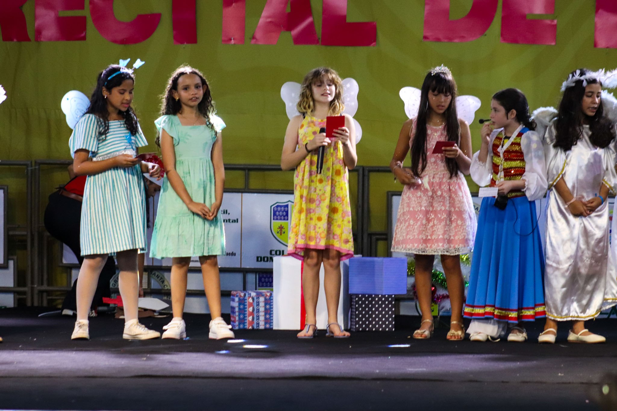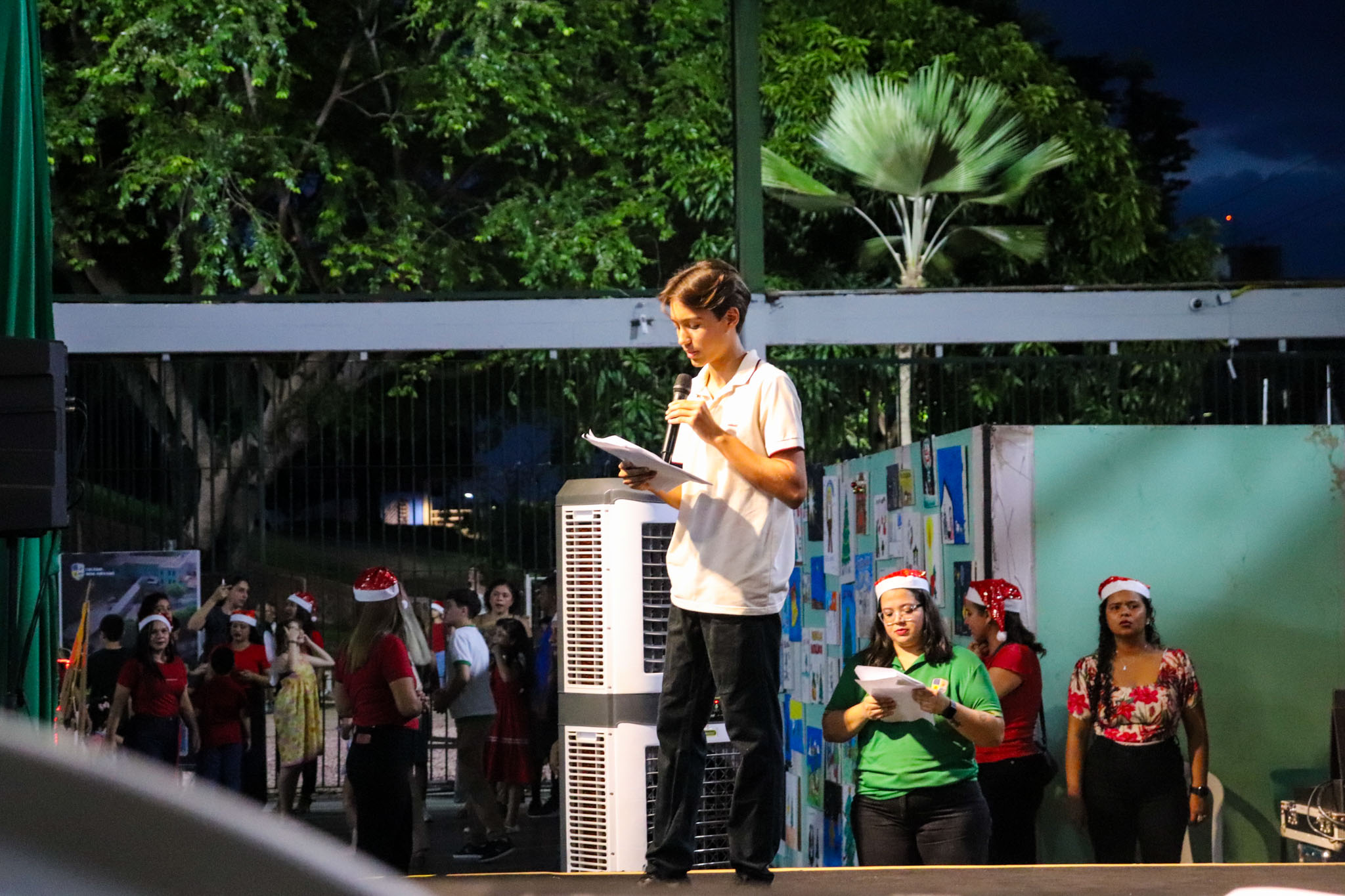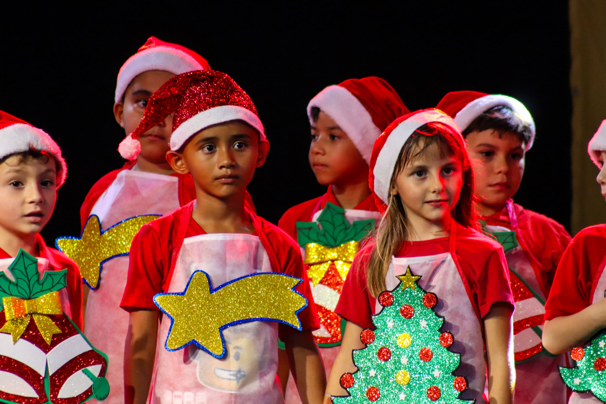 Nesta edição, os alunos do Ensino Fundamental II, integrantes do Programa Bilíngue, apresentaram uma belíssima adaptação criada pelos próprios estudantes do 9º ano, do clássico conto de Charles Dickens, “A Christmas Carol”. A história acompanha um homem ranzinza e avarento que, ao ser visitado pelos Fantasmas do Natal Passado, Presente e Futuro, redescobre a alegria, a generosidade e o verdadeiro espírito natalino.