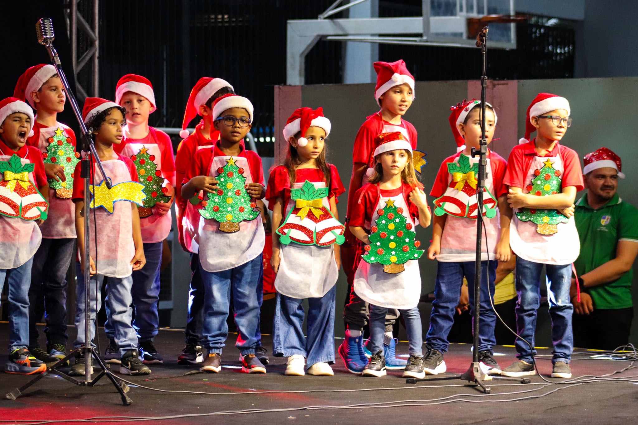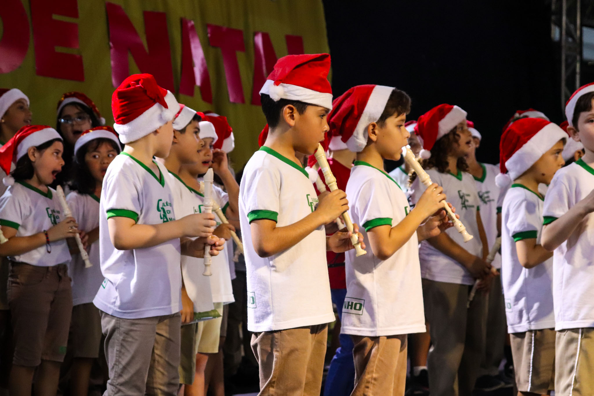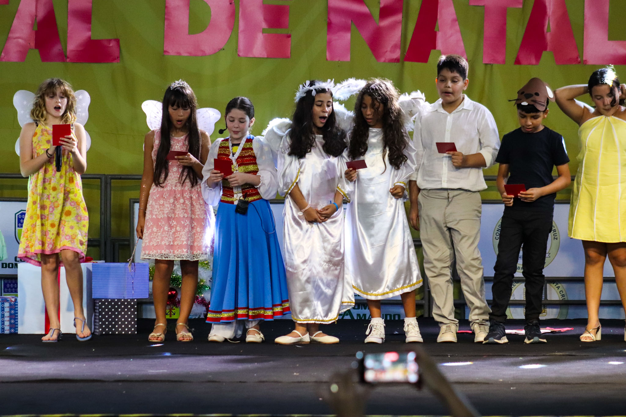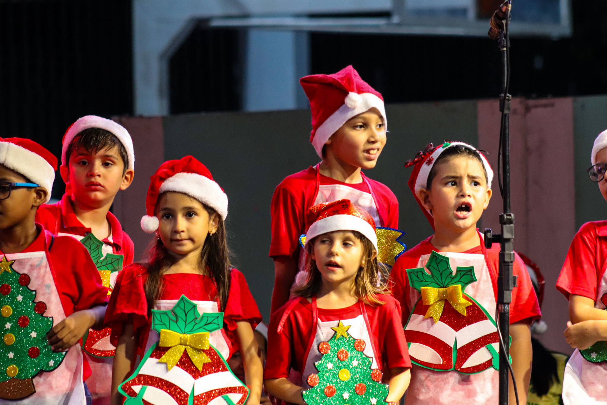 Nesta edição, os alunos do Ensino Fundamental II, integrantes do Programa Bilíngue, apresentaram uma belíssima adaptação criada pelos próprios estudantes do 9º ano, do clássico conto de Charles Dickens, “A Christmas Carol”. A história acompanha um homem ranzinza e avarento que, ao ser visitado pelos Fantasmas do Natal Passado, Presente e Futuro, redescobre a alegria, a generosidade e o verdadeiro espírito natalino.