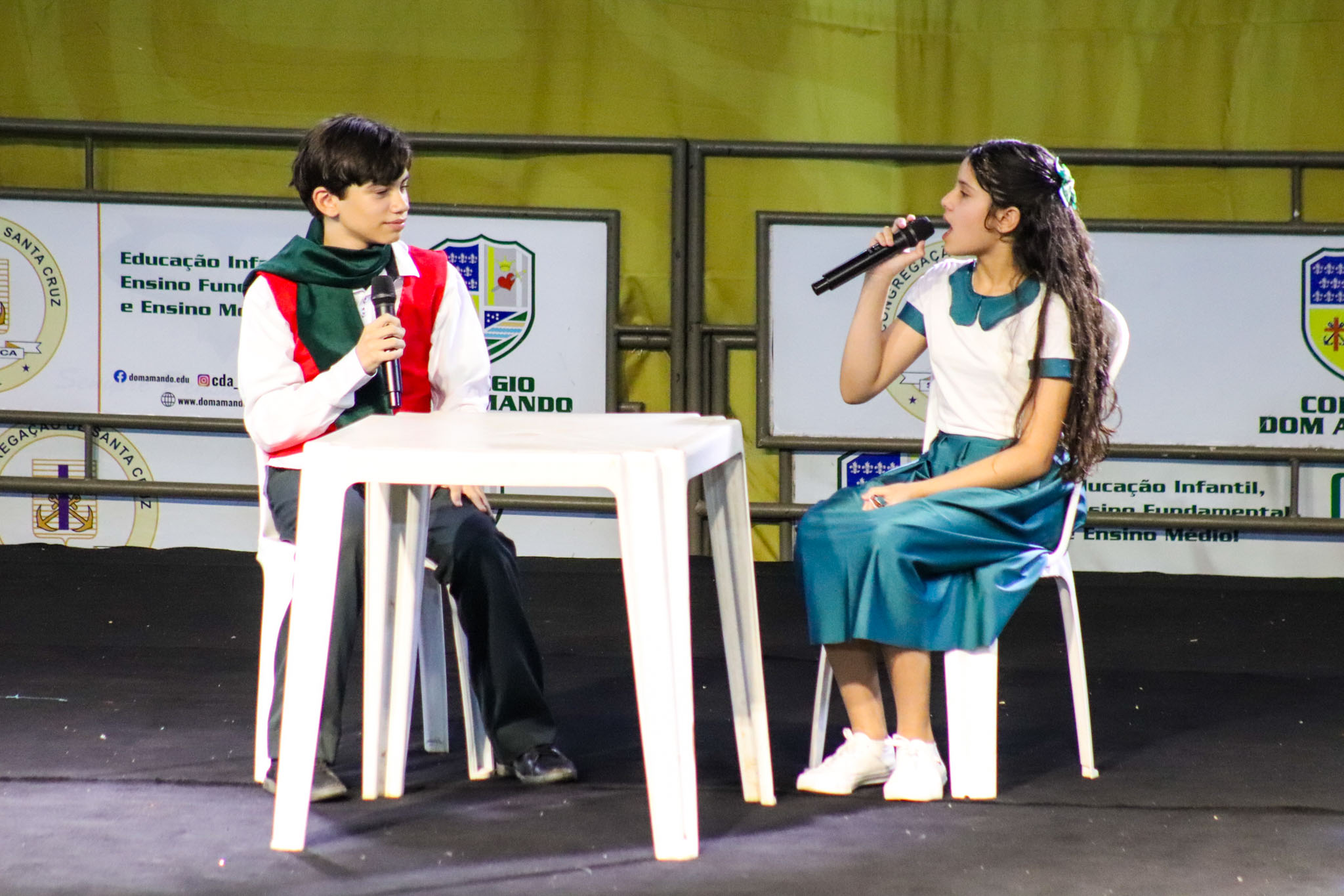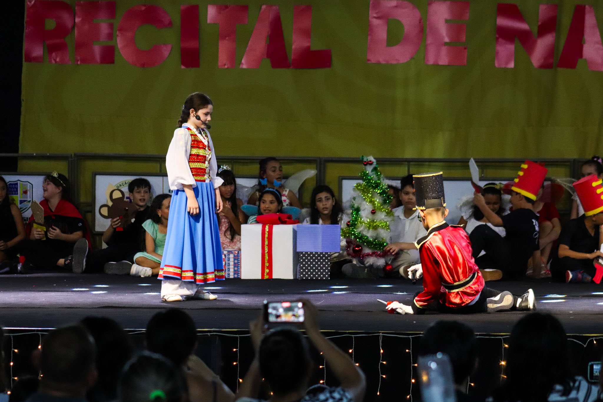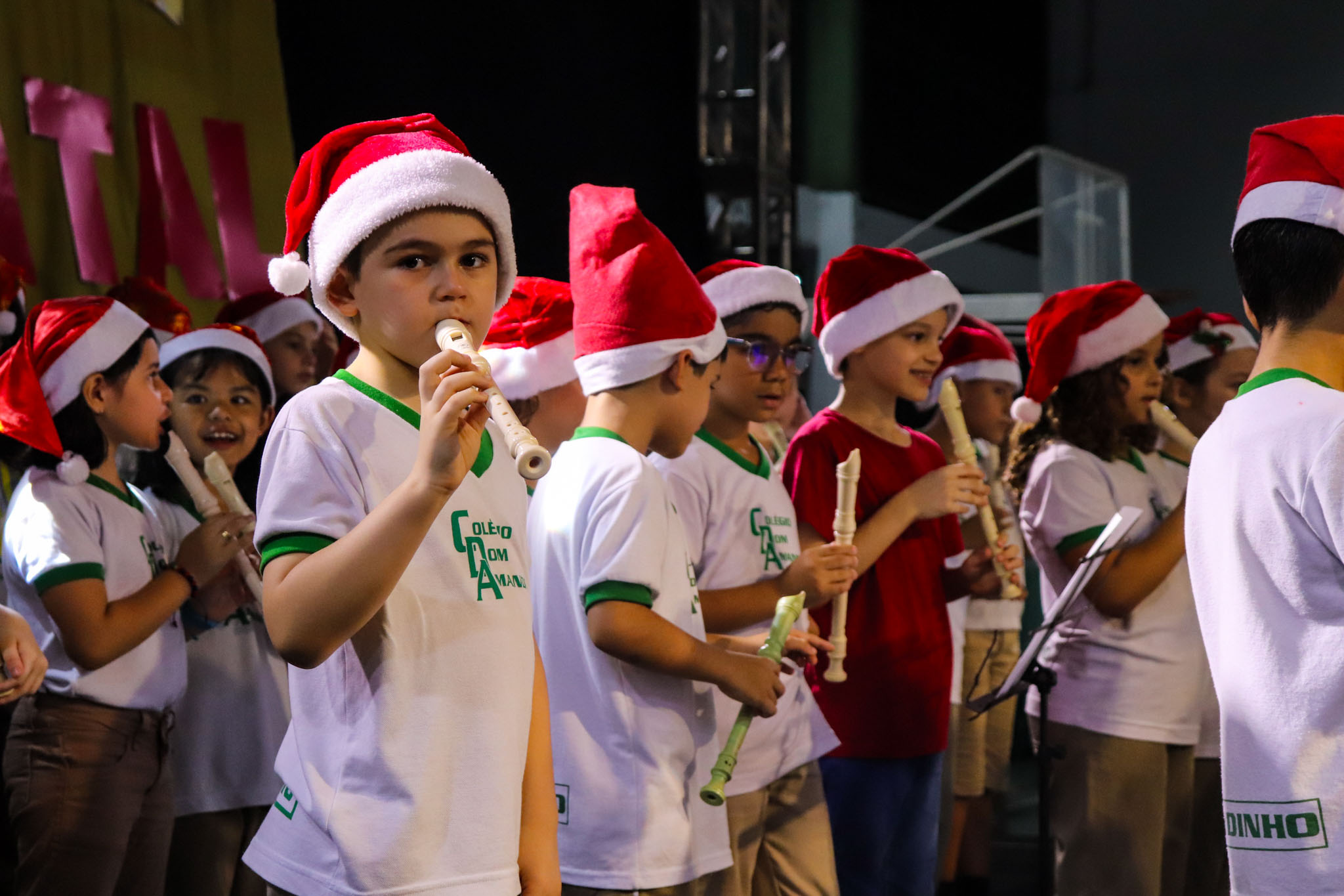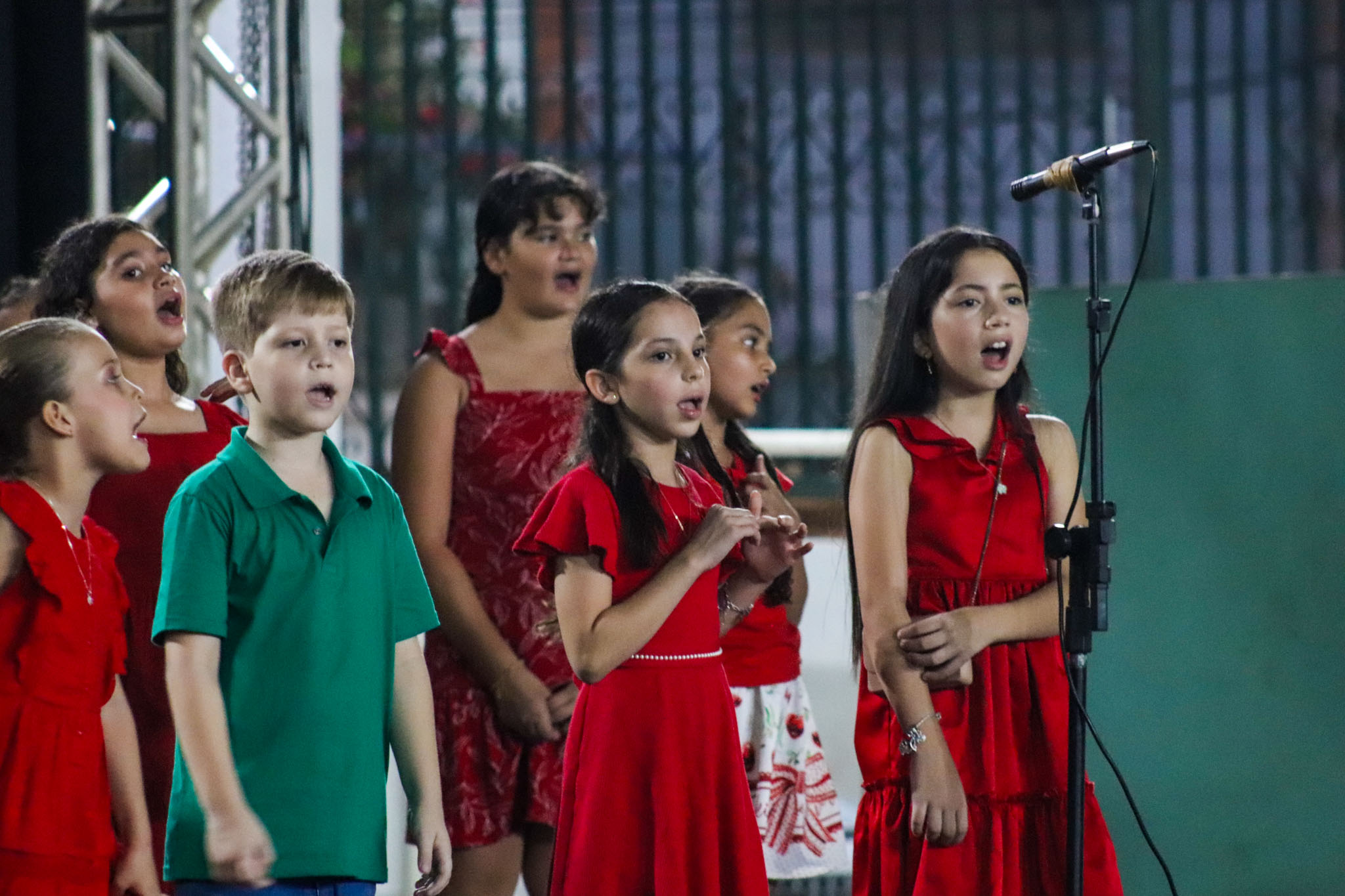 Nesta edição, os alunos do Ensino Fundamental II, integrantes do Programa Bilíngue, apresentaram uma belíssima adaptação criada pelos próprios estudantes do 9º ano, do clássico conto de Charles Dickens, “A Christmas Carol”. A história acompanha um homem ranzinza e avarento que, ao ser visitado pelos Fantasmas do Natal Passado, Presente e Futuro, redescobre a alegria, a generosidade e o verdadeiro espírito natalino.