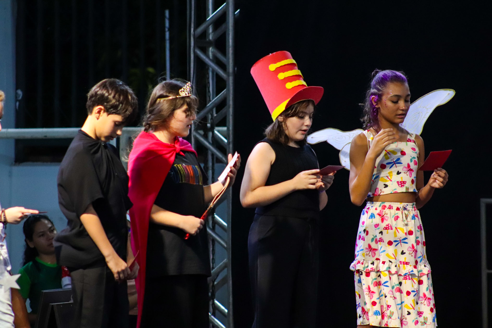 A união entre teatro, música e canto proporcionou uma noite inesquecível para as famílias, que prestigiaram com entusiasmo o talento e dedicação dos nossos estudantes.