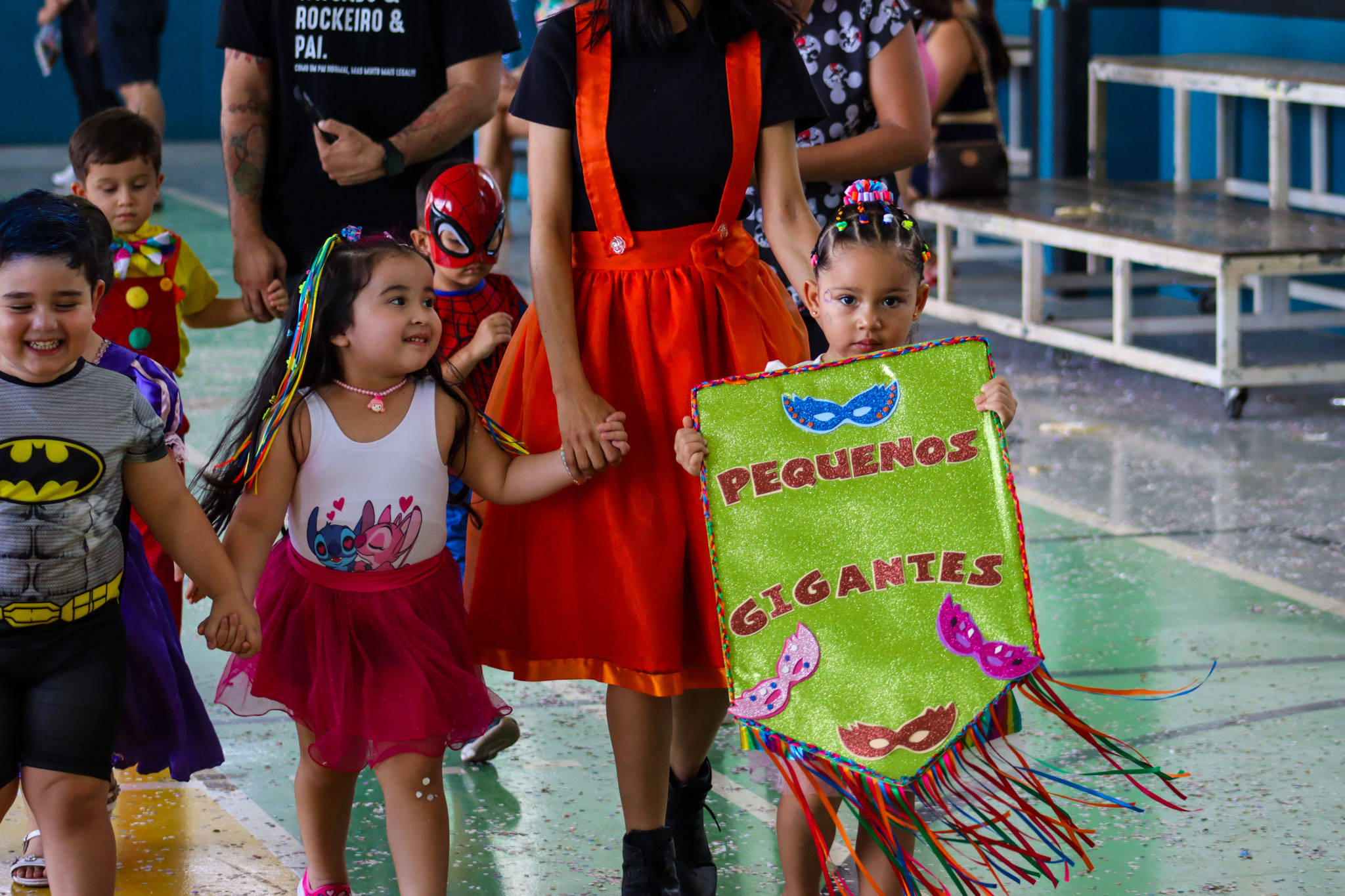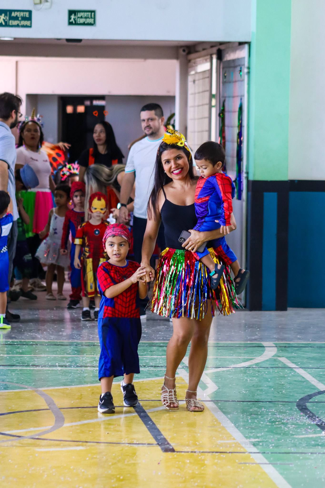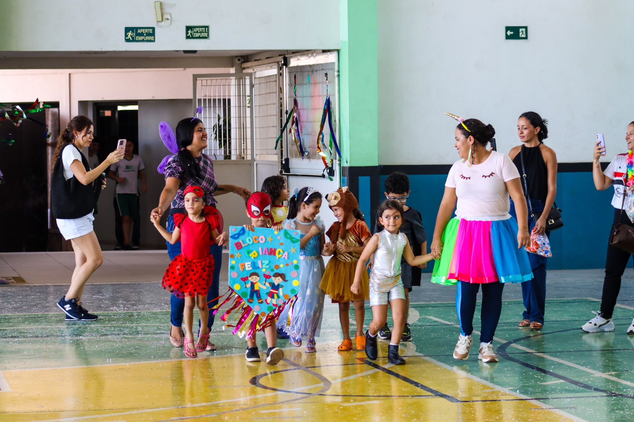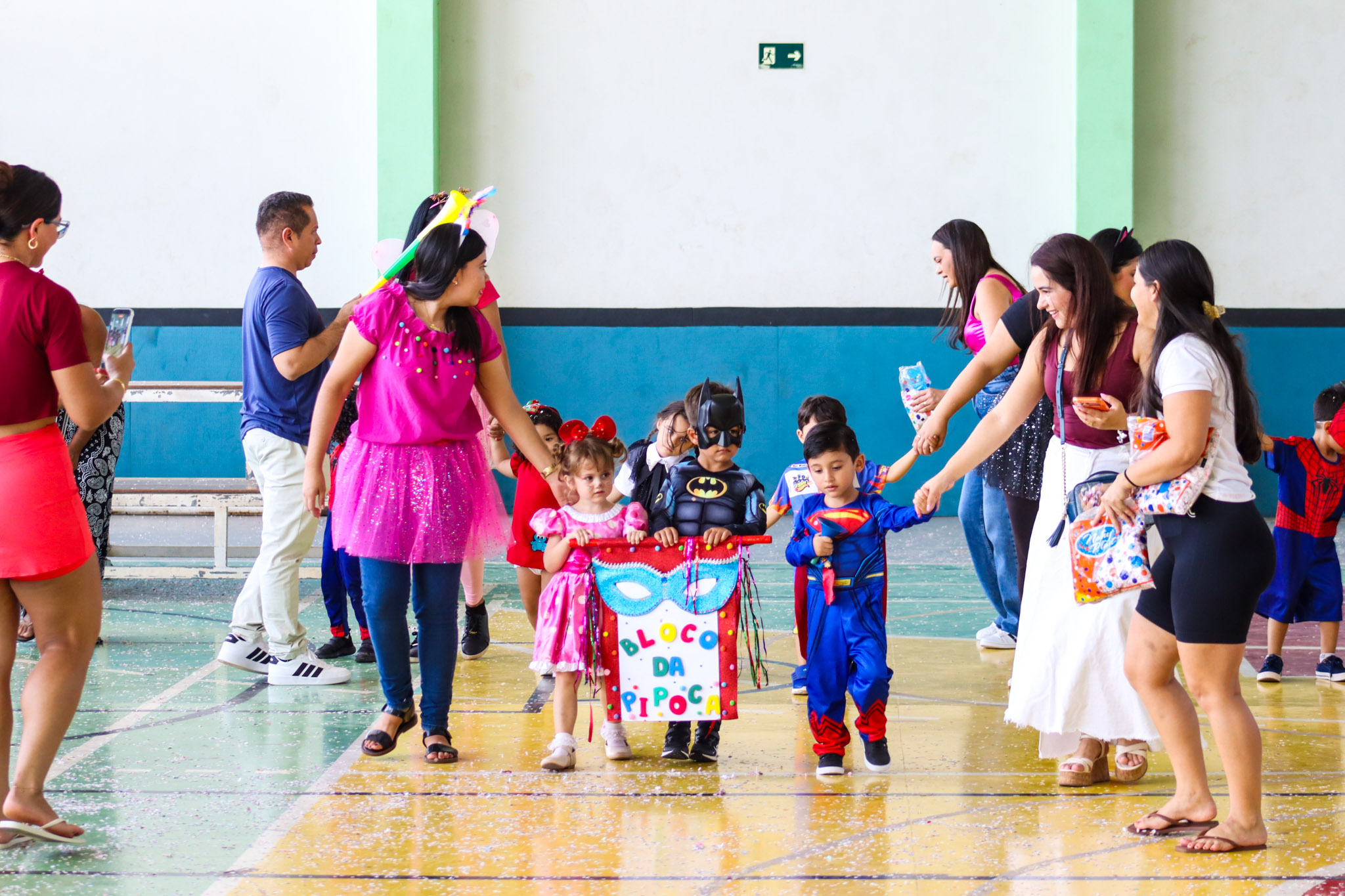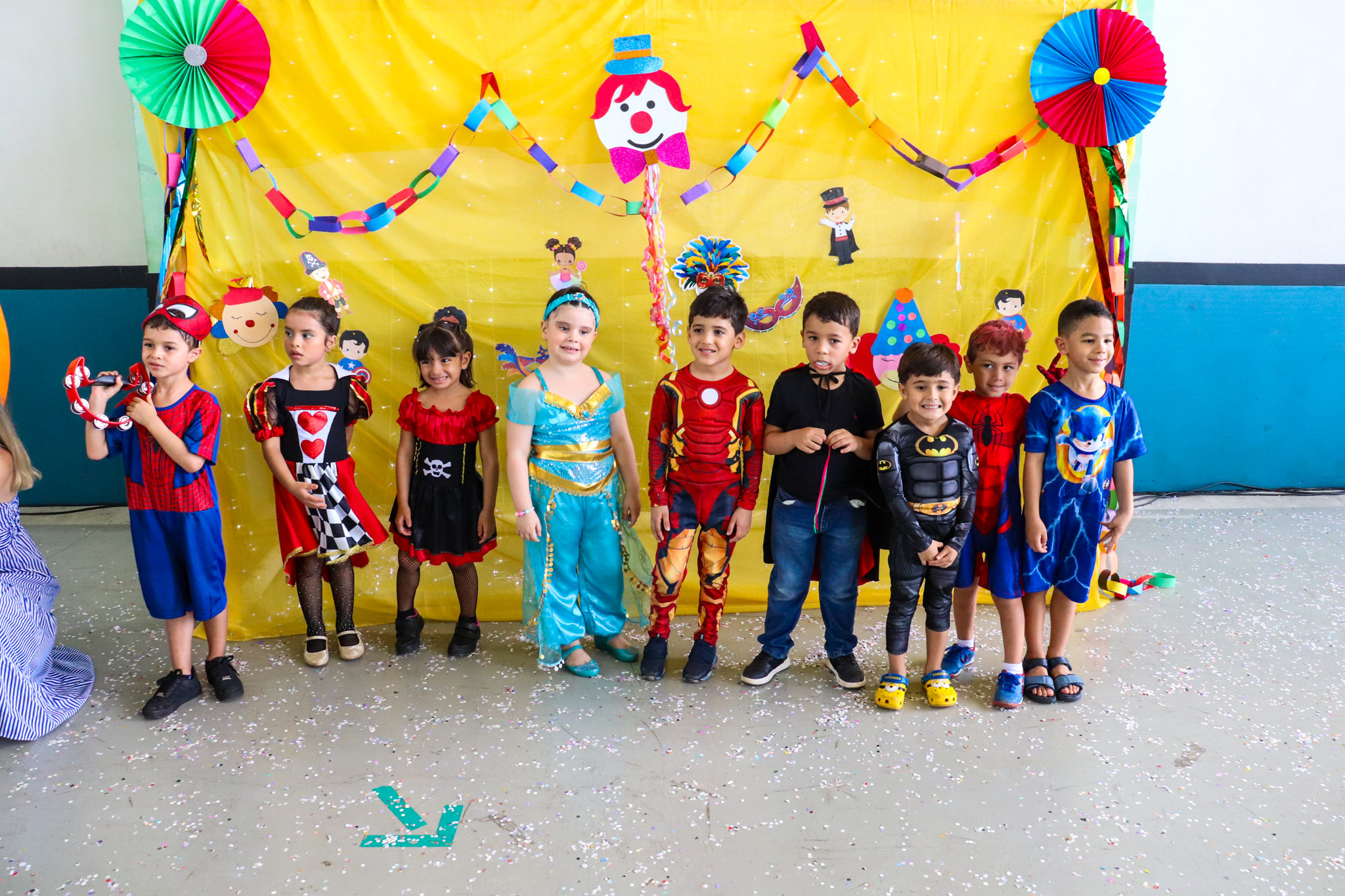 Na Educação Infantil, o CarnaKids animou alunos e famílias com uma programação repleta de alegria. Houve desfile de fantasias, danças carnavalescas, trenzinho e muita participação dos familiares, que também entraram no clima e prestigiaram o evento com criatividade.
