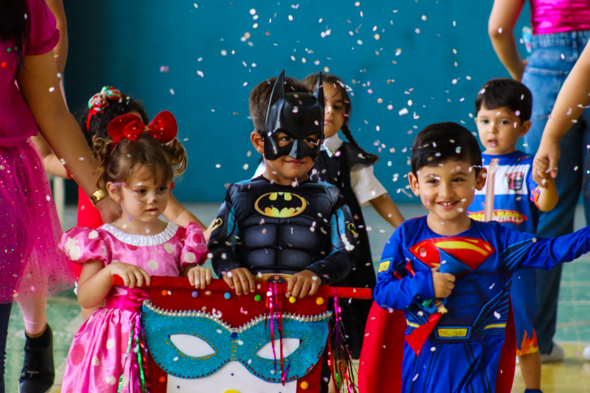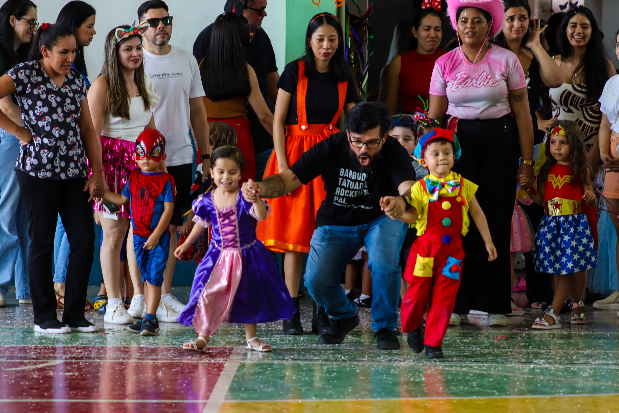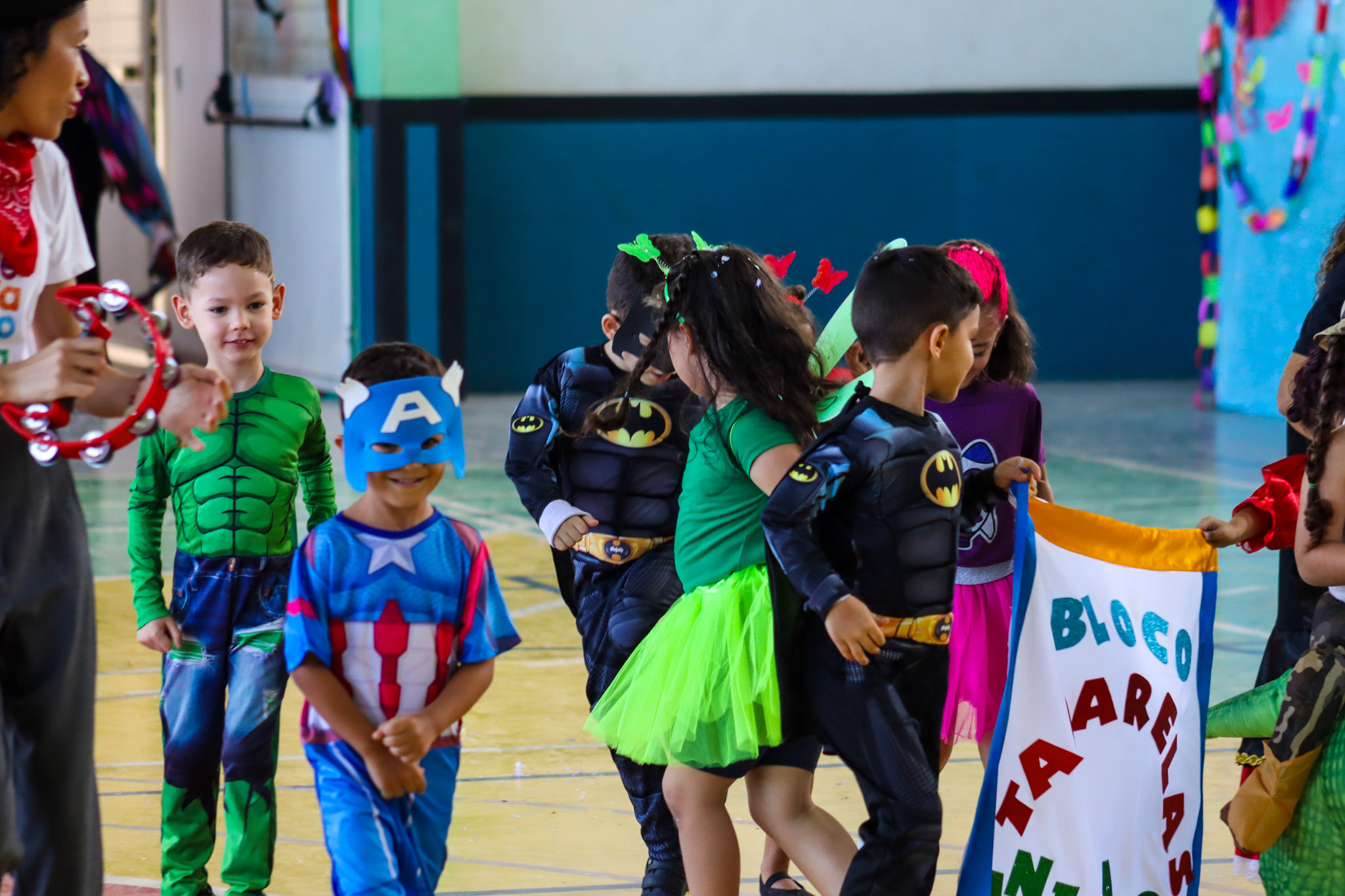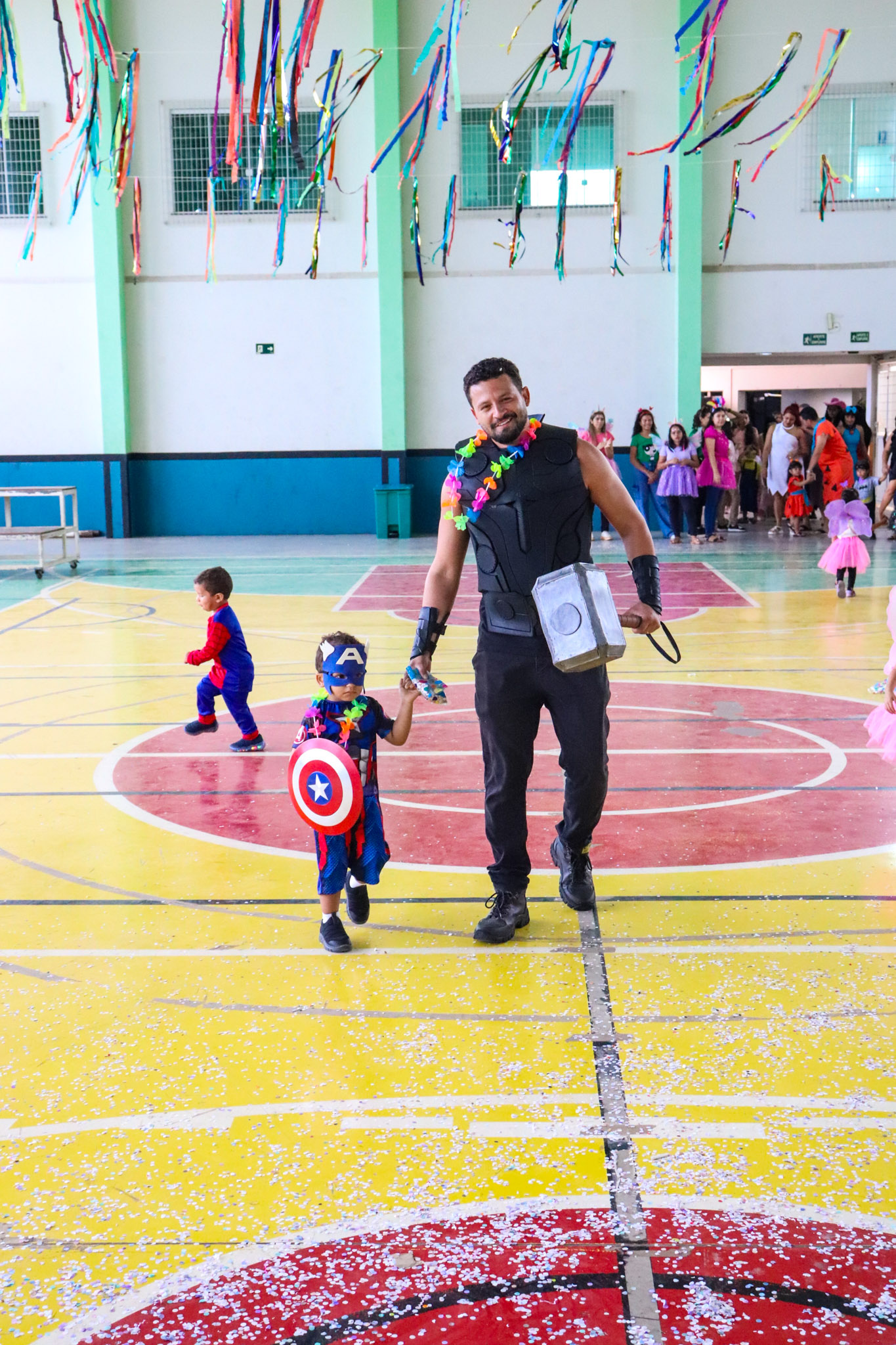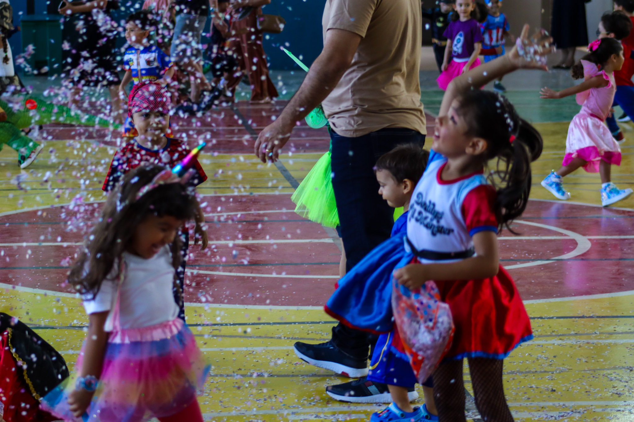 Na Educação Infantil, o CarnaKids animou alunos e famílias com uma programação repleta de alegria. Houve desfile de fantasias, danças carnavalescas, trenzinho e muita participação dos familiares, que também entraram no clima e prestigiaram o evento com criatividade.
