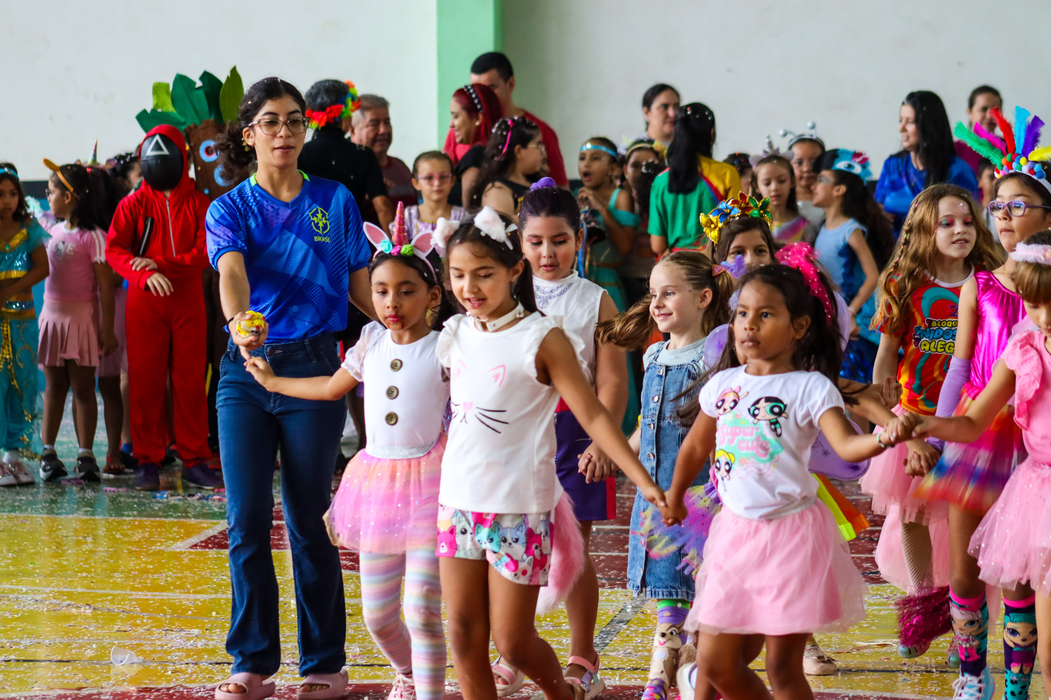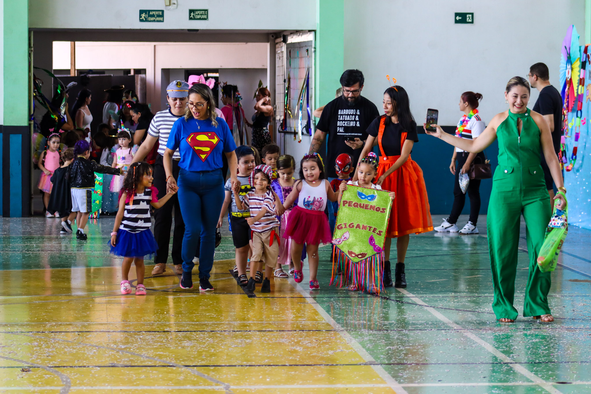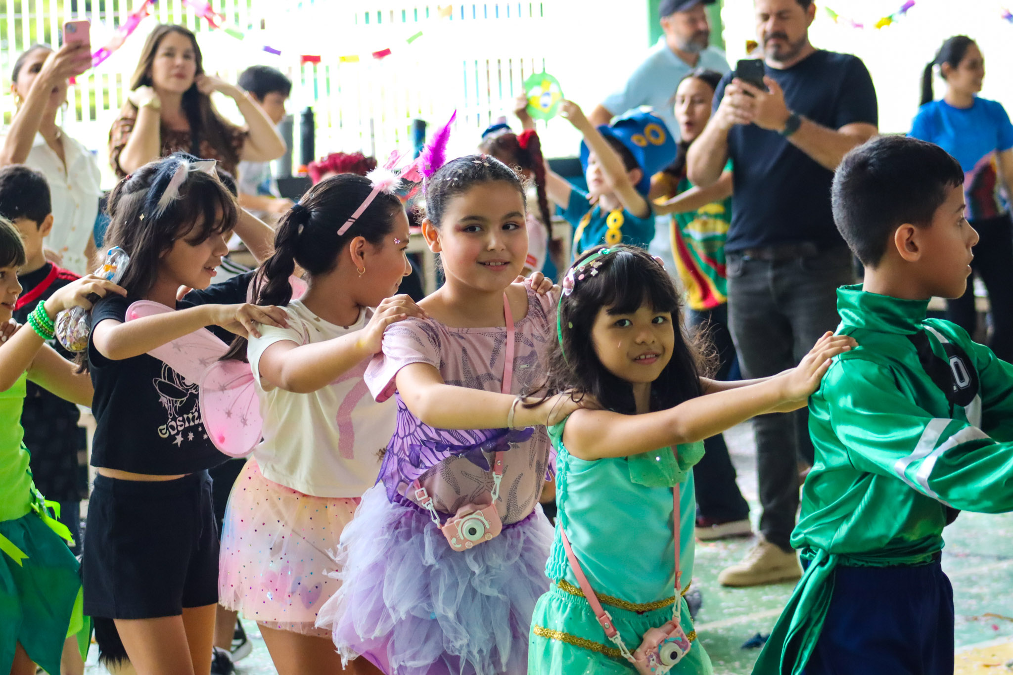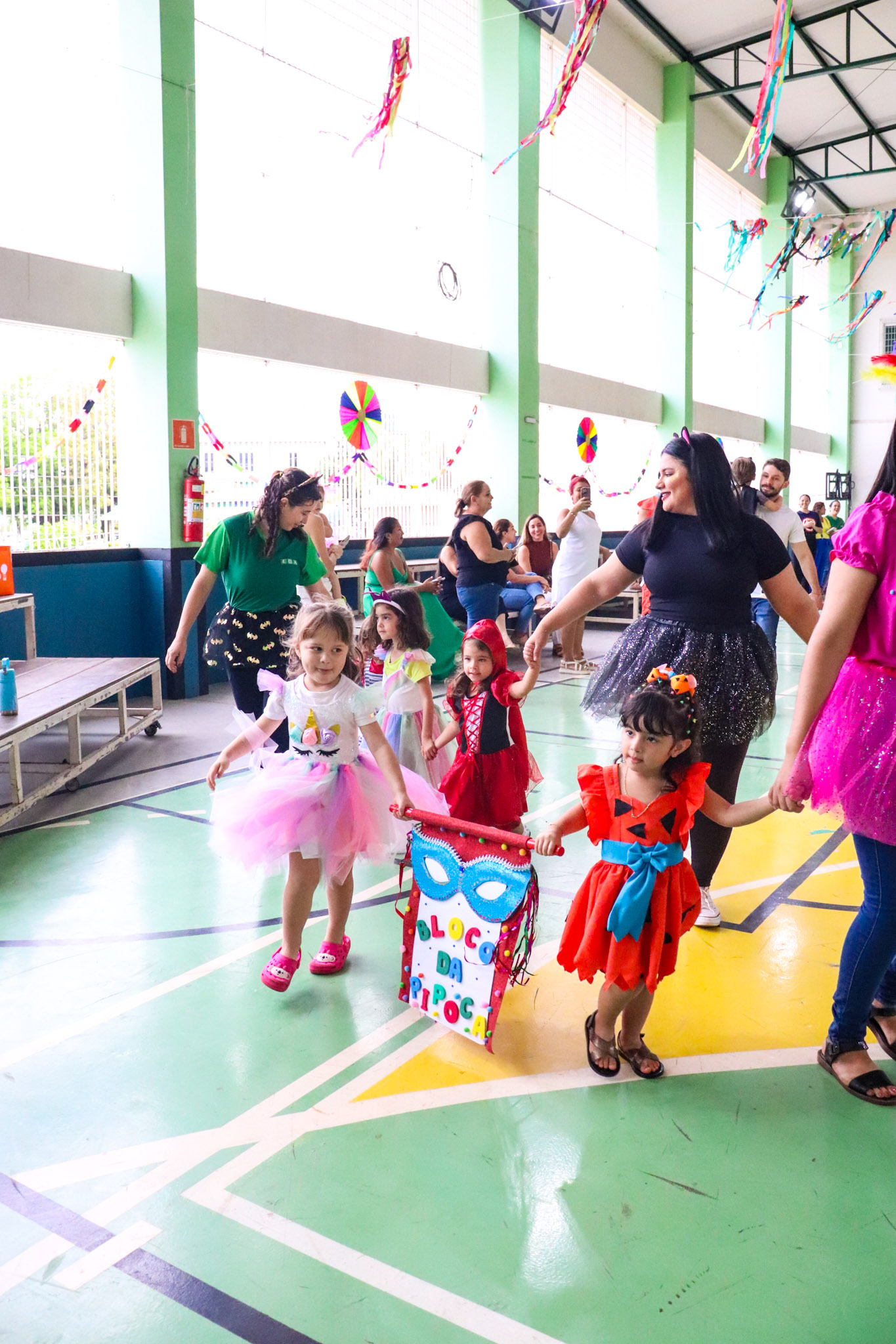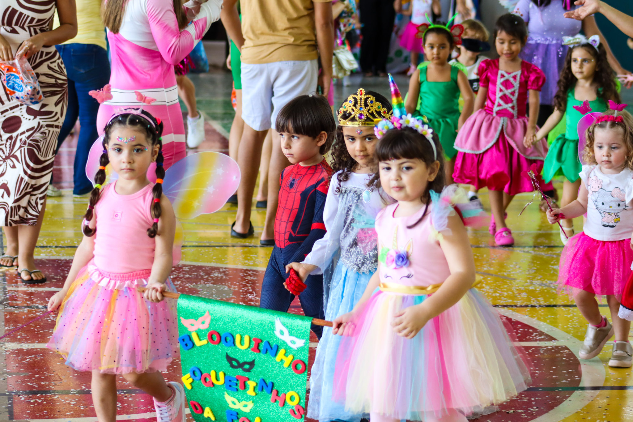 Na Educação Infantil, o CarnaKids animou alunos e famílias com uma programação repleta de alegria. Houve desfile de fantasias, danças carnavalescas, trenzinho e muita participação dos familiares, que também entraram no clima e prestigiaram o evento com criatividade.