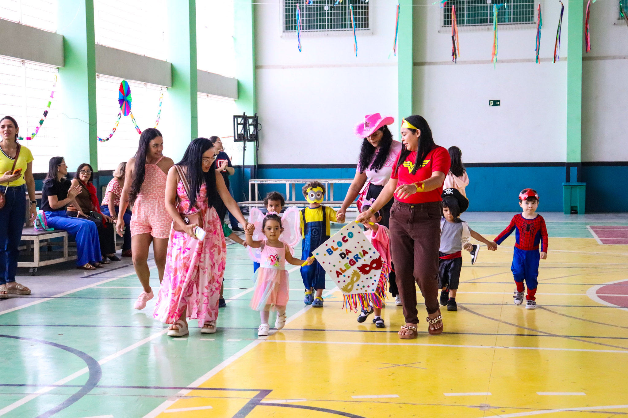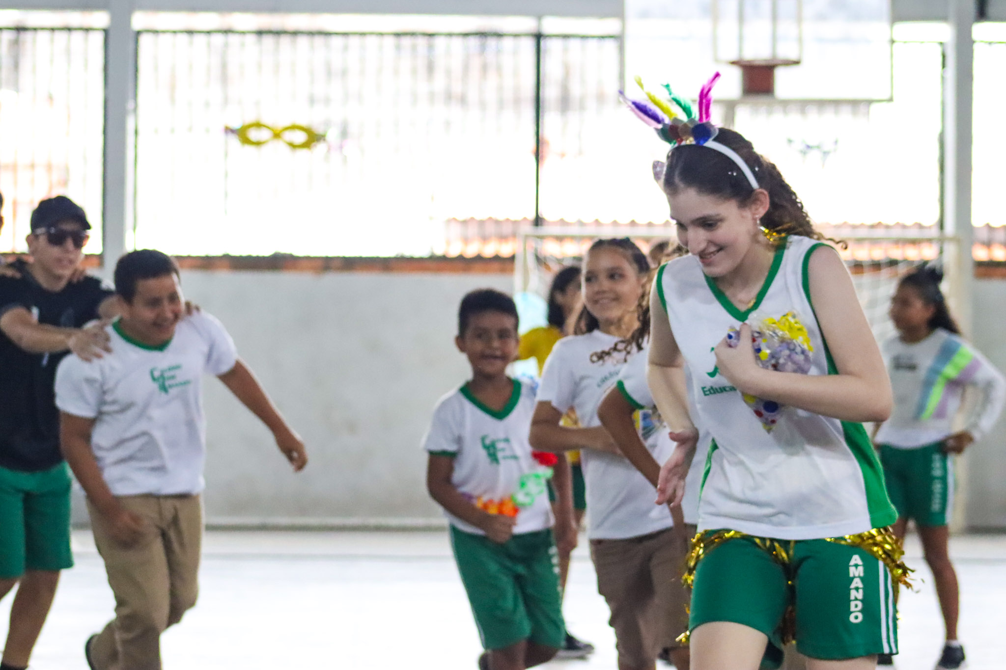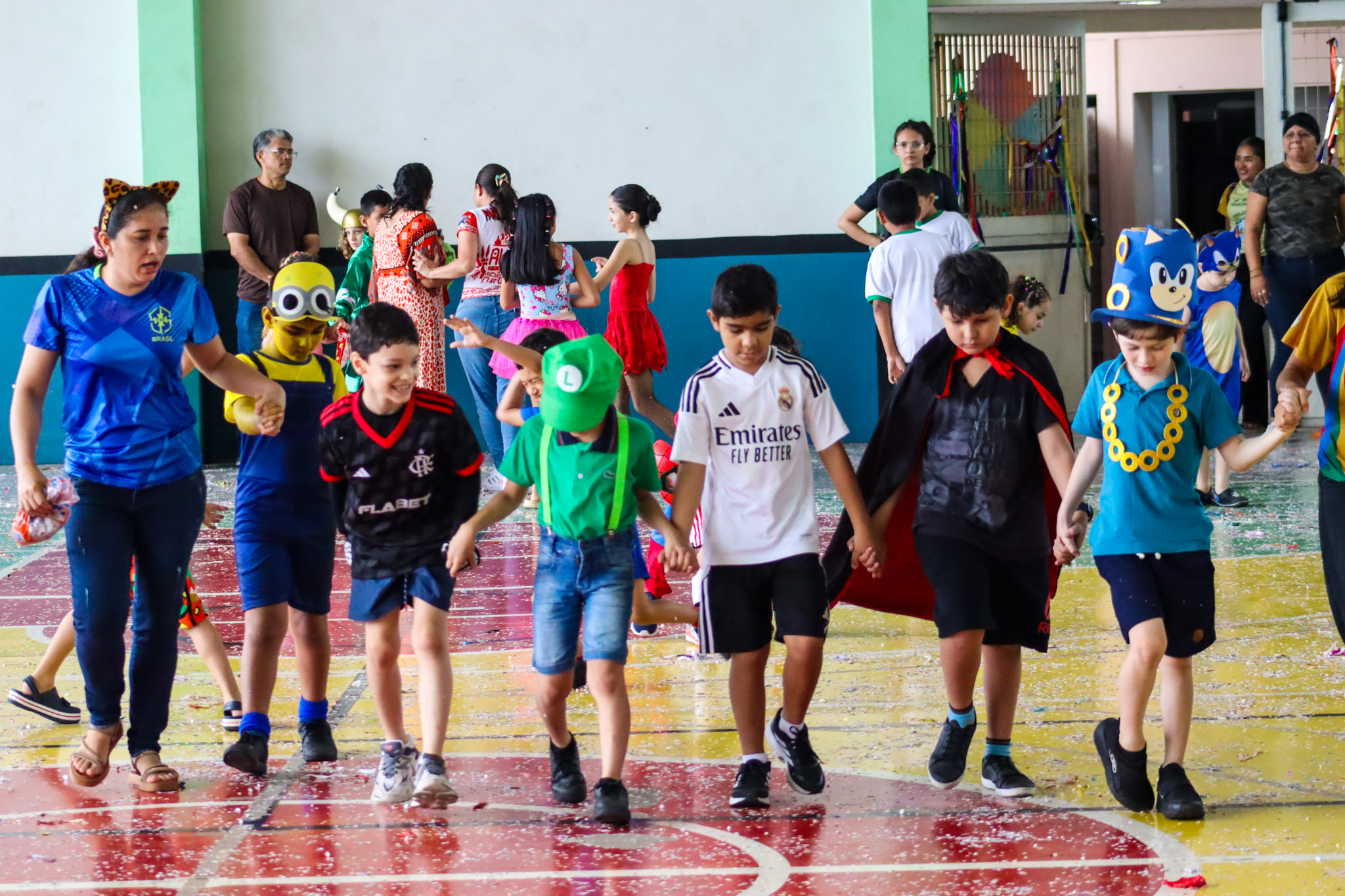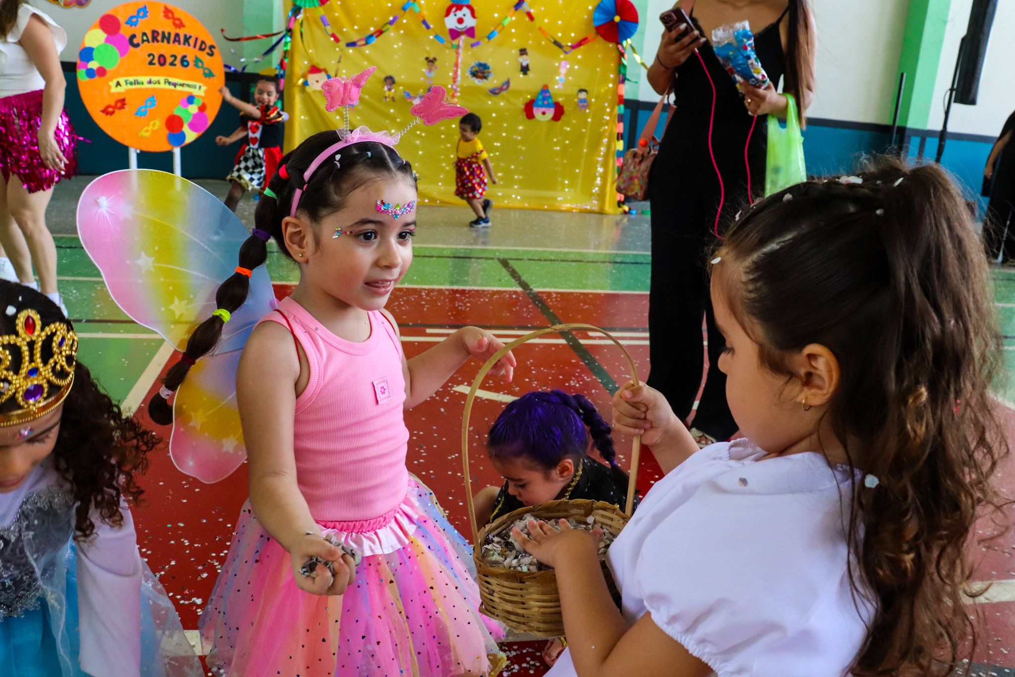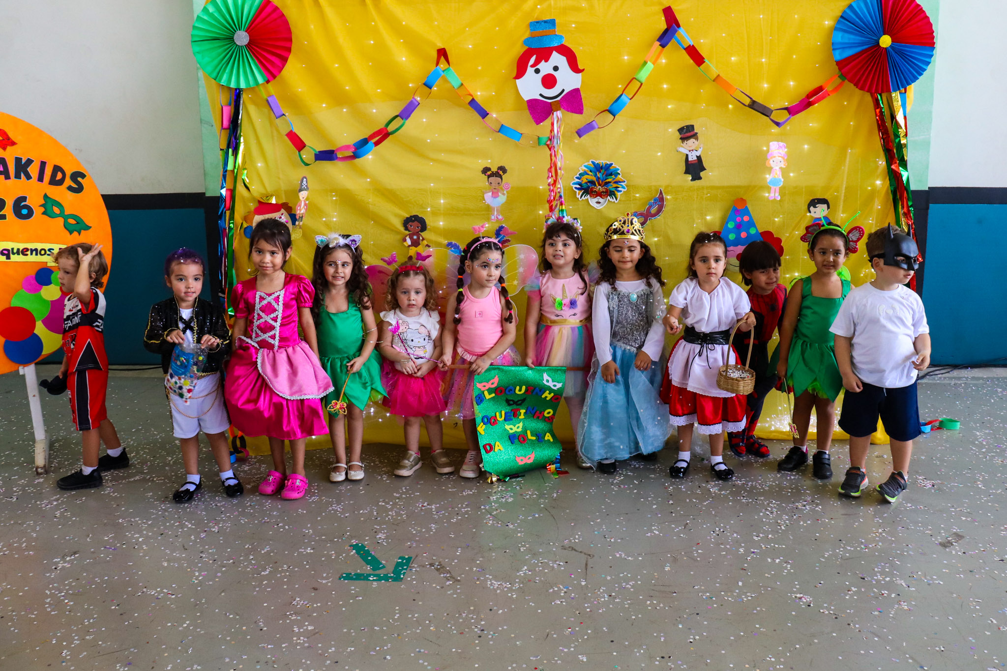 Na Educação Infantil, o CarnaKids animou alunos e famílias com uma programação repleta de alegria. Houve desfile de fantasias, danças carnavalescas, trenzinho e muita participação dos familiares, que também entraram no clima e prestigiaram o evento com criatividade.