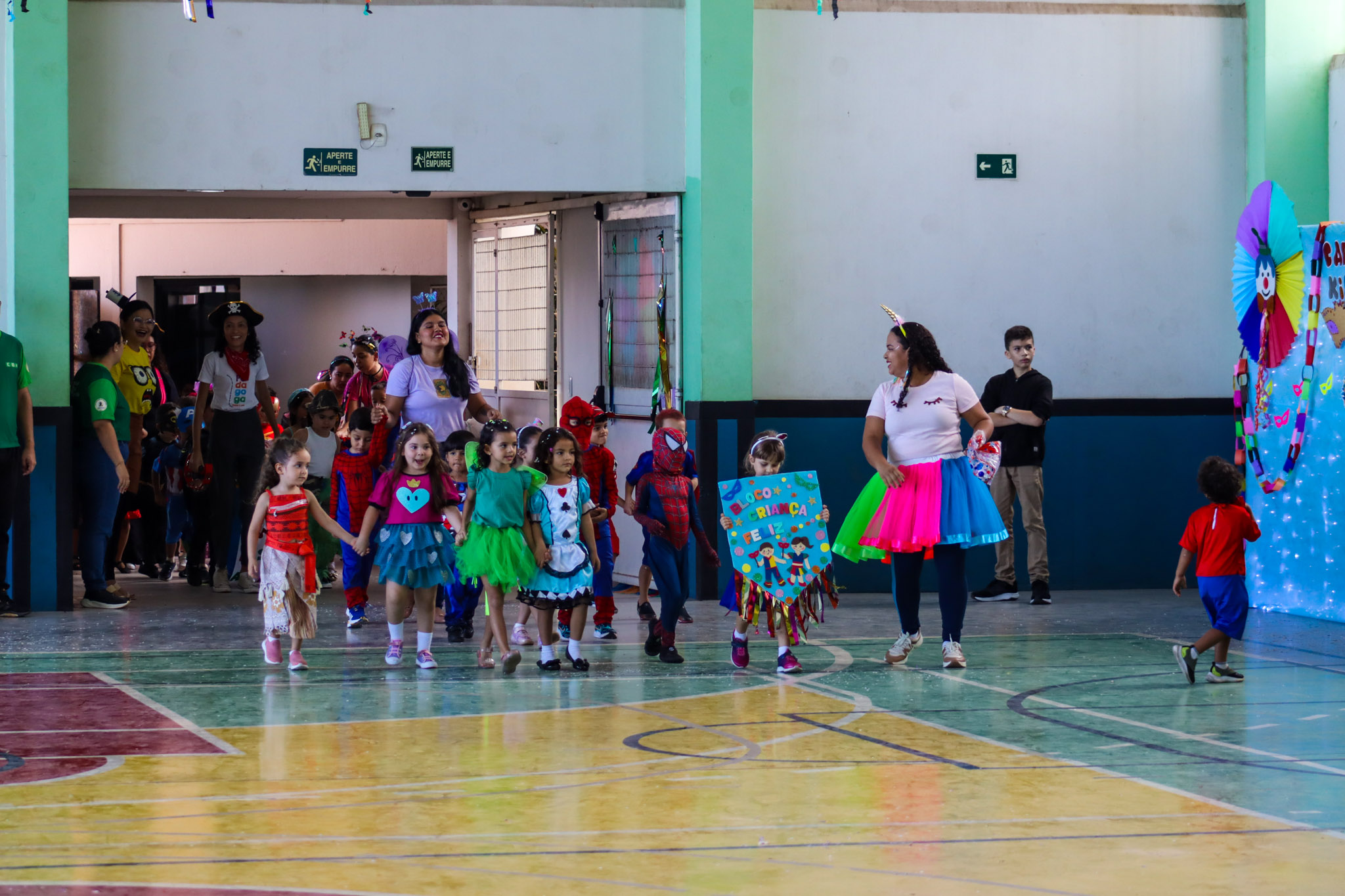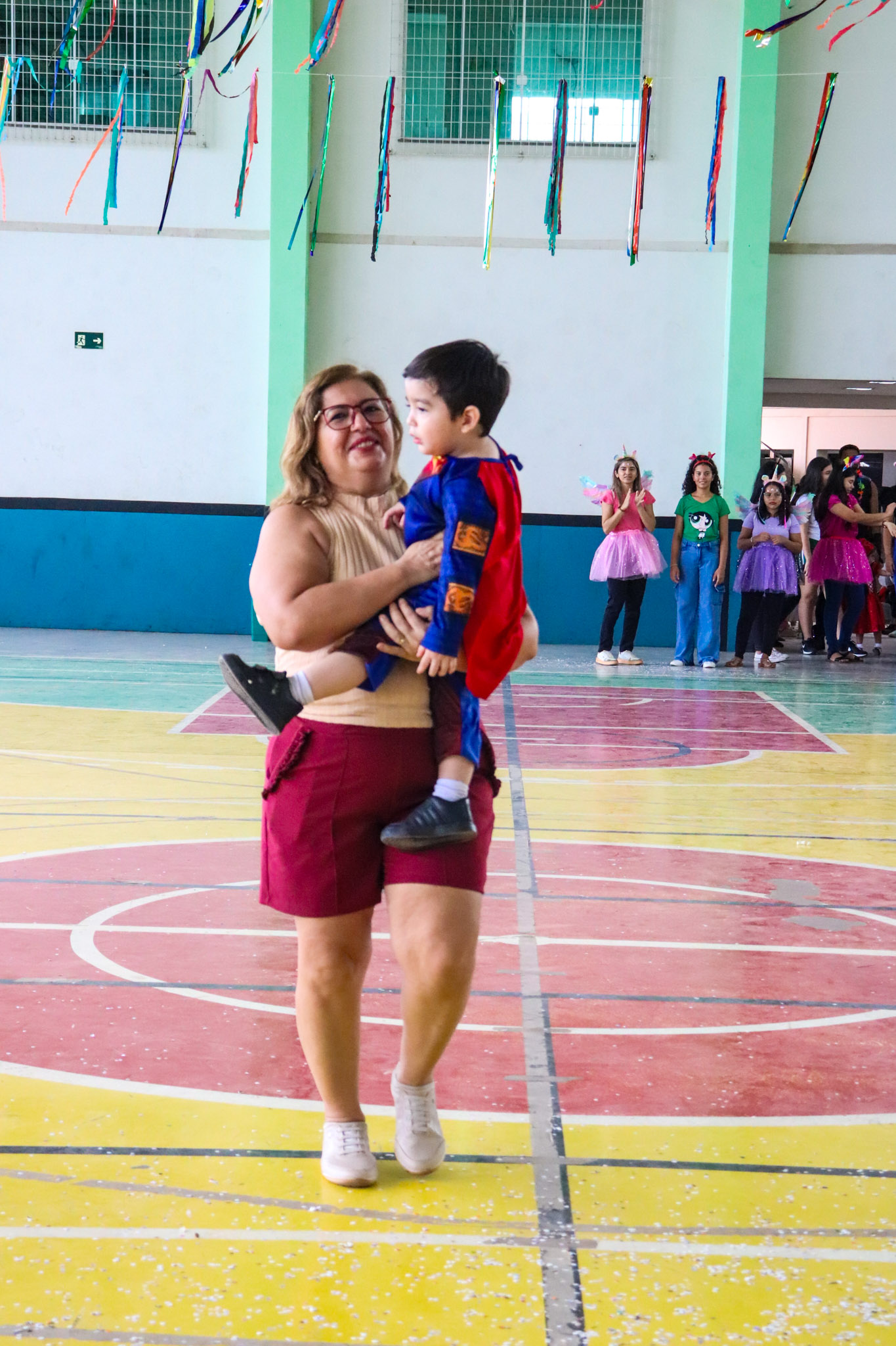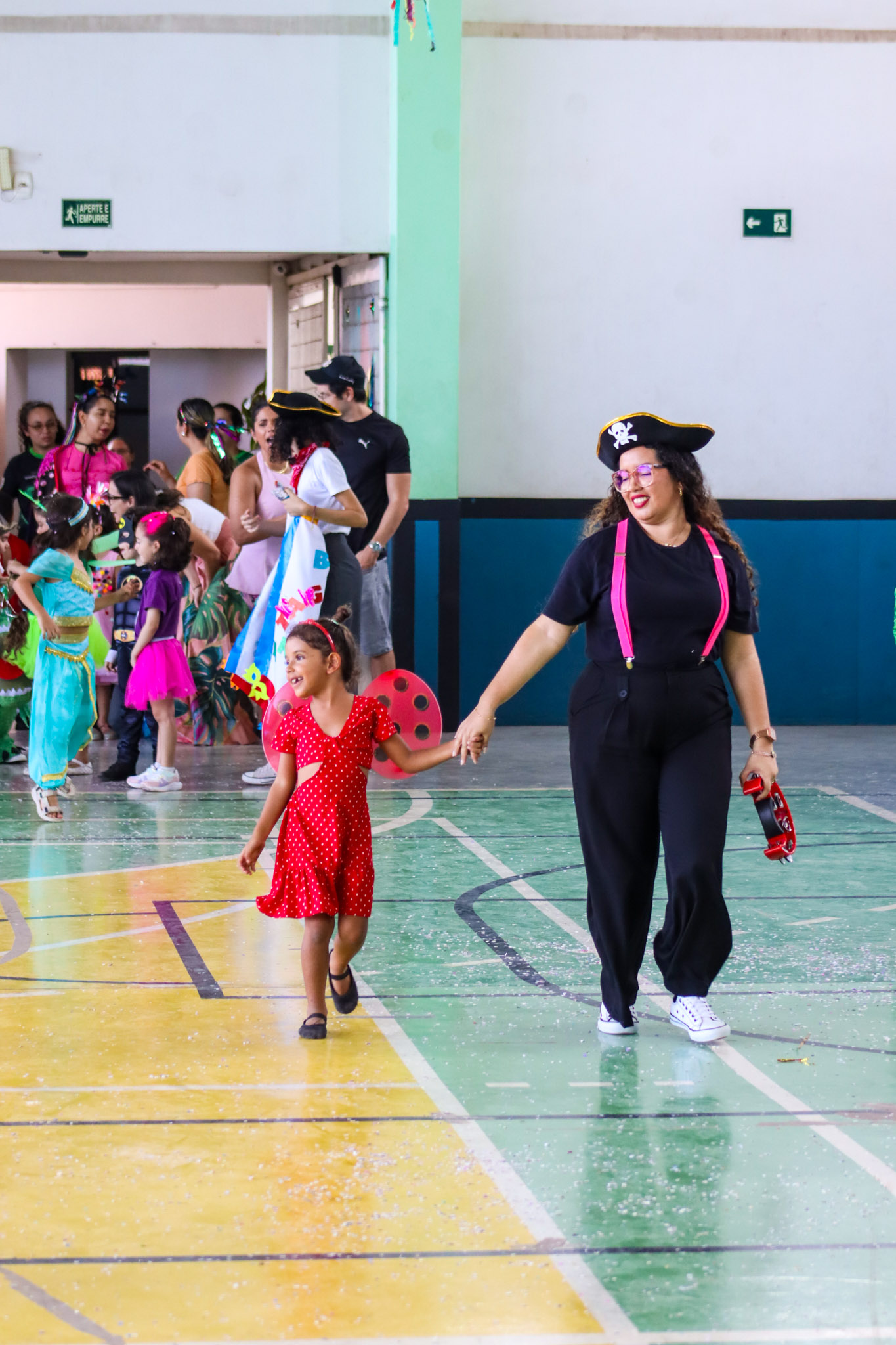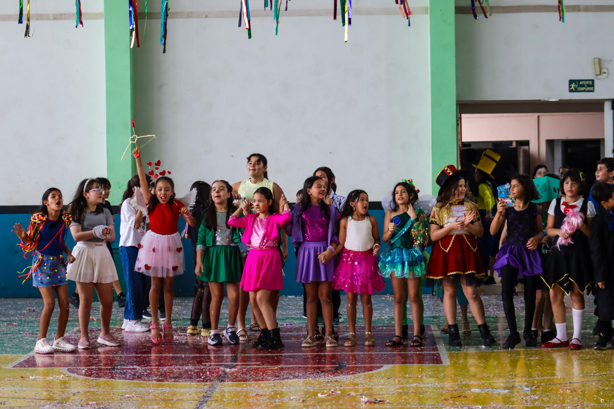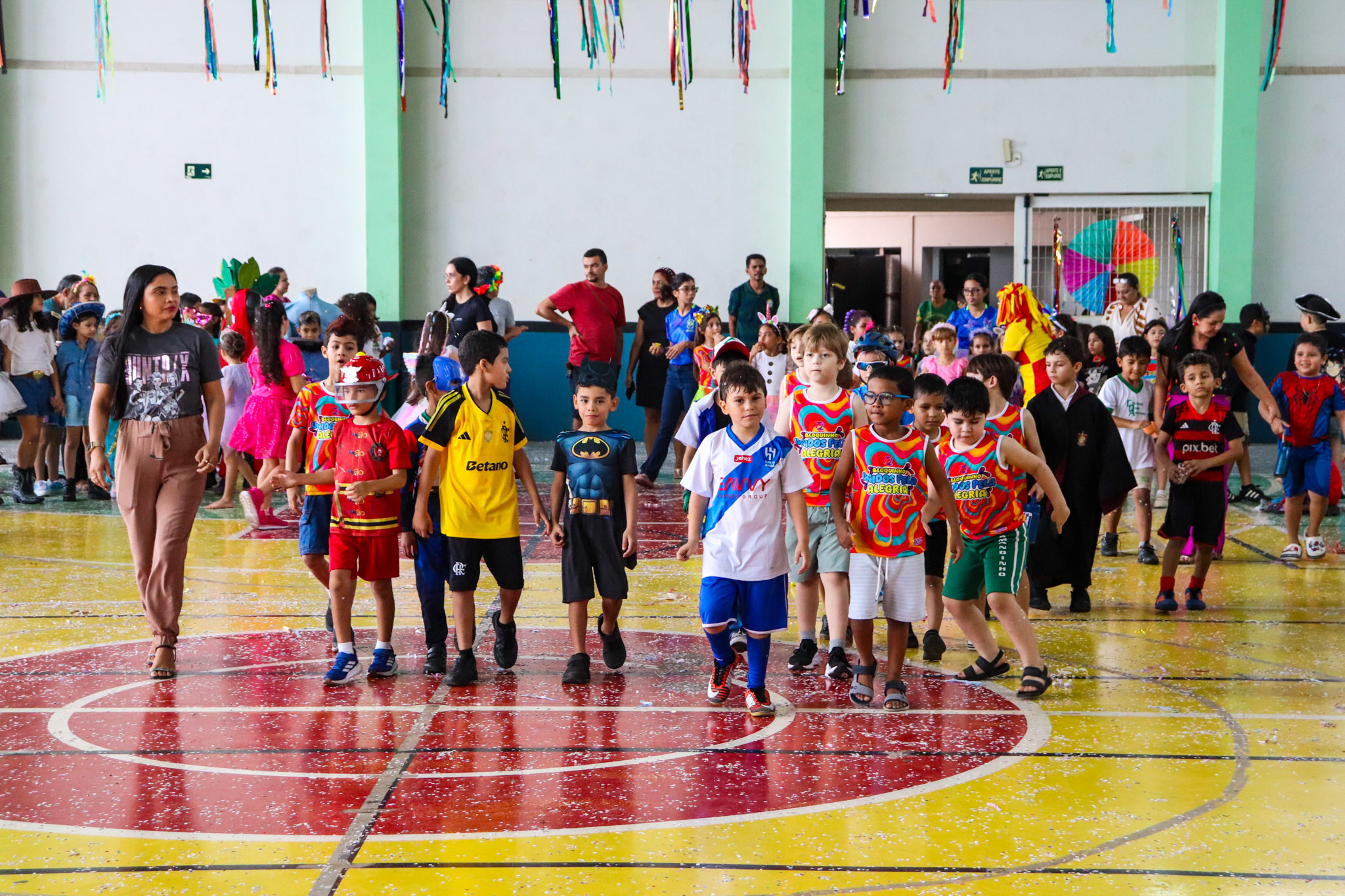 No Ensino Fundamental I, os estudantes também aproveitaram a festa com desfiles, brincadeiras e muita animação, transformando o ginásio em um verdadeiro espaço de celebração e descontração.
