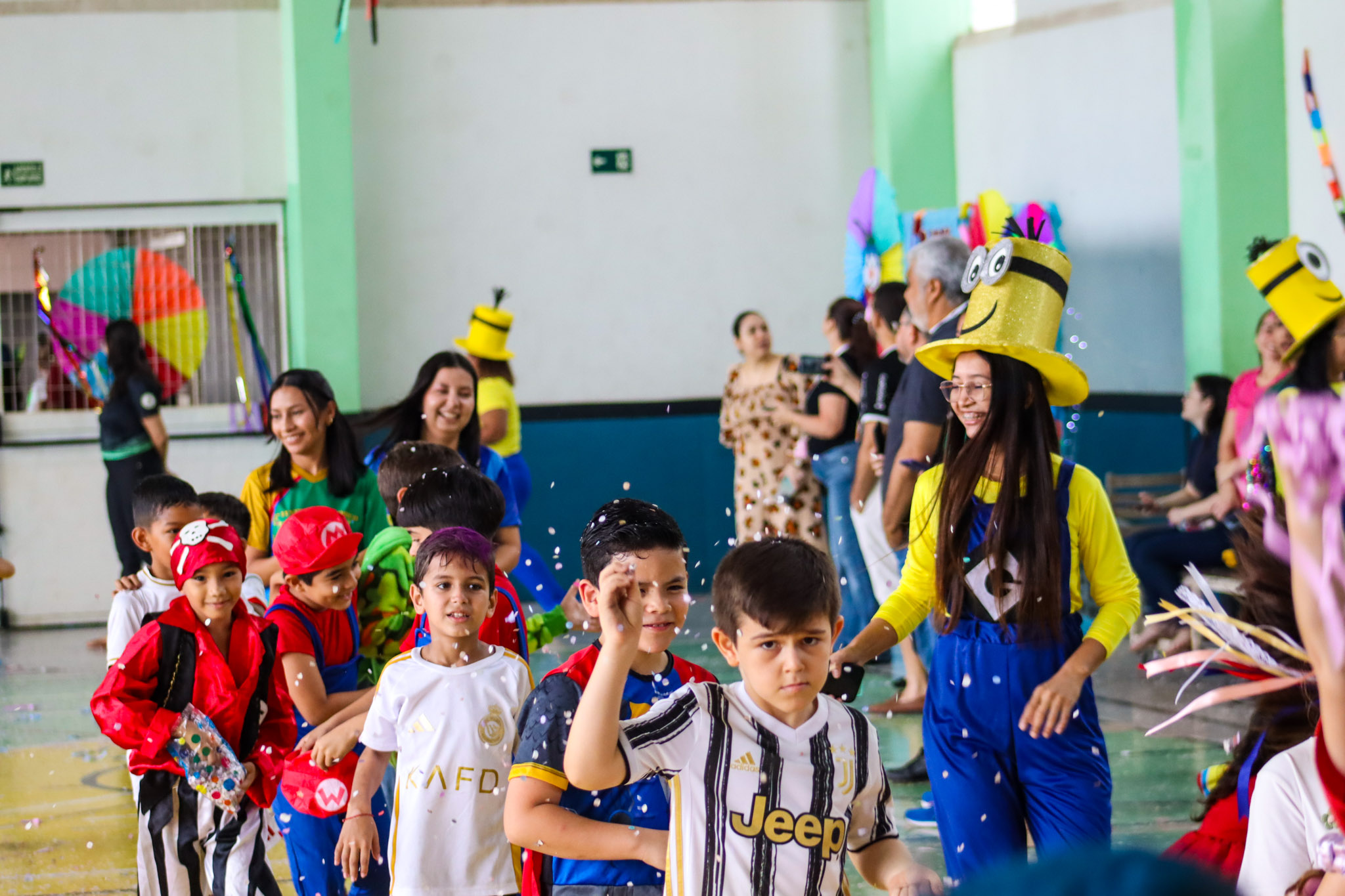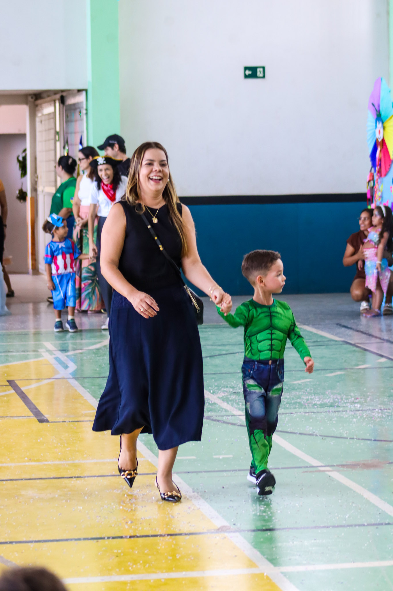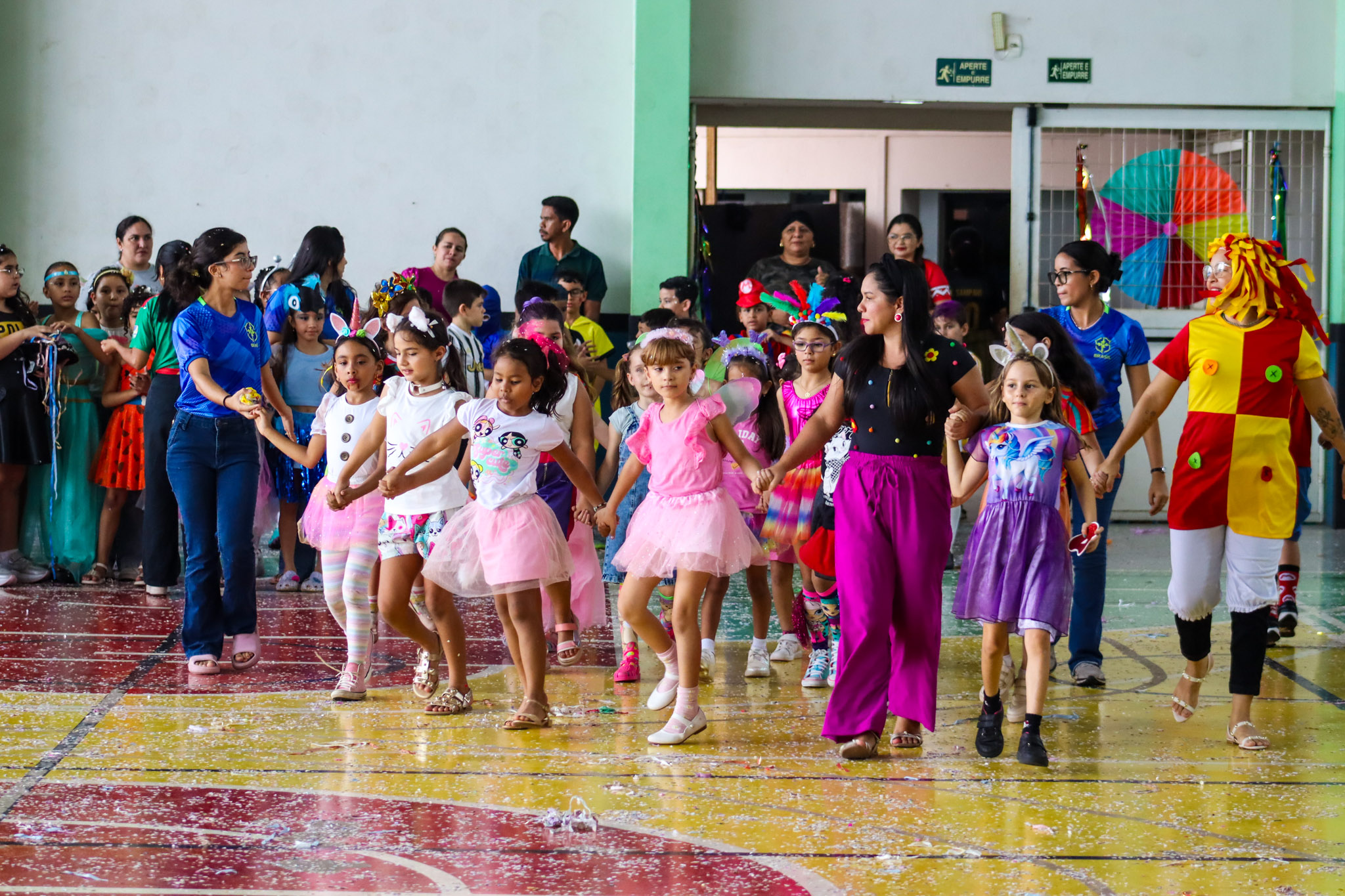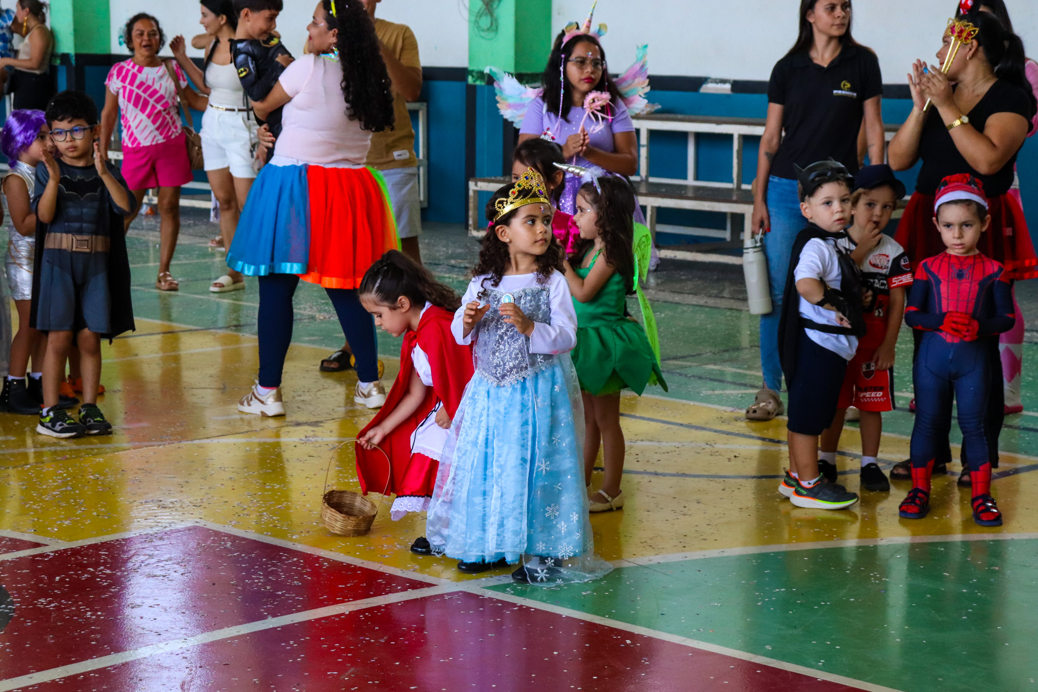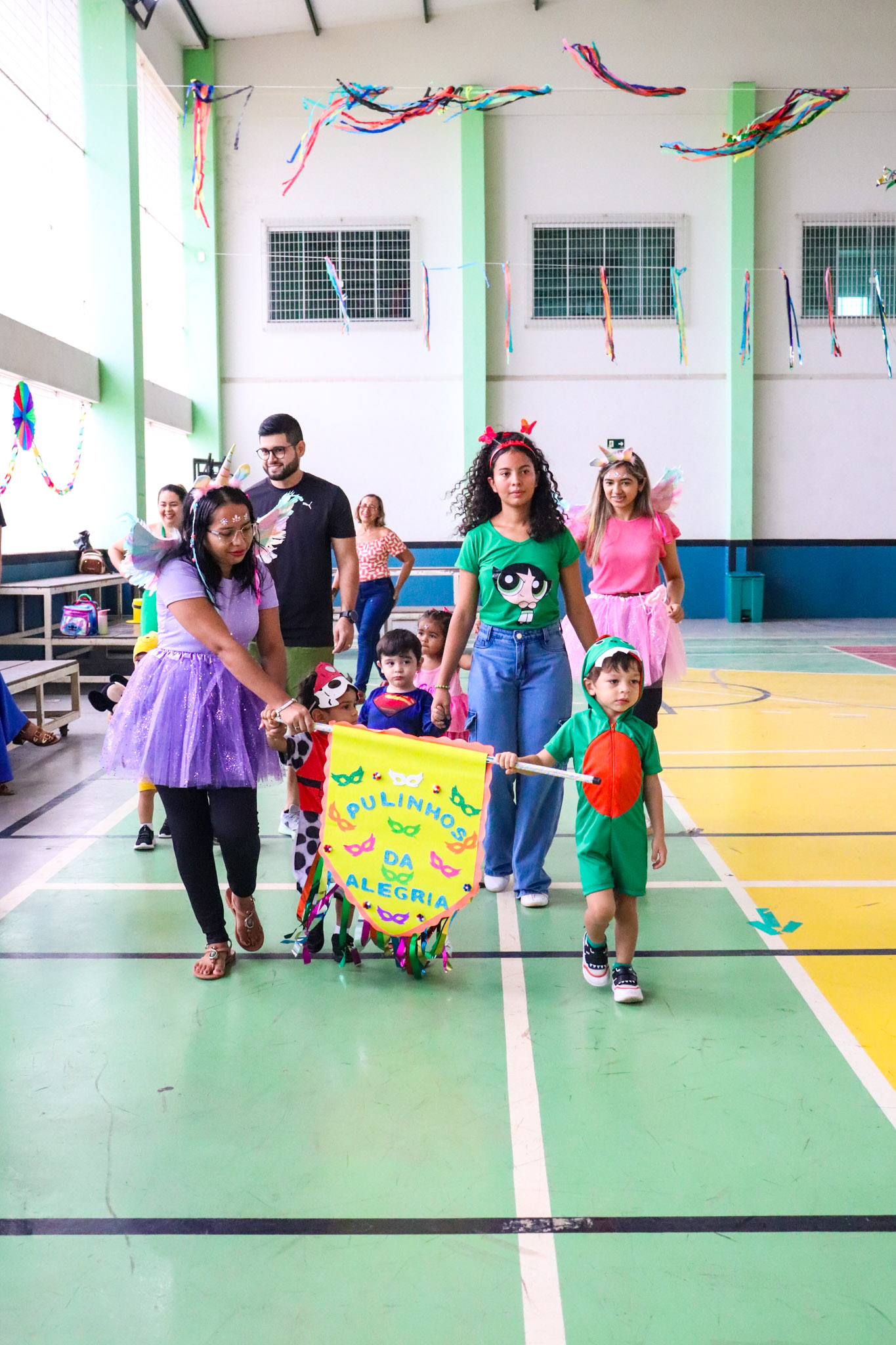 No Ensino Fundamental I, os estudantes também aproveitaram a festa com desfiles, brincadeiras e muita animação, transformando o ginásio em um verdadeiro espaço de celebração e descontração.