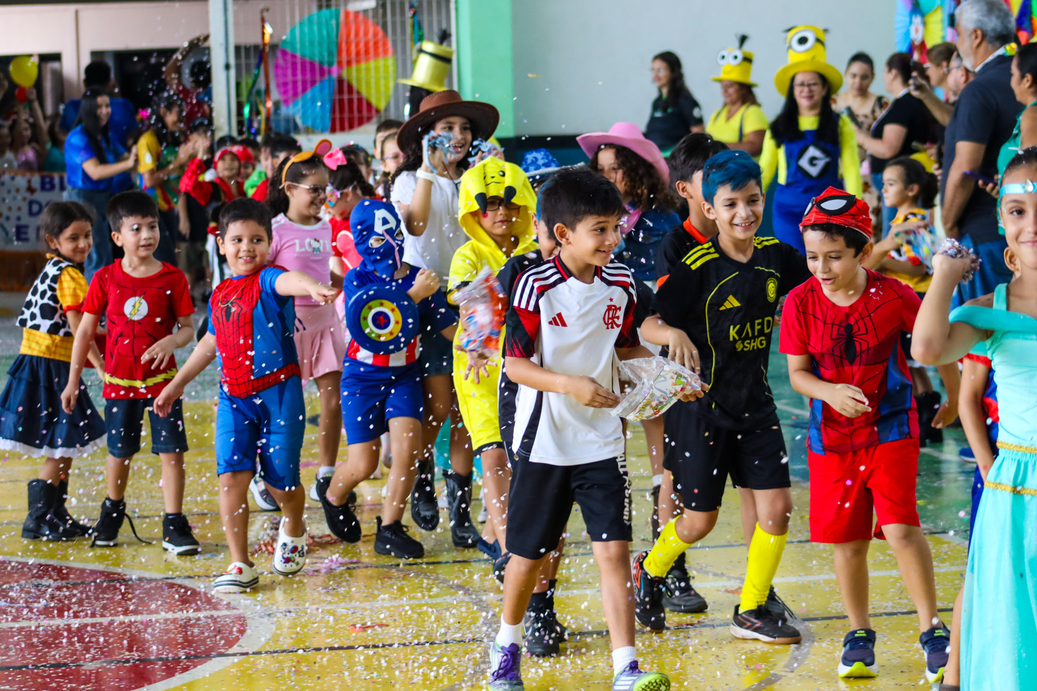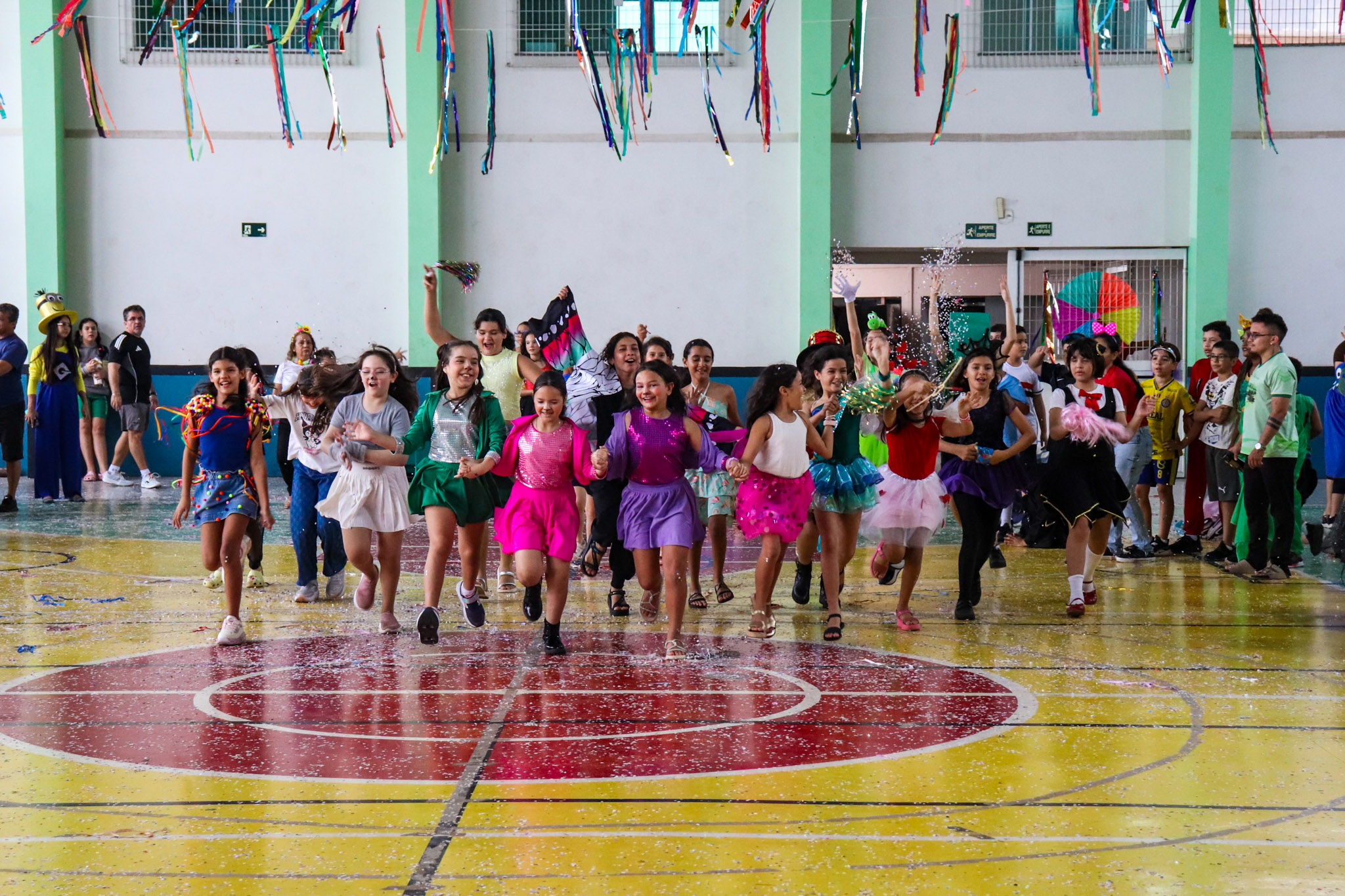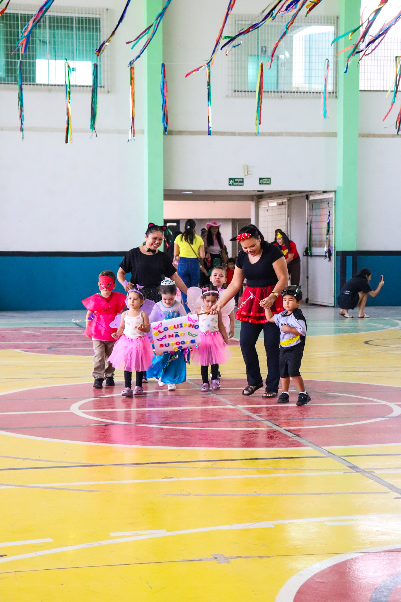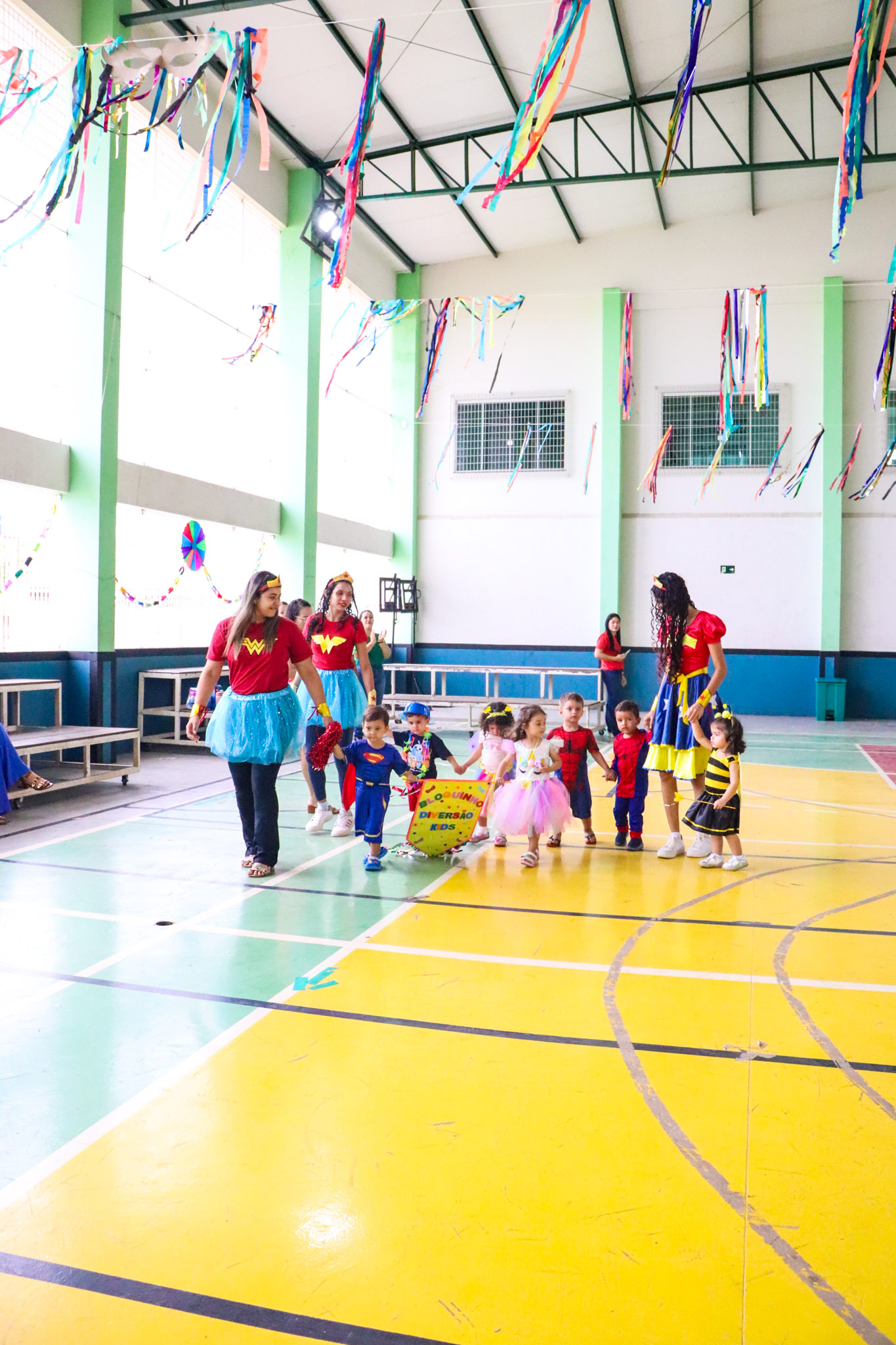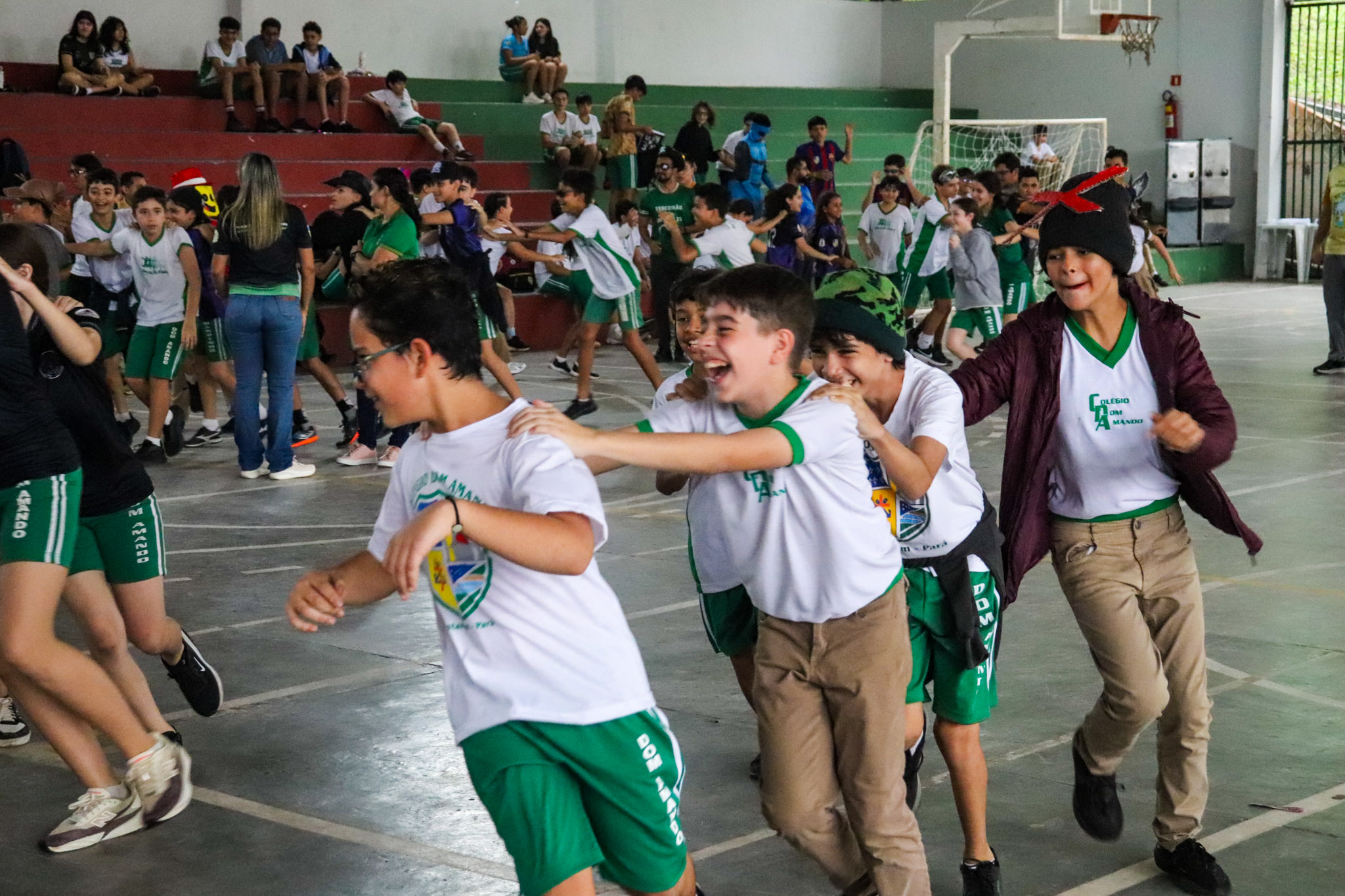 No Ensino Fundamental I, os estudantes também aproveitaram a festa com desfiles, brincadeiras e muita animação, transformando o ginásio em um verdadeiro espaço de celebração e descontração.