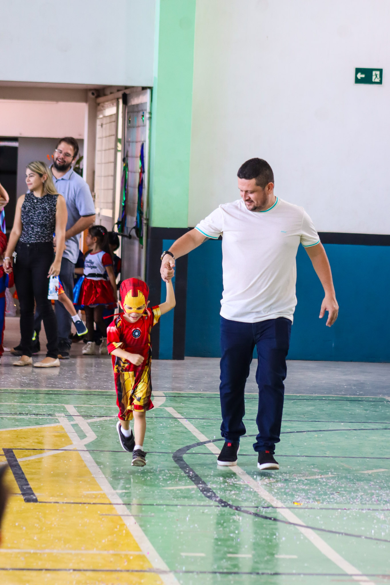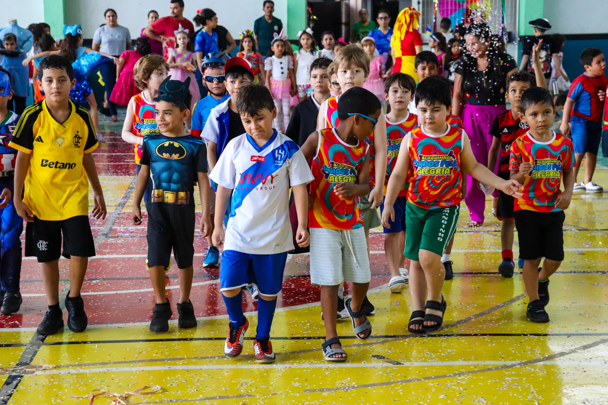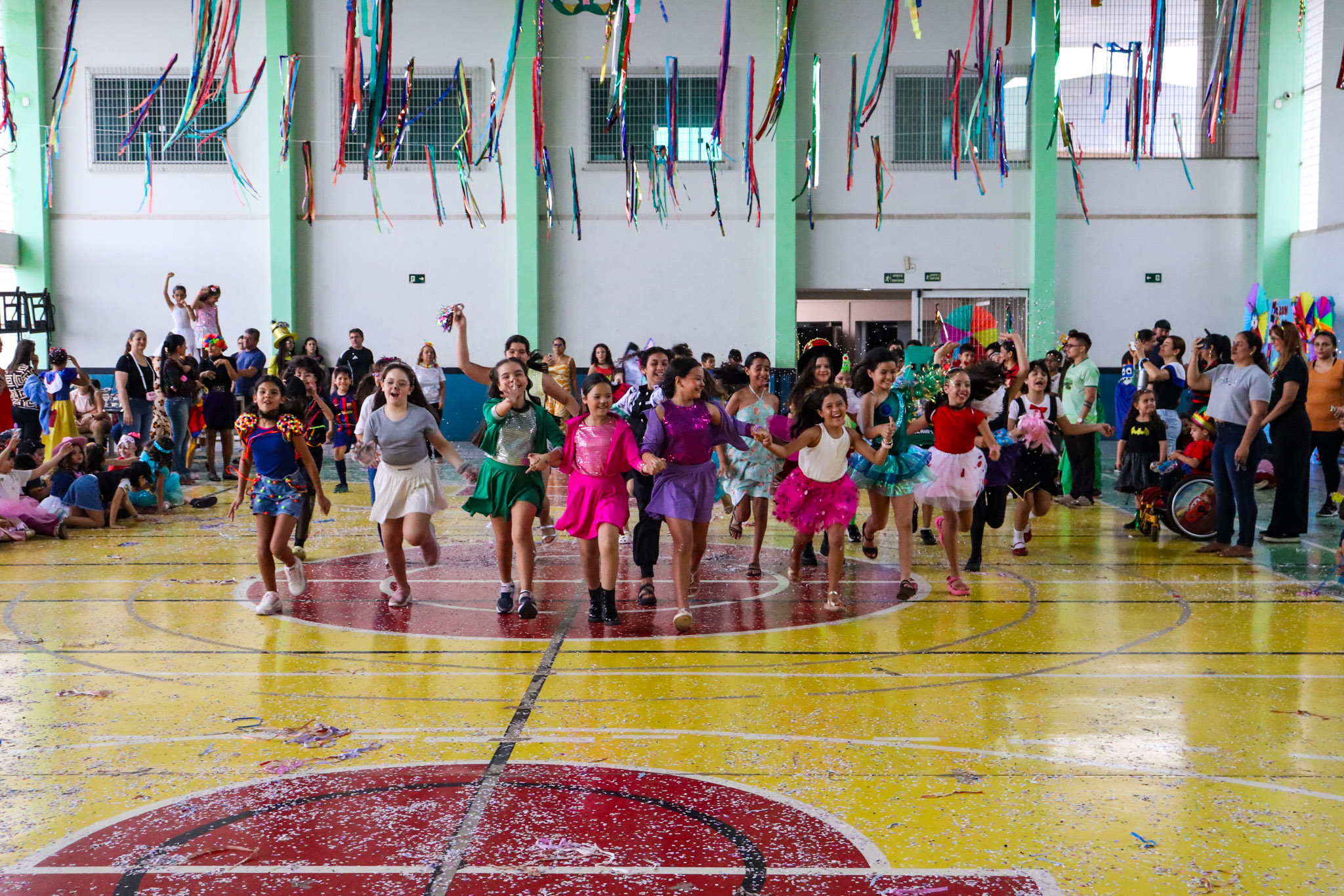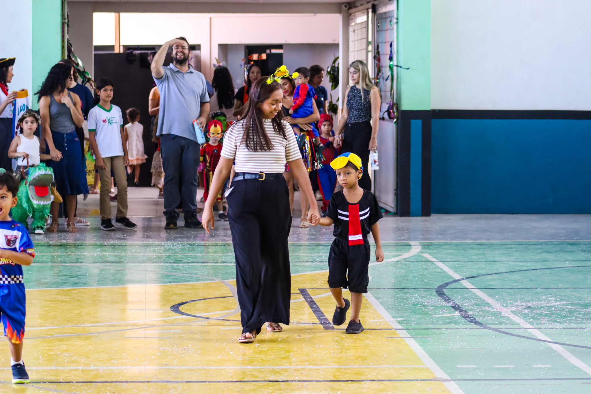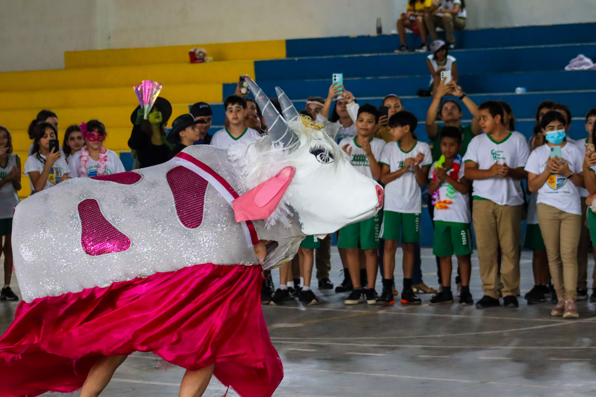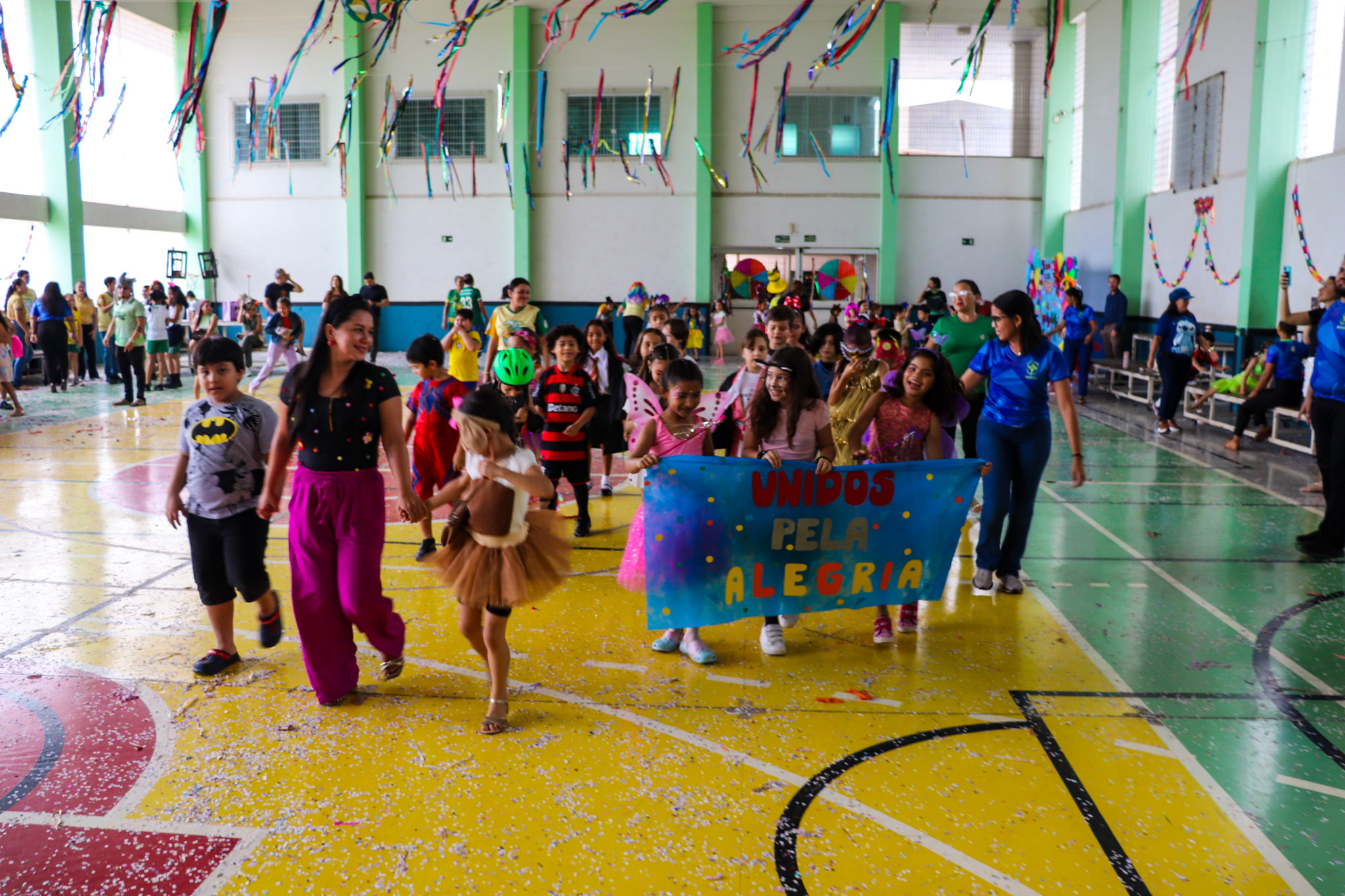 No Ensino Fundamental I, os estudantes também aproveitaram a festa com desfiles, brincadeiras e muita animação, transformando o ginásio em um verdadeiro espaço de celebração e descontração.
