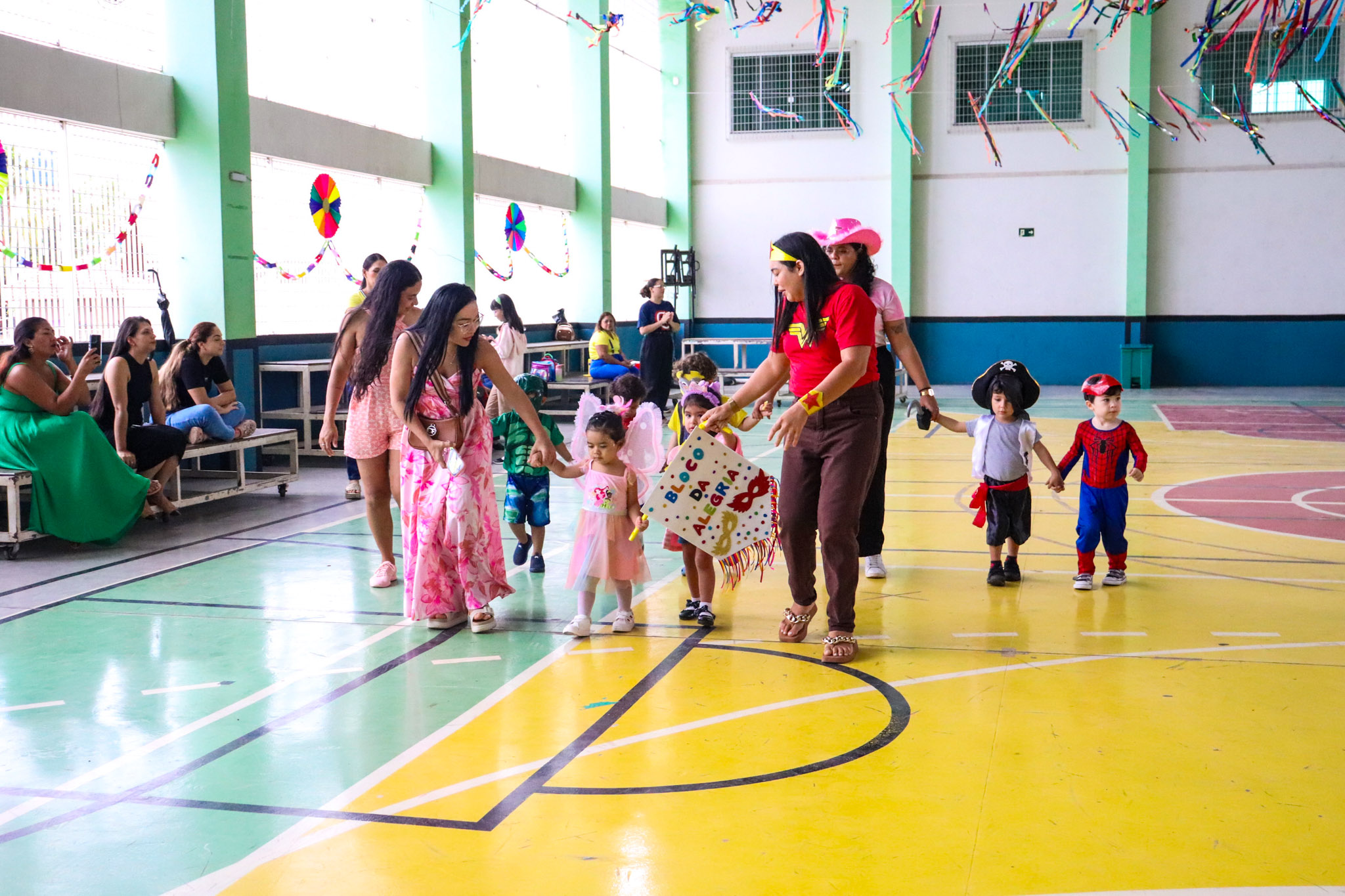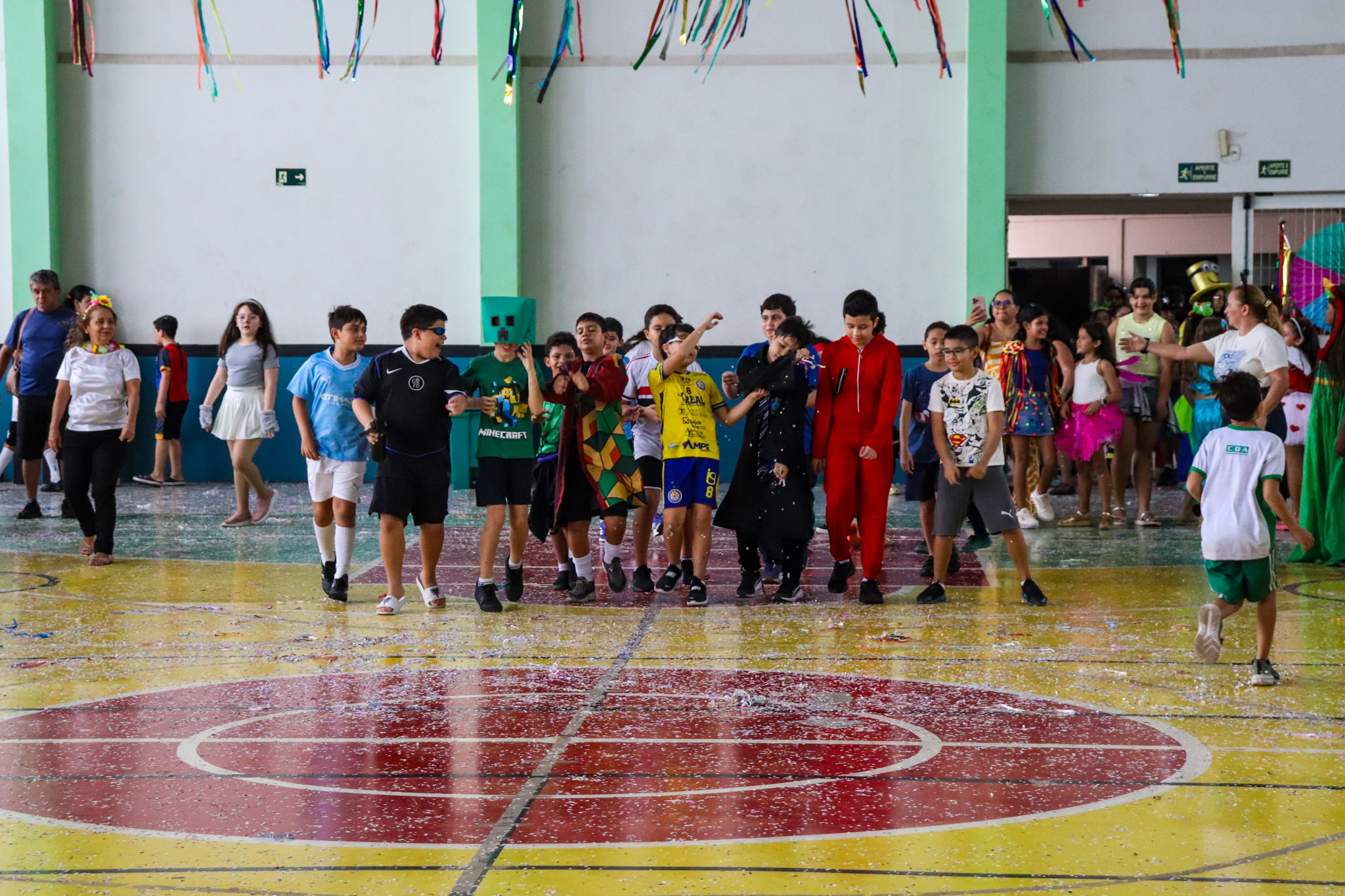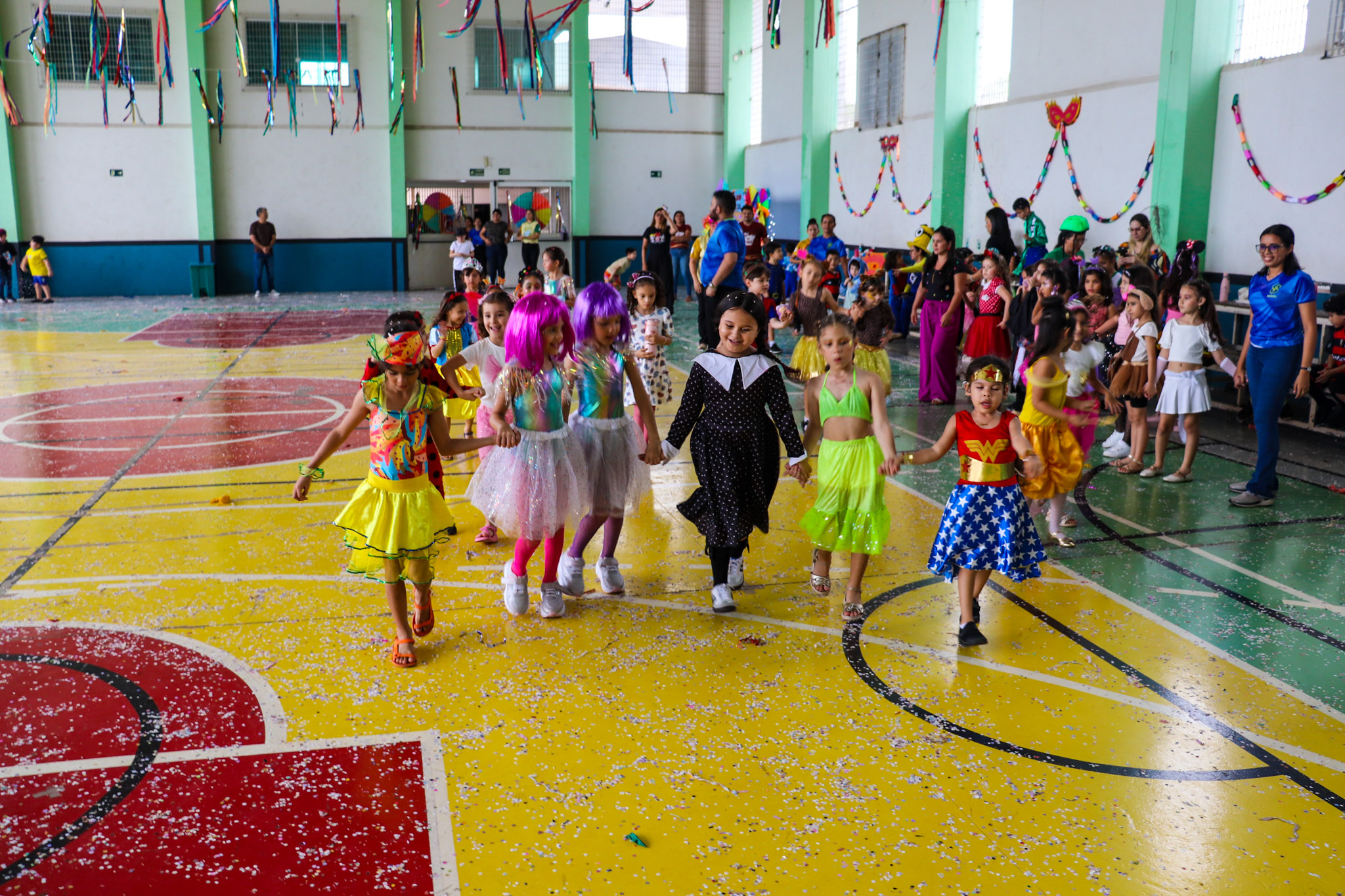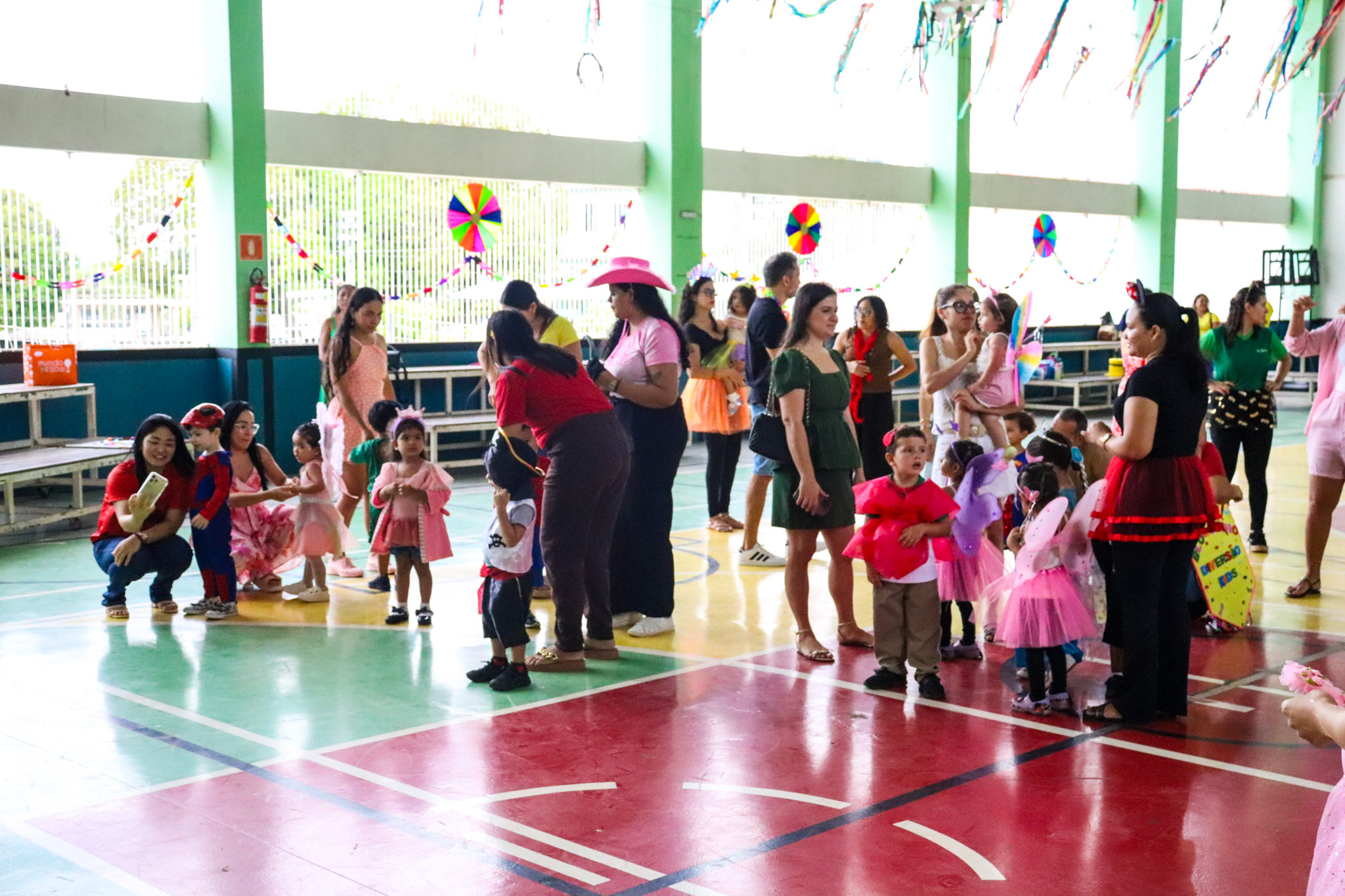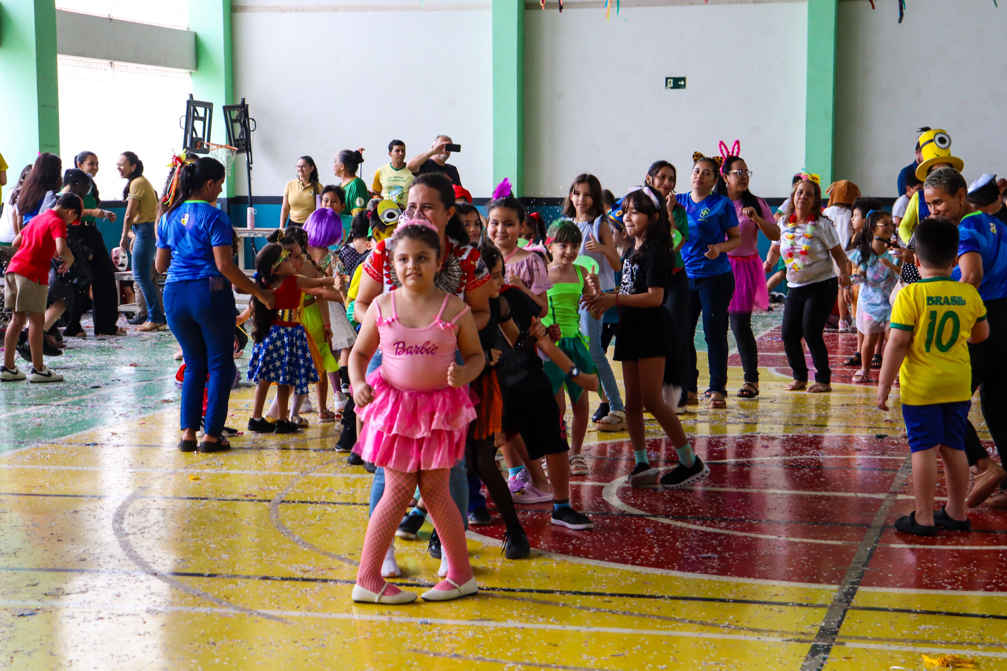 No Ensino Fundamental I, os estudantes também aproveitaram a festa com desfiles, brincadeiras e muita animação, transformando o ginásio em um verdadeiro espaço de celebração e descontração.