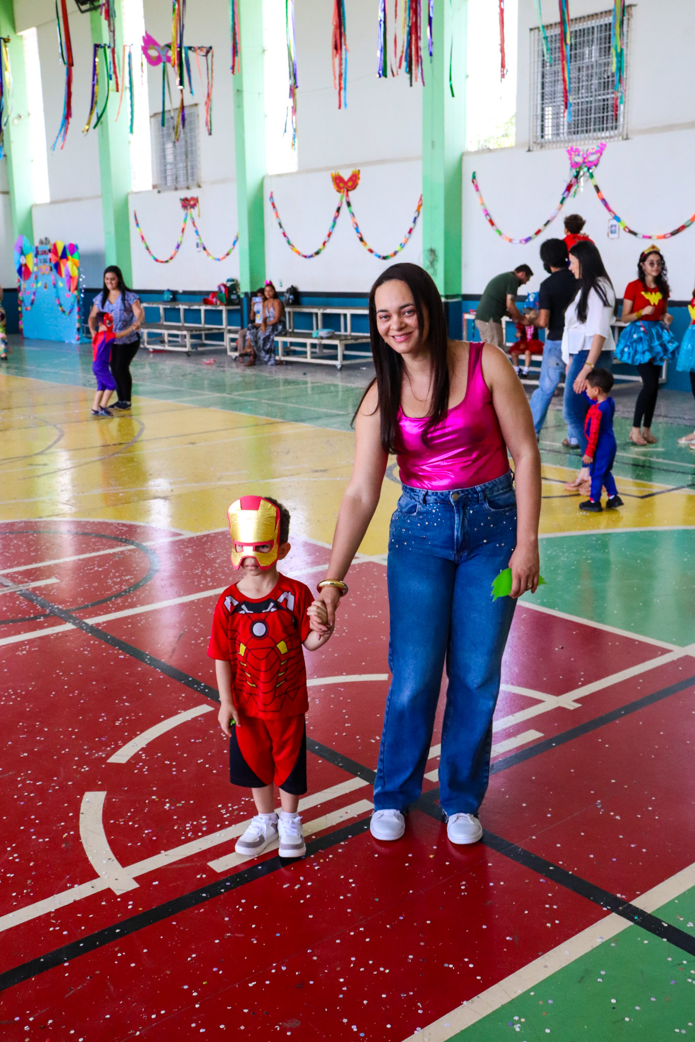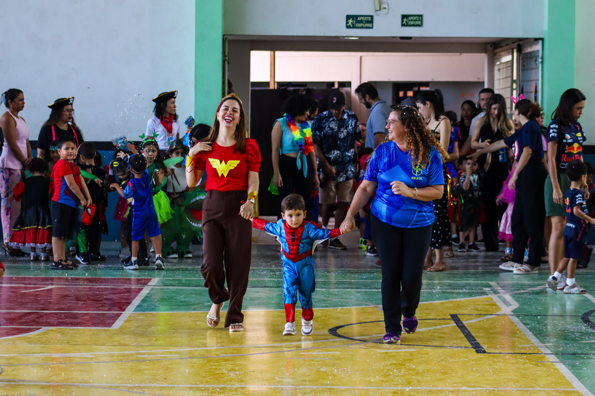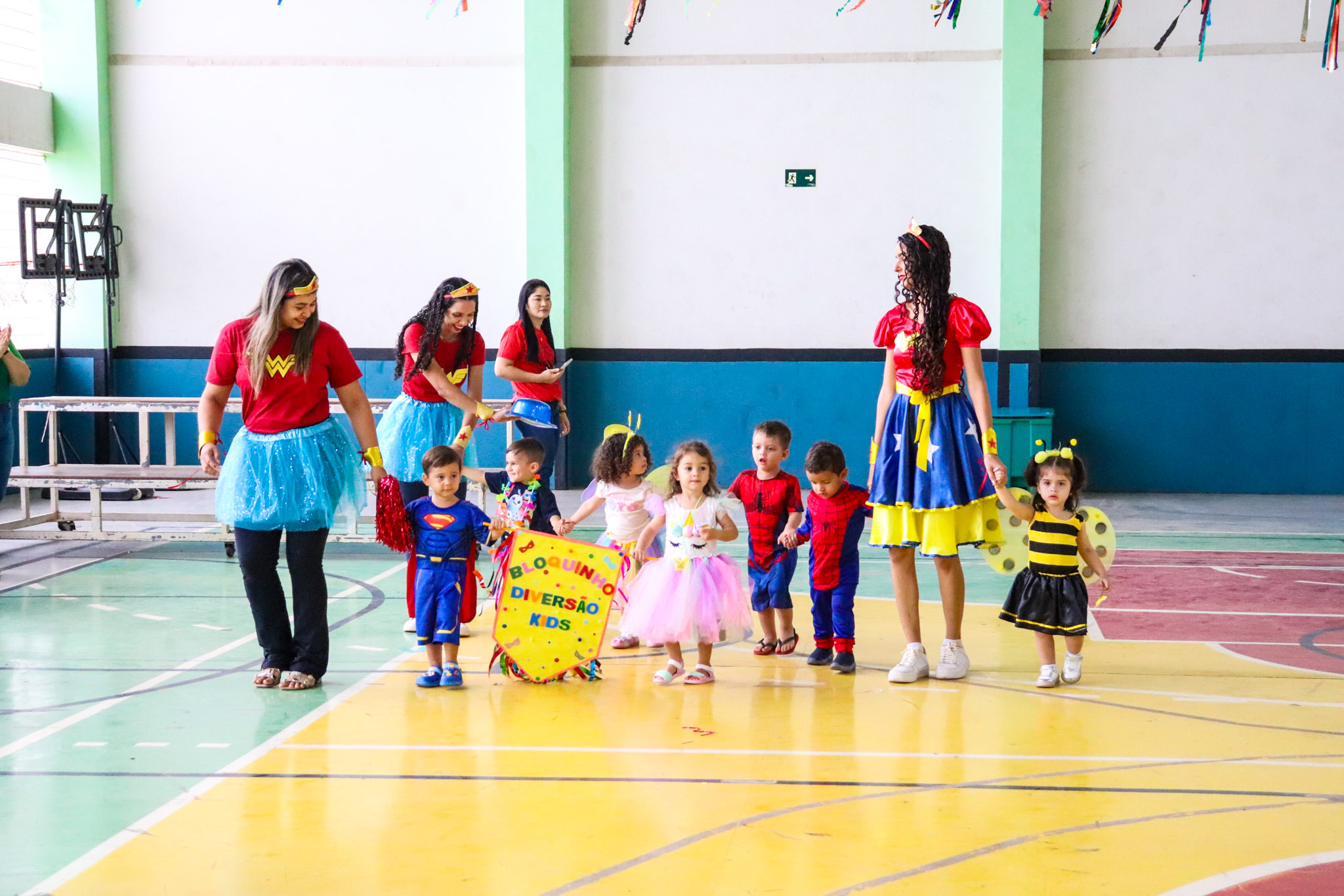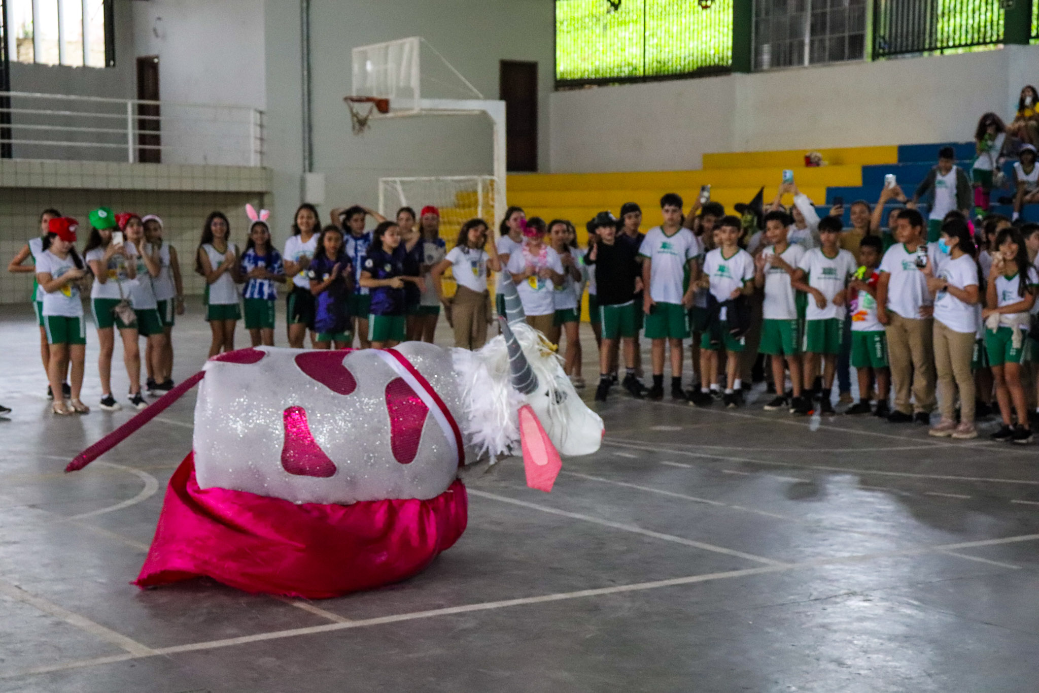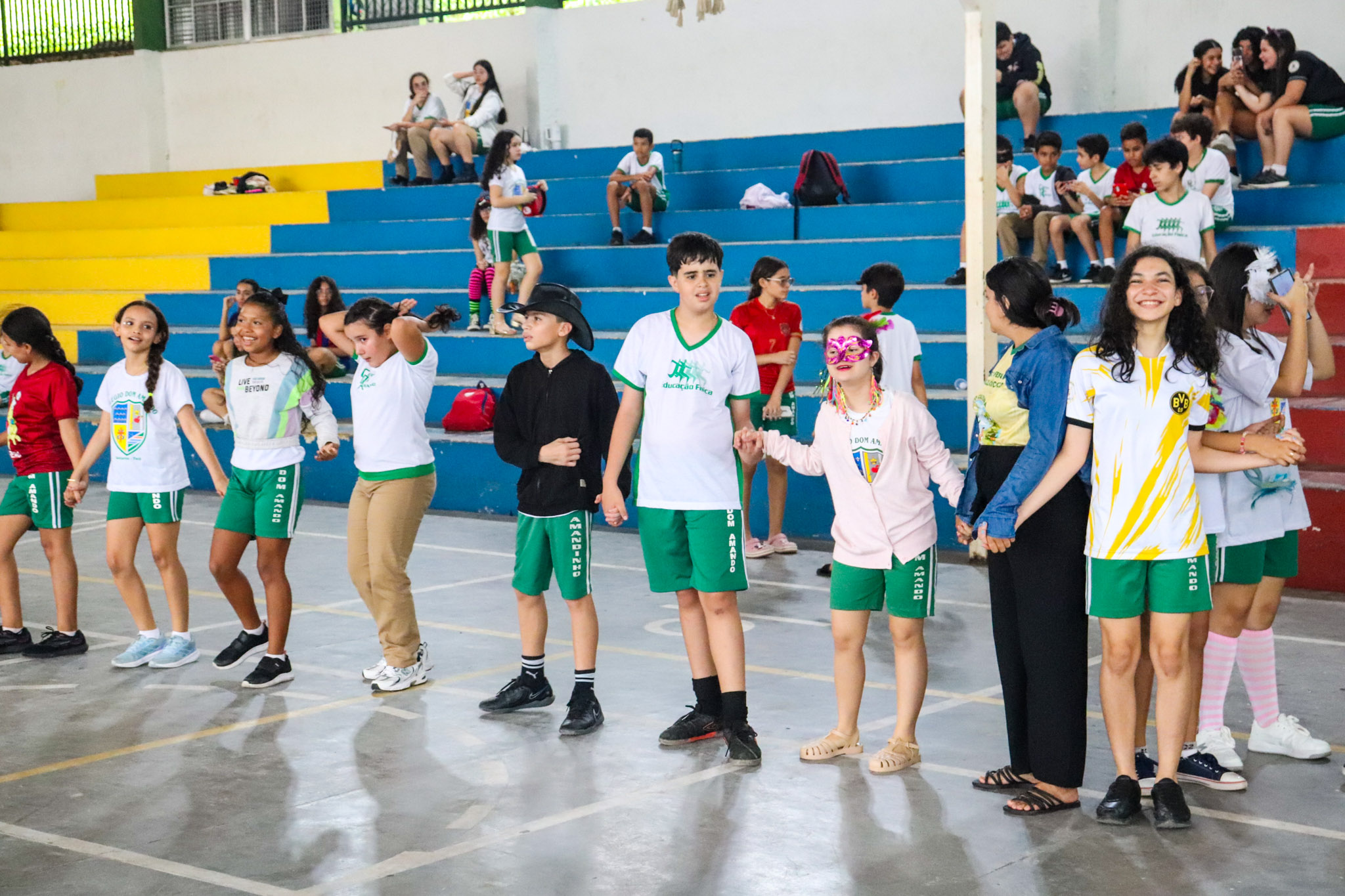 No Ensino Fundamental I, os estudantes também aproveitaram a festa com desfiles, brincadeiras e muita animação, transformando o ginásio em um verdadeiro espaço de celebração e descontração.