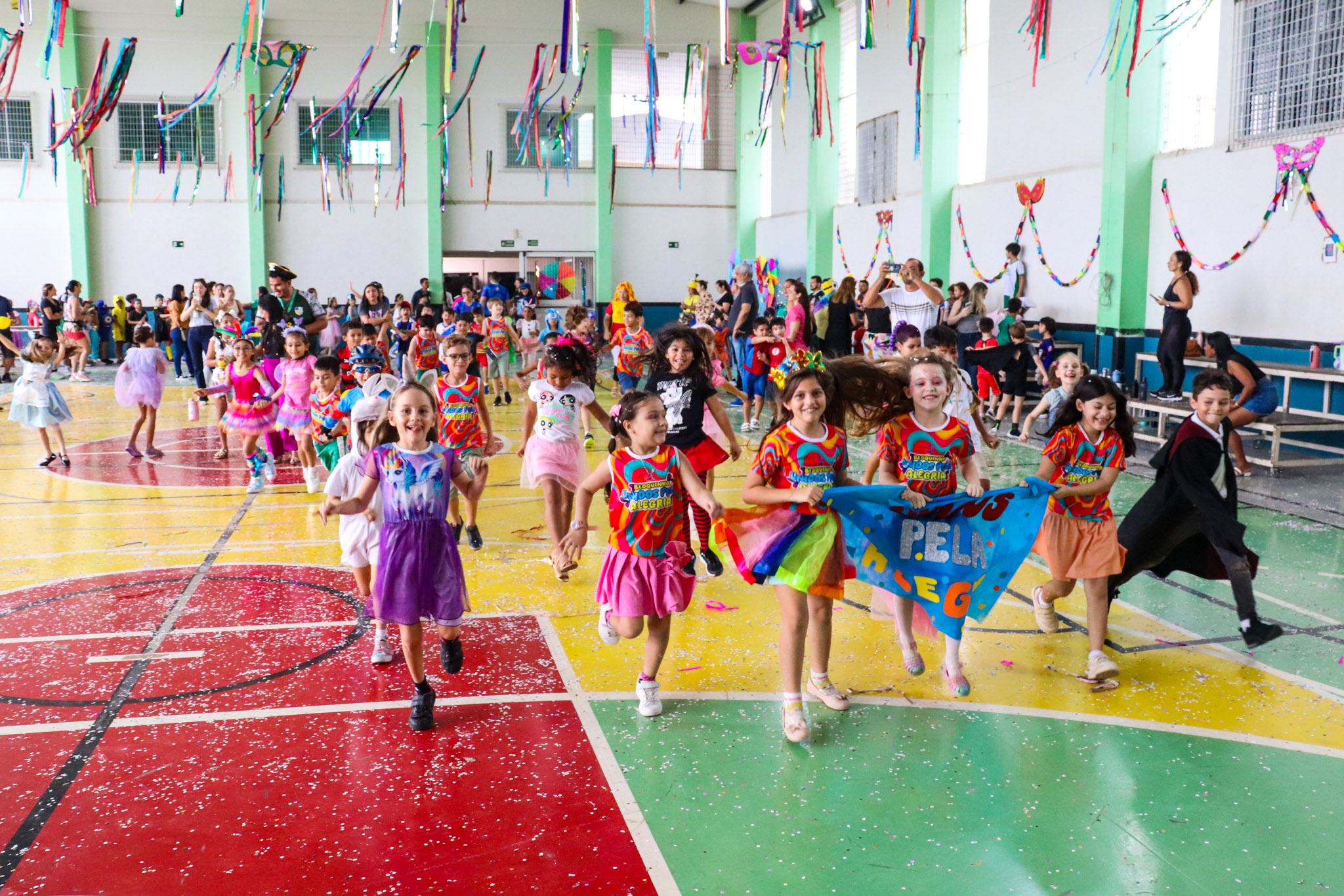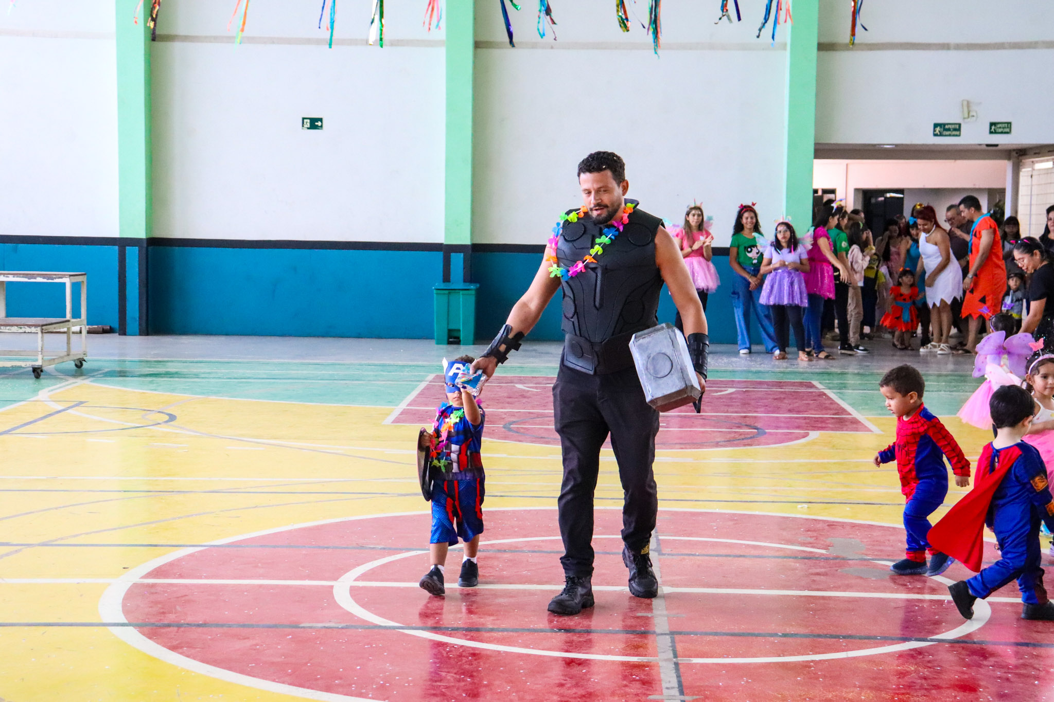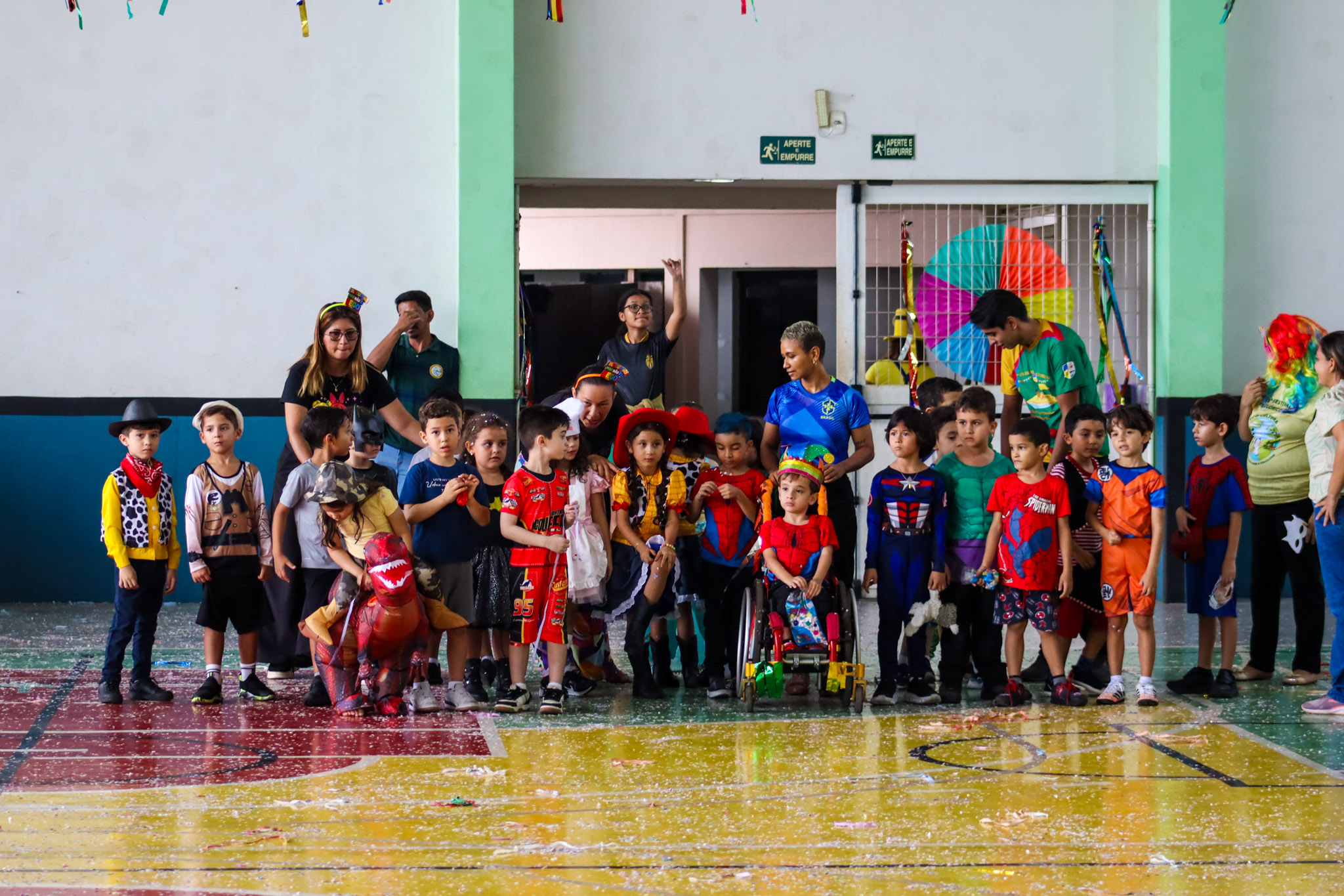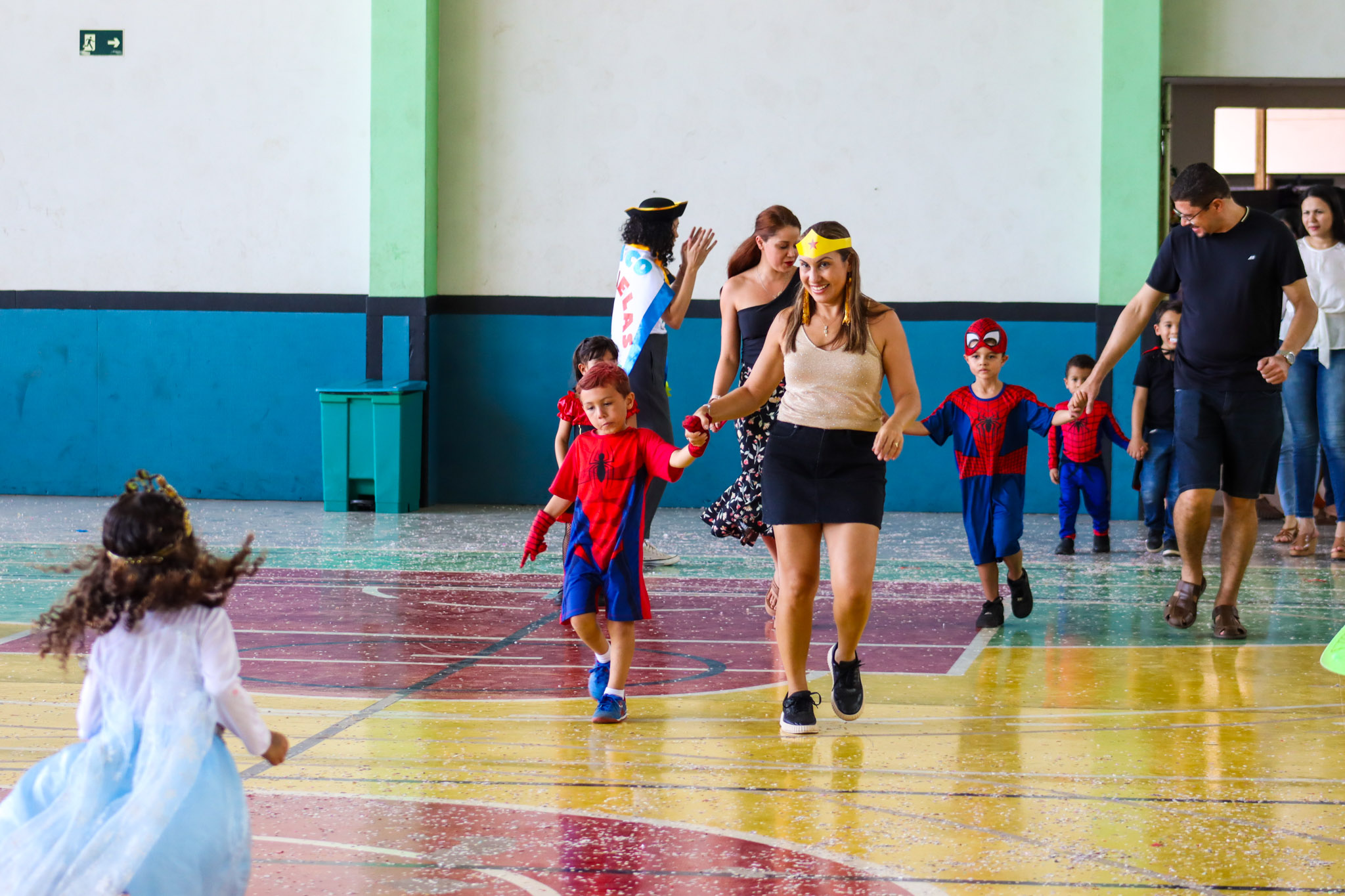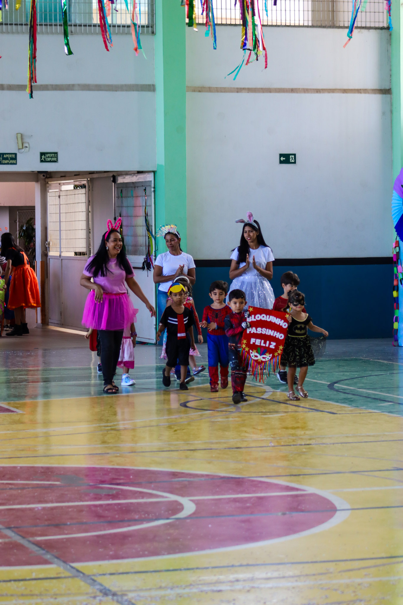 No Ensino Fundamental I, os estudantes também aproveitaram a festa com desfiles, brincadeiras e muita animação, transformando o ginásio em um verdadeiro espaço de celebração e descontração.