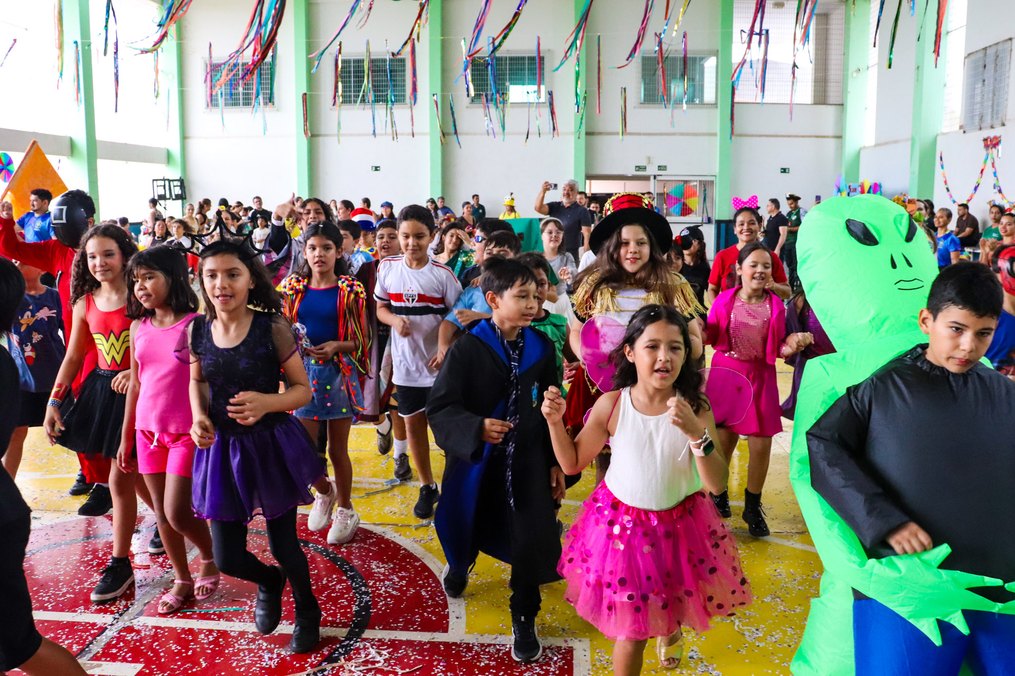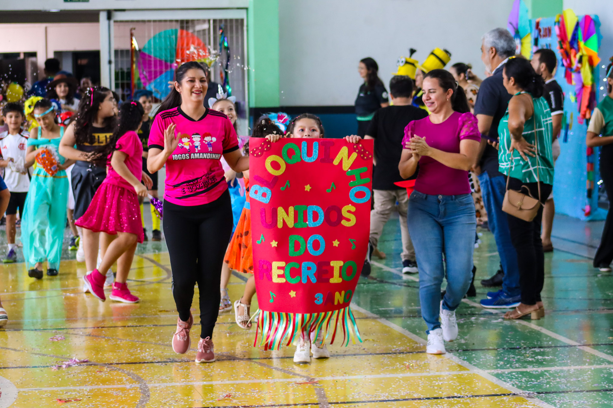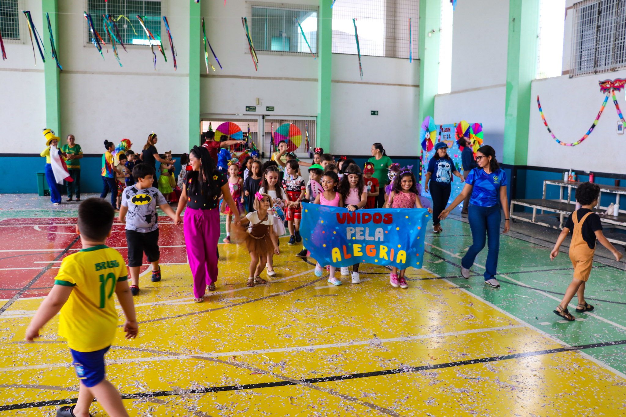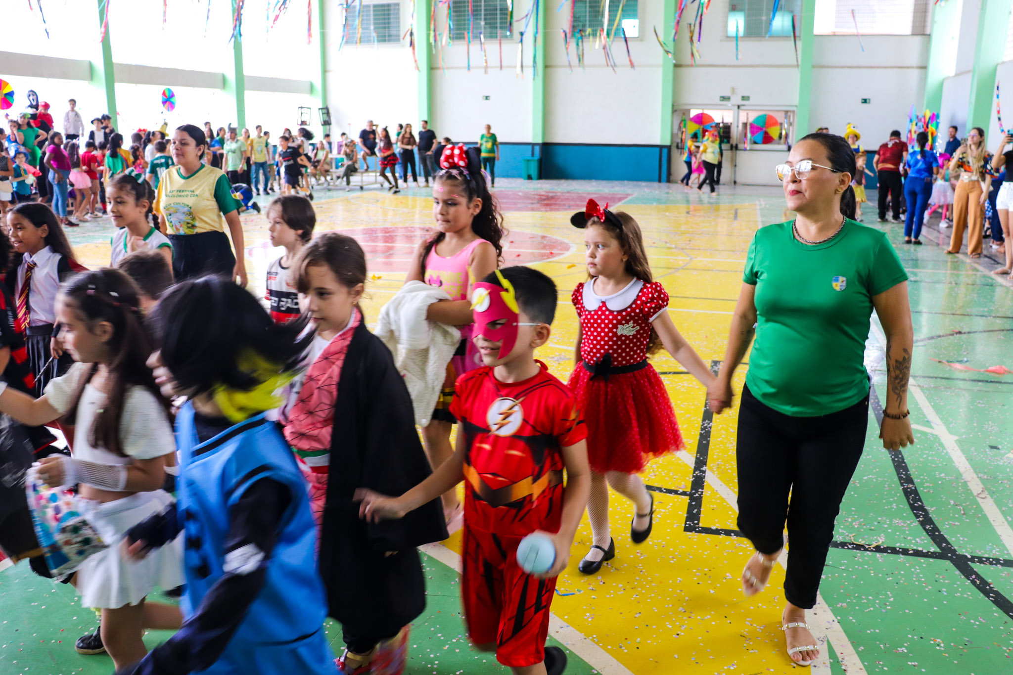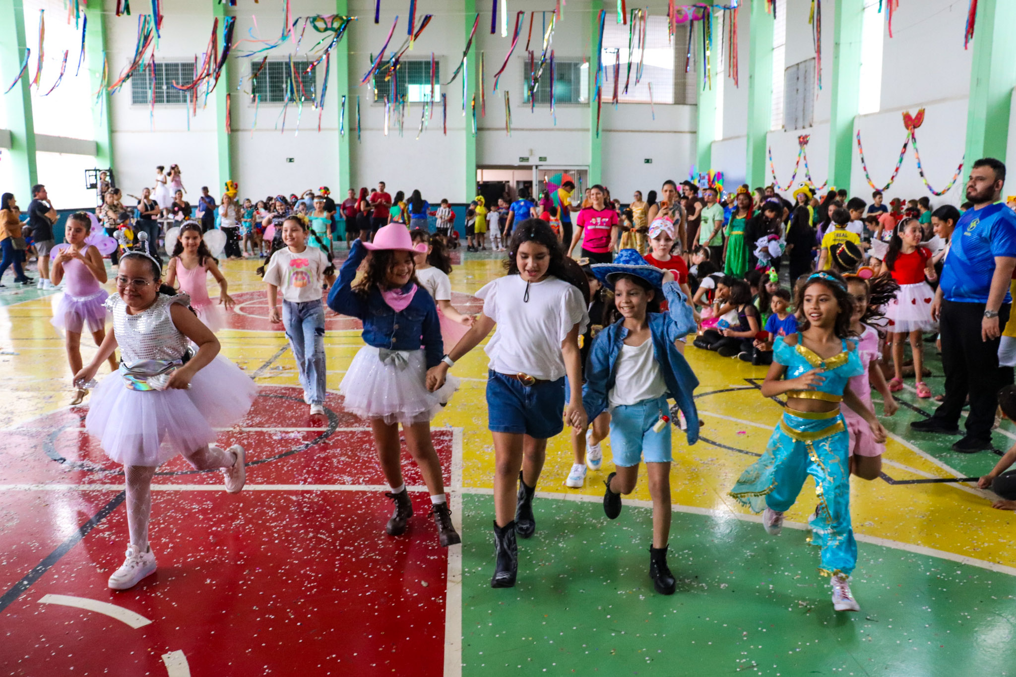 No Ensino Fundamental I, os estudantes também aproveitaram a festa com desfiles, brincadeiras e muita animação, transformando o ginásio em um verdadeiro espaço de celebração e descontração.