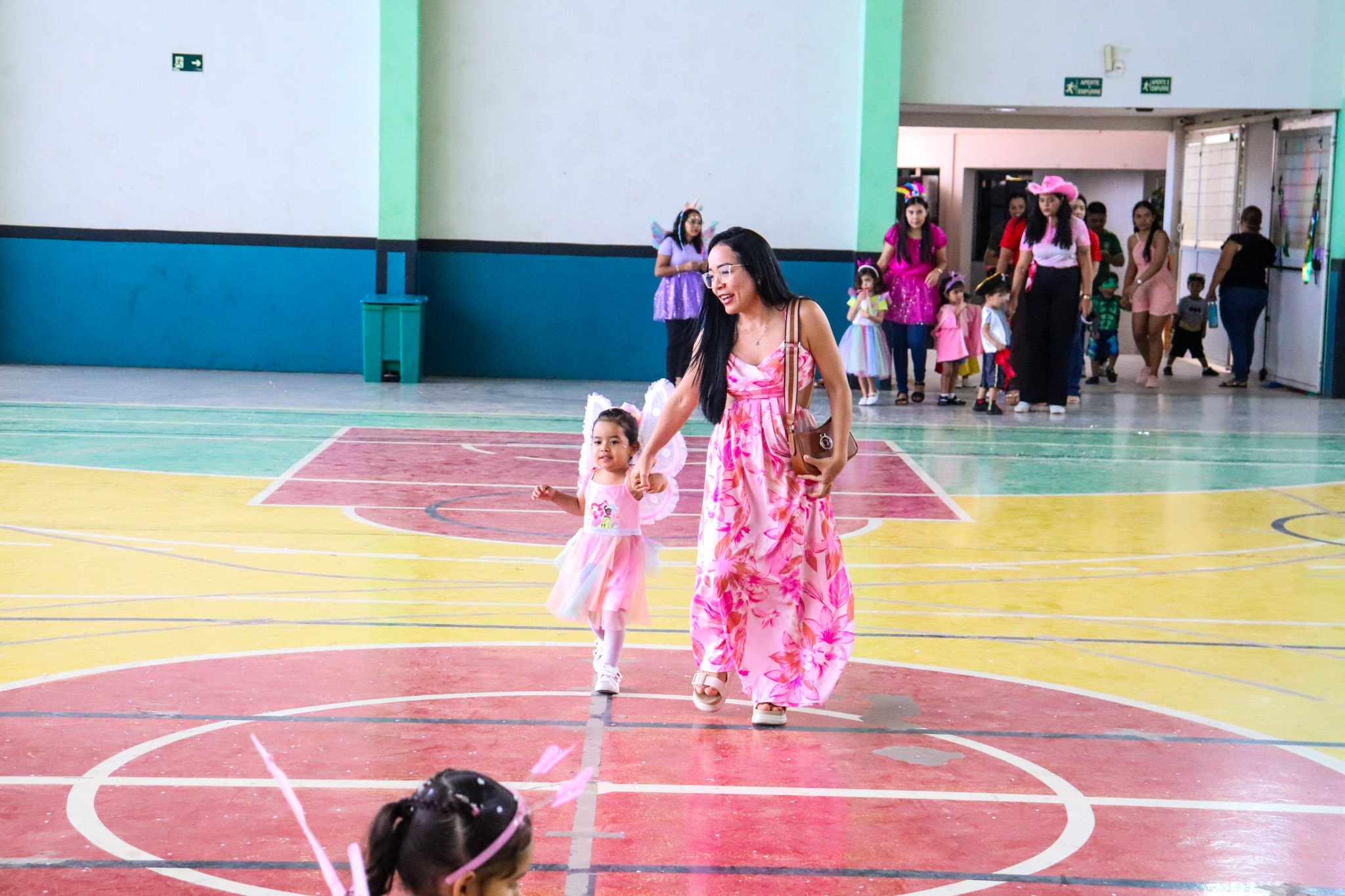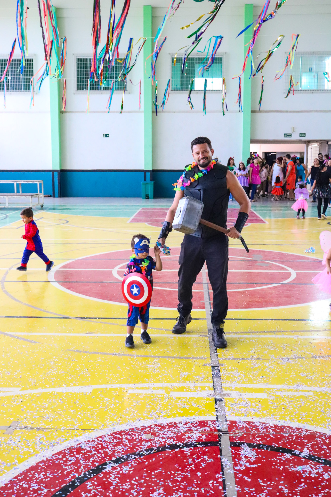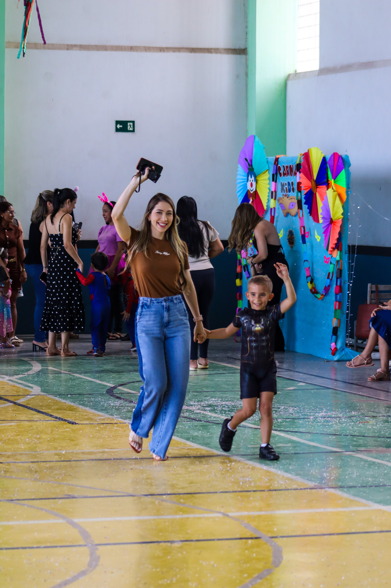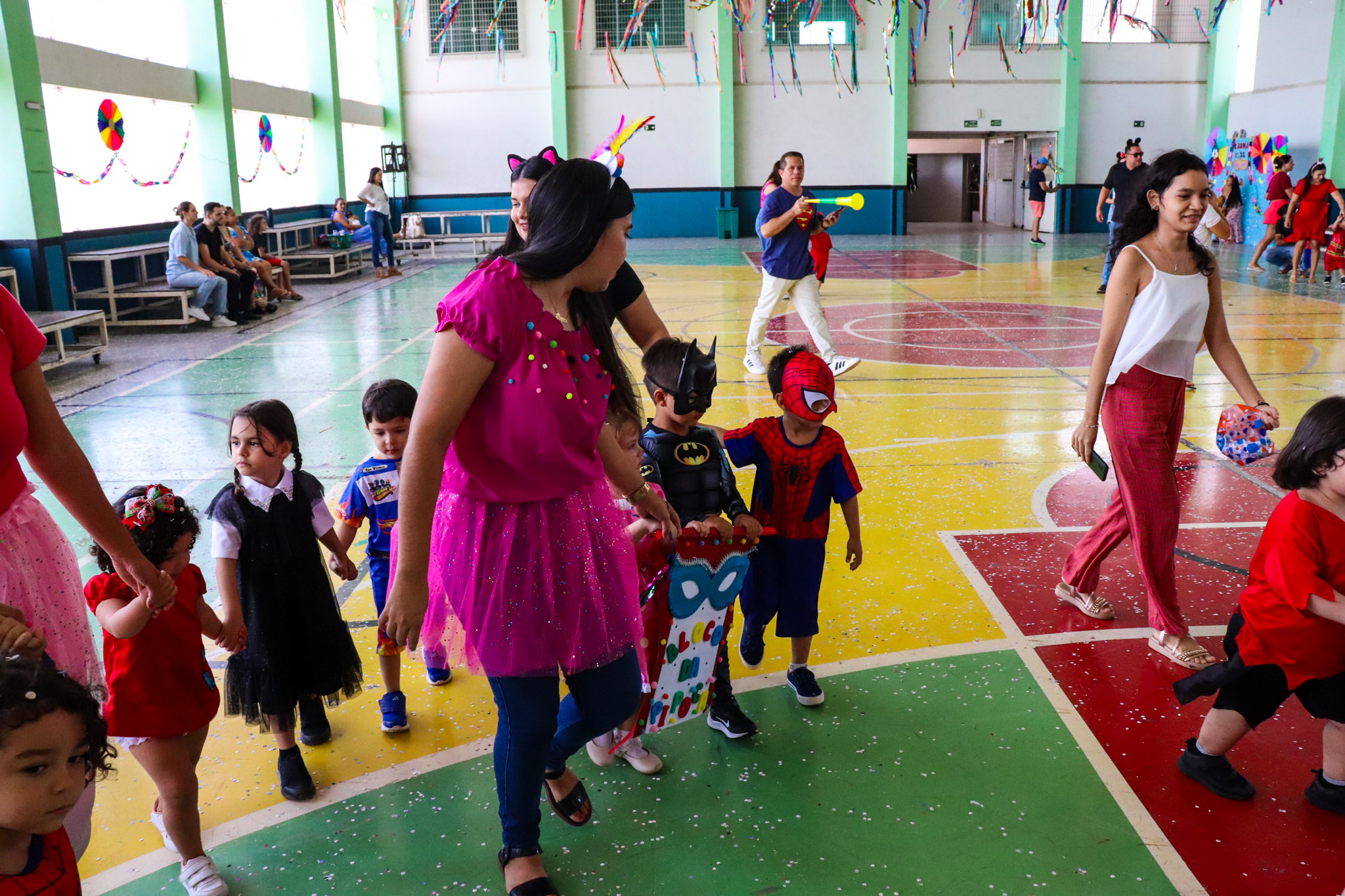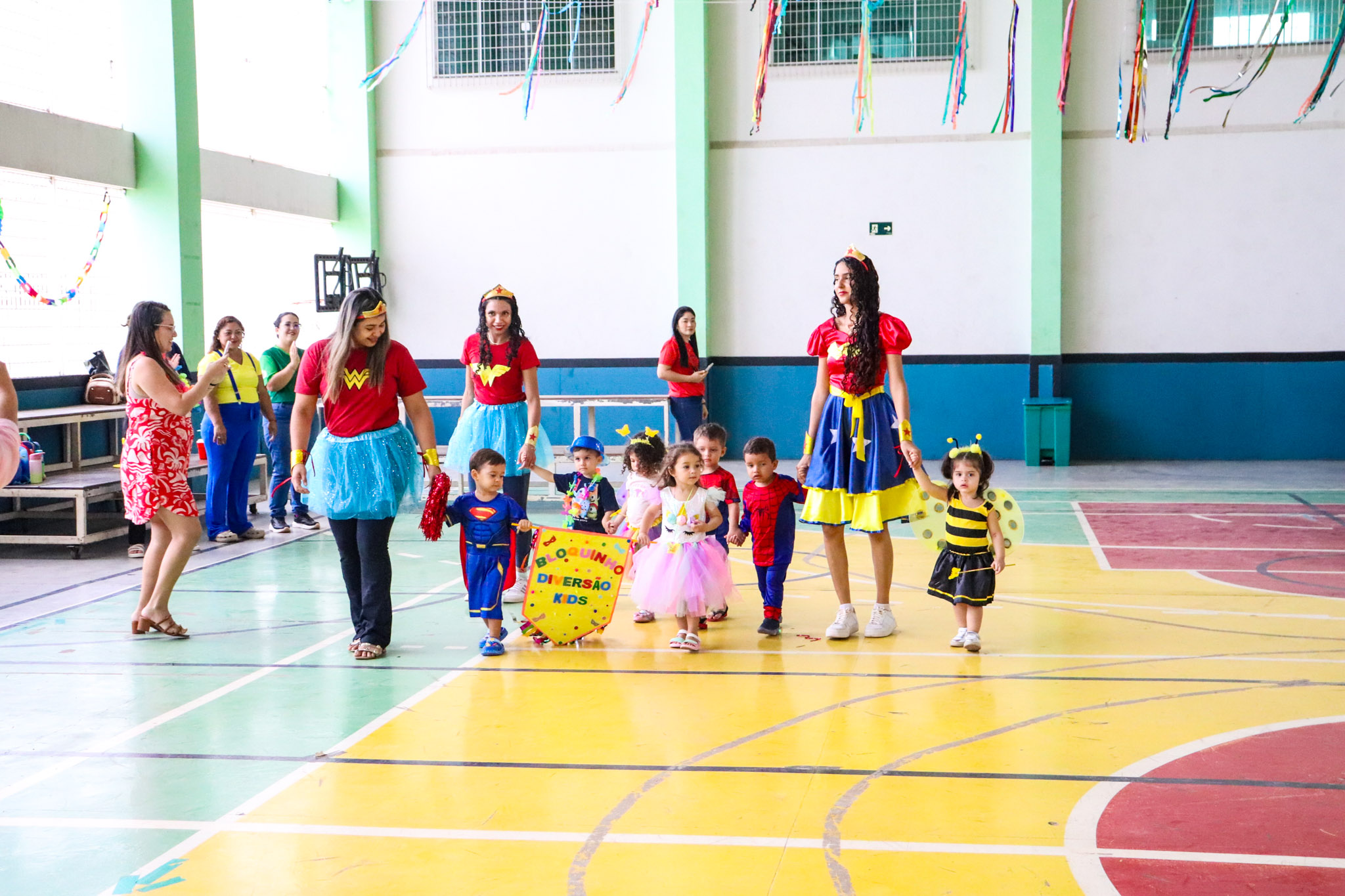 No Ensino Fundamental I, os estudantes também aproveitaram a festa com desfiles, brincadeiras e muita animação, transformando o ginásio em um verdadeiro espaço de celebração e descontração.