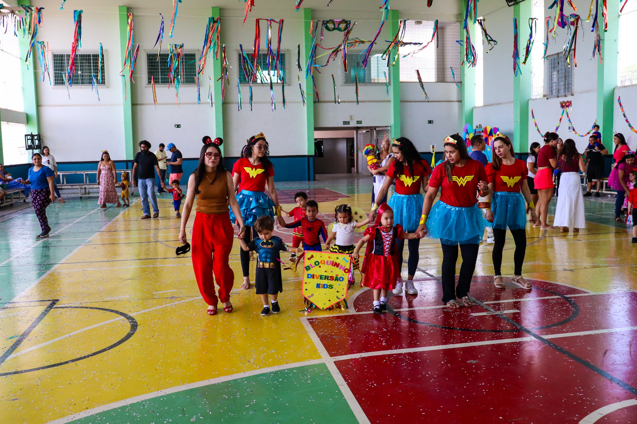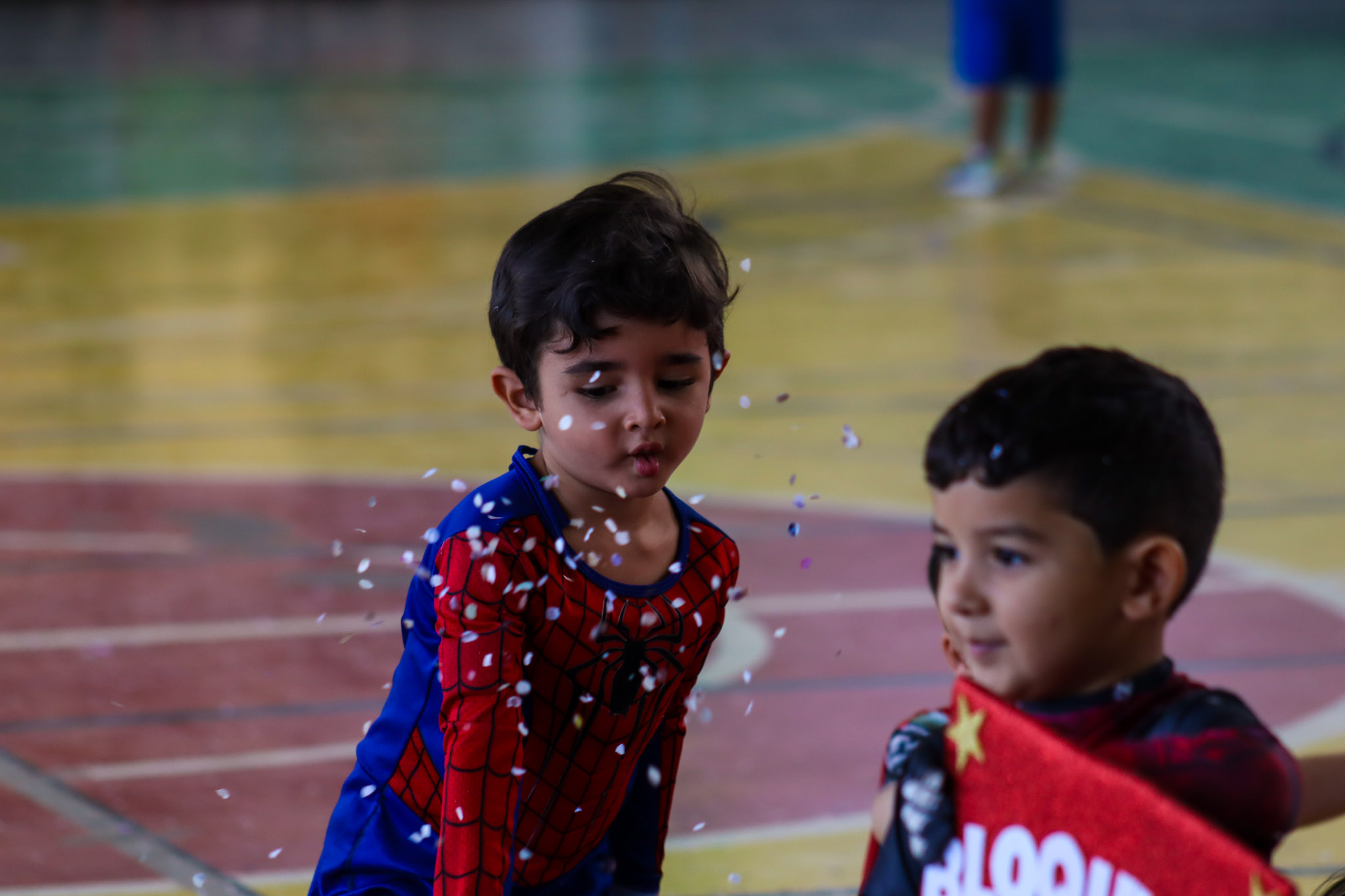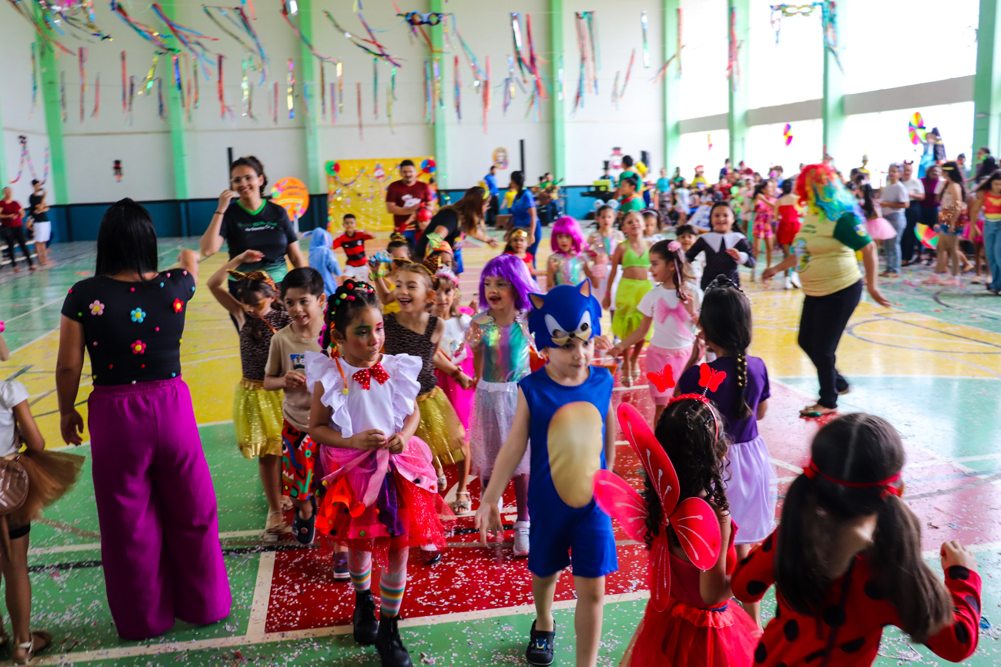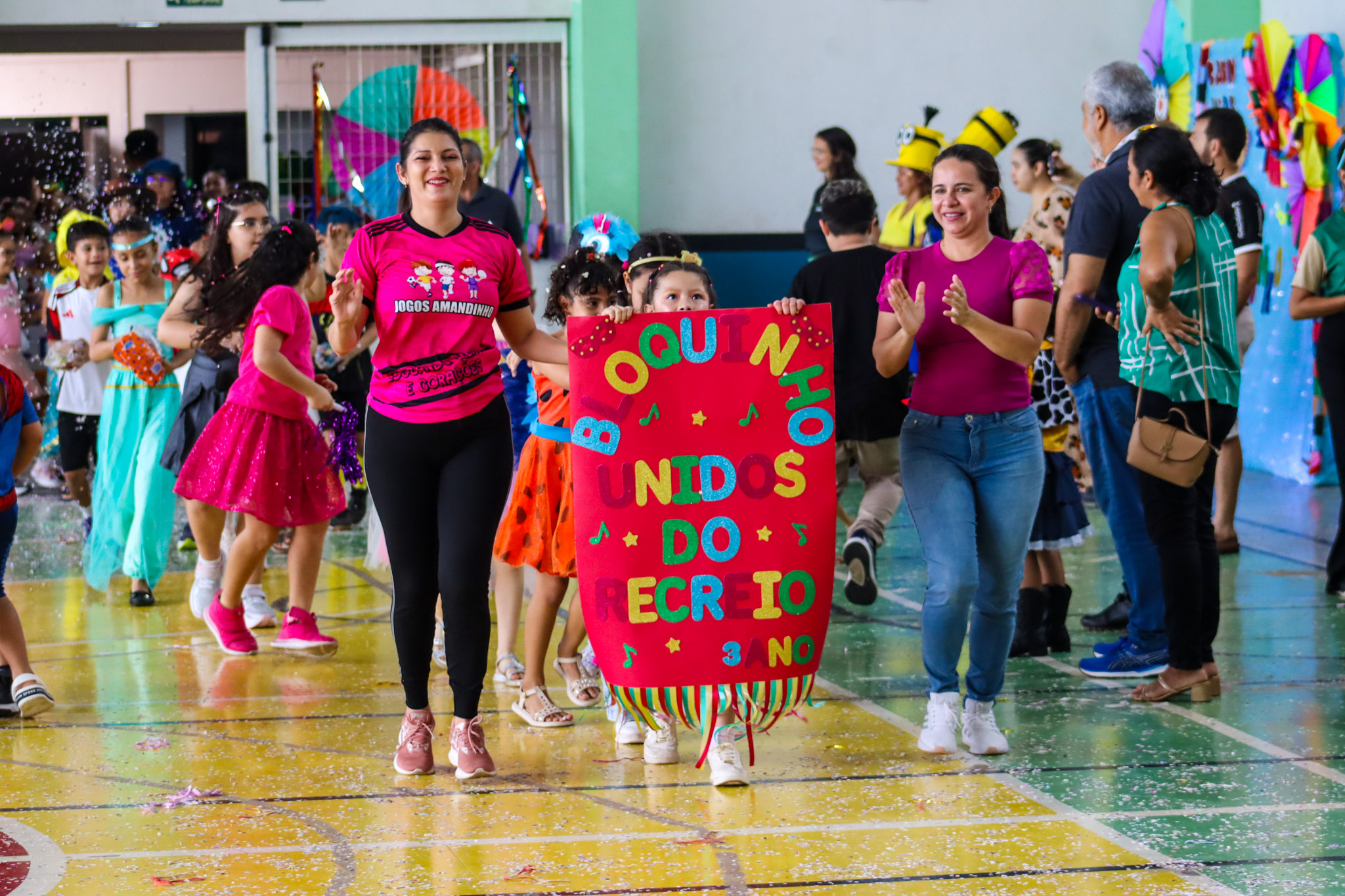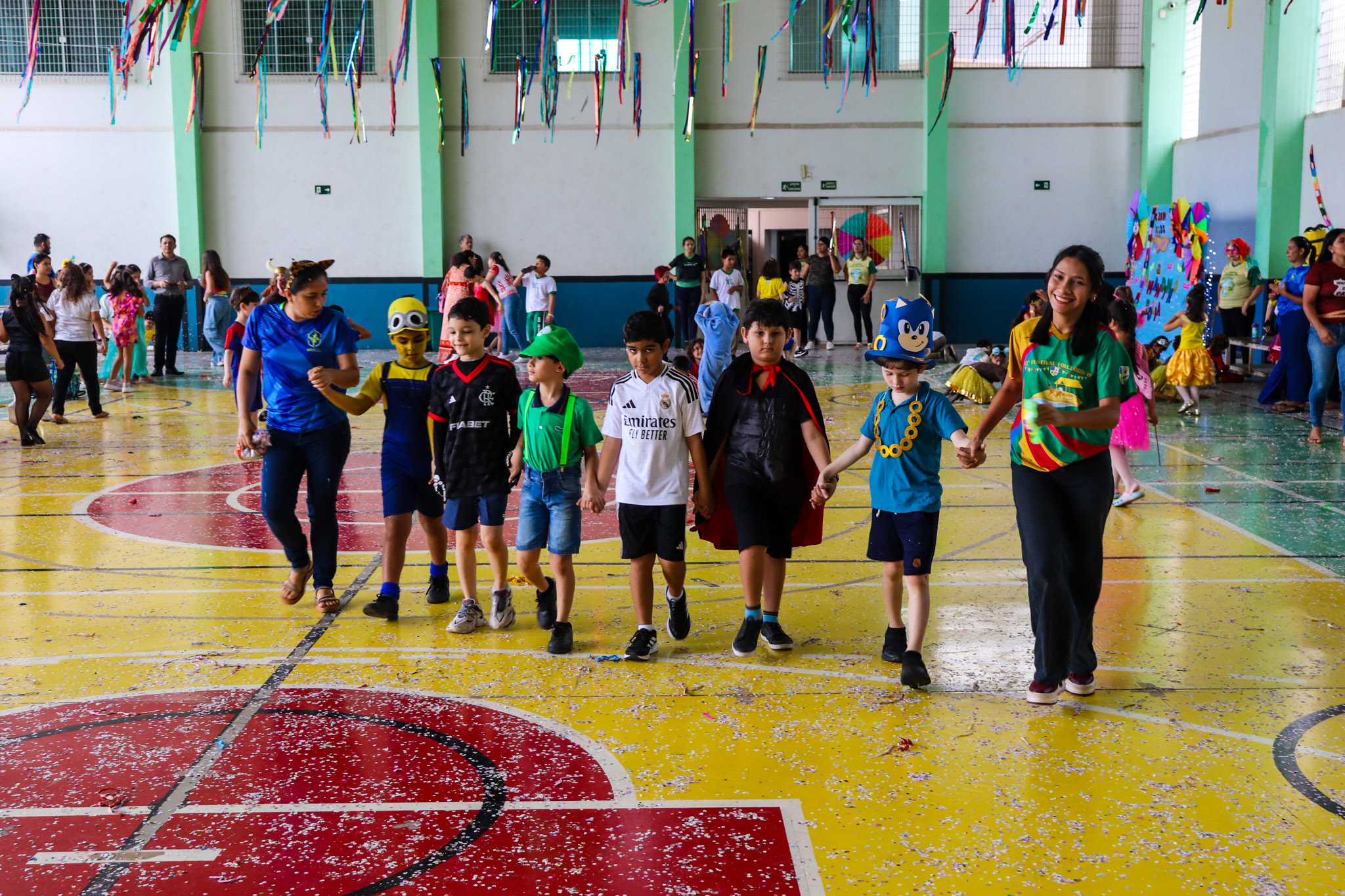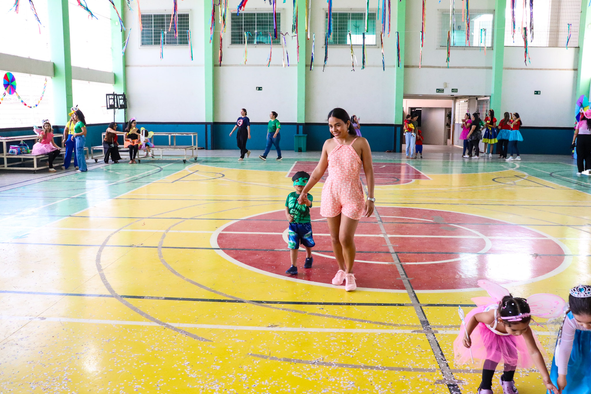 No Ensino Fundamental I, os estudantes também aproveitaram a festa com desfiles, brincadeiras e muita animação, transformando o ginásio em um verdadeiro espaço de celebração e descontração.