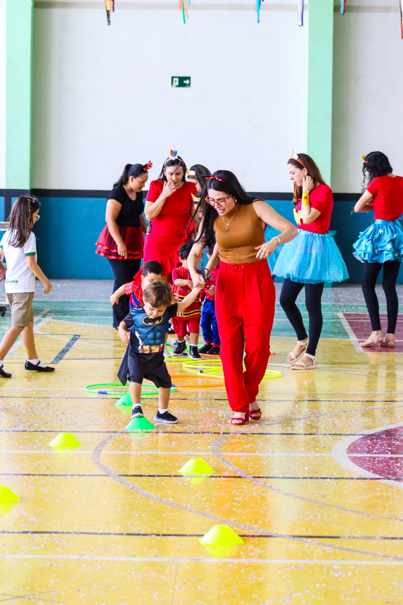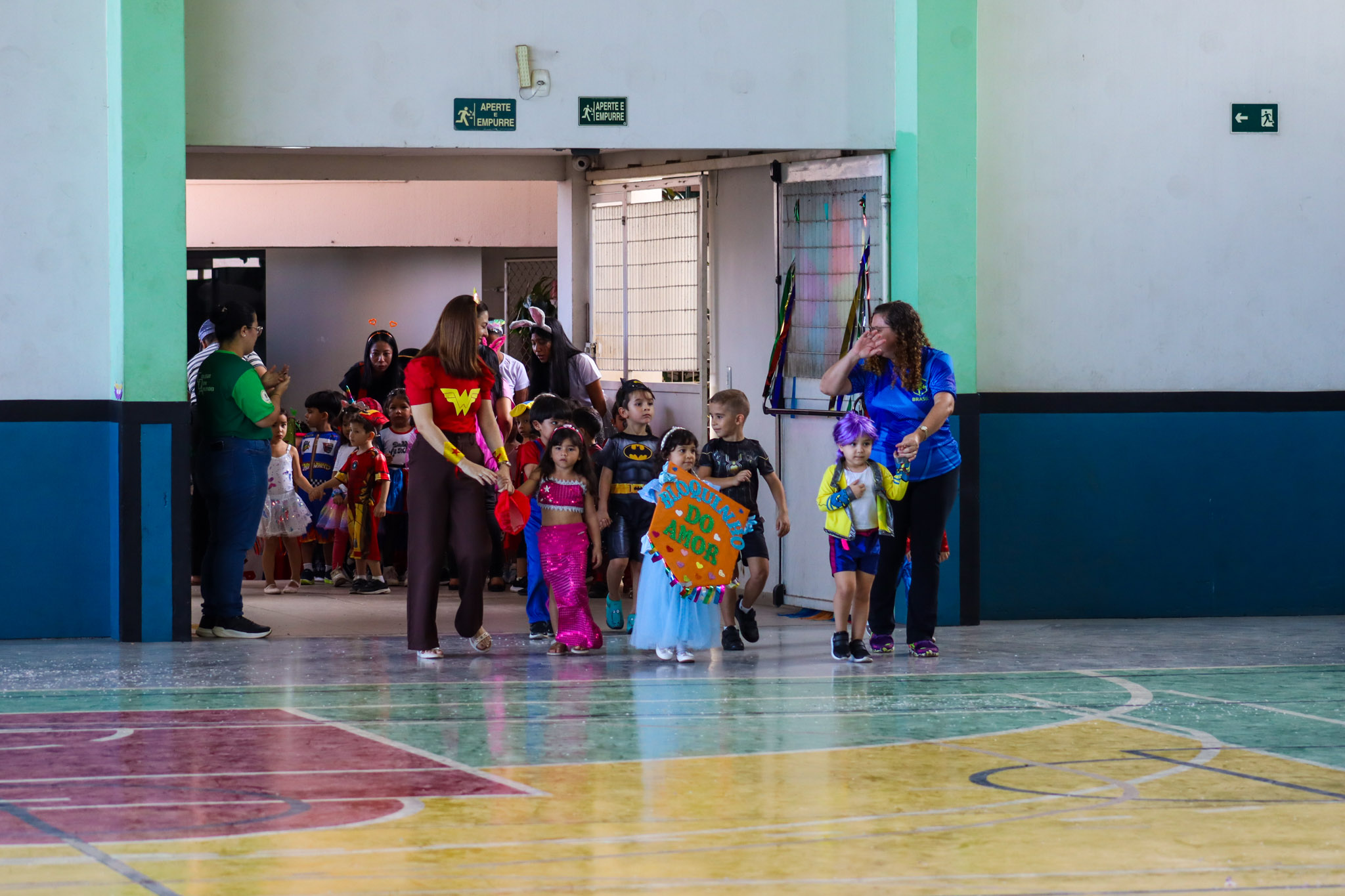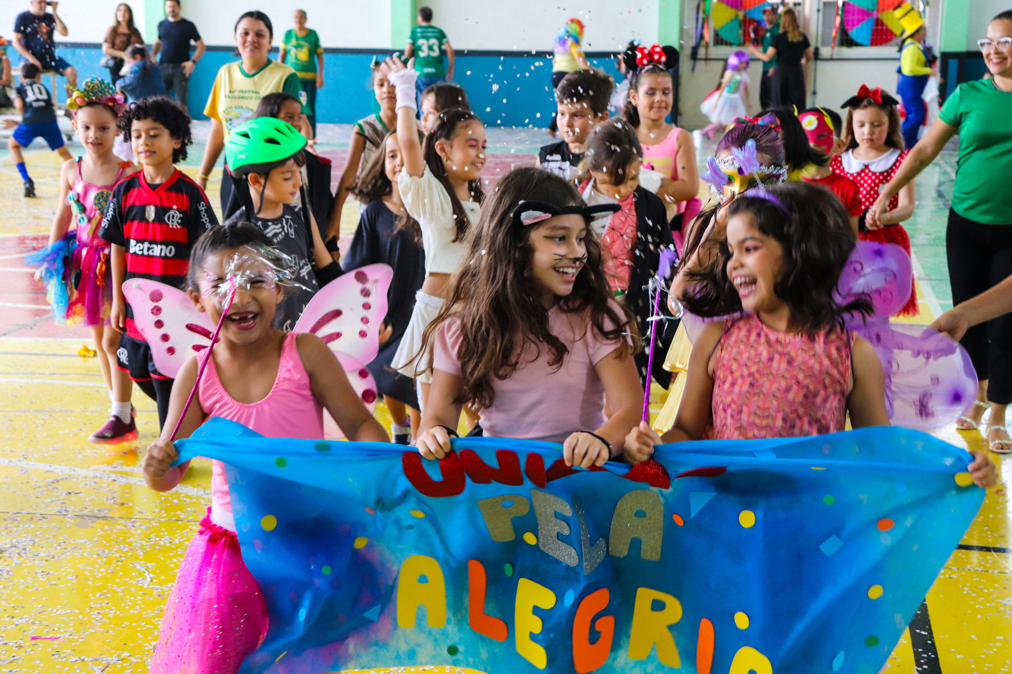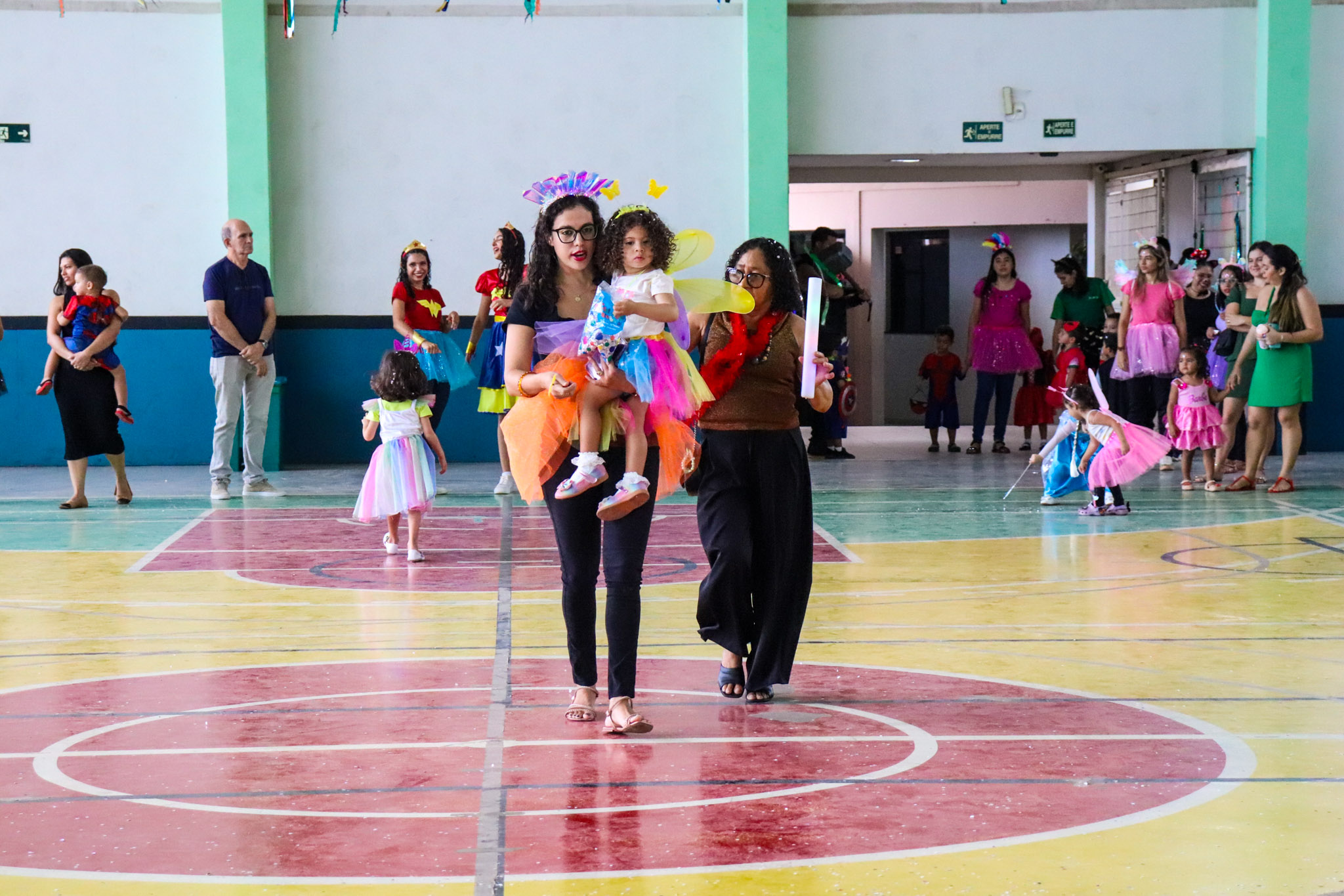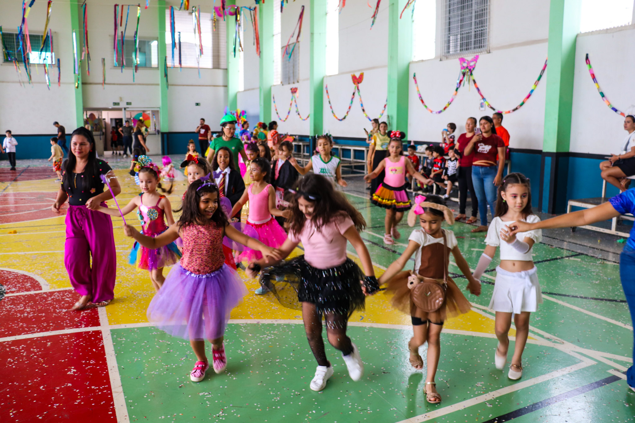 No Ensino Fundamental I, os estudantes também aproveitaram a festa com desfiles, brincadeiras e muita animação, transformando o ginásio em um verdadeiro espaço de celebração e descontração.