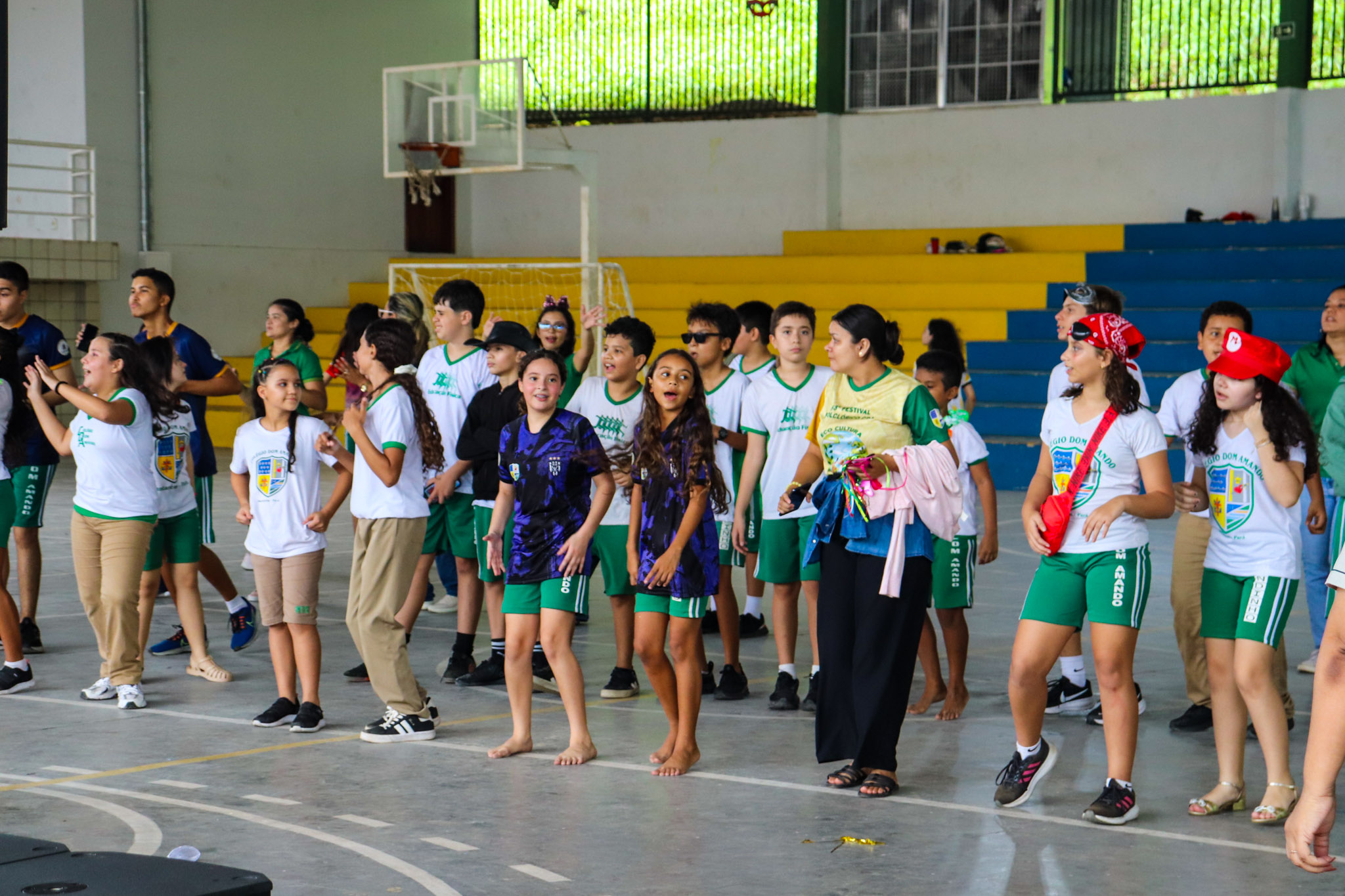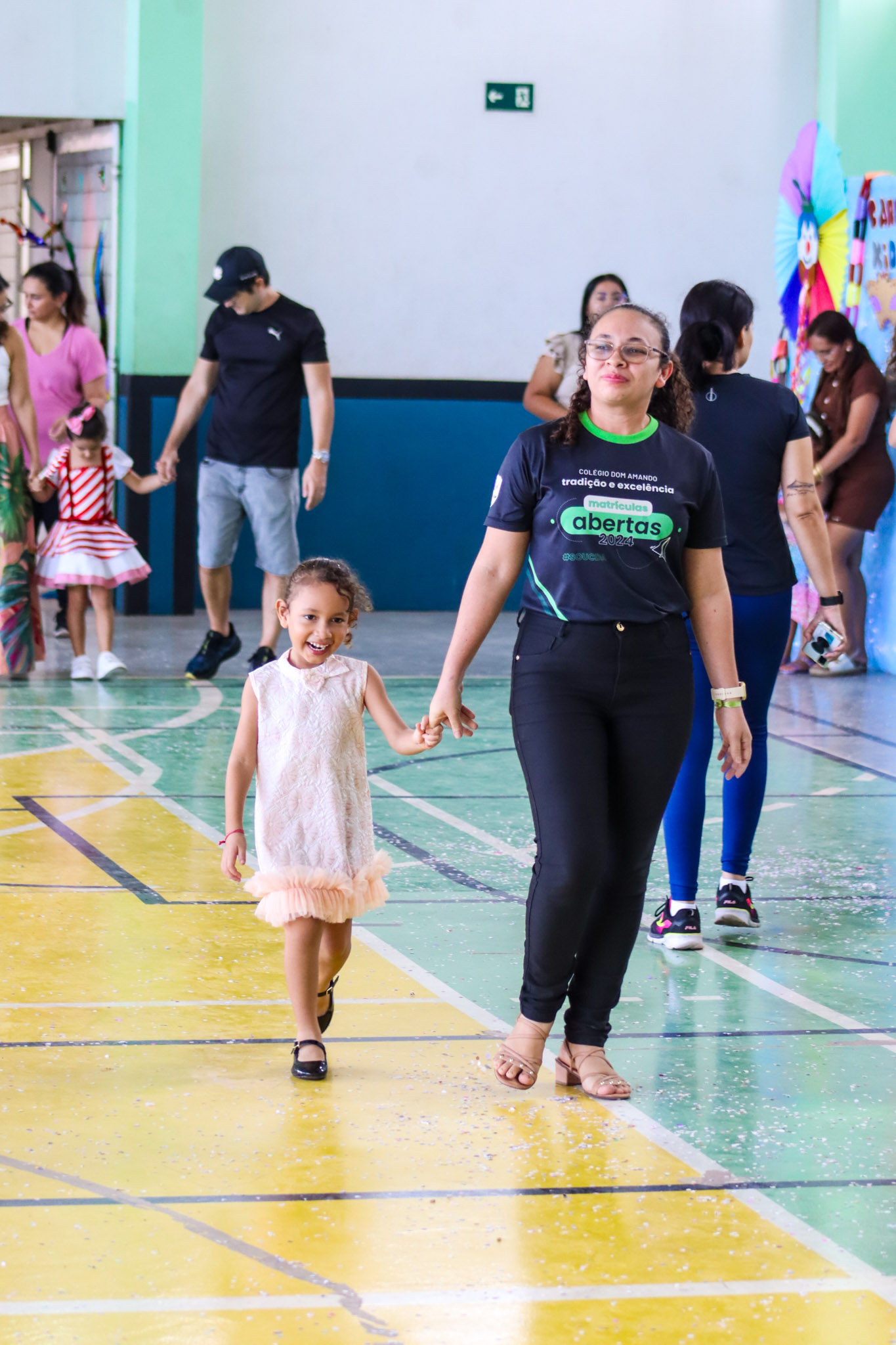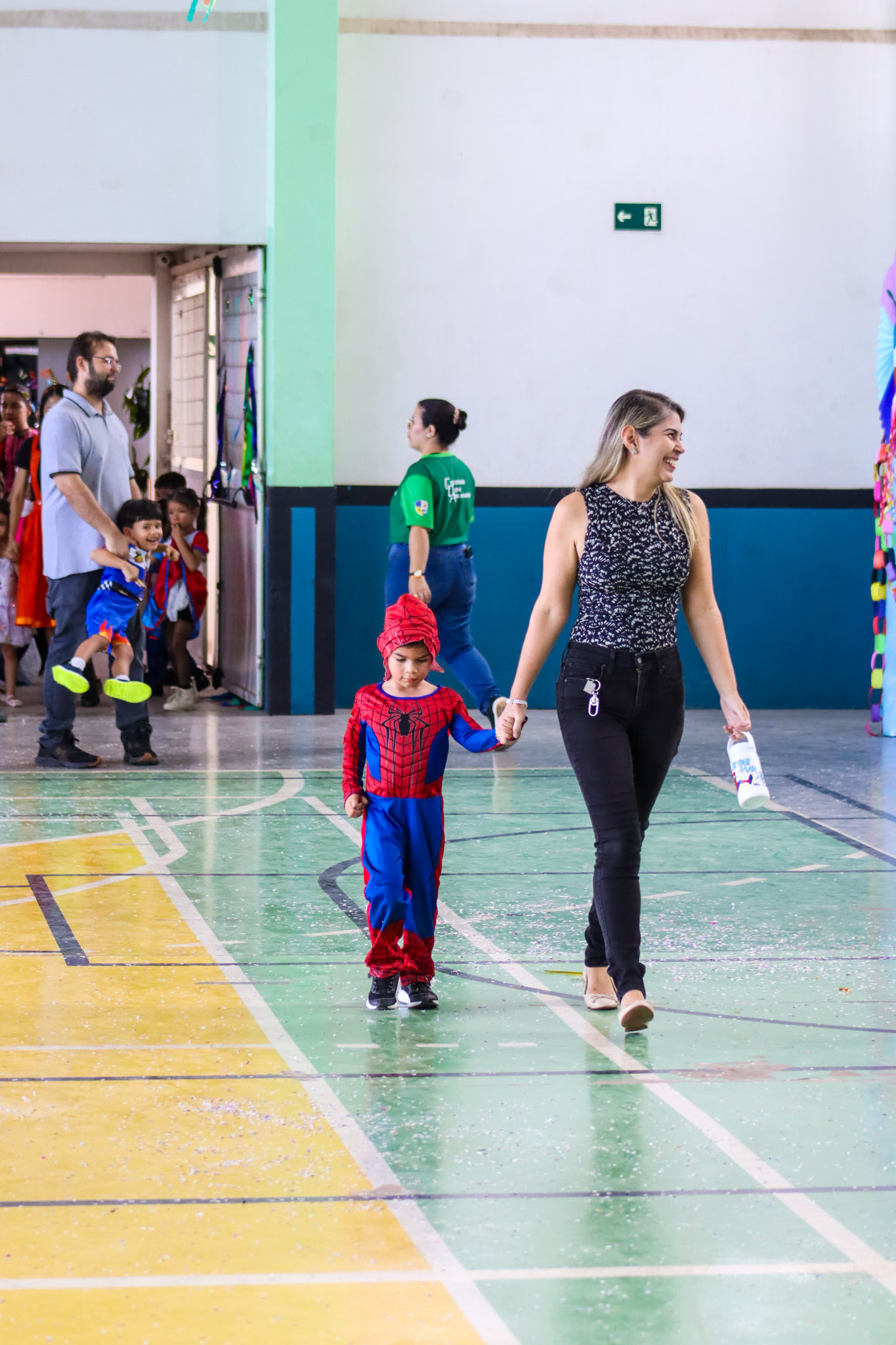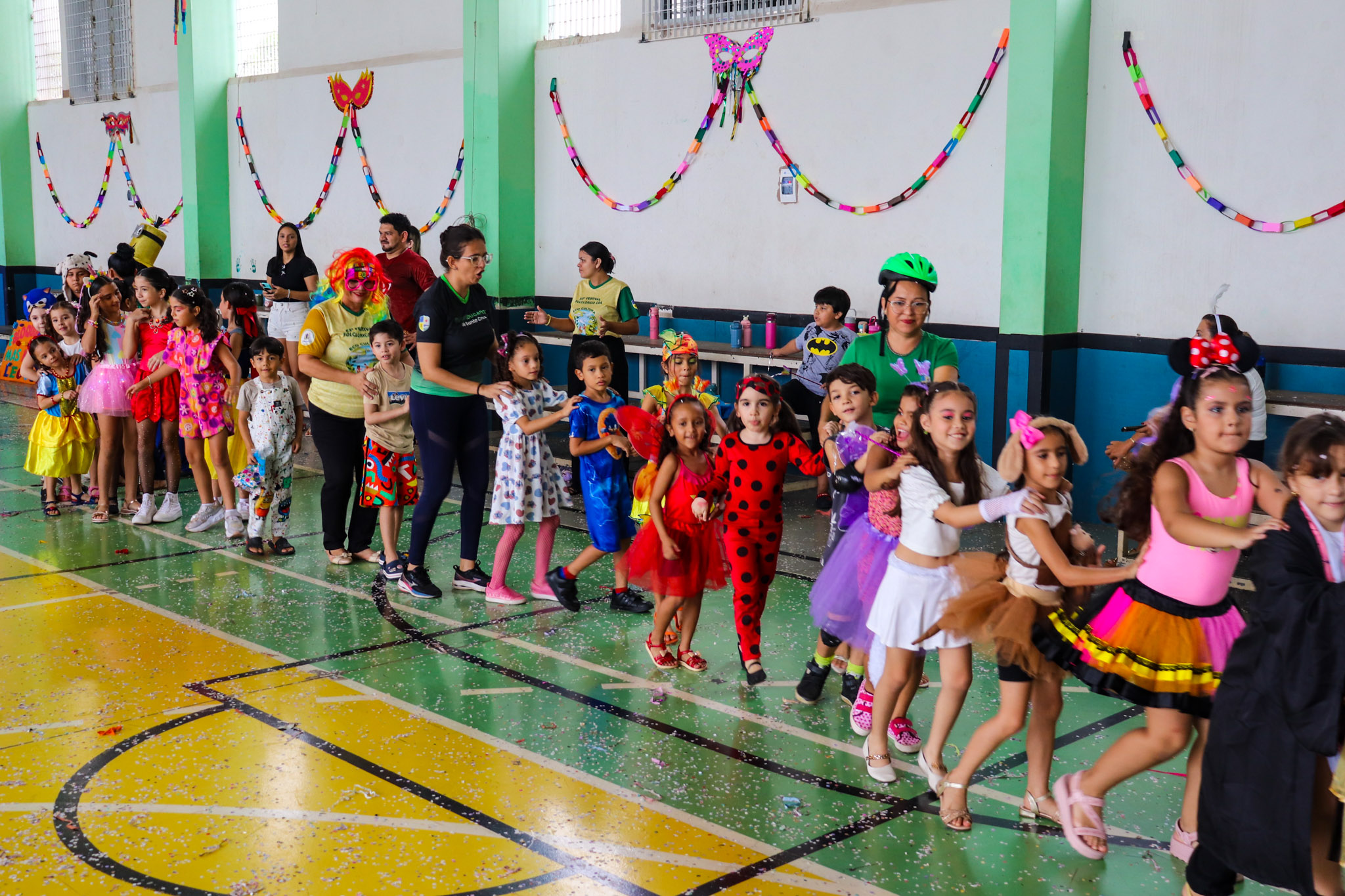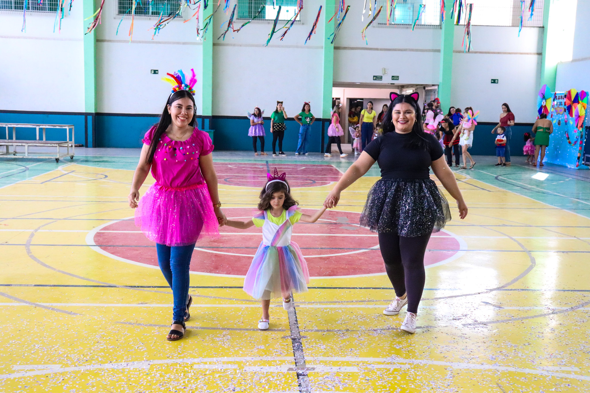 No Ensino Fundamental I, os estudantes também aproveitaram a festa com desfiles, brincadeiras e muita animação, transformando o ginásio em um verdadeiro espaço de celebração e descontração.