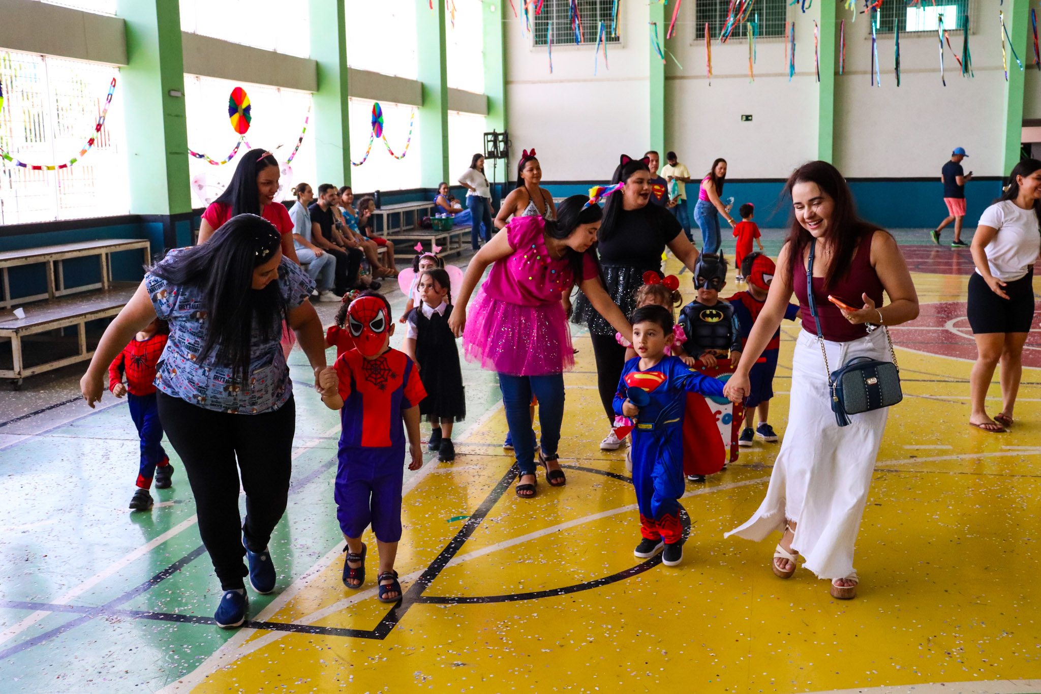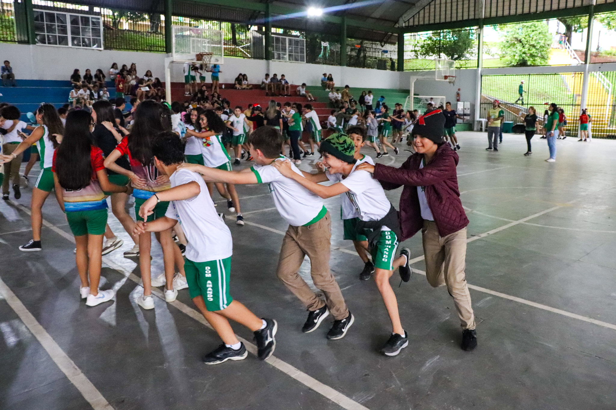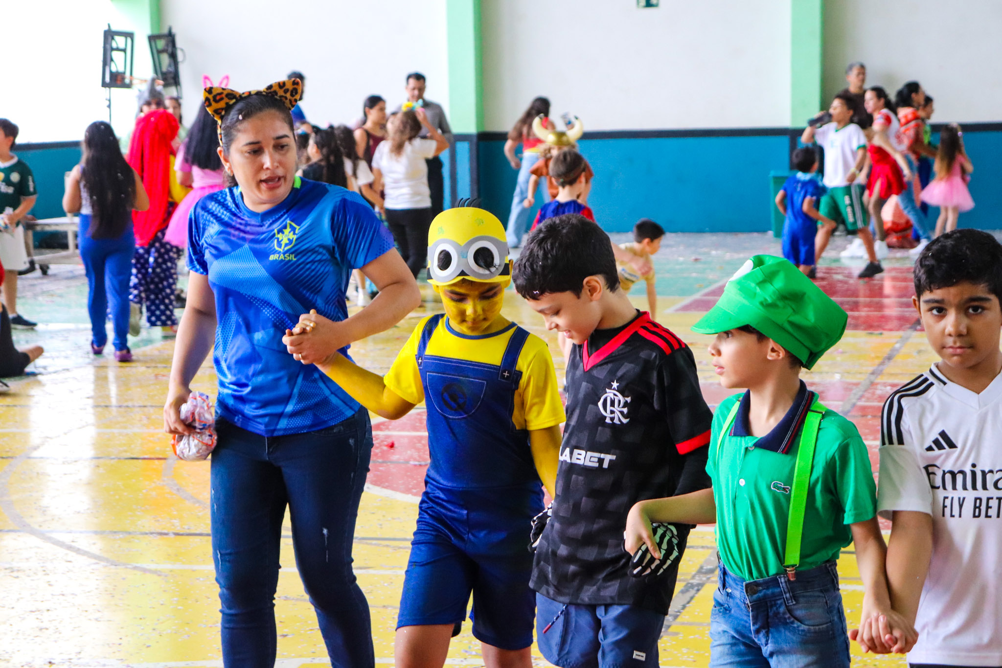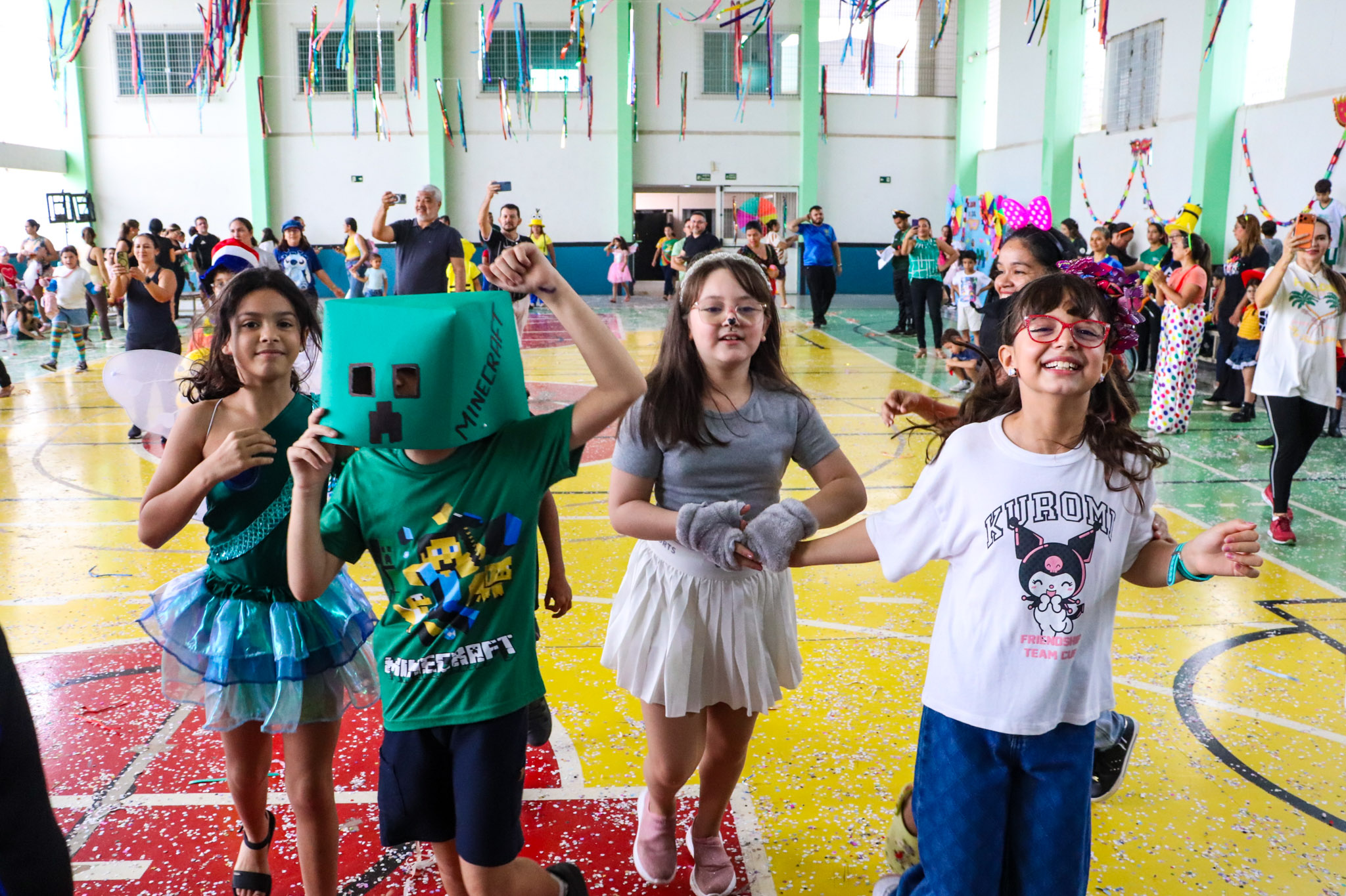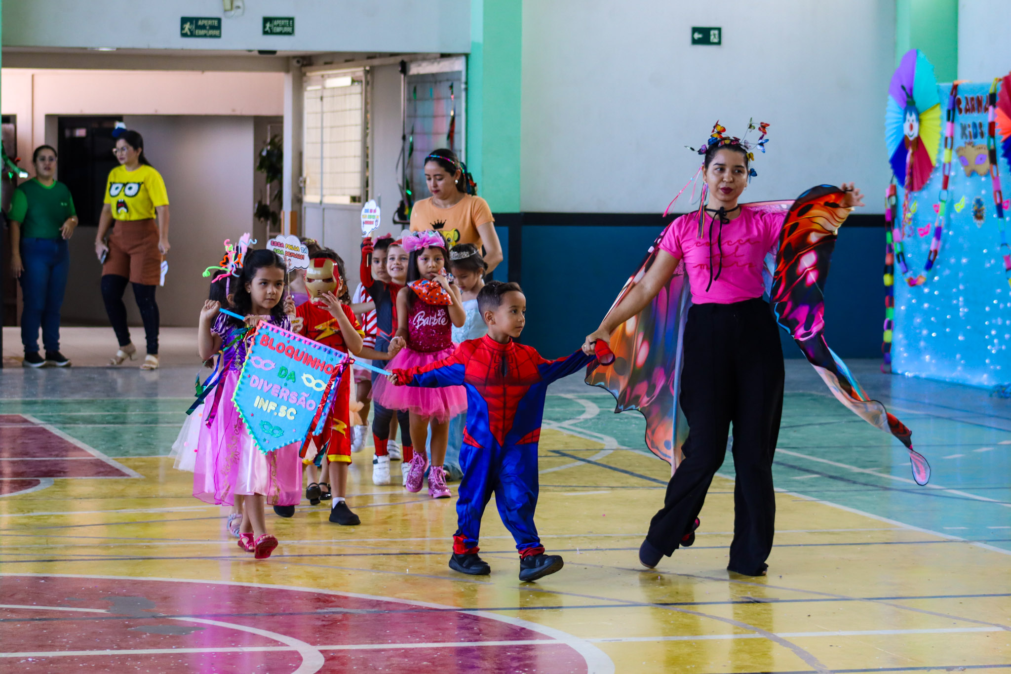 No Ensino Fundamental I, os estudantes também aproveitaram a festa com desfiles, brincadeiras e muita animação, transformando o ginásio em um verdadeiro espaço de celebração e descontração.