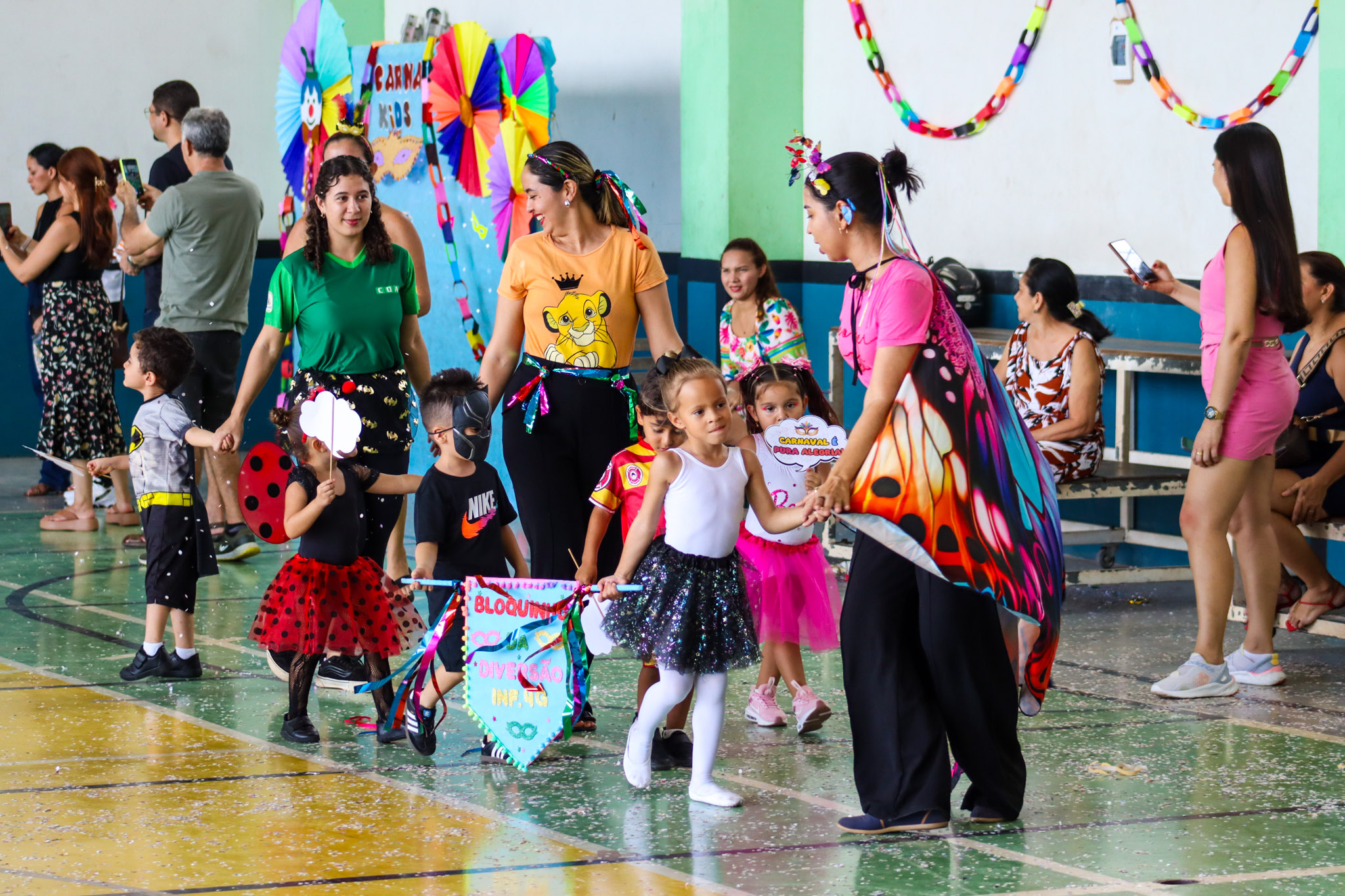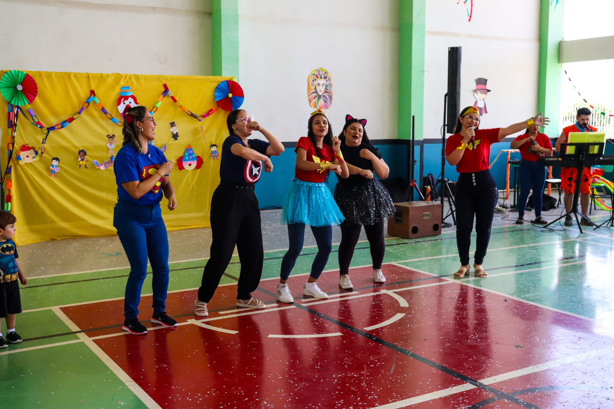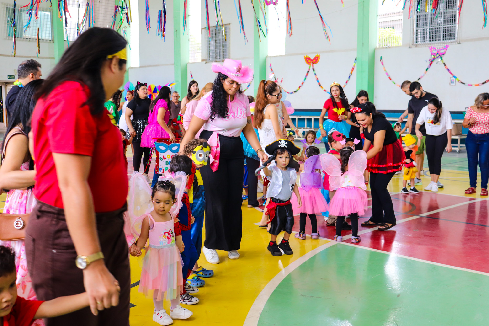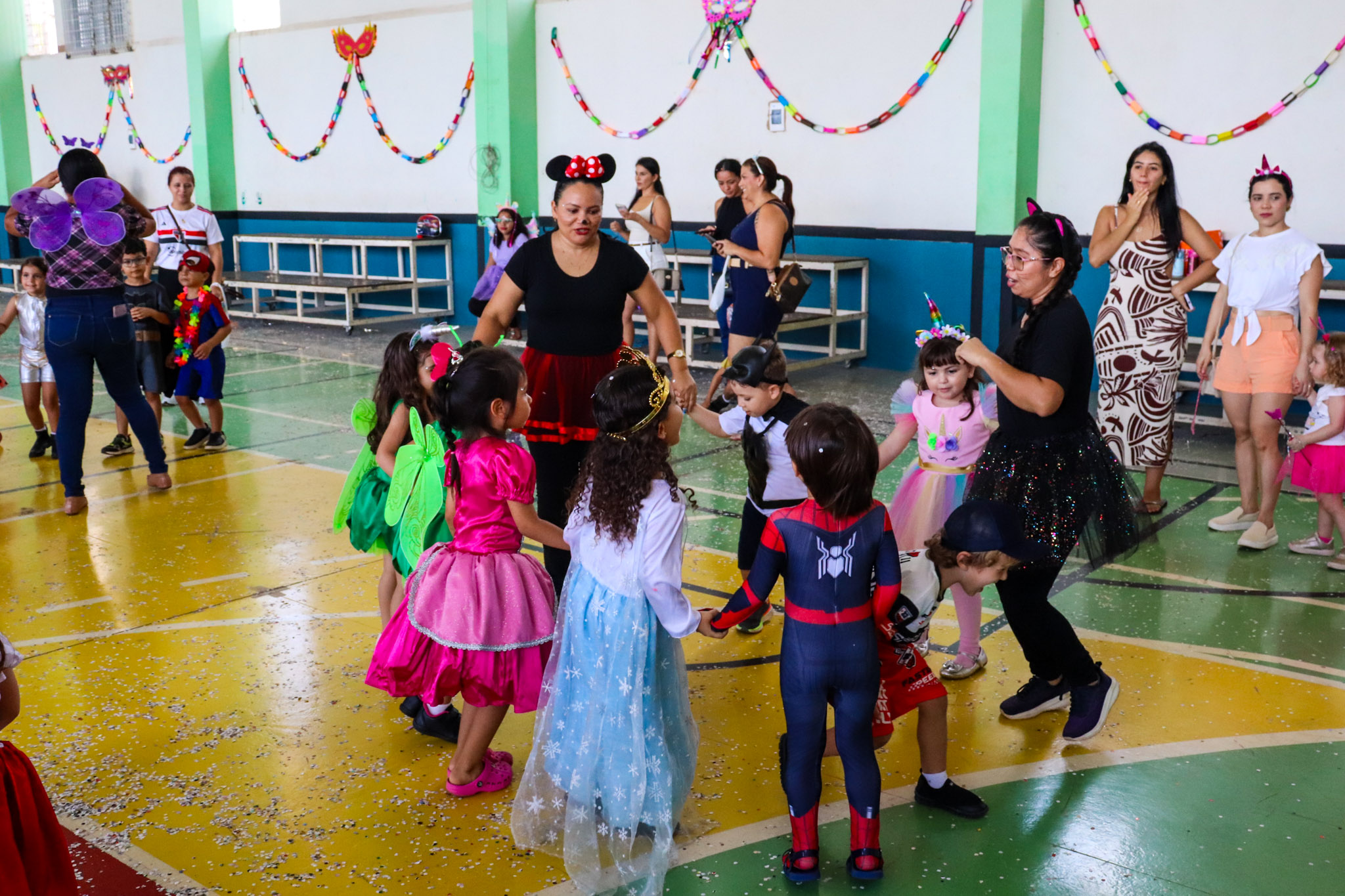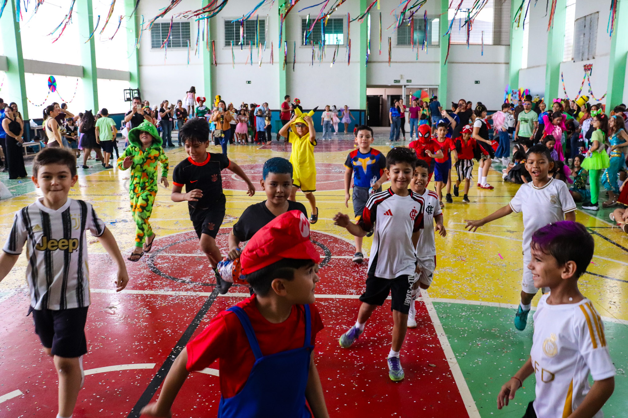 No Ensino Fundamental I, os estudantes também aproveitaram a festa com desfiles, brincadeiras e muita animação, transformando o ginásio em um verdadeiro espaço de celebração e descontração.