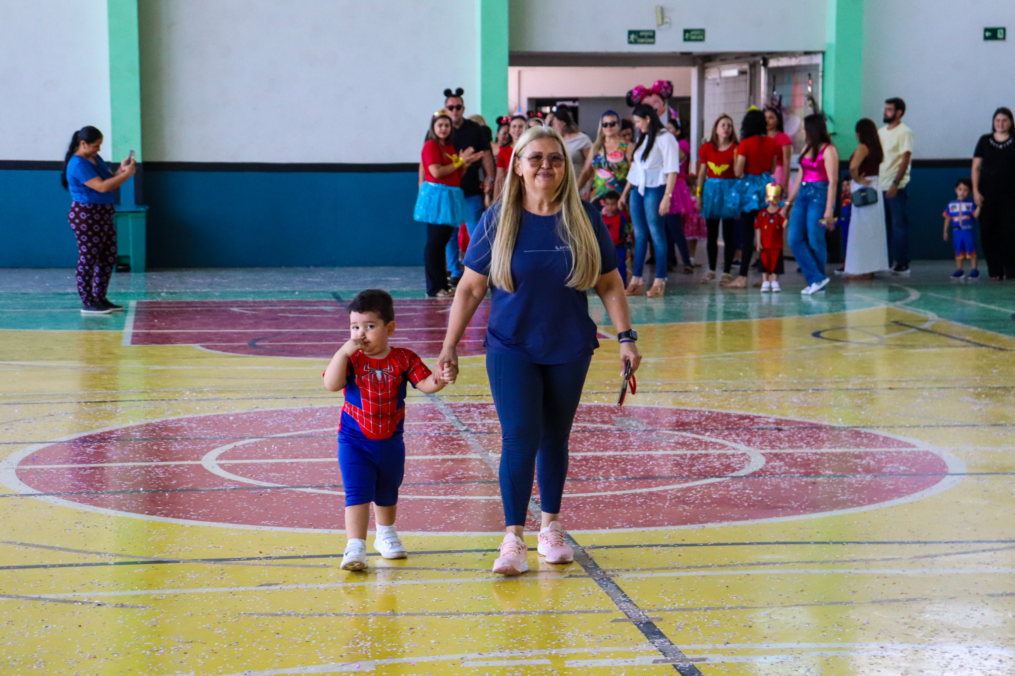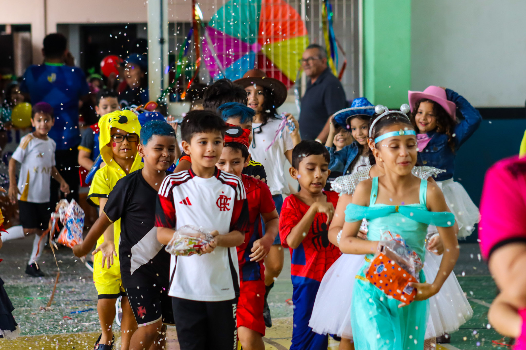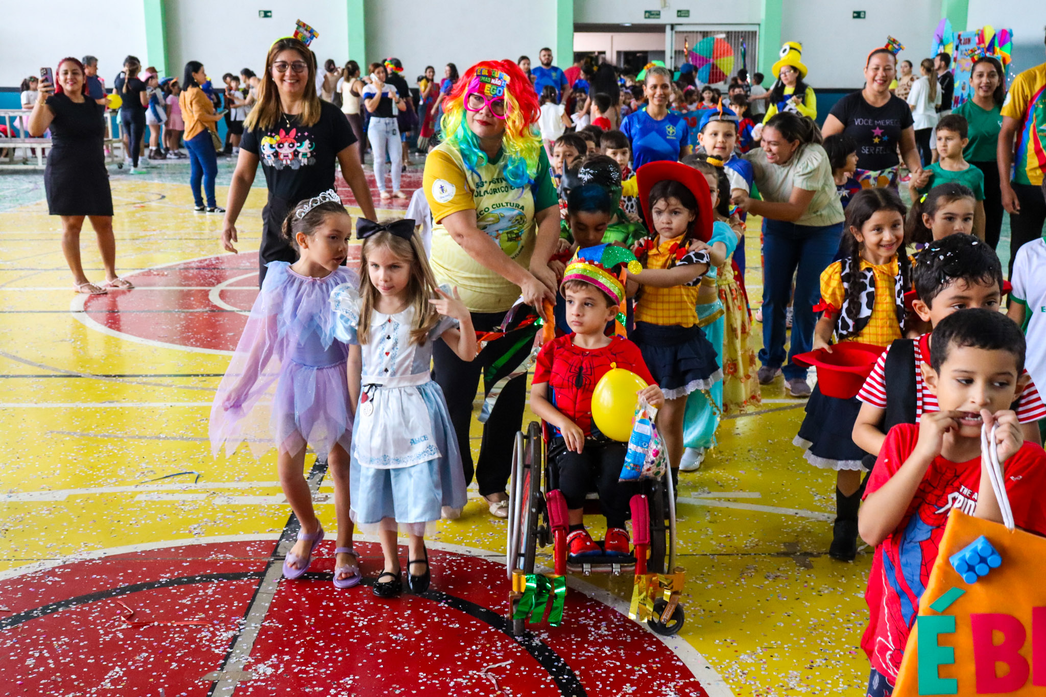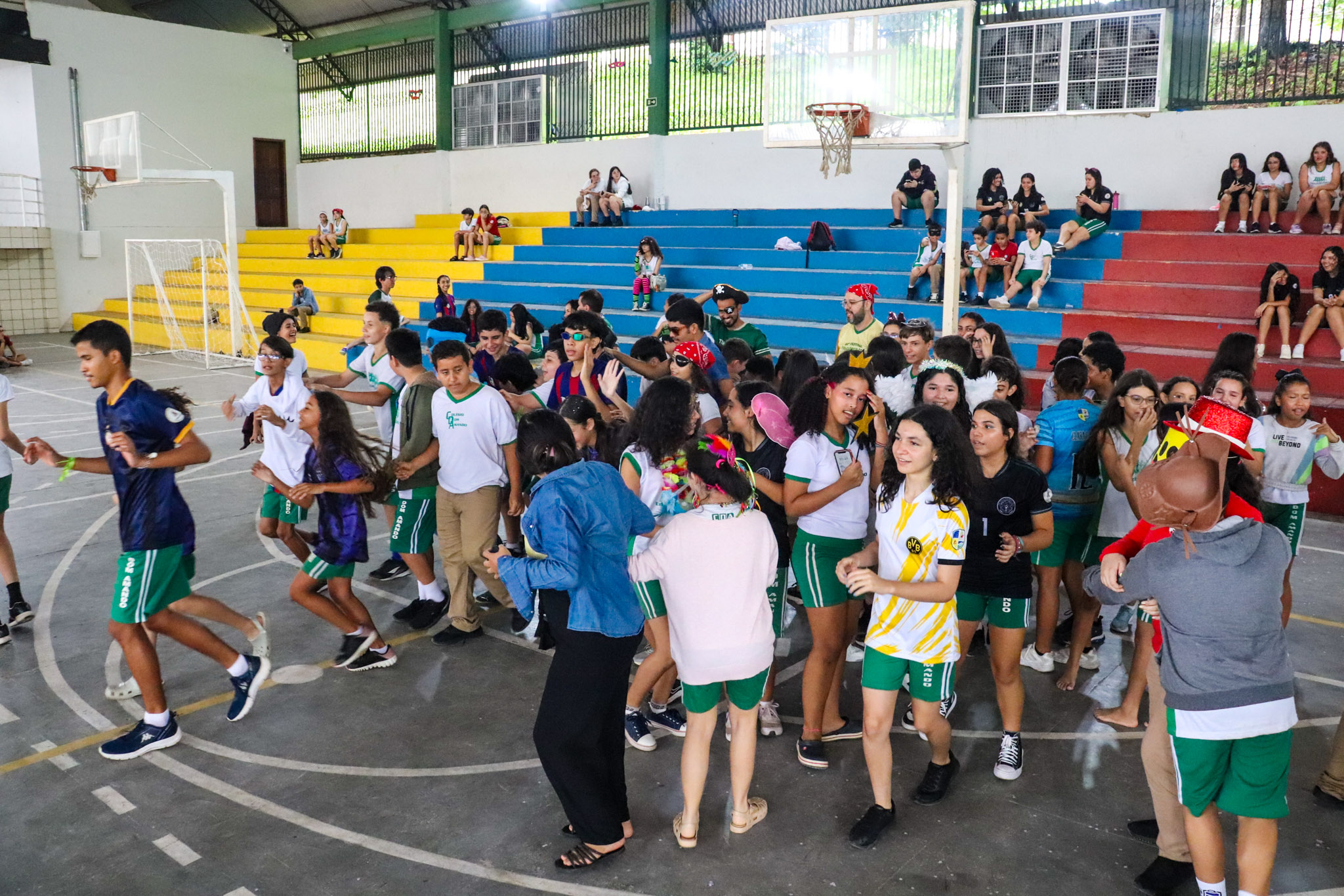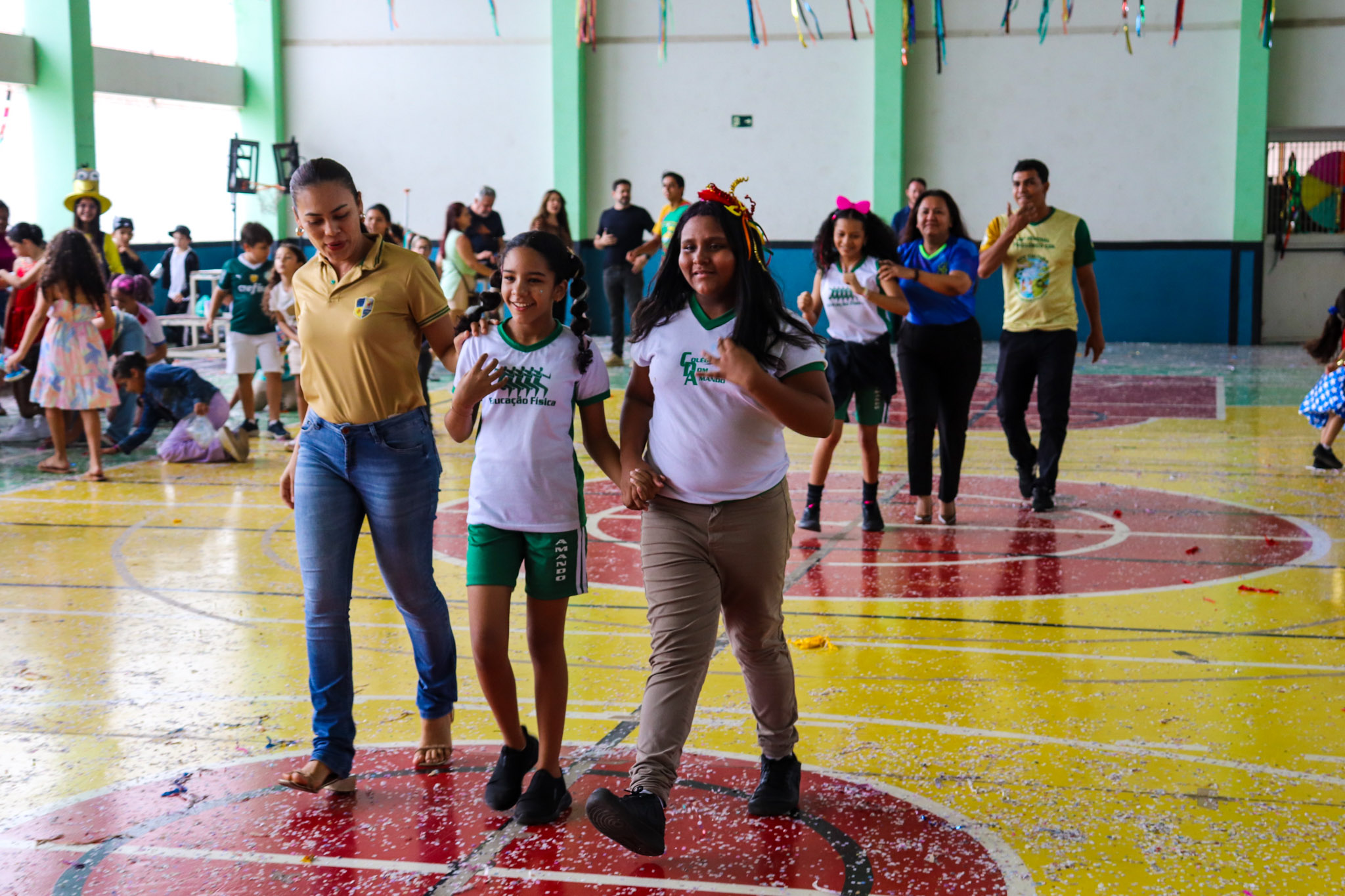 No Ensino Fundamental I, os estudantes também aproveitaram a festa com desfiles, brincadeiras e muita animação, transformando o ginásio em um verdadeiro espaço de celebração e descontração.