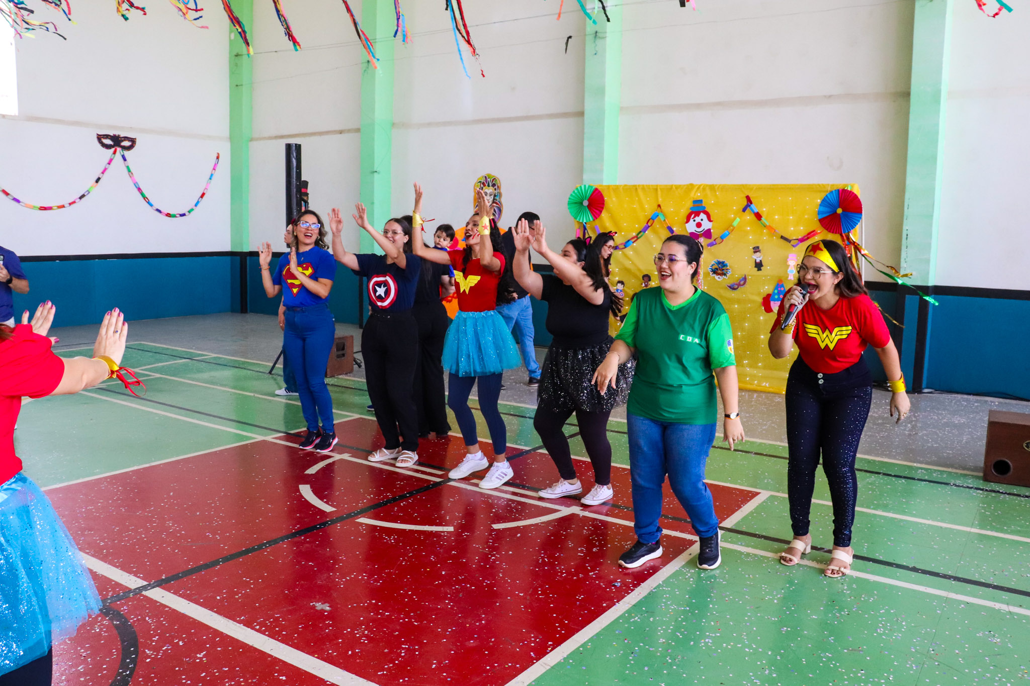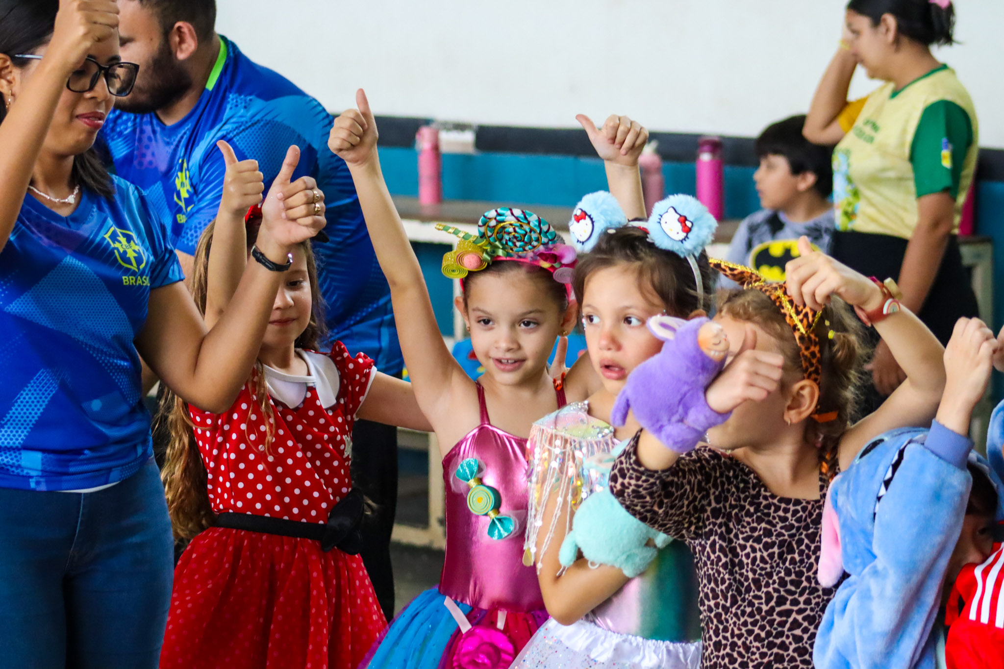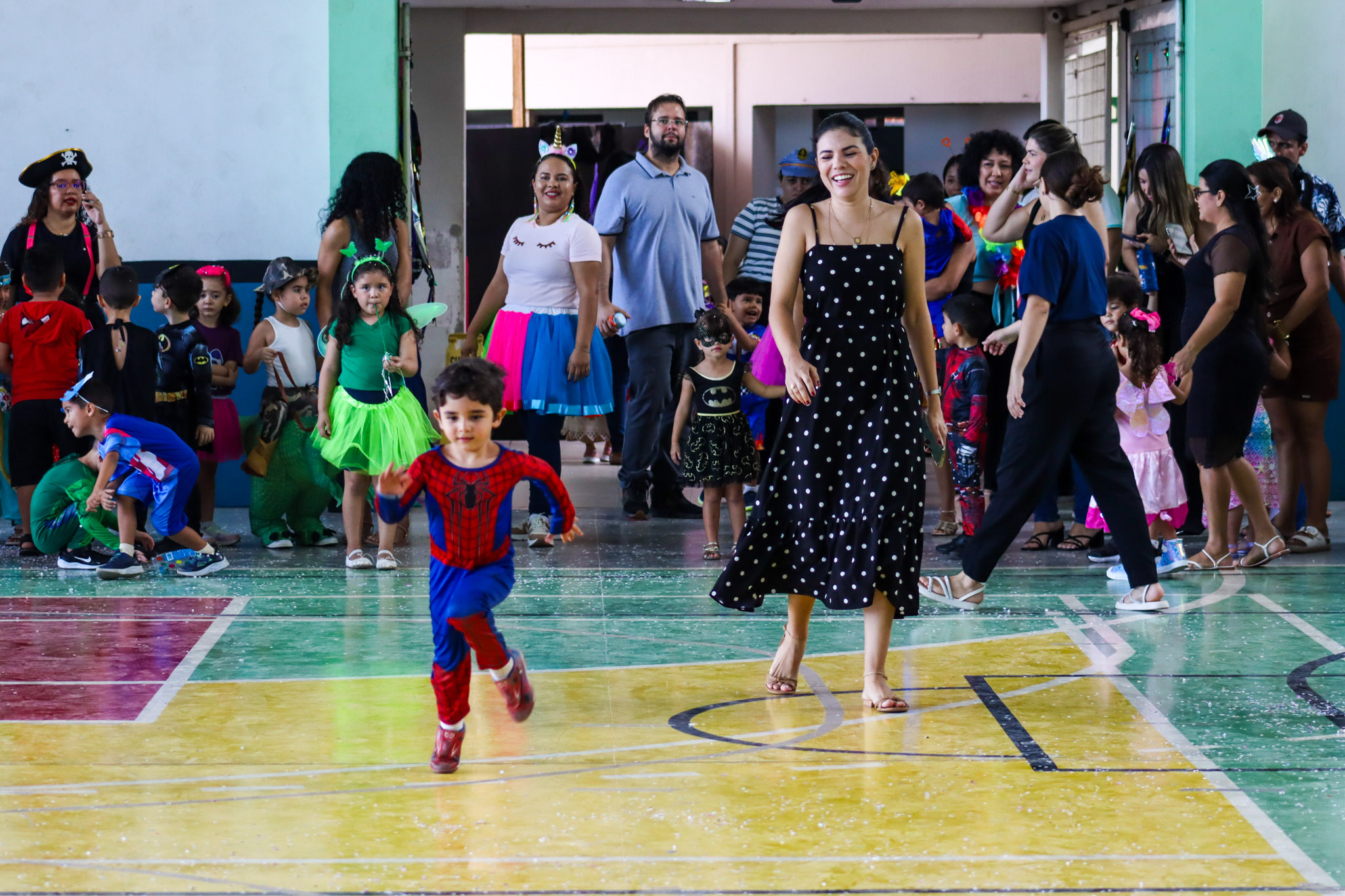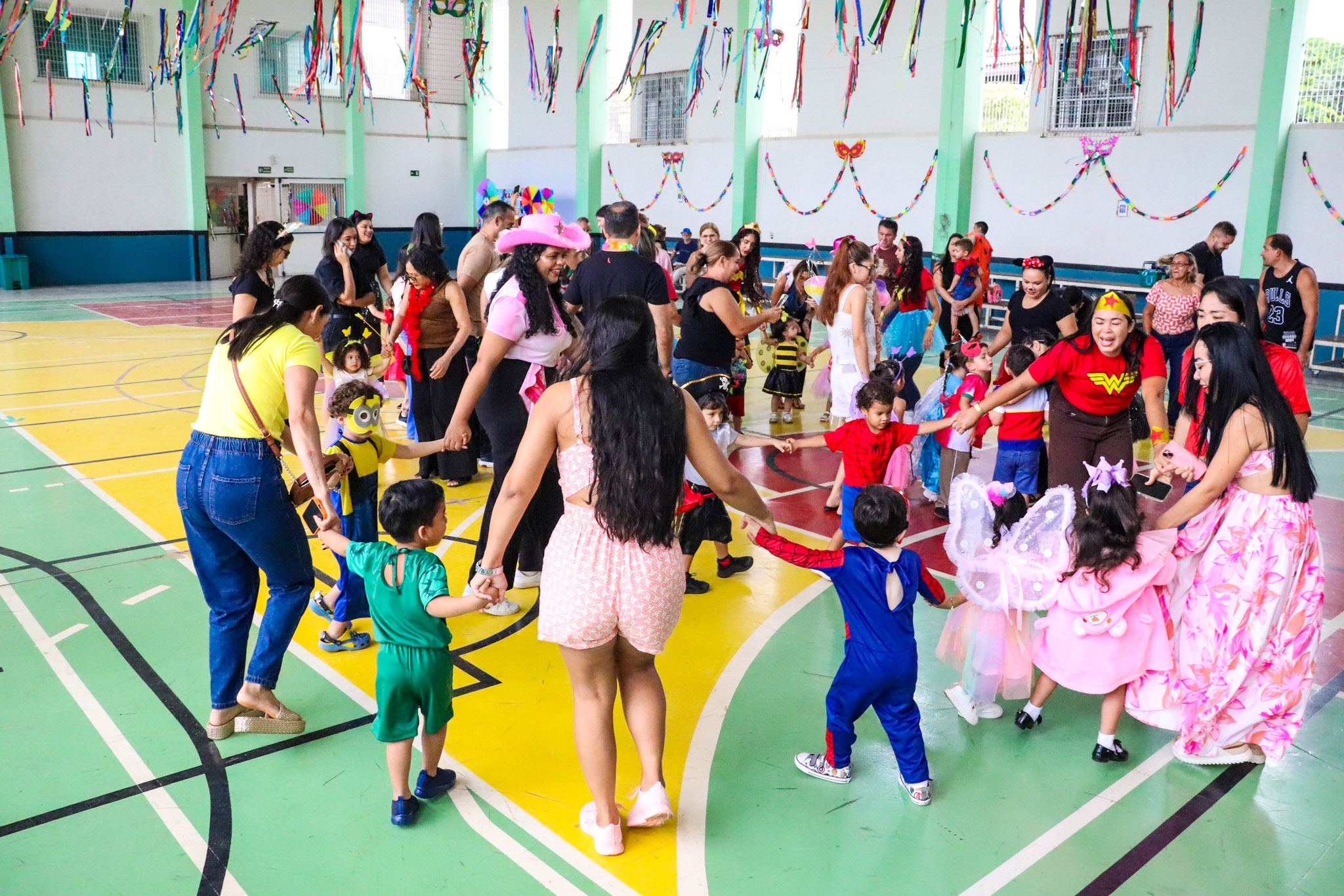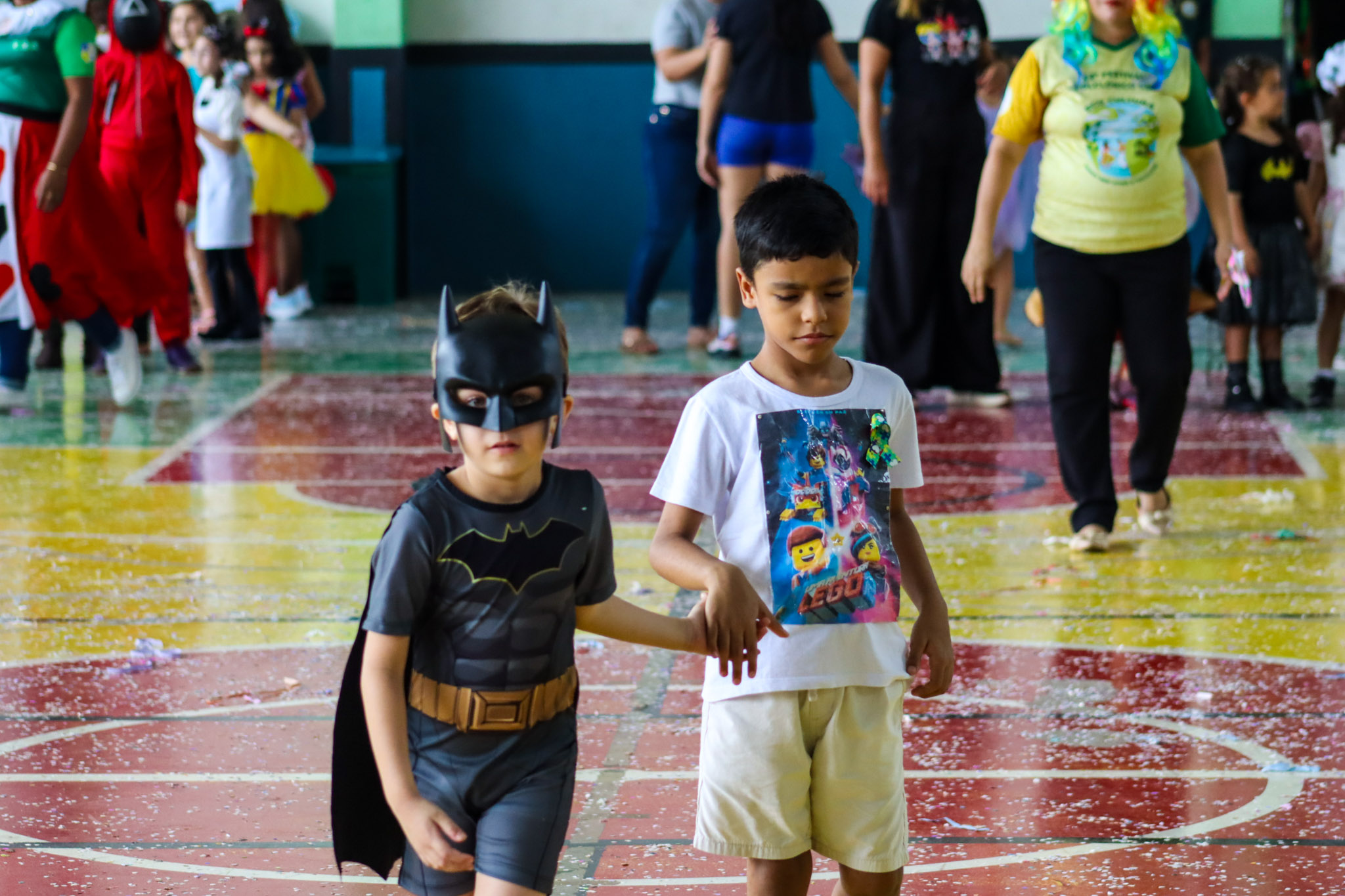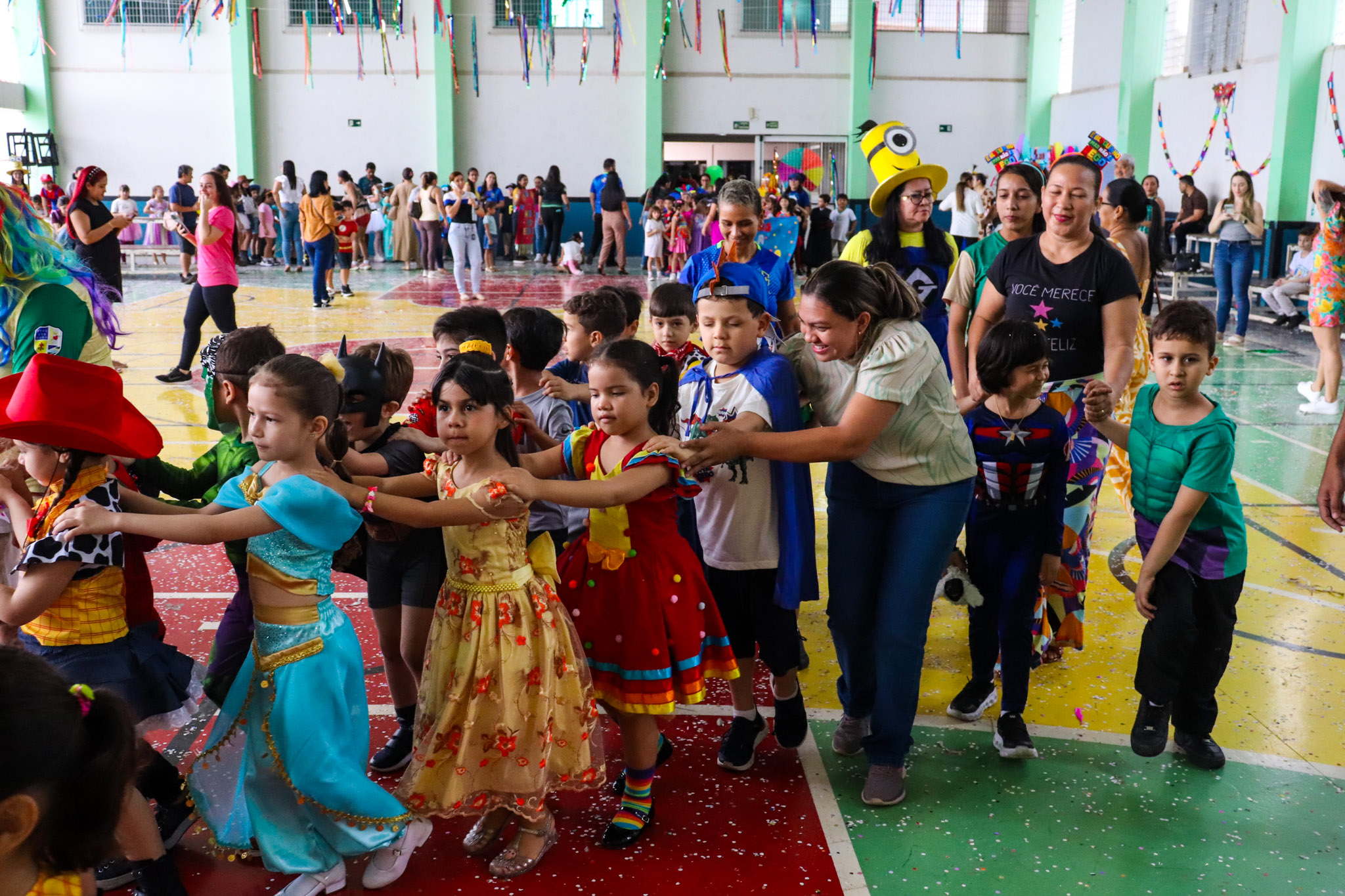 No Ensino Fundamental I, os estudantes também aproveitaram a festa com desfiles, brincadeiras e muita animação, transformando o ginásio em um verdadeiro espaço de celebração e descontração.