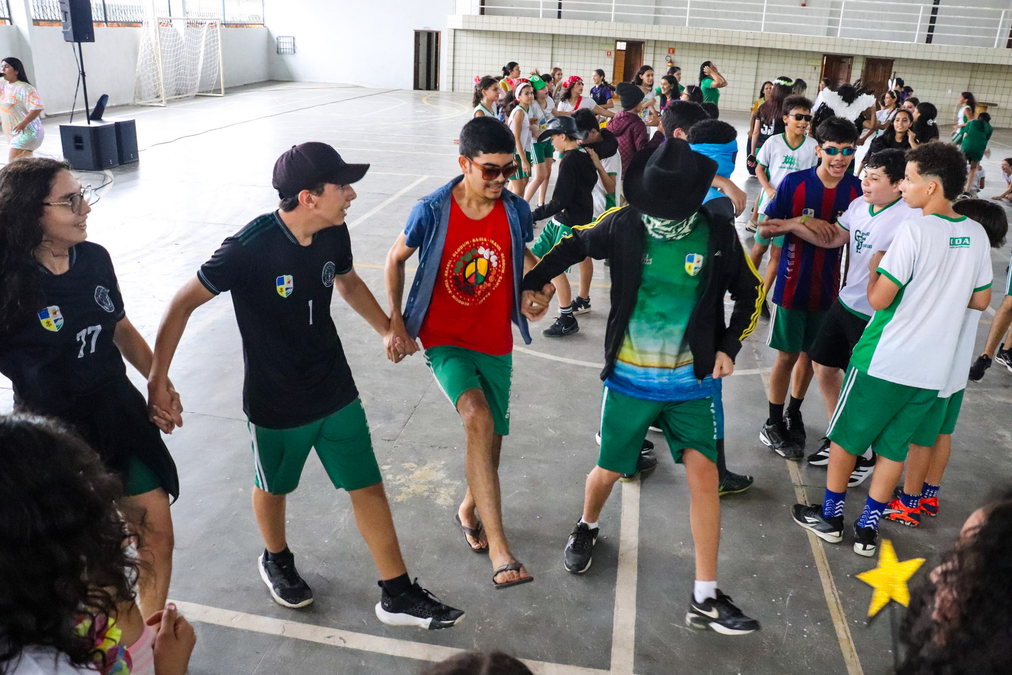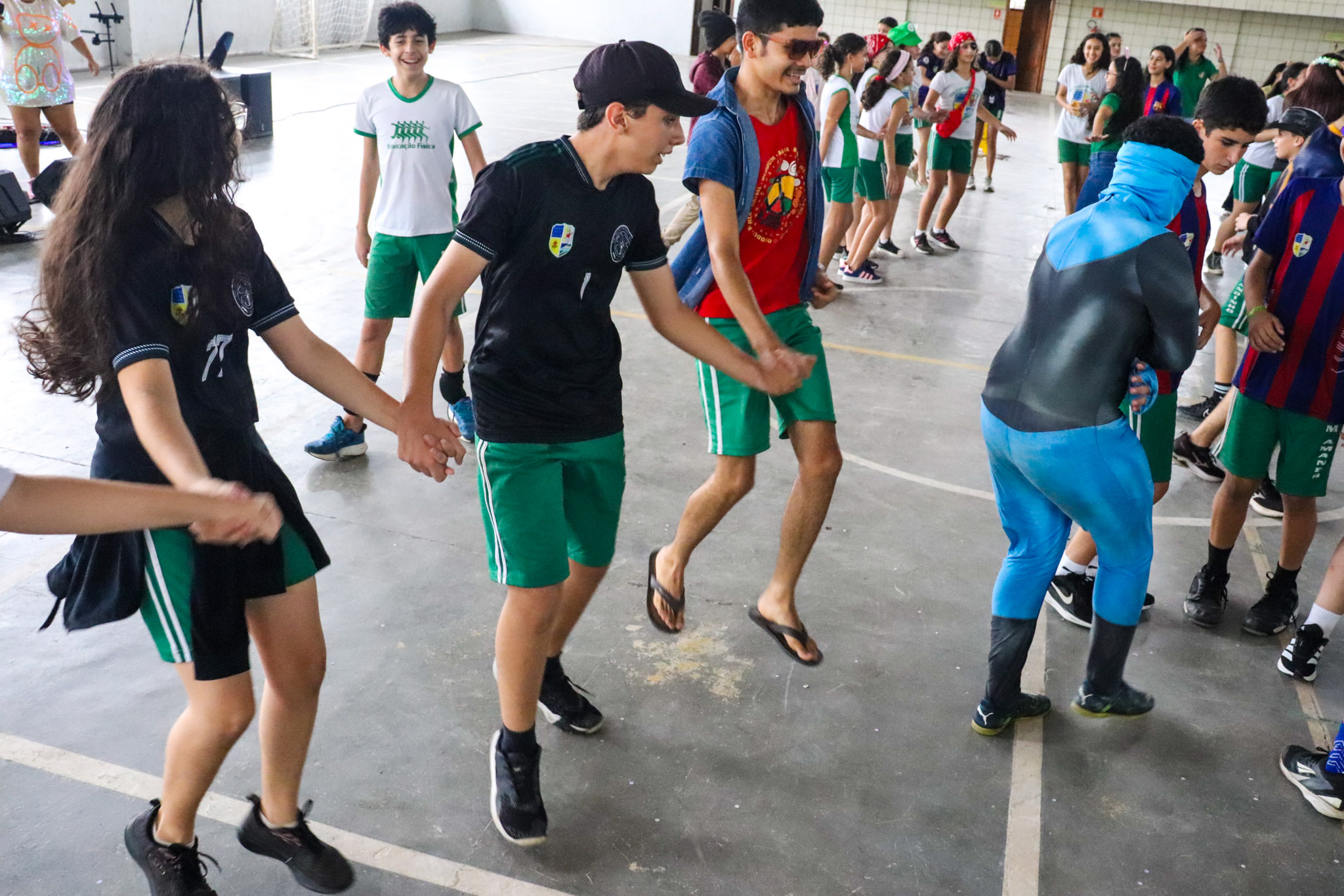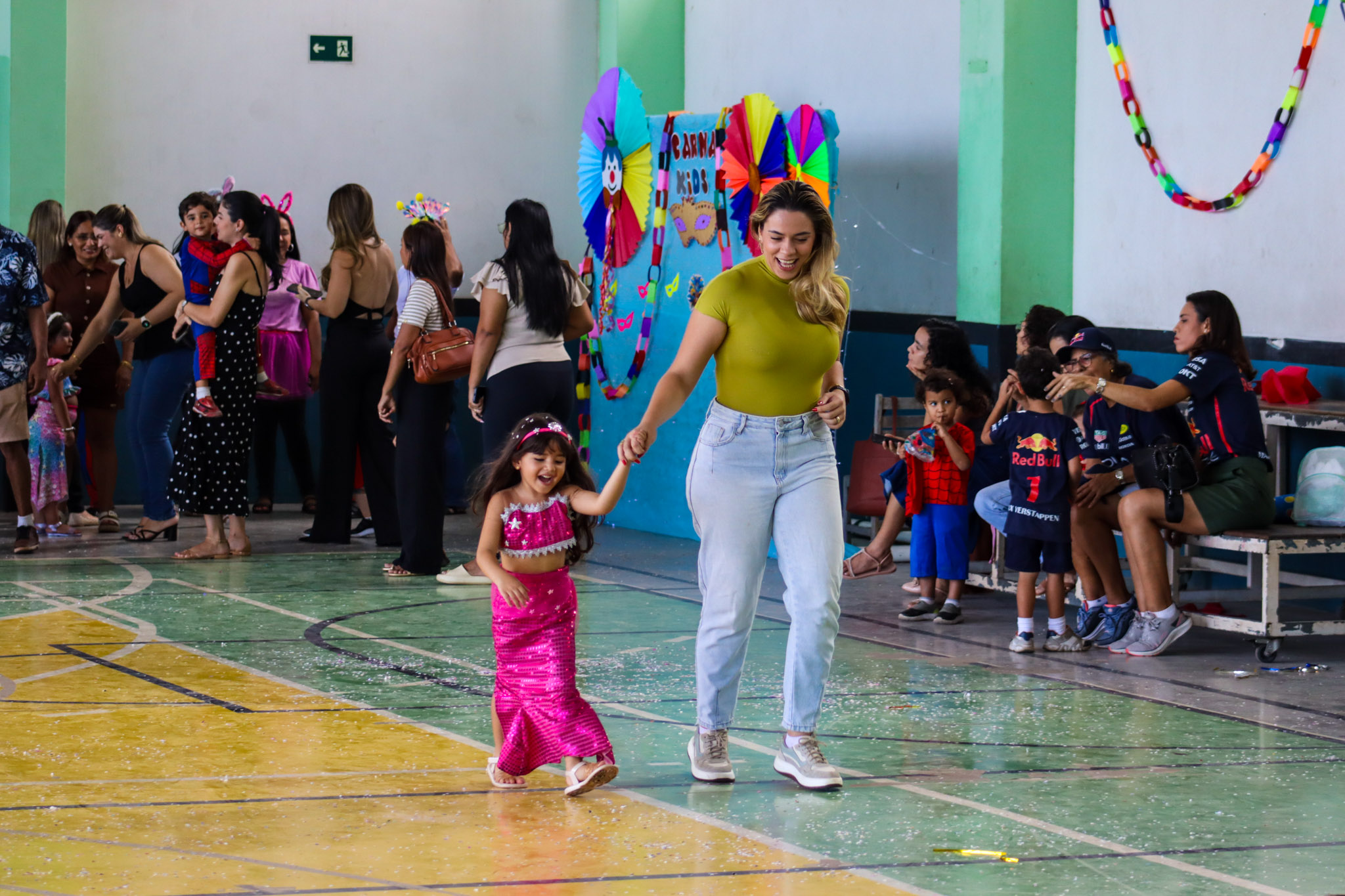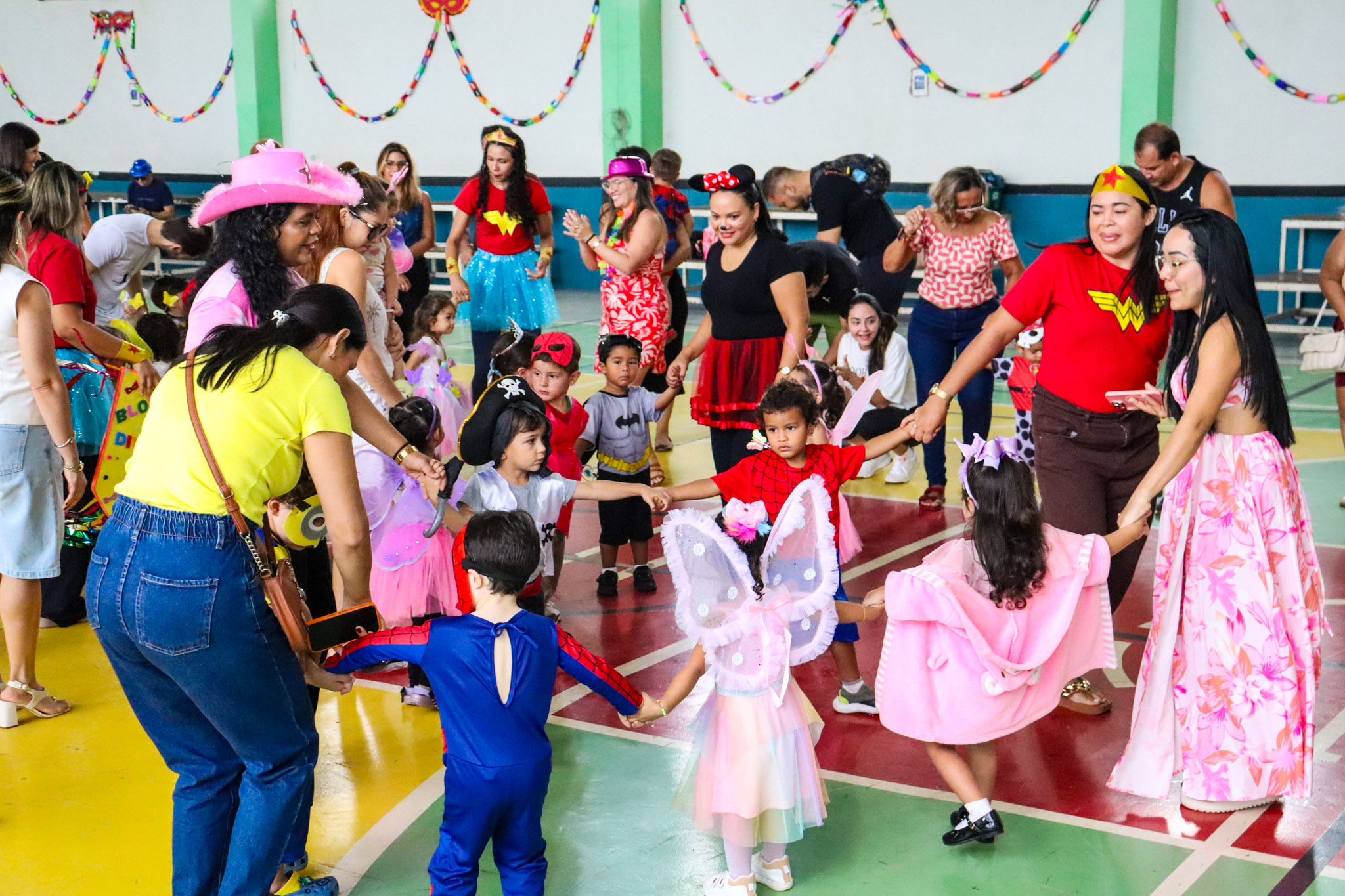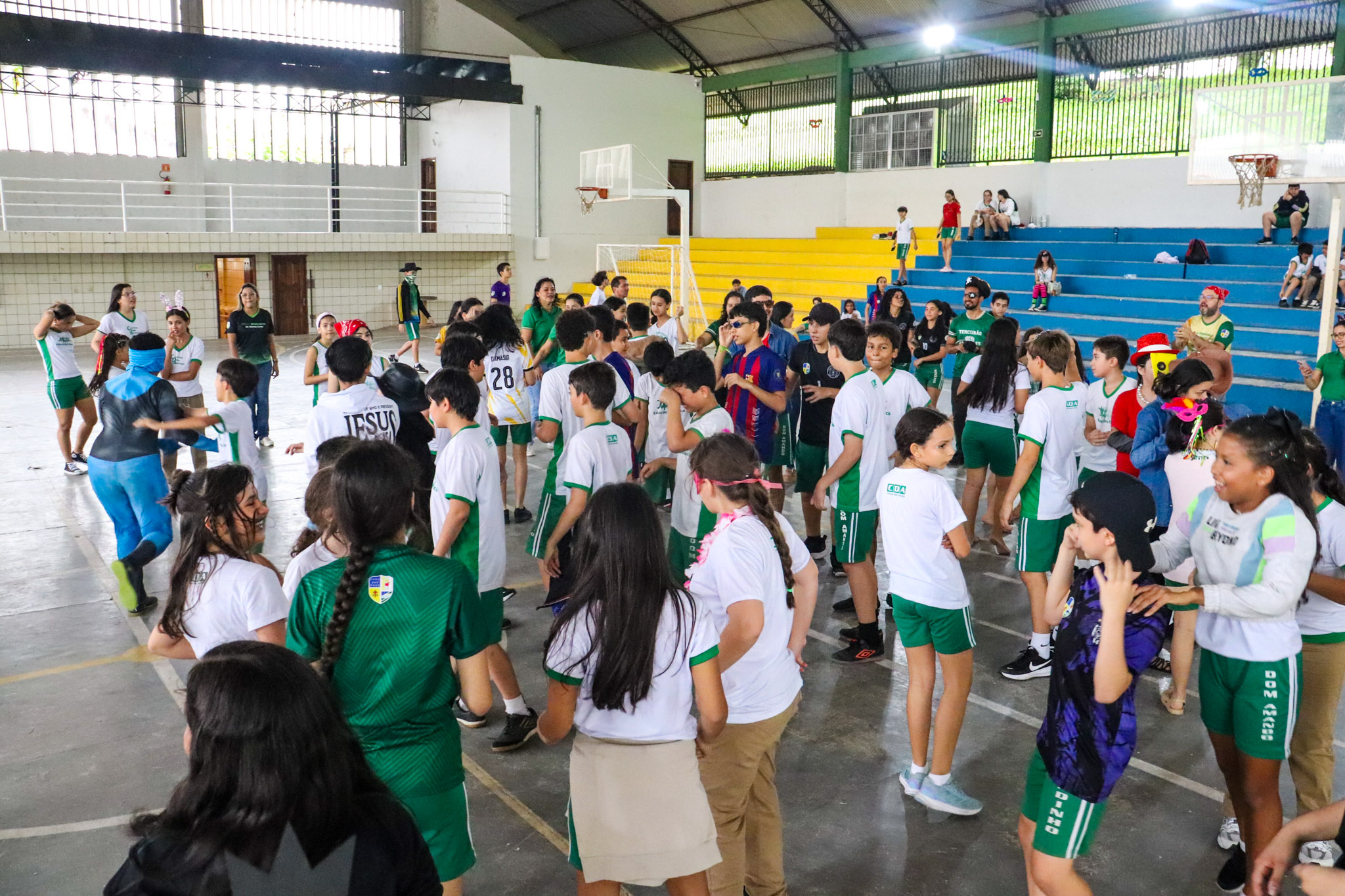 No Ensino Fundamental I, os estudantes também aproveitaram a festa com desfiles, brincadeiras e muita animação, transformando o ginásio em um verdadeiro espaço de celebração e descontração.