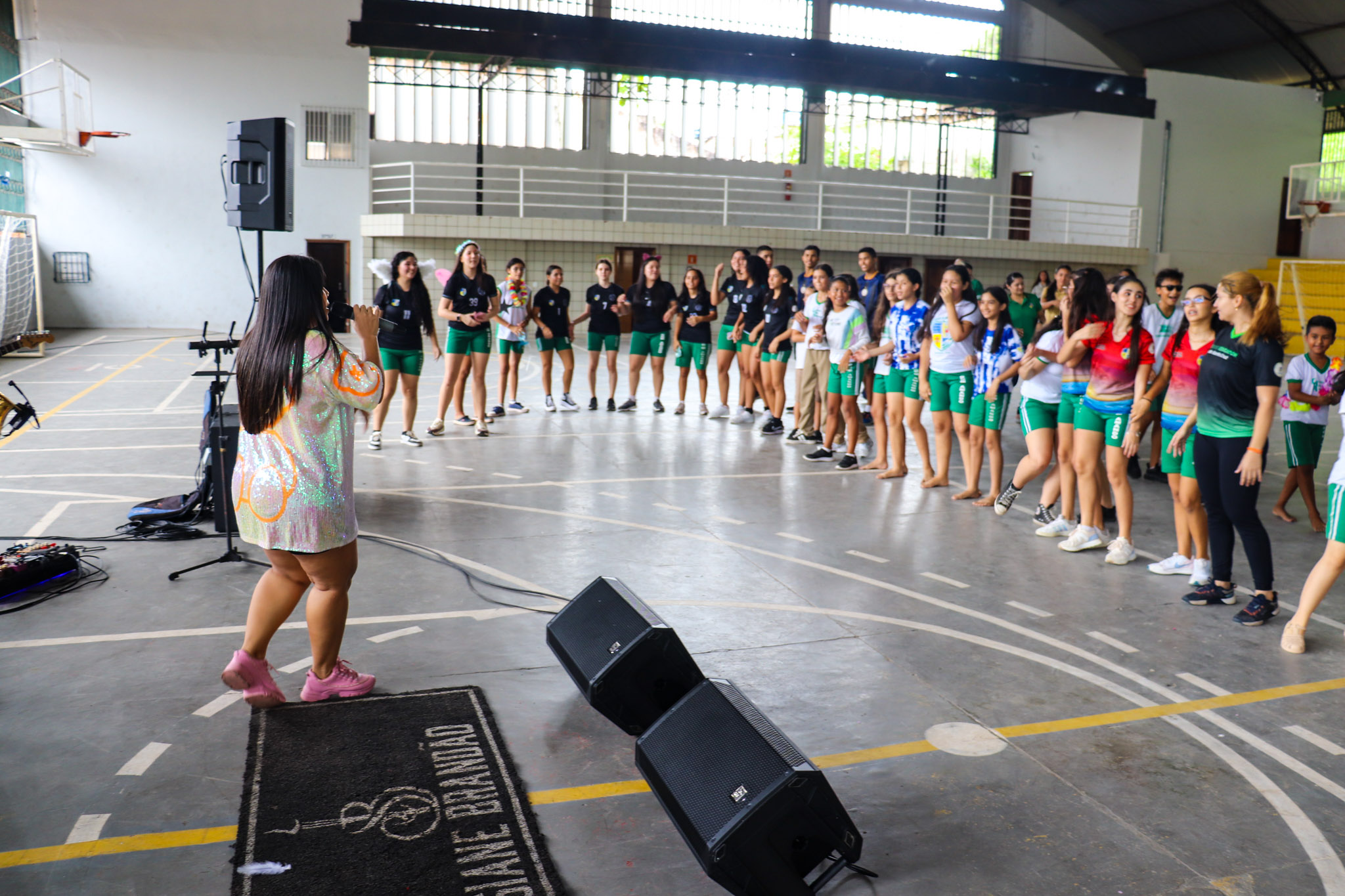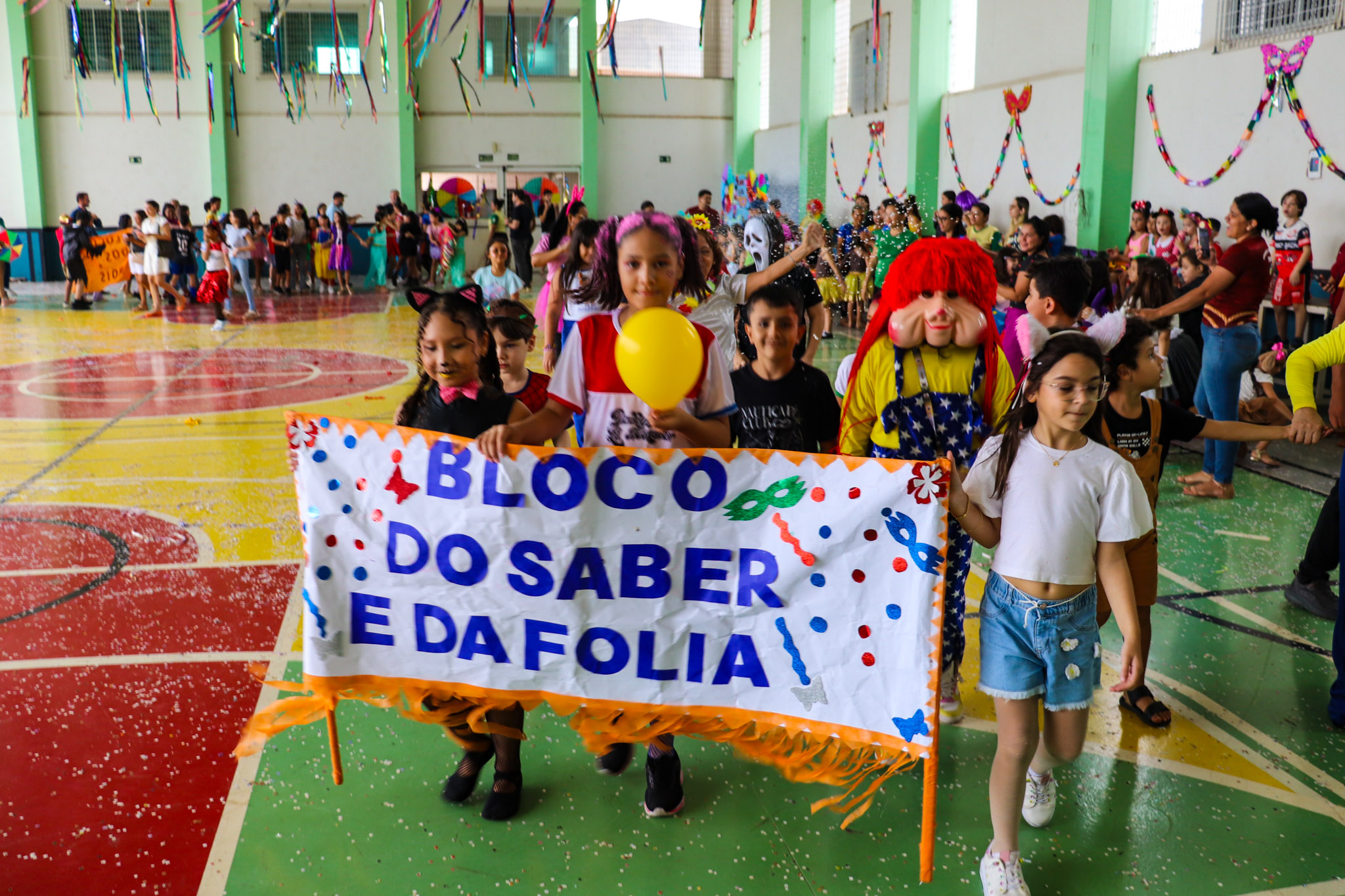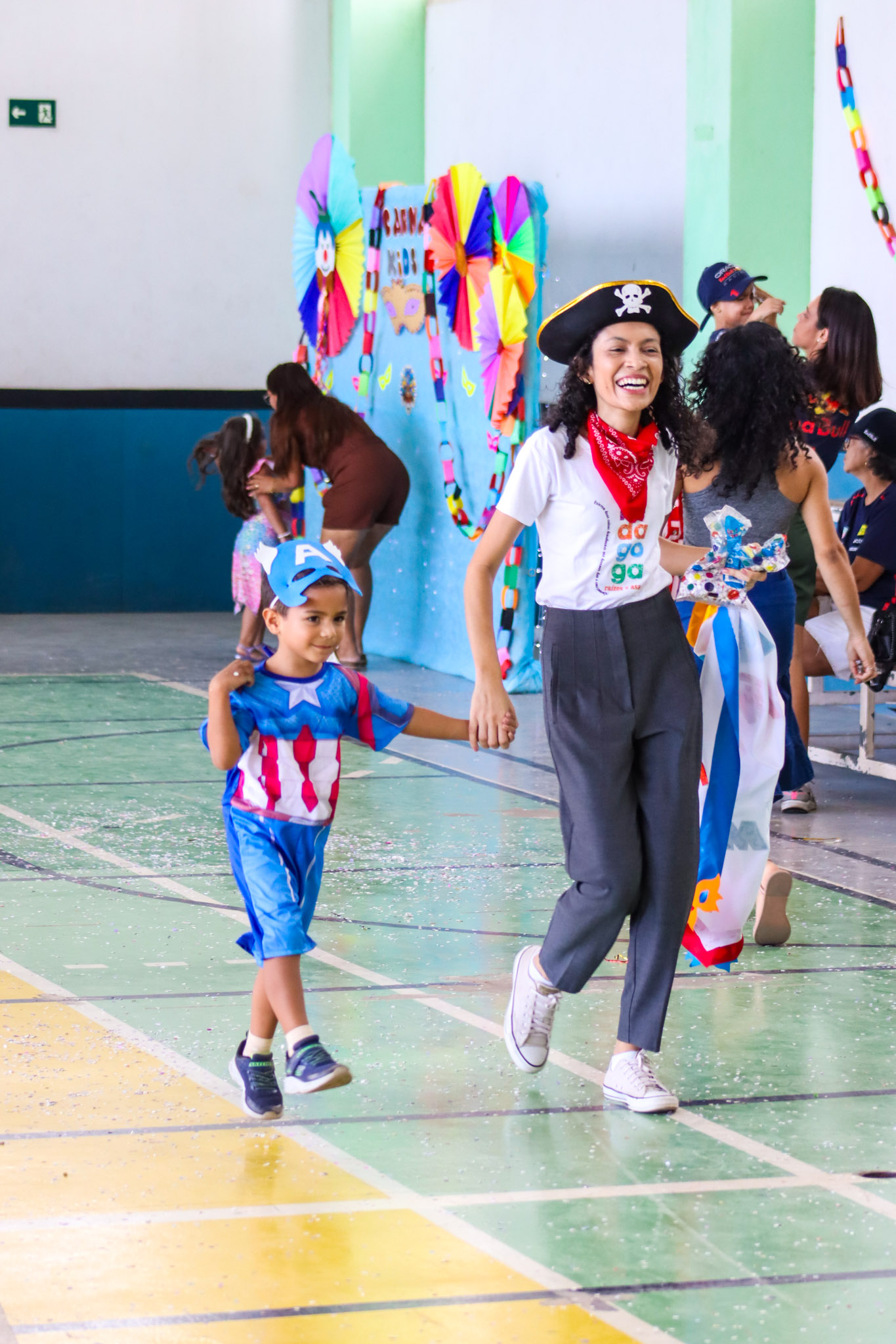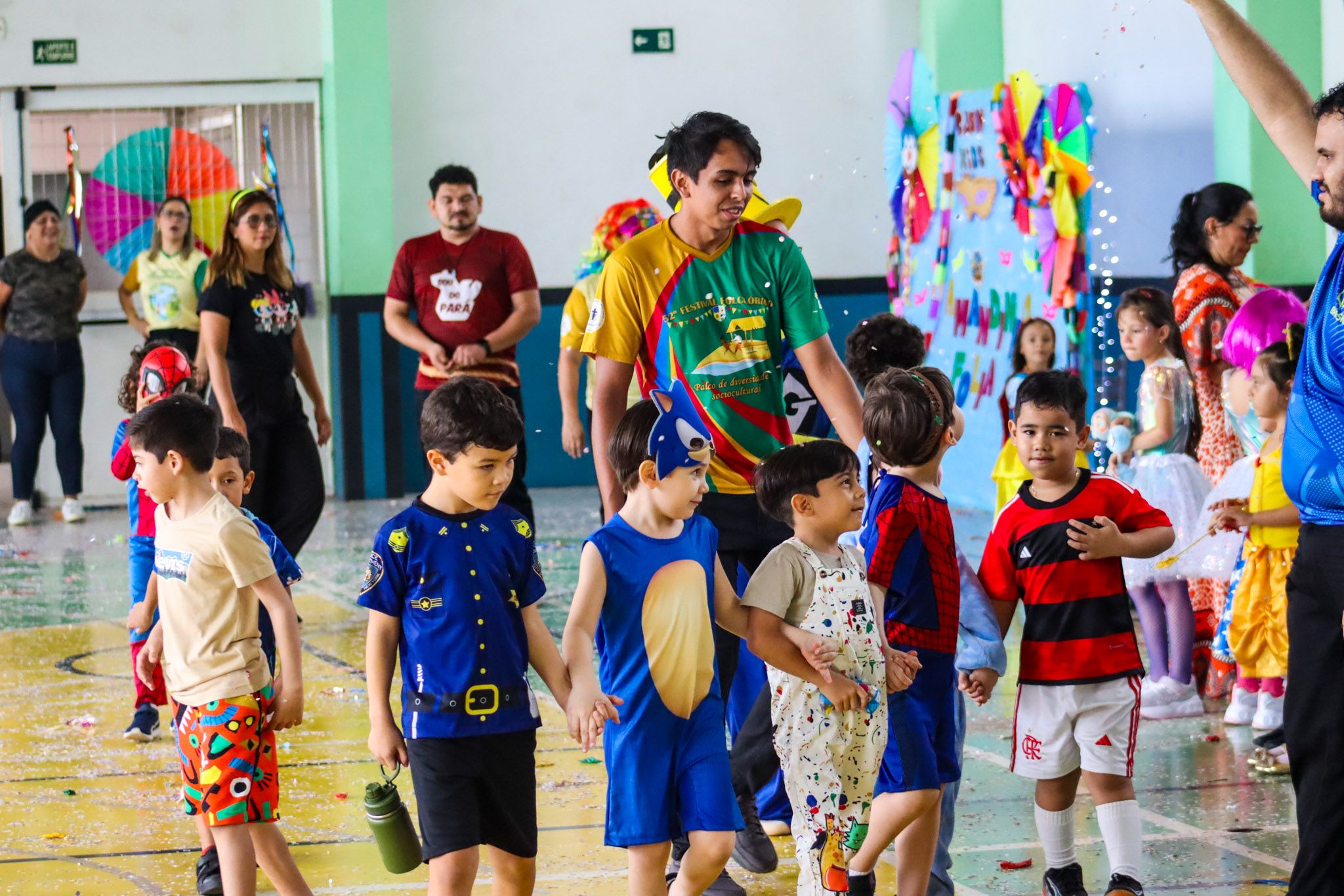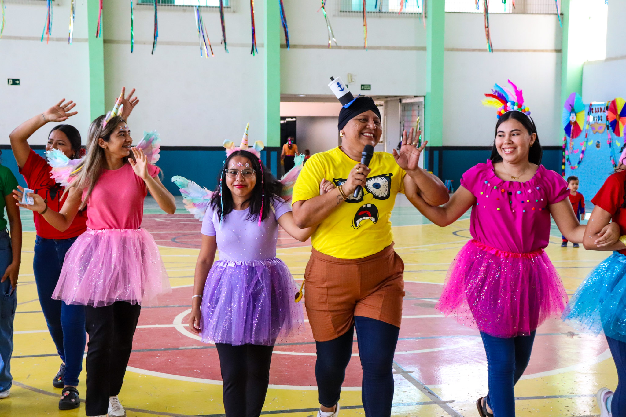 No Ensino Fundamental I, os estudantes também aproveitaram a festa com desfiles, brincadeiras e muita animação, transformando o ginásio em um verdadeiro espaço de celebração e descontração.