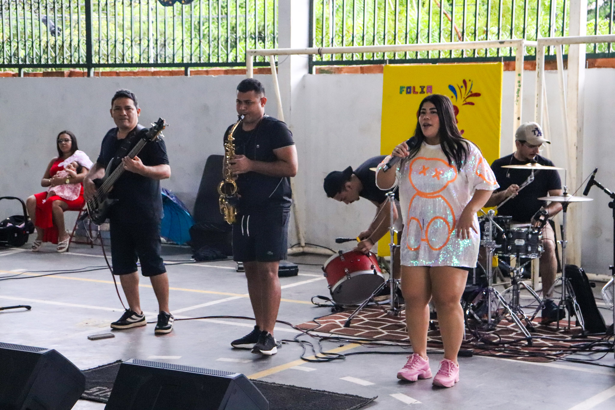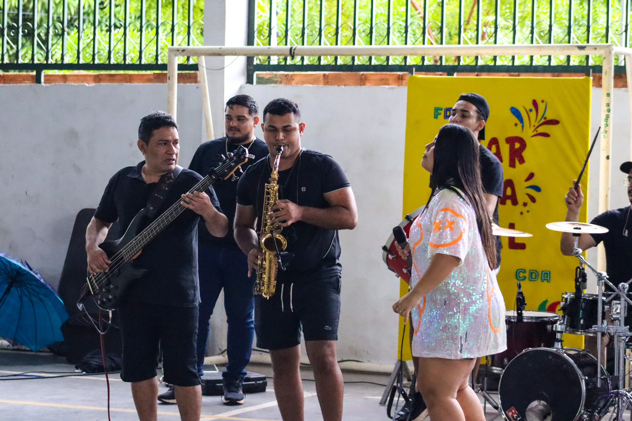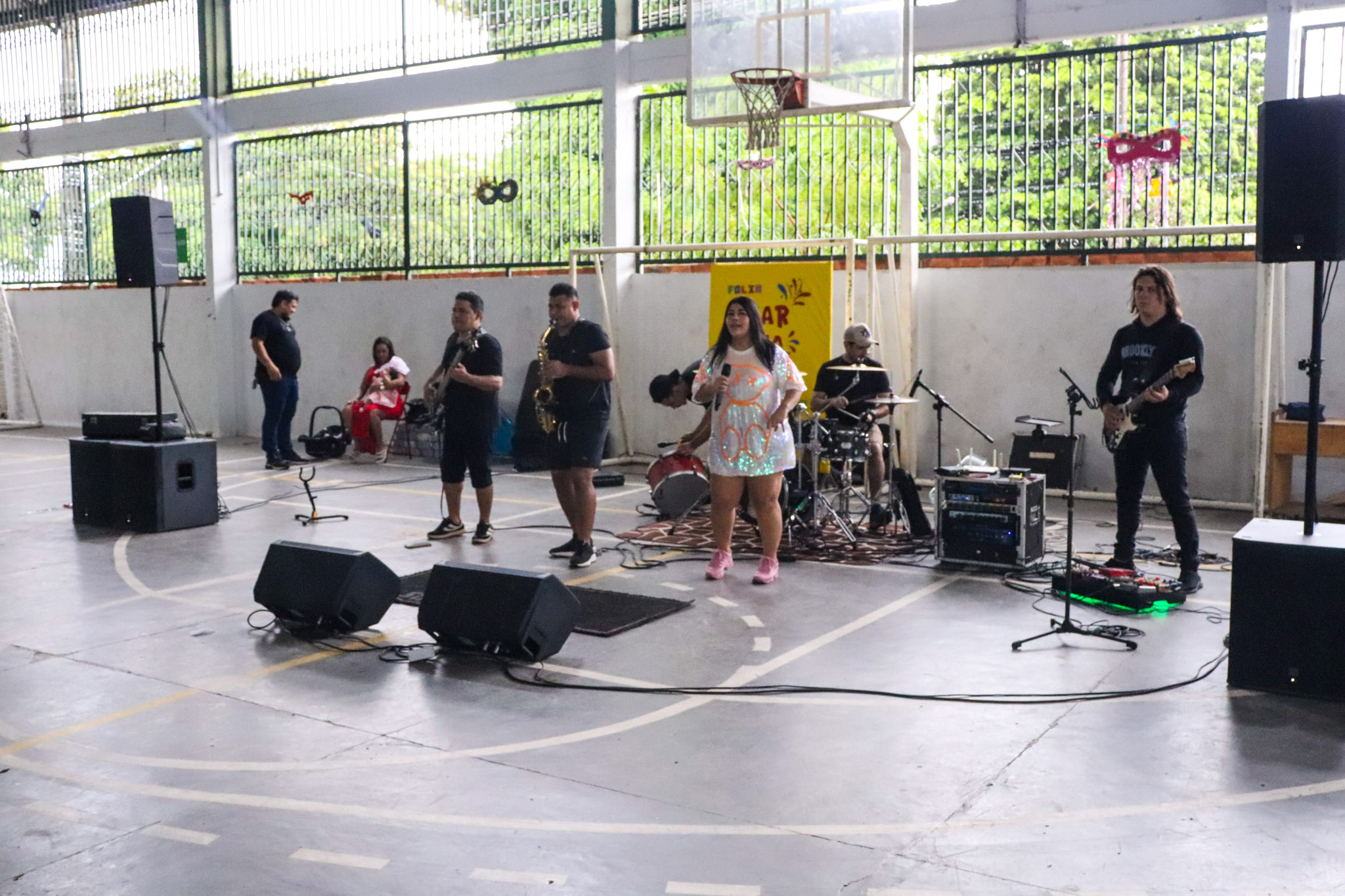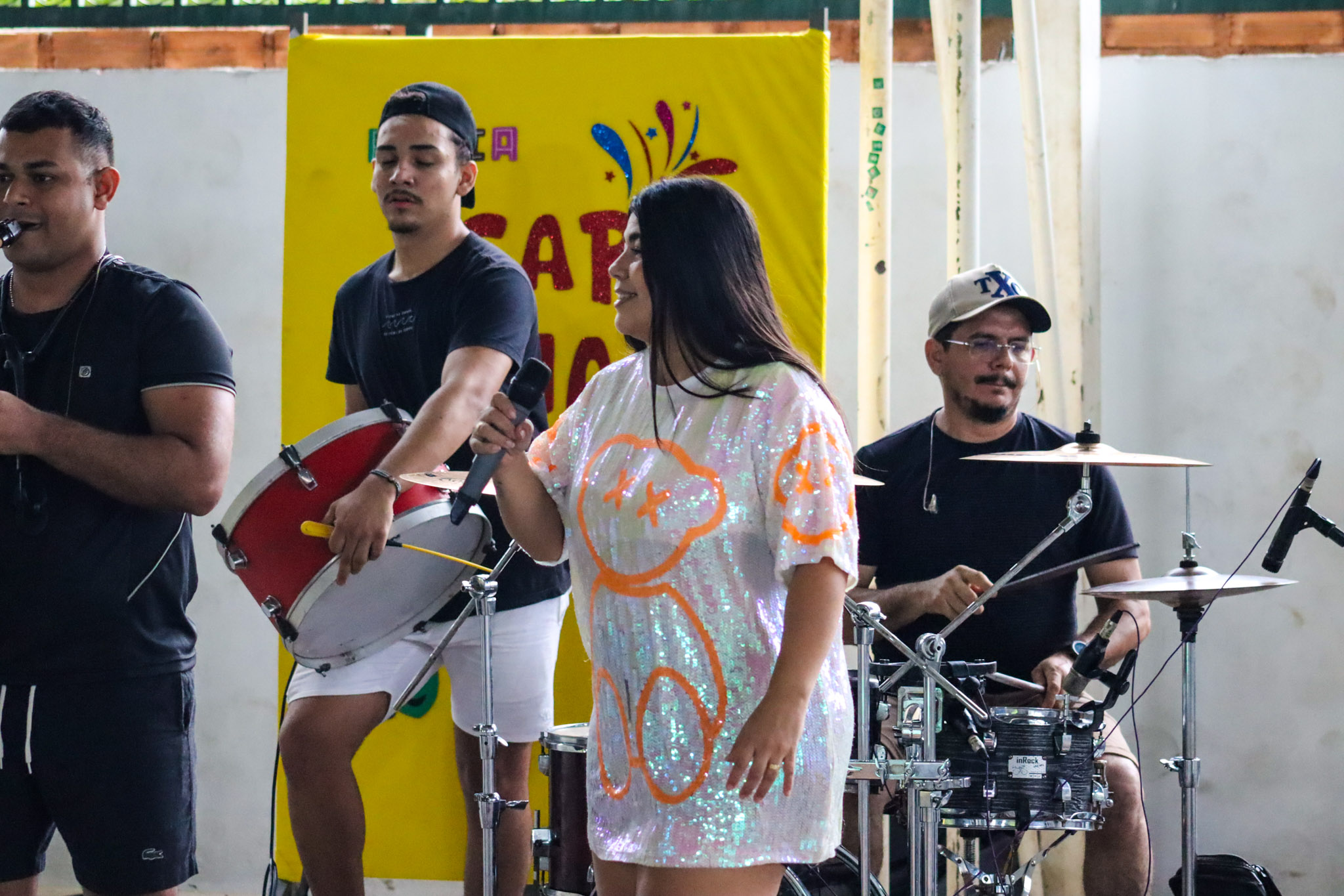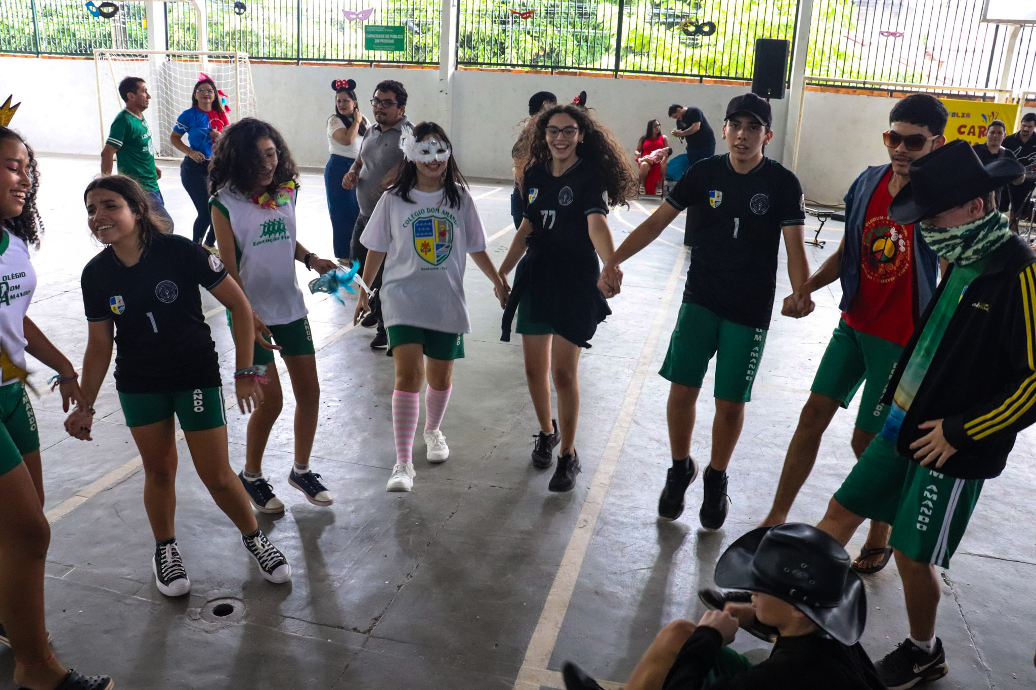 Já no Fundamental II e Ensino Médio, a folia ganhou ainda mais ritmo com a presença de uma banda da cidade, que animou os alunos com músicas carnavalescas. Um dos momentos mais aguardados foi a participação especial da tradicional Vaca Bulandeira, ícone do Festival Folclórico do colégio, que levou irreverência e alegria aos foliões.