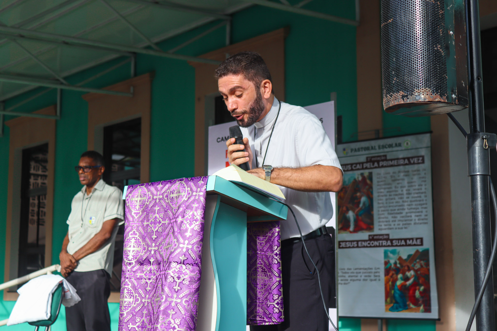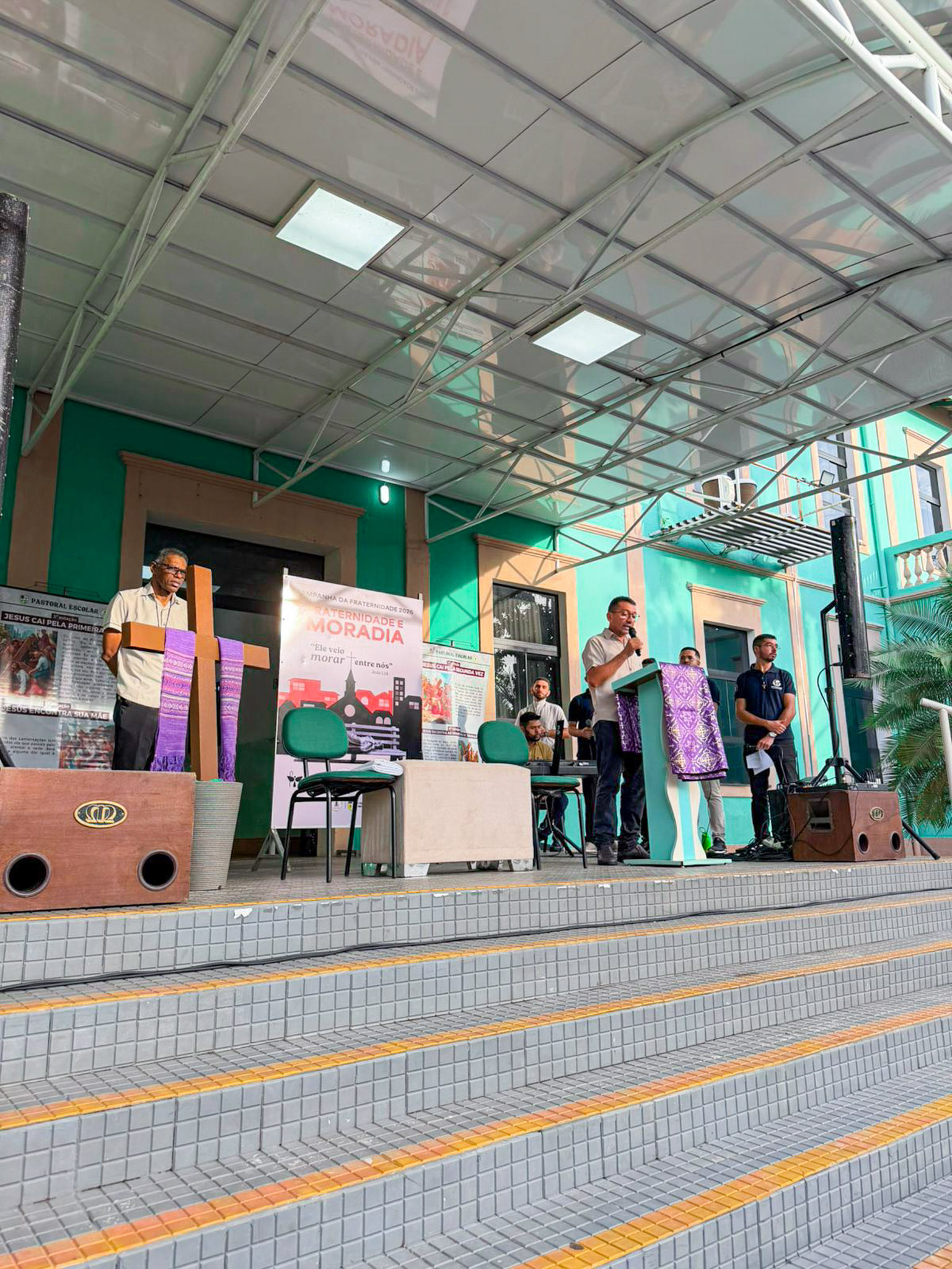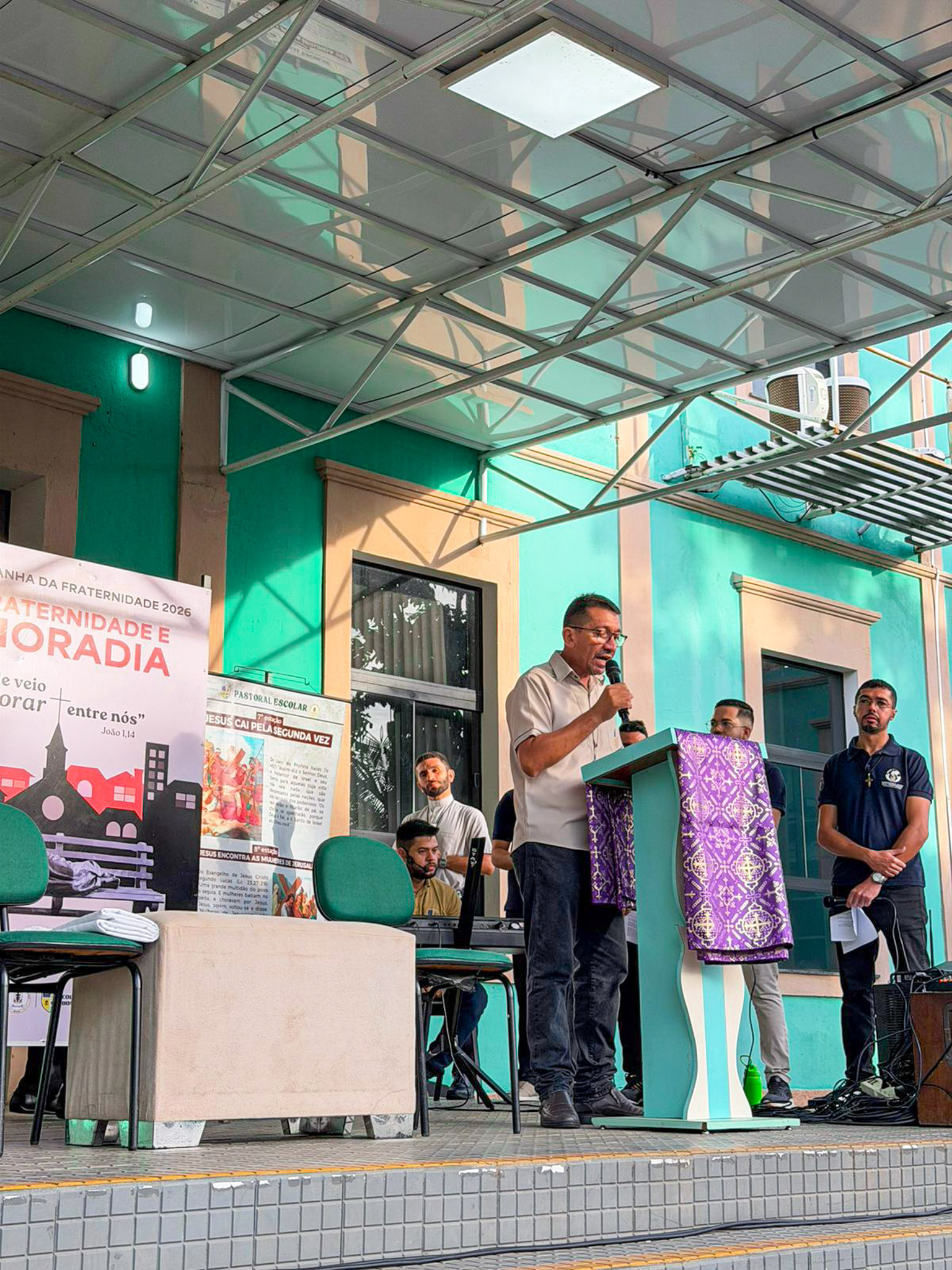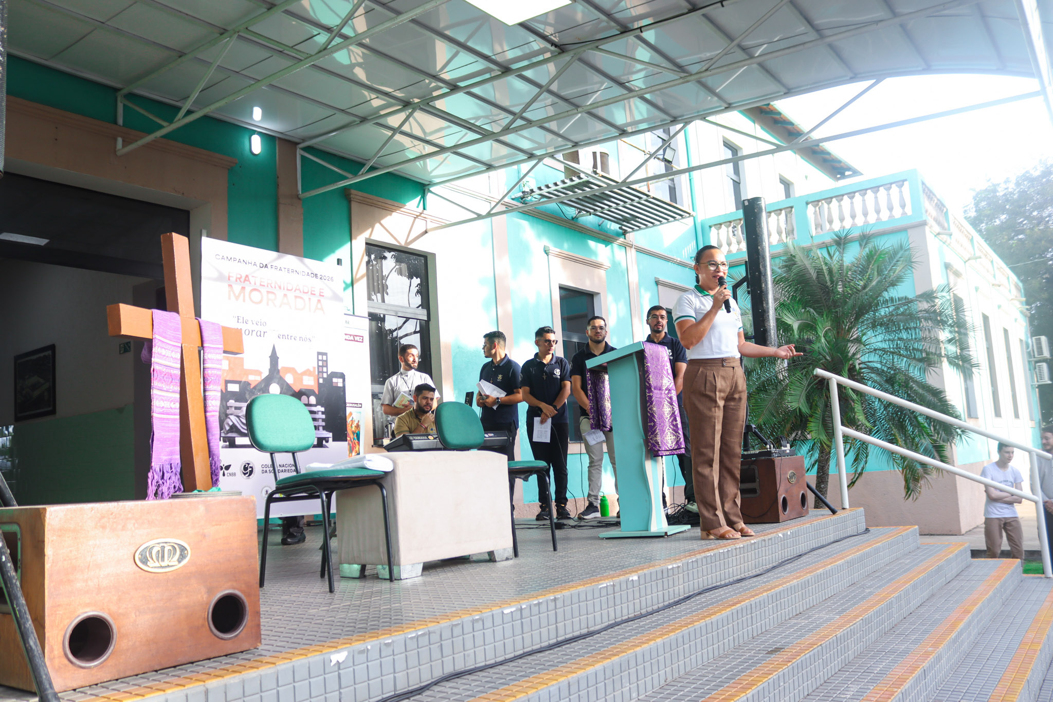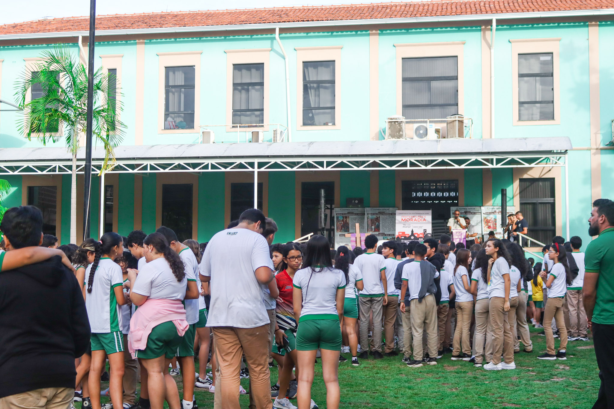 Na área verde do Colégio, a programação iniciou com um momento de animação e música, seguido da introdução do tema e da apresentação do cartaz oficial da campanha. Em seguida, foi proclamado o Evangelho segundo João (Jo 1,10-14), conduzido pelo Pe. Valman, que também conduziu uma reflexão sobre o significado da Campanha da Fraternidade e sua importância para despertar nos cristãos uma atitude de cuidado, solidariedade e compromisso com o próximo.