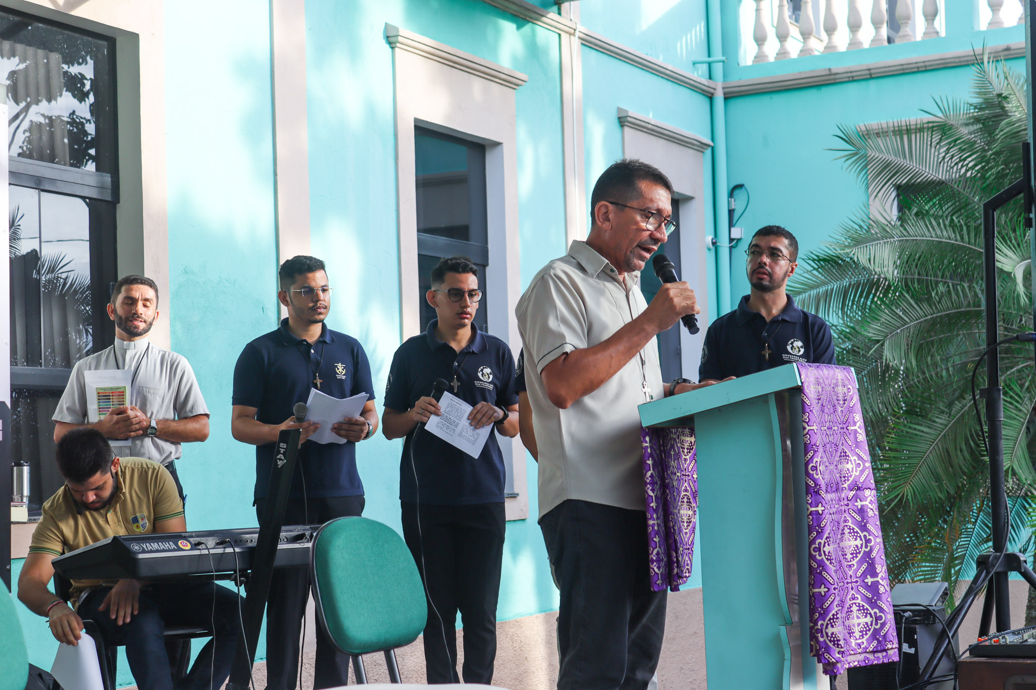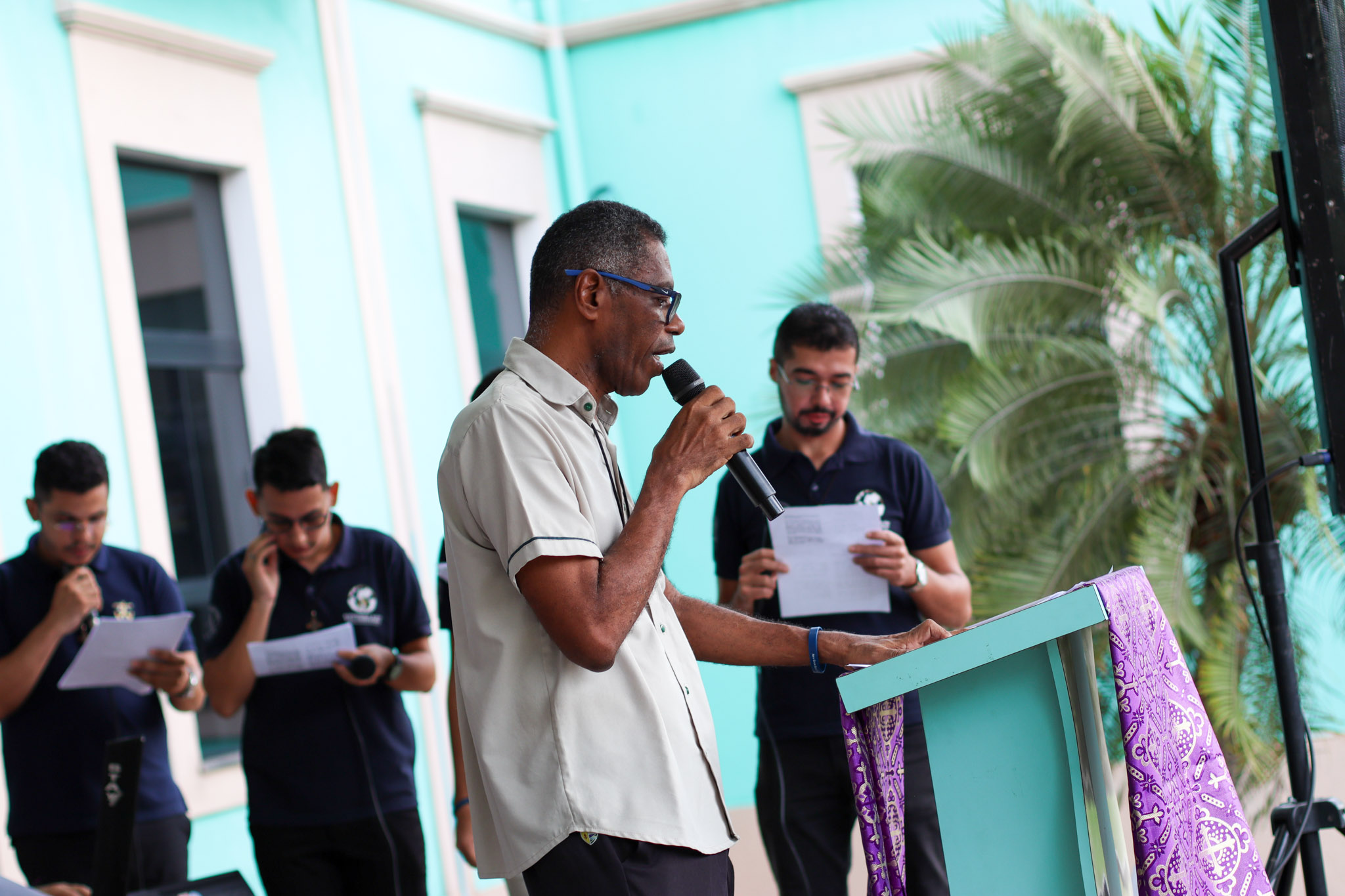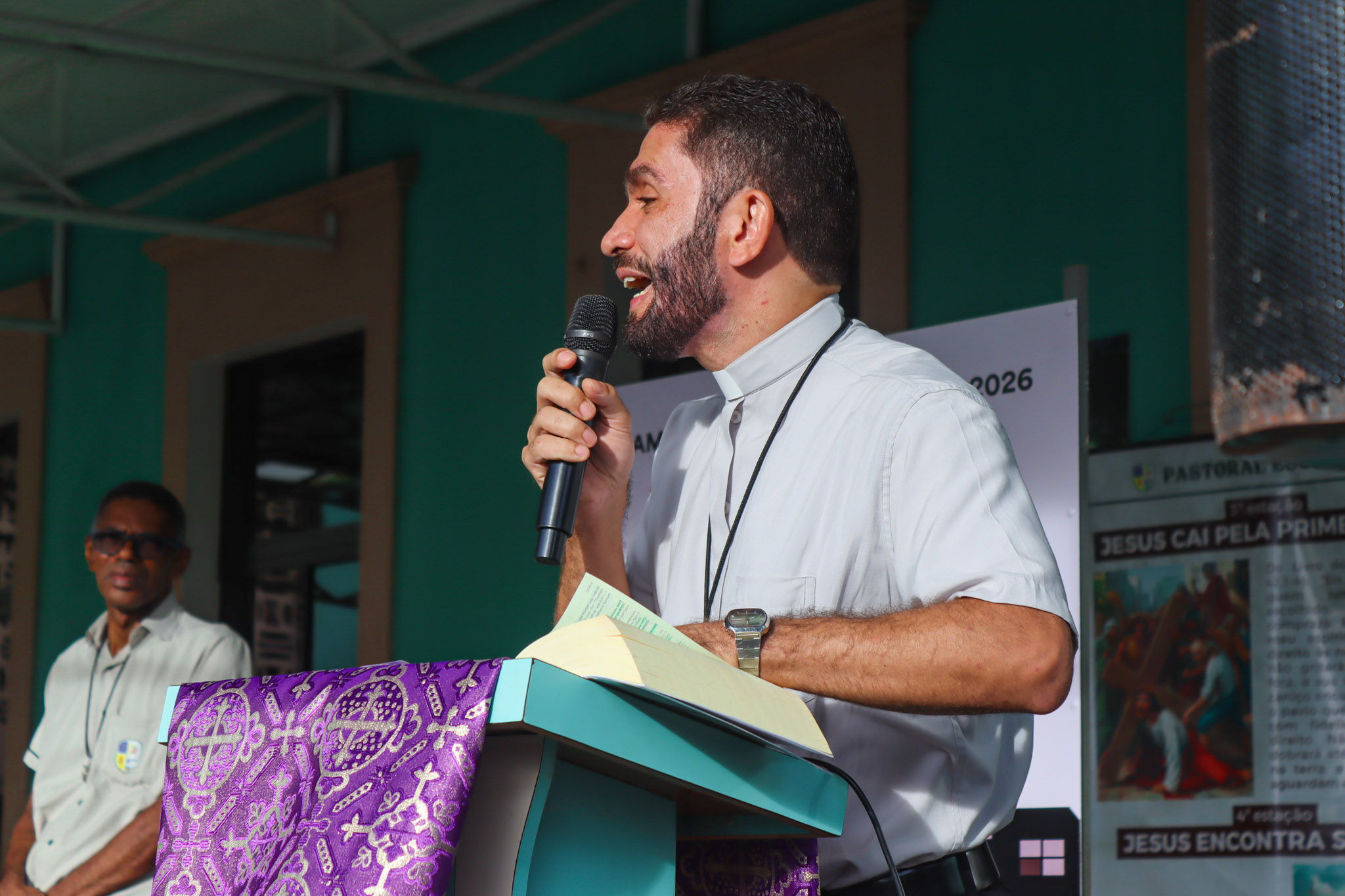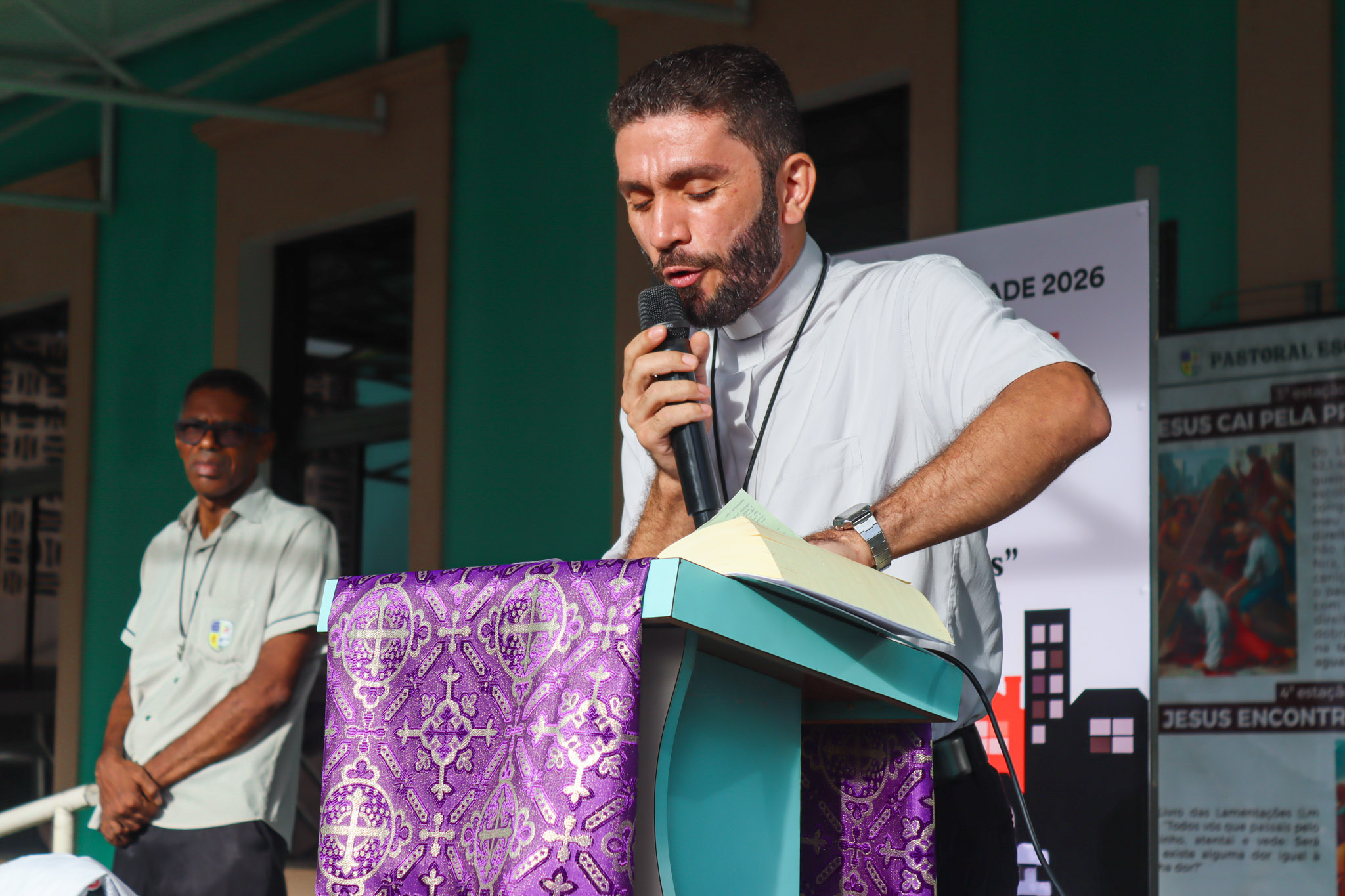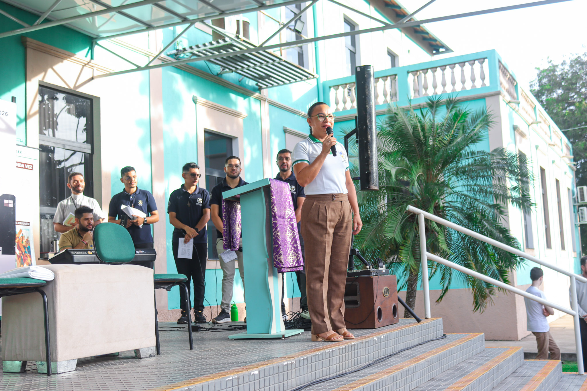 Na área verde do Colégio, a programação iniciou com um momento de animação e música, seguido da introdução do tema e da apresentação do cartaz oficial da campanha. Em seguida, foi proclamado o Evangelho segundo João (Jo 1,10-14), conduzido pelo Pe. Valman, que também conduziu uma reflexão sobre o significado da Campanha da Fraternidade e sua importância para despertar nos cristãos uma atitude de cuidado, solidariedade e compromisso com o próximo.