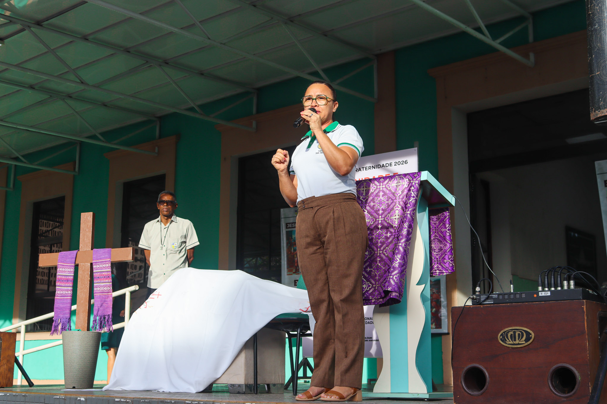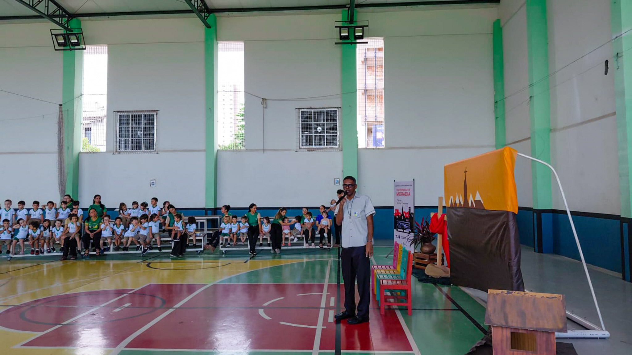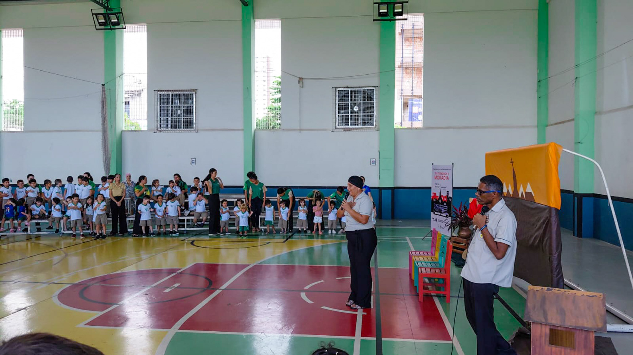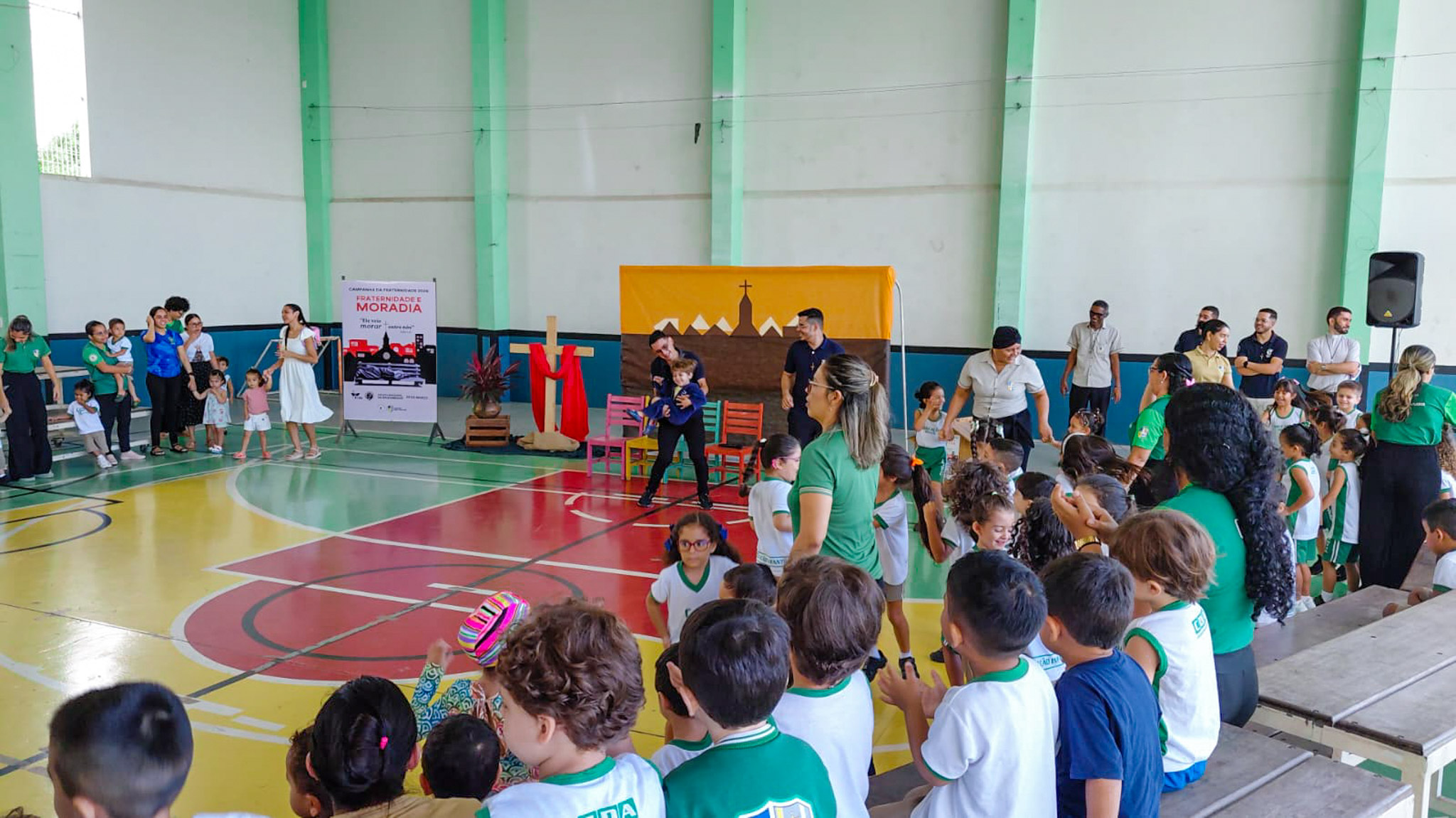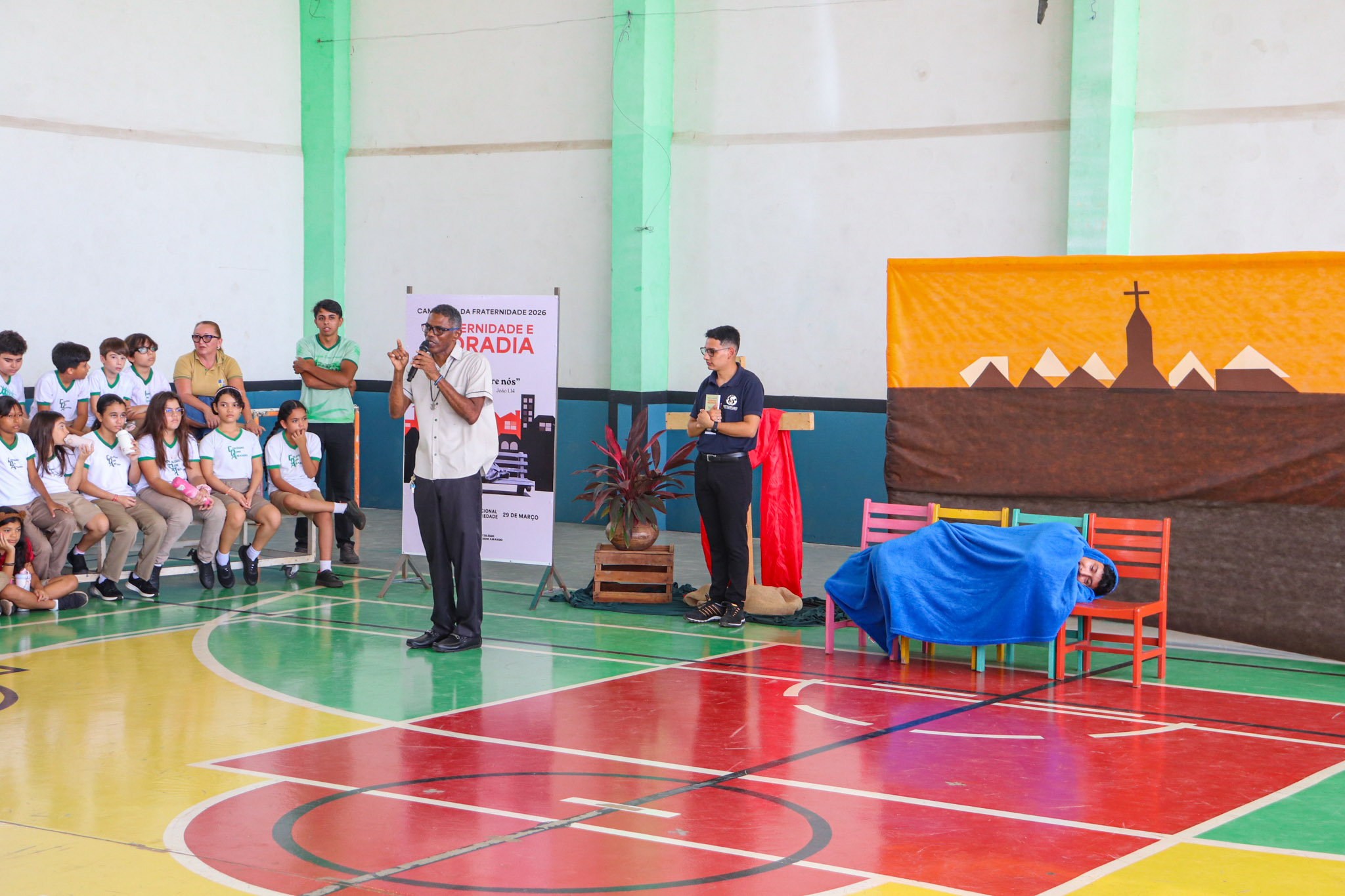 Um dos momentos mais significativos da celebração foi o gesto concreto proposto à comunidade escolar: a campanha de arrecadação de alimentos, materiais de higiene e produtos de limpeza. A iniciativa busca mobilizar os estudantes para ações solidárias que contribuam com famílias em situação de vulnerabilidade.