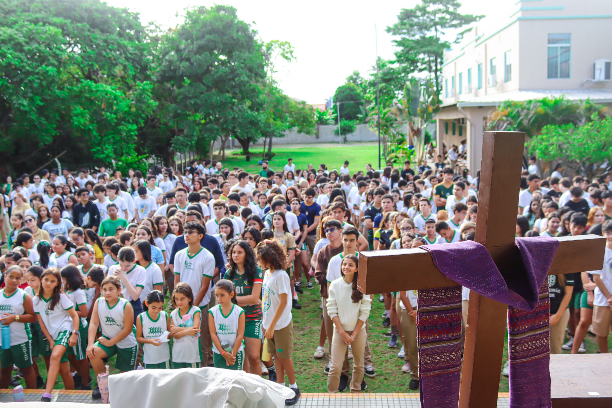 Durante sua fala, o sacerdote ressaltou que a cruz, vivida à luz da espiritualidade da Congregação de Santa Cruz, não representa apenas sofrimento, mas também libertação, esperança e renovação. Inspirados no carisma do Beato Basile Moreau, os estudantes foram convidados a viver o tempo da Quaresma com zelo, generosidade e atitudes concretas de amor ao próximo.