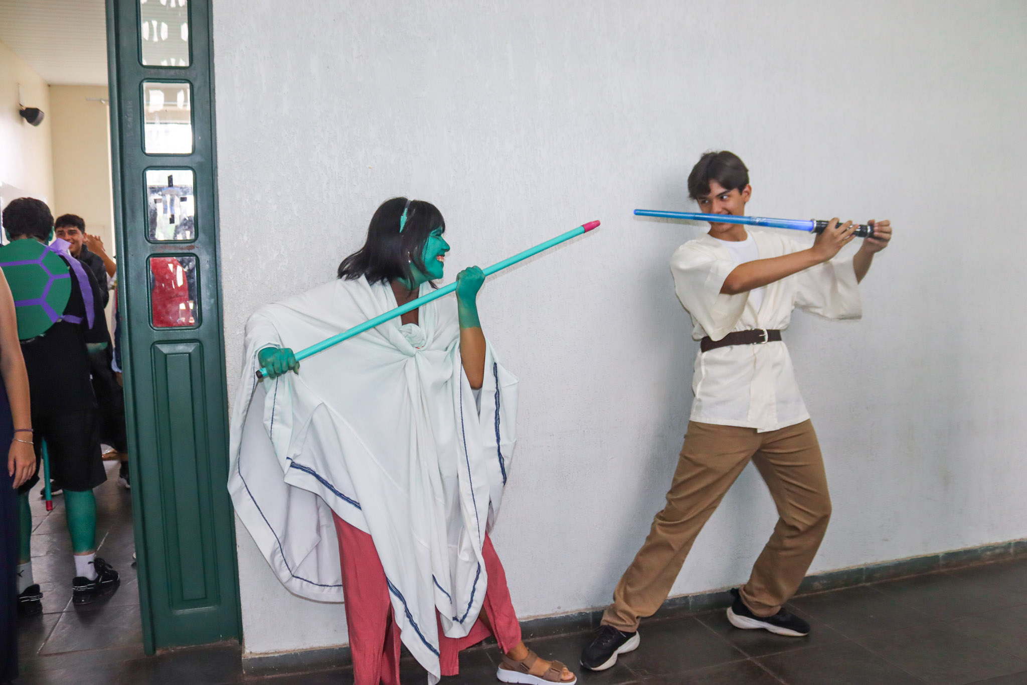 Os corredores da escola se transformaram em um verdadeiro desfile de imaginação, com fantasias criativas, divertidas e cheias de personalidade. Cada estudante trouxe sua própria interpretação, mostrando originalidade e entrando de vez no clima dessa tradição tão esperada do último ano.