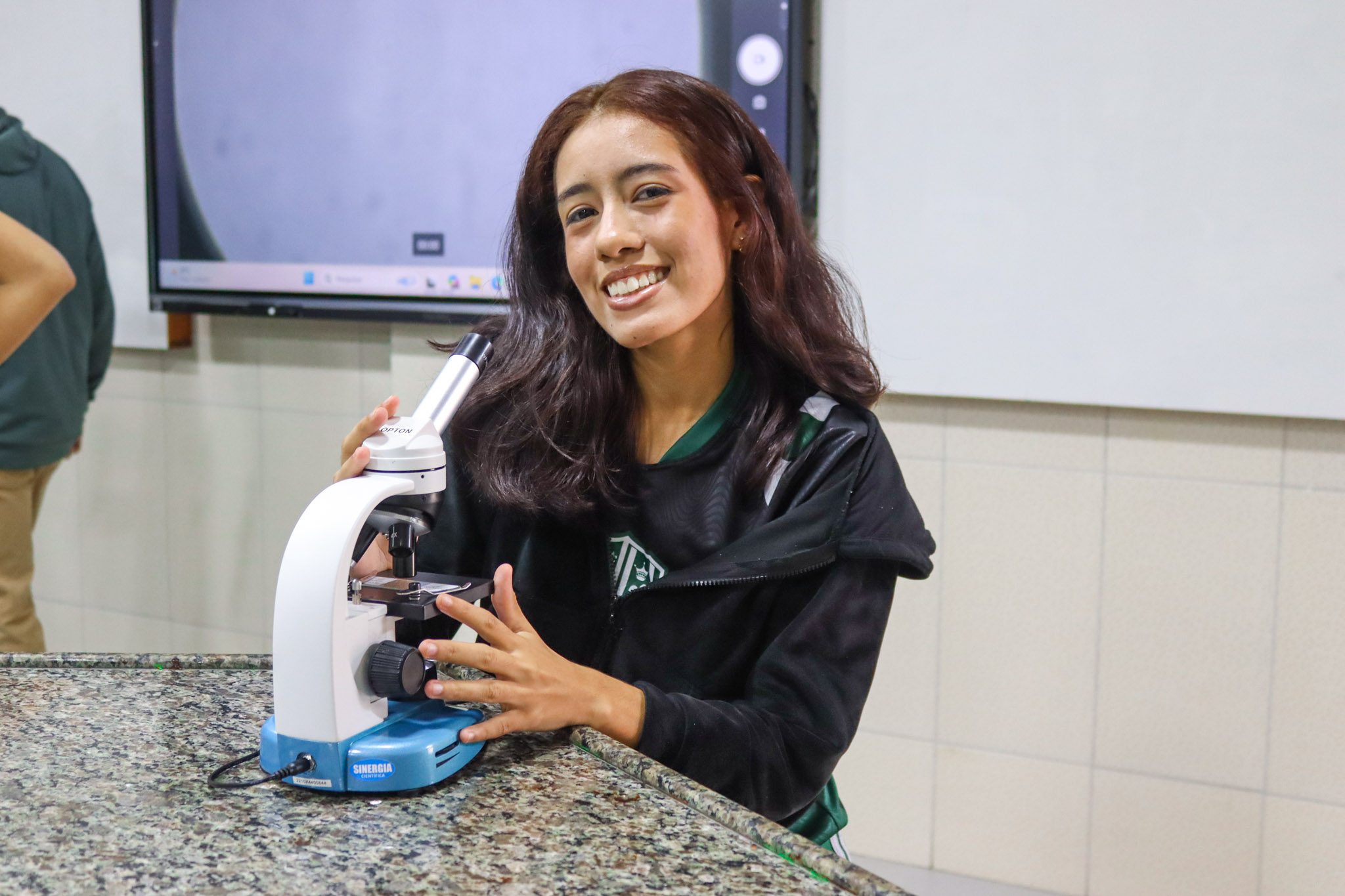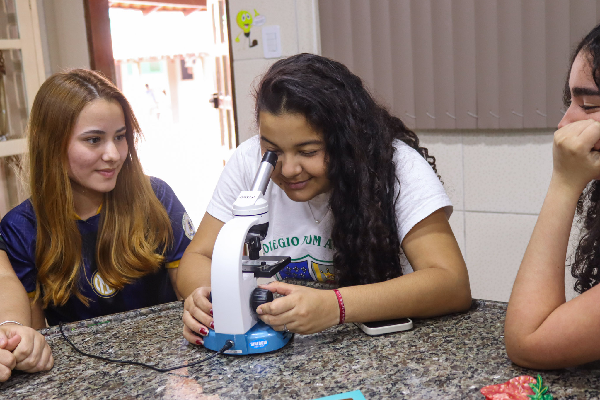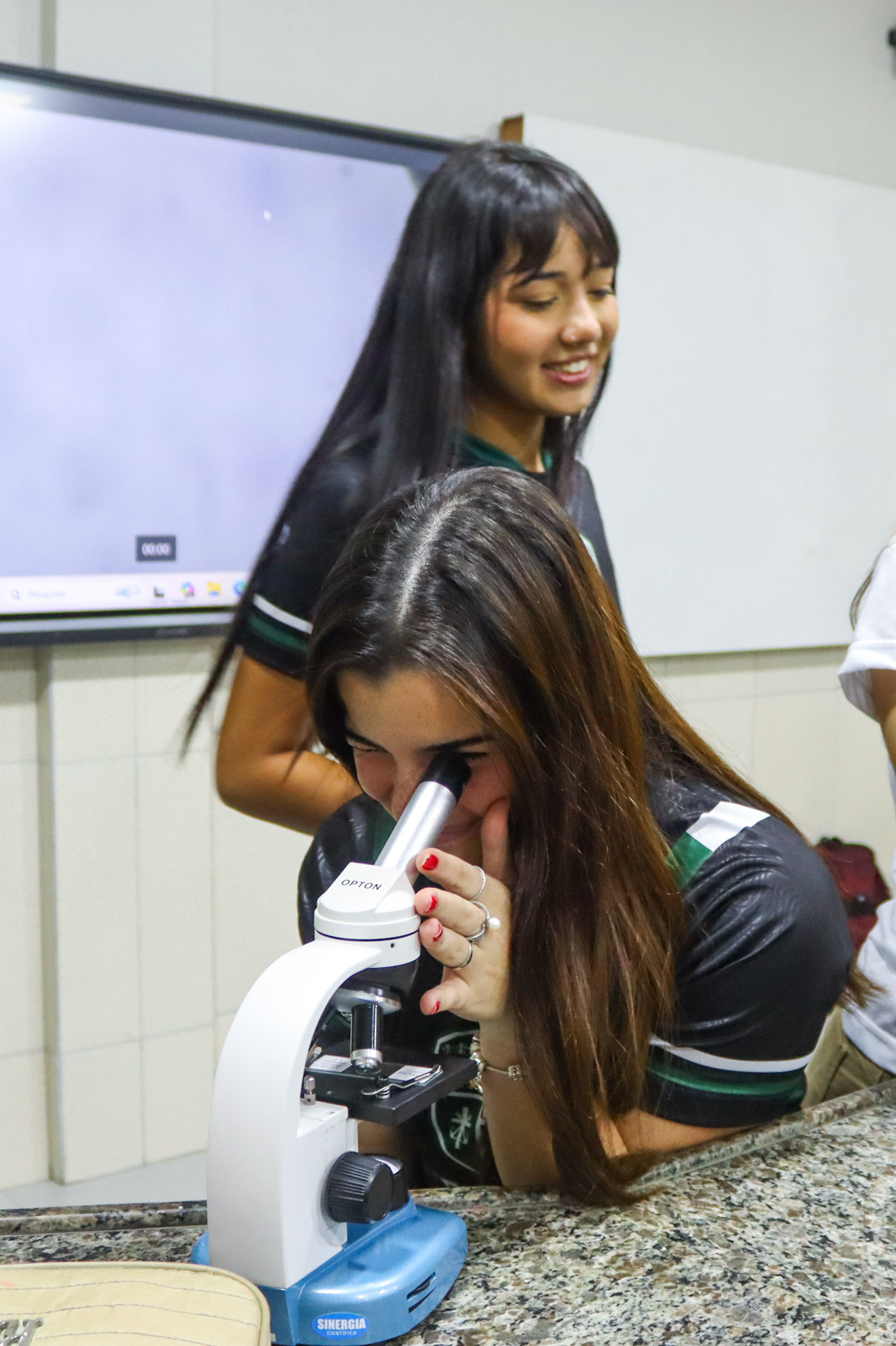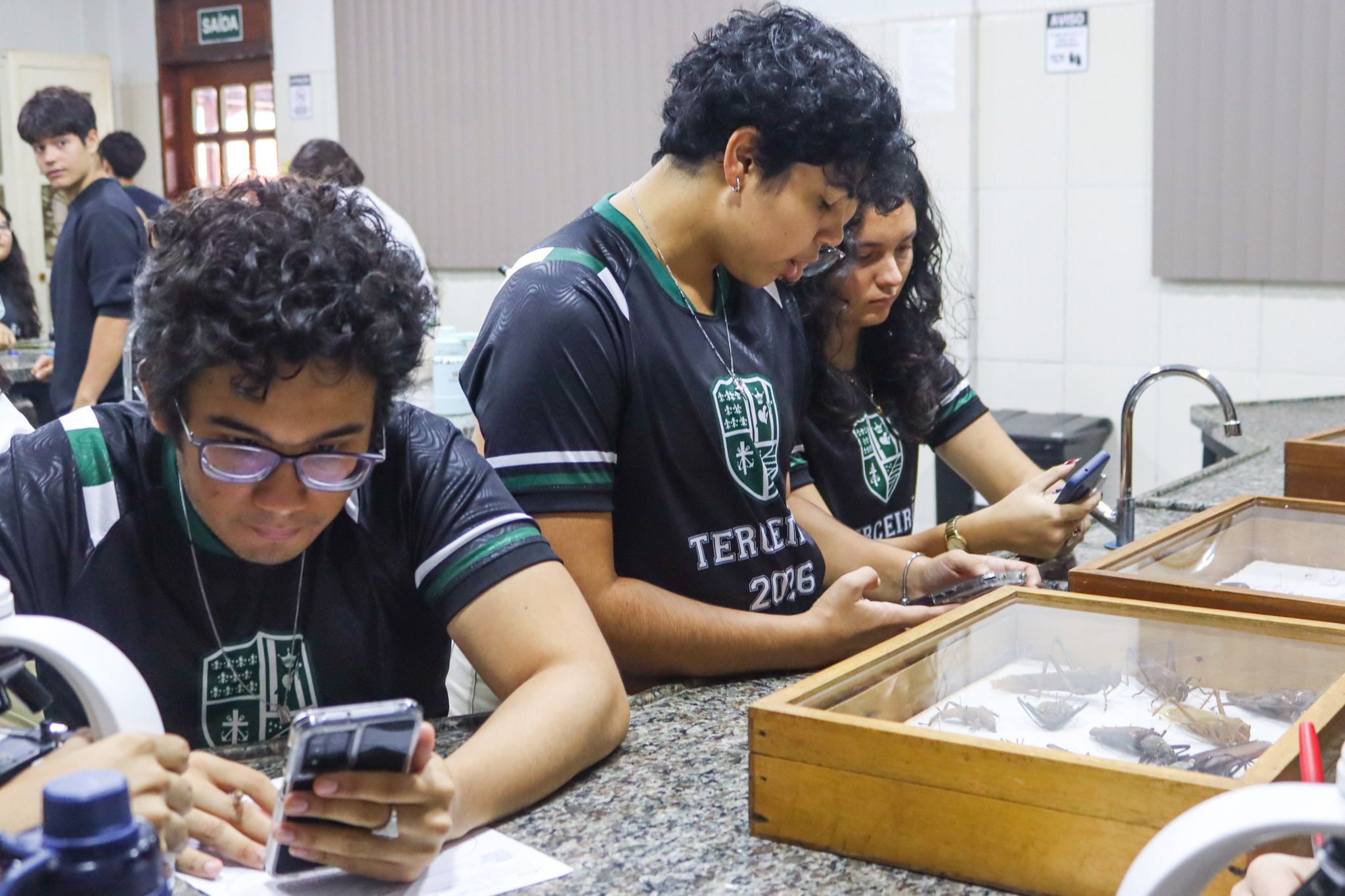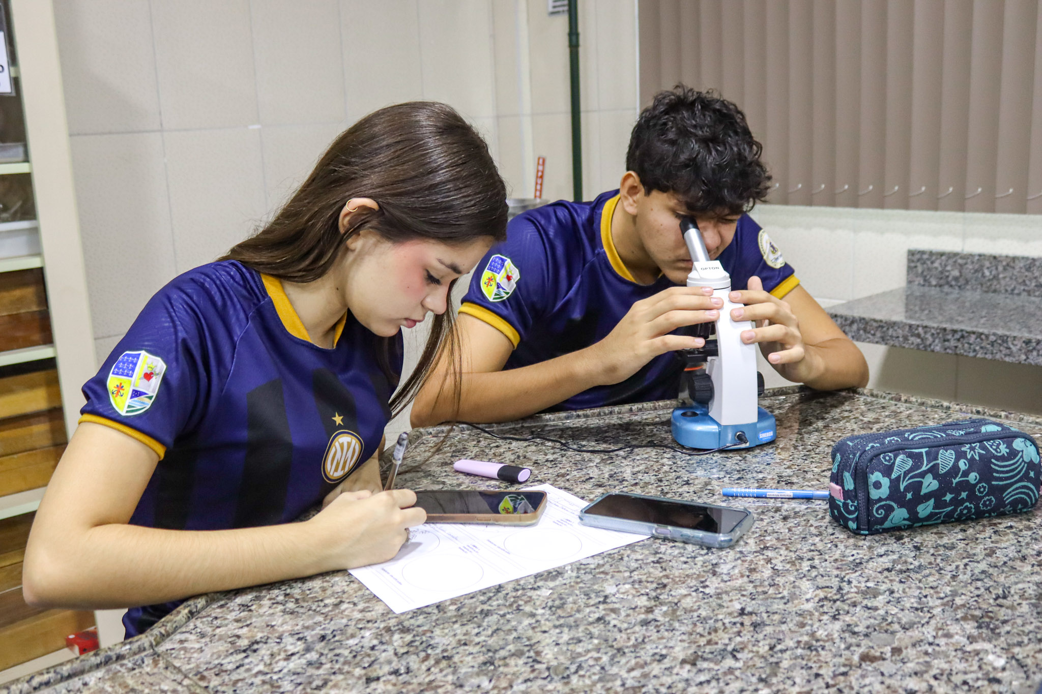 Durante a aula, os alunos aprenderam sobre o funcionamento e a estrutura do microscópio óptico, além de técnicas básicas de preparação e observação de lâminas. Com o auxílio do equipamento, puderam realizar a observação de células e tecidos, identificando estruturas microscópicas e relacionando-as aos conteúdos estudados em sala.