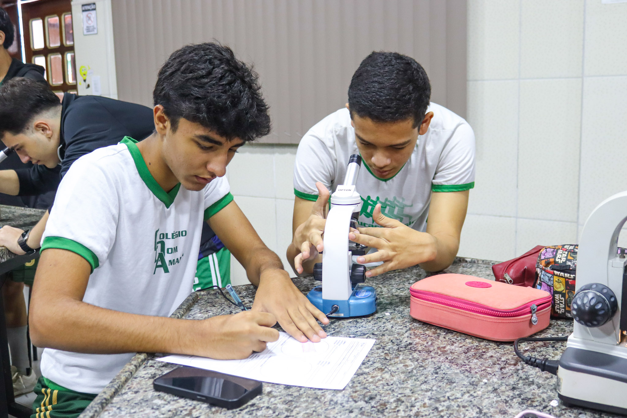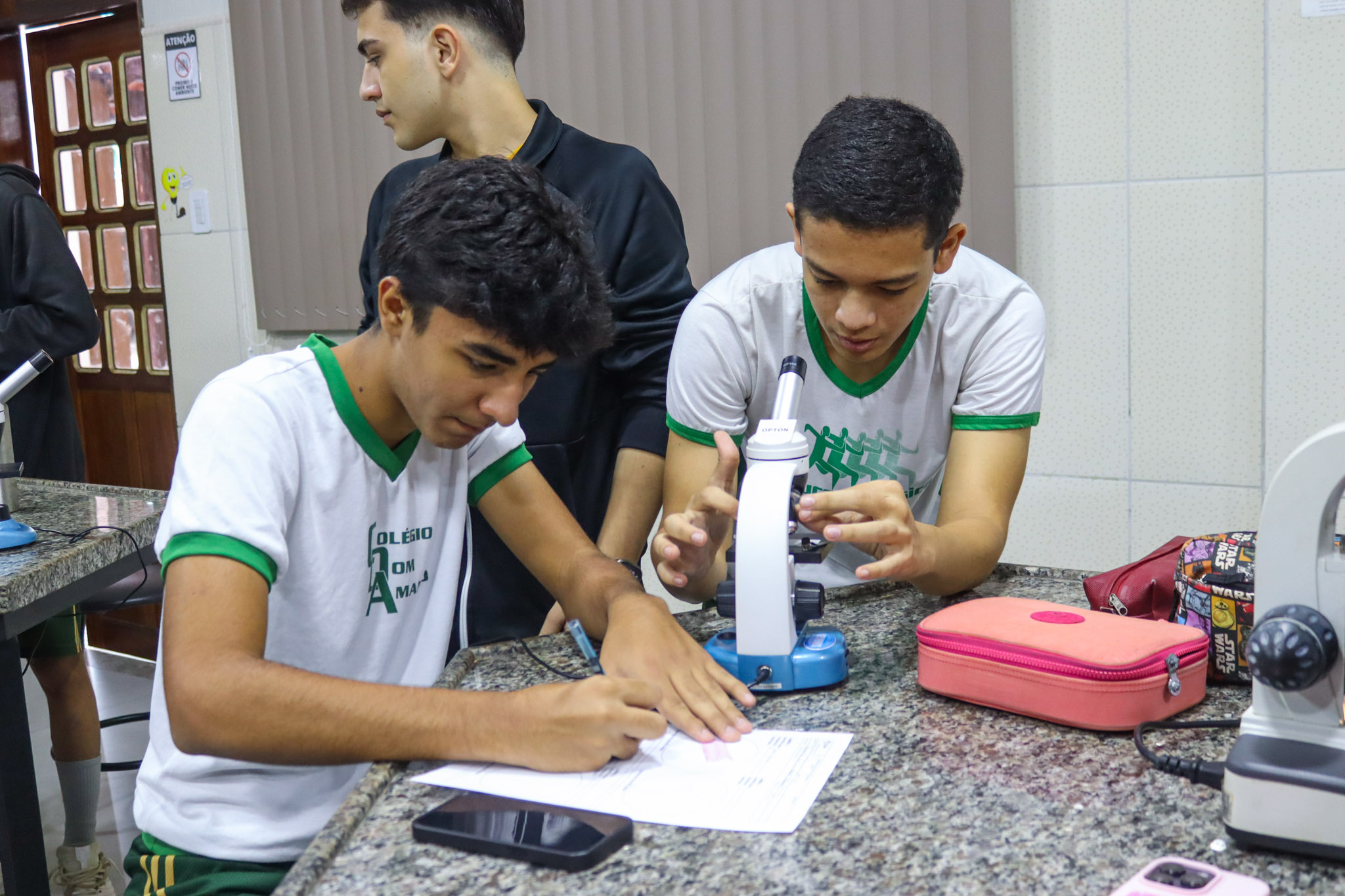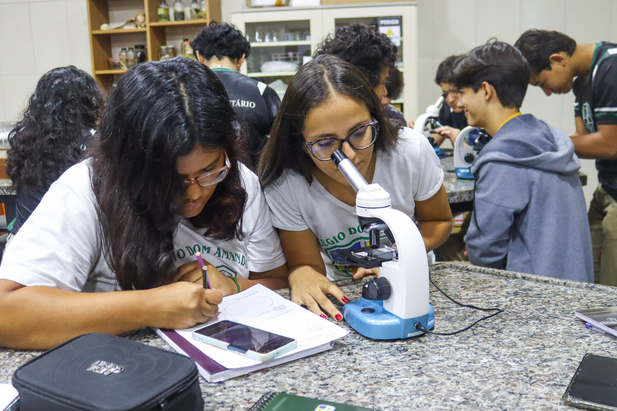 Os alunos do Terceirão do Colégio Dom Amando participaram de uma aula especial de Biologia no laboratório da escola, vivenciando na prática conteúdos fundamentais para a preparação pré-vestibular. A atividade teve como foco a introdução à prática de microscopia óptica, permitindo aos estudantes compreender, de forma concreta, conceitos que muitas vezes são vistos apenas nos livros.