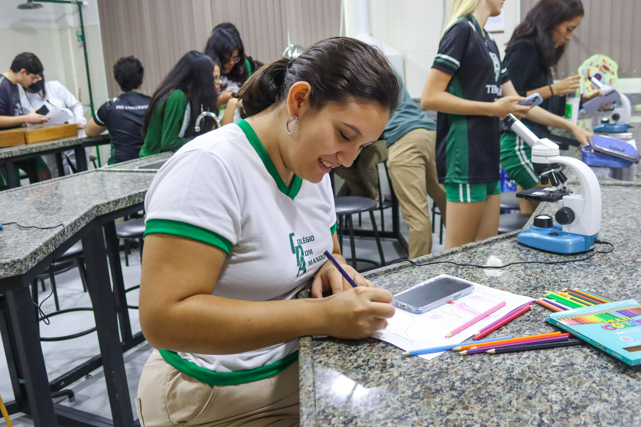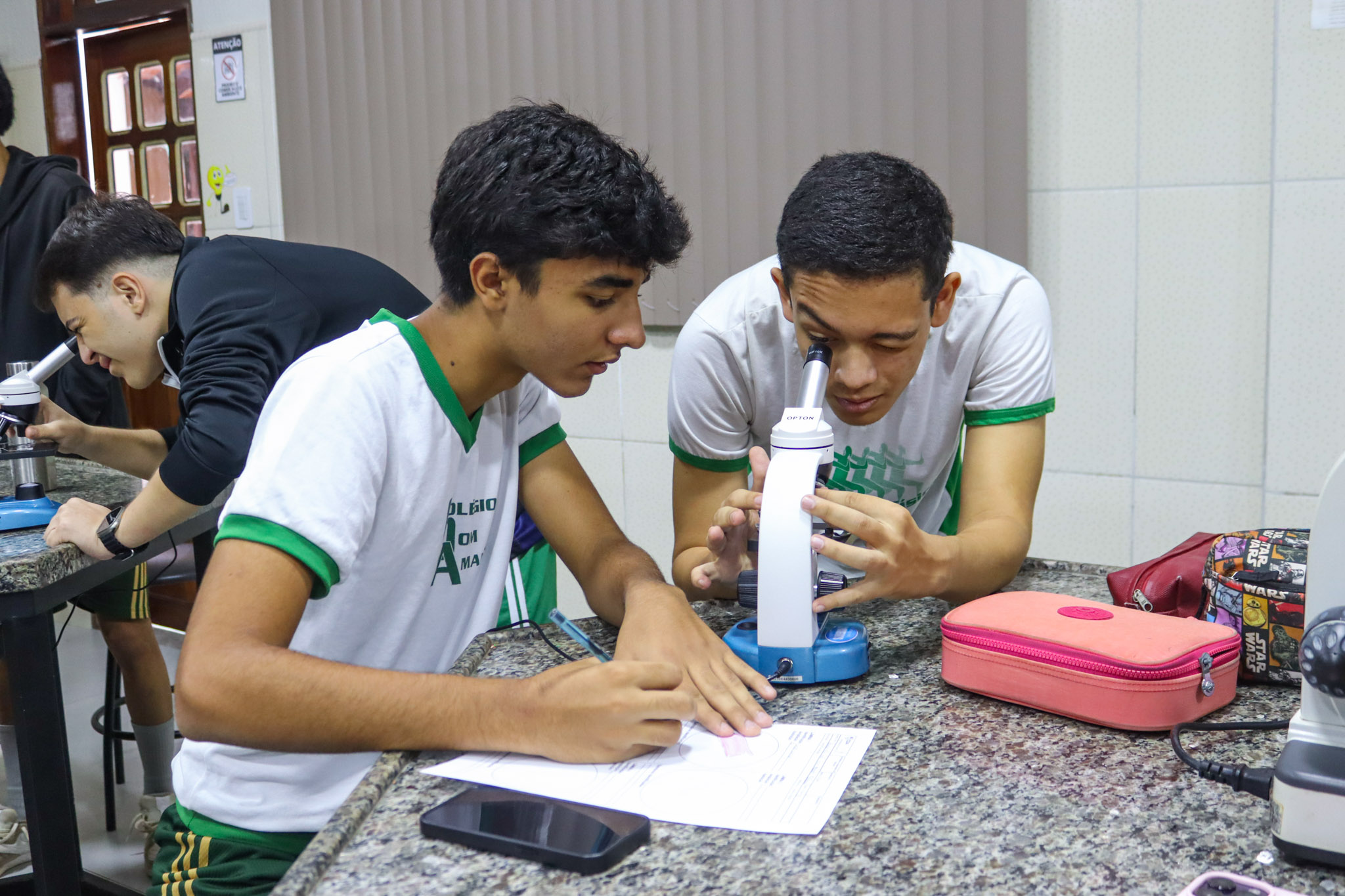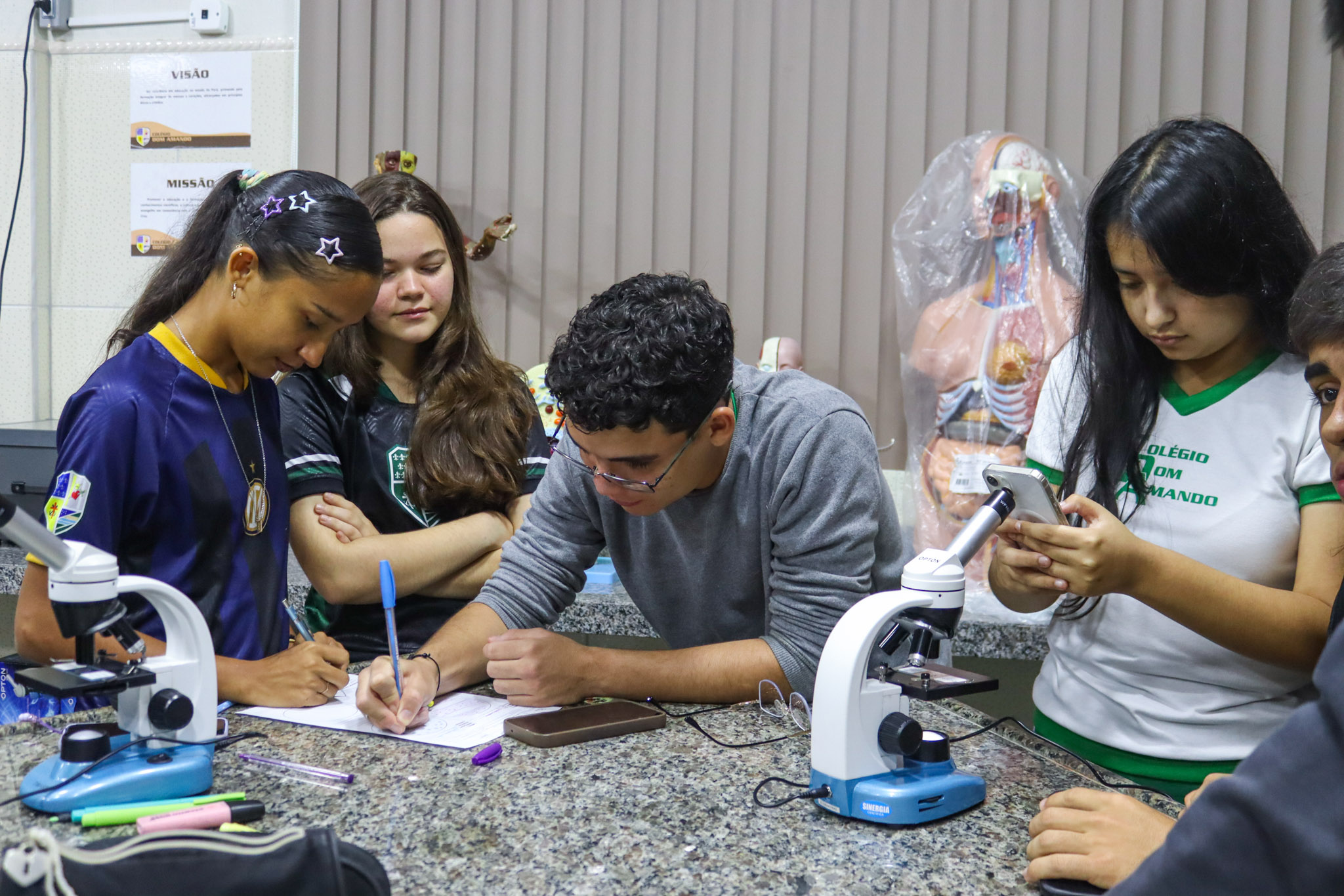 Os alunos do Terceirão do Colégio Dom Amando participaram de uma aula especial de Biologia no laboratório da escola, vivenciando na prática conteúdos fundamentais para a preparação pré-vestibular. A atividade teve como foco a introdução à prática de microscopia óptica, permitindo aos estudantes compreender, de forma concreta, conceitos que muitas vezes são vistos apenas nos livros.