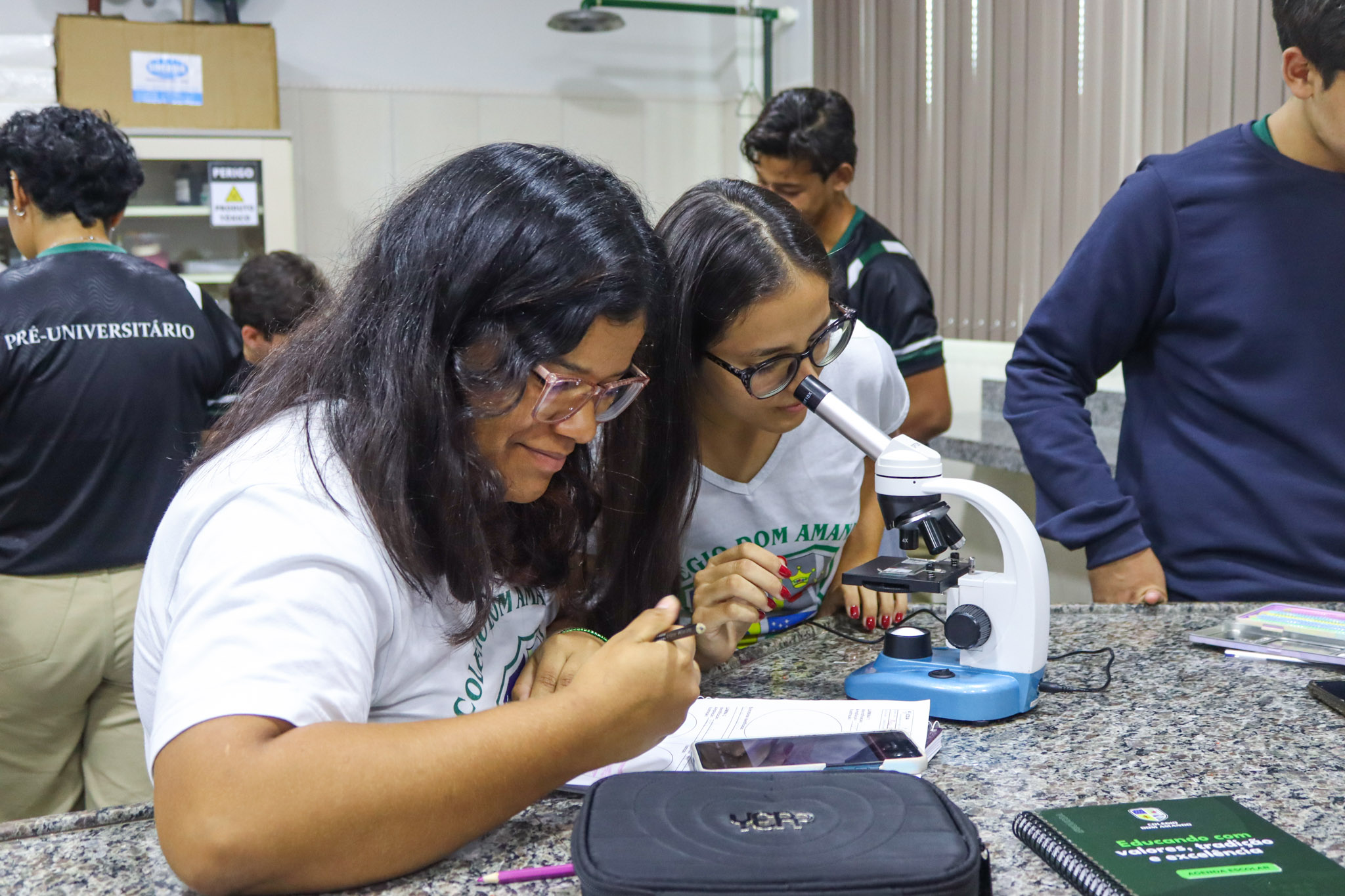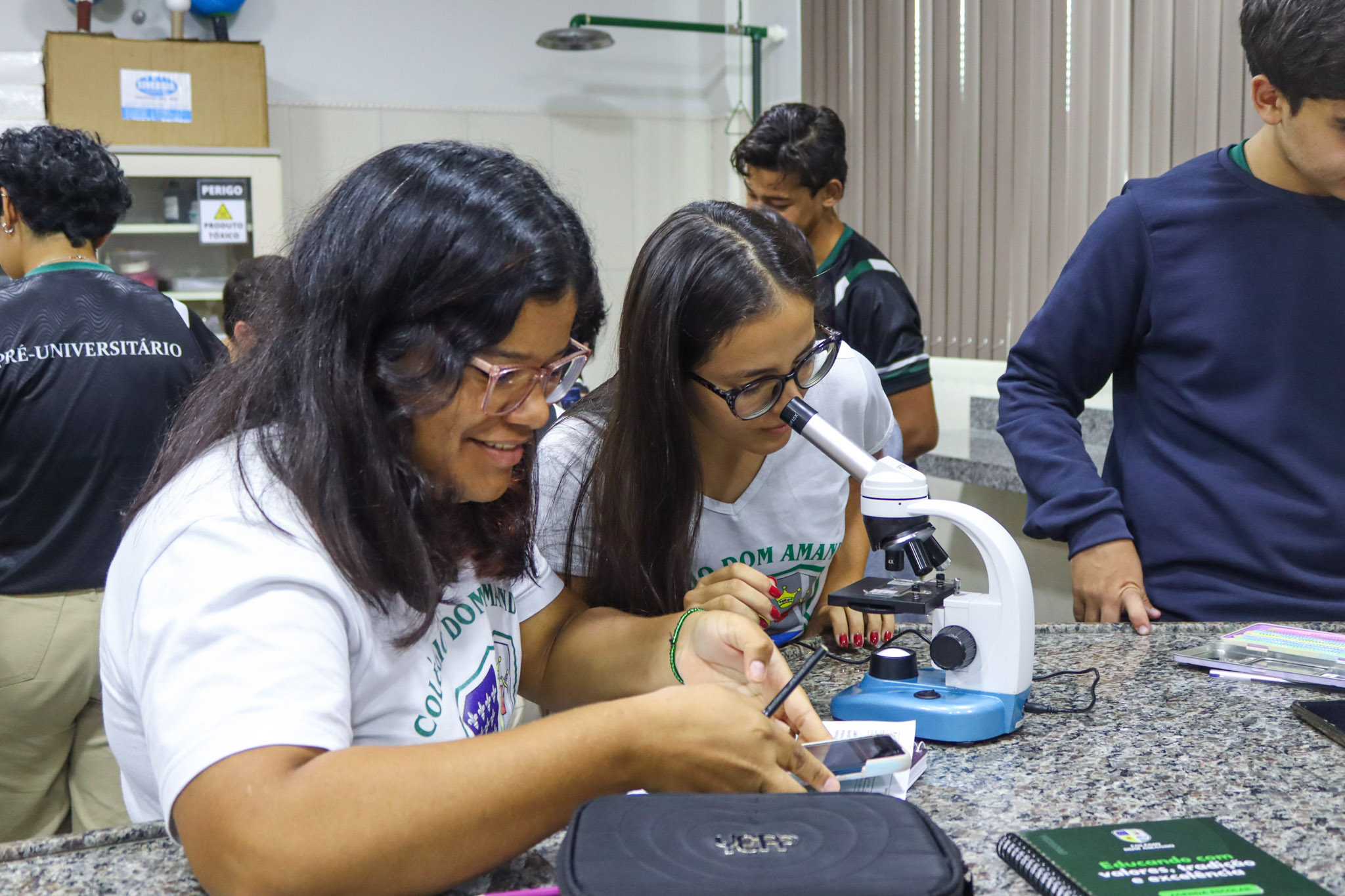 O laboratório do Colégio Dom Amando oferece um ambiente estruturado e equipado para o desenvolvimento de atividades científicas, proporcionando aos estudantes experiências que estimulam a investigação, a curiosidade e o pensamento crítico. Para os alunos do Terceirão, que estão em fase de preparação para os vestibulares e para o ENEM, momentos como esse são essenciais para fortalecer a compreensão dos conteúdos e ampliar o aprendizado por meio da prática.